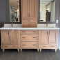 Stunning very high-end William Ohs Master Suite cabinetry in a vertical grain re-sawn white oak veneer with a custom brown with flat sheen finish with raking. Like new, Only 6 years old! The drawers are dovetail, soft-close with full extension and Emtek door/ drawer Hex pulls. The Master Suite set comes also comes with gorgeous marble countertops, Waterworks faucet sets, under mount sinks, 3 wall sconces and a very nice Robern mirror medicine cabinet. The Master Suite Vanities have been carefully removed by licensed contractors and moved to storage. Drawings can be emailed. Price for the package below.