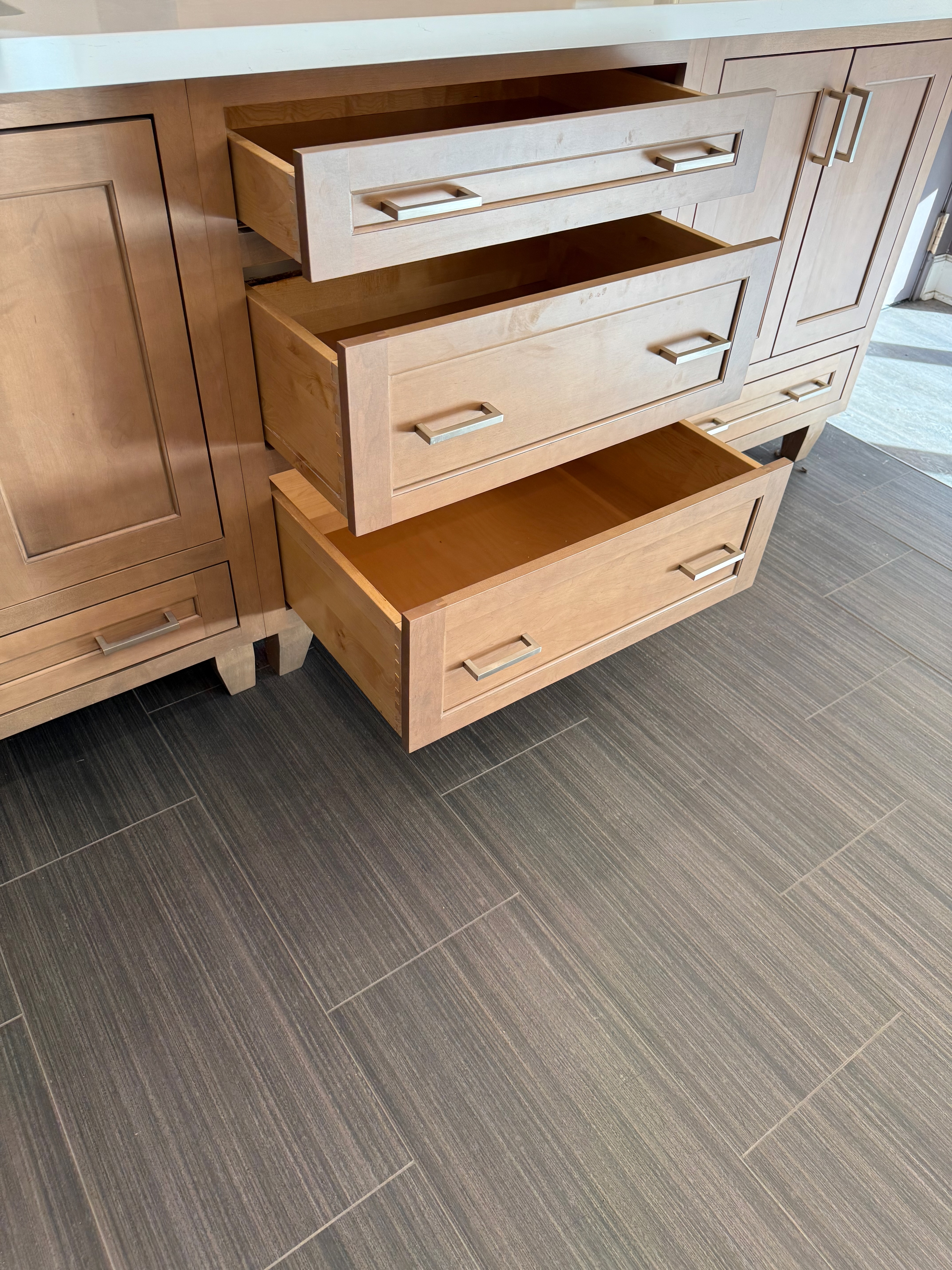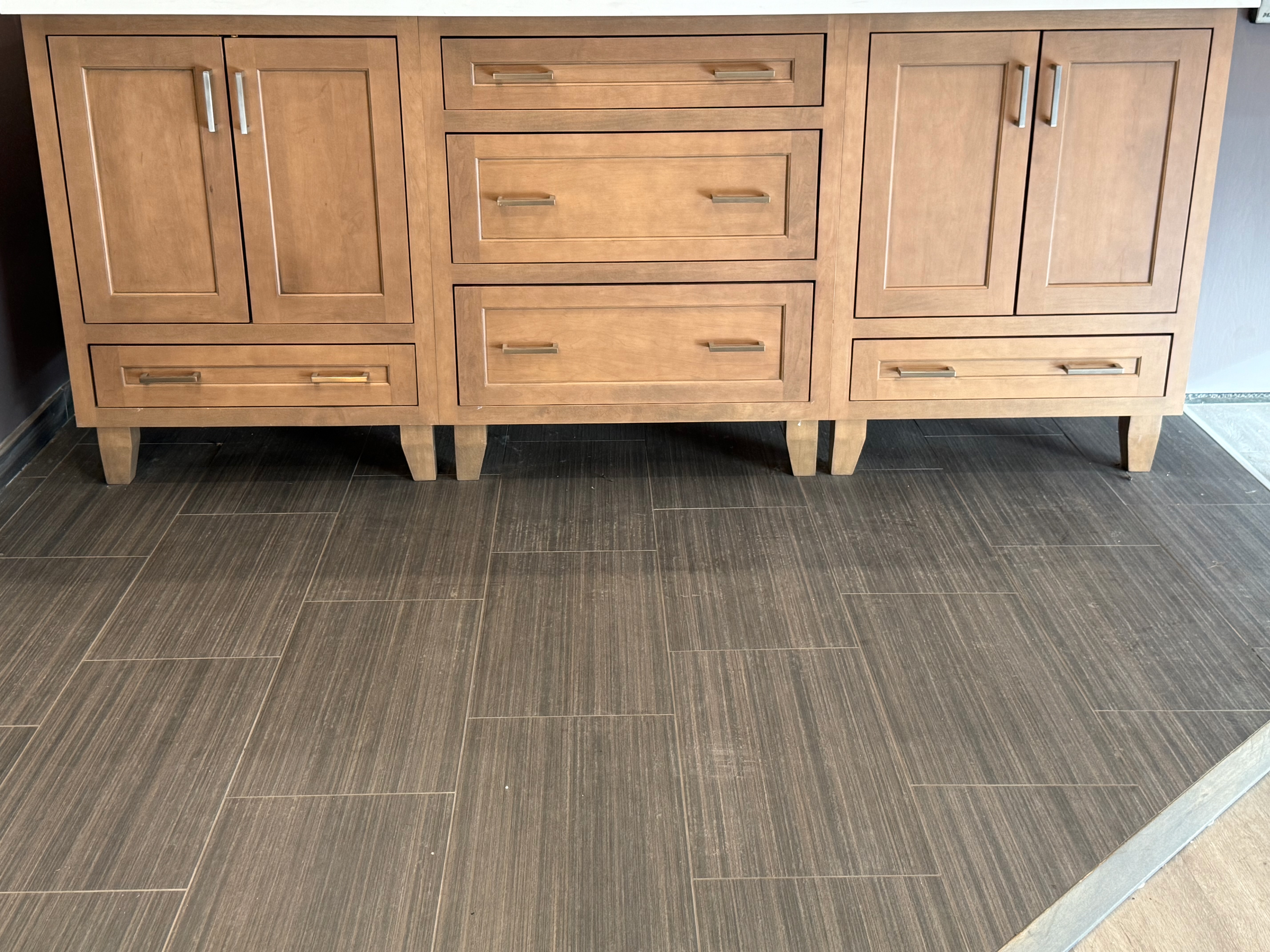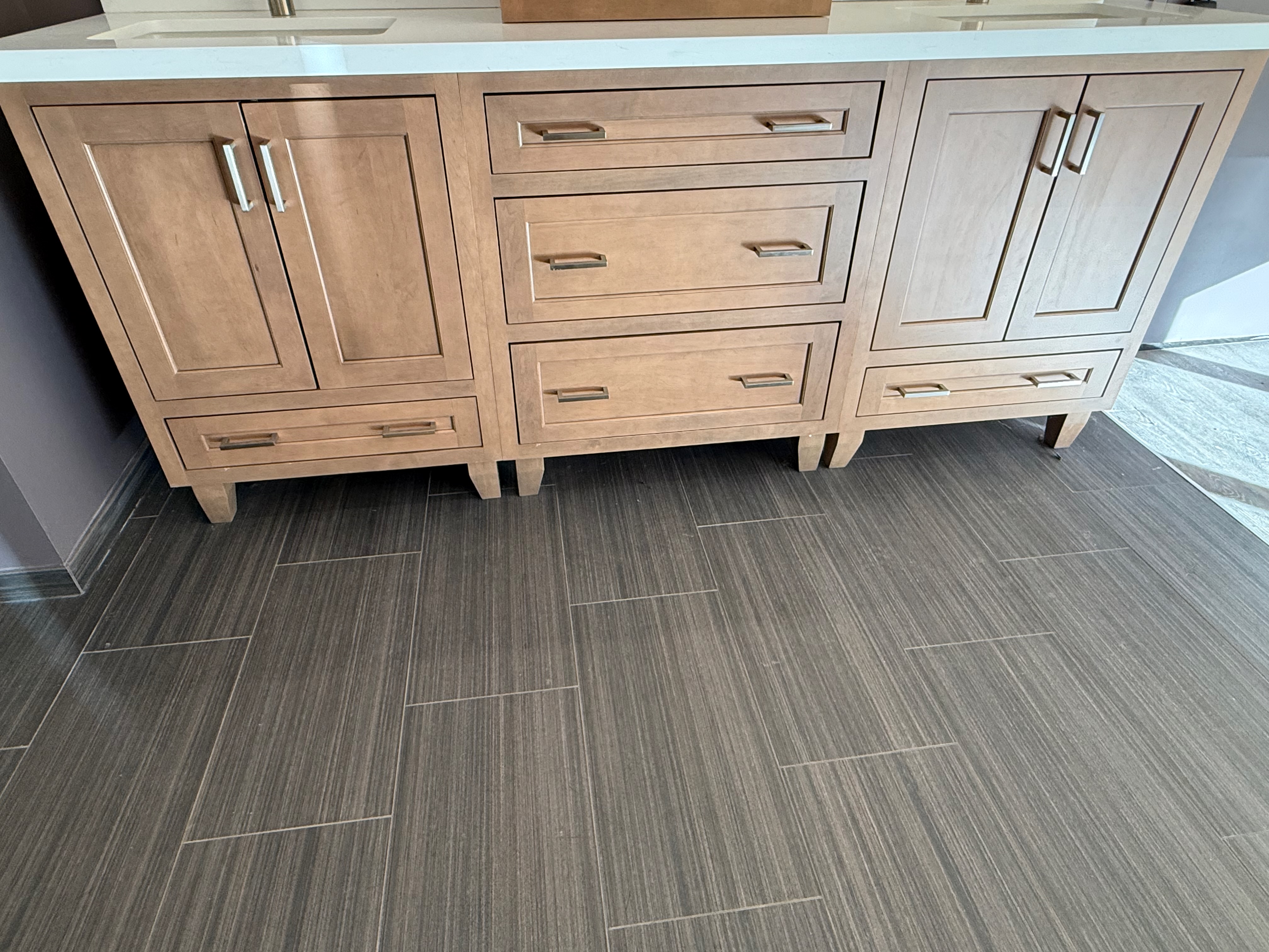 Each Vanity includes a Two door sink base cabinet Dim.: 30” w x 36”h x 24”d and 2-Three drawer soft close base cabinets Dim.: 19”w x 34 ½”h/36”h x 24”d