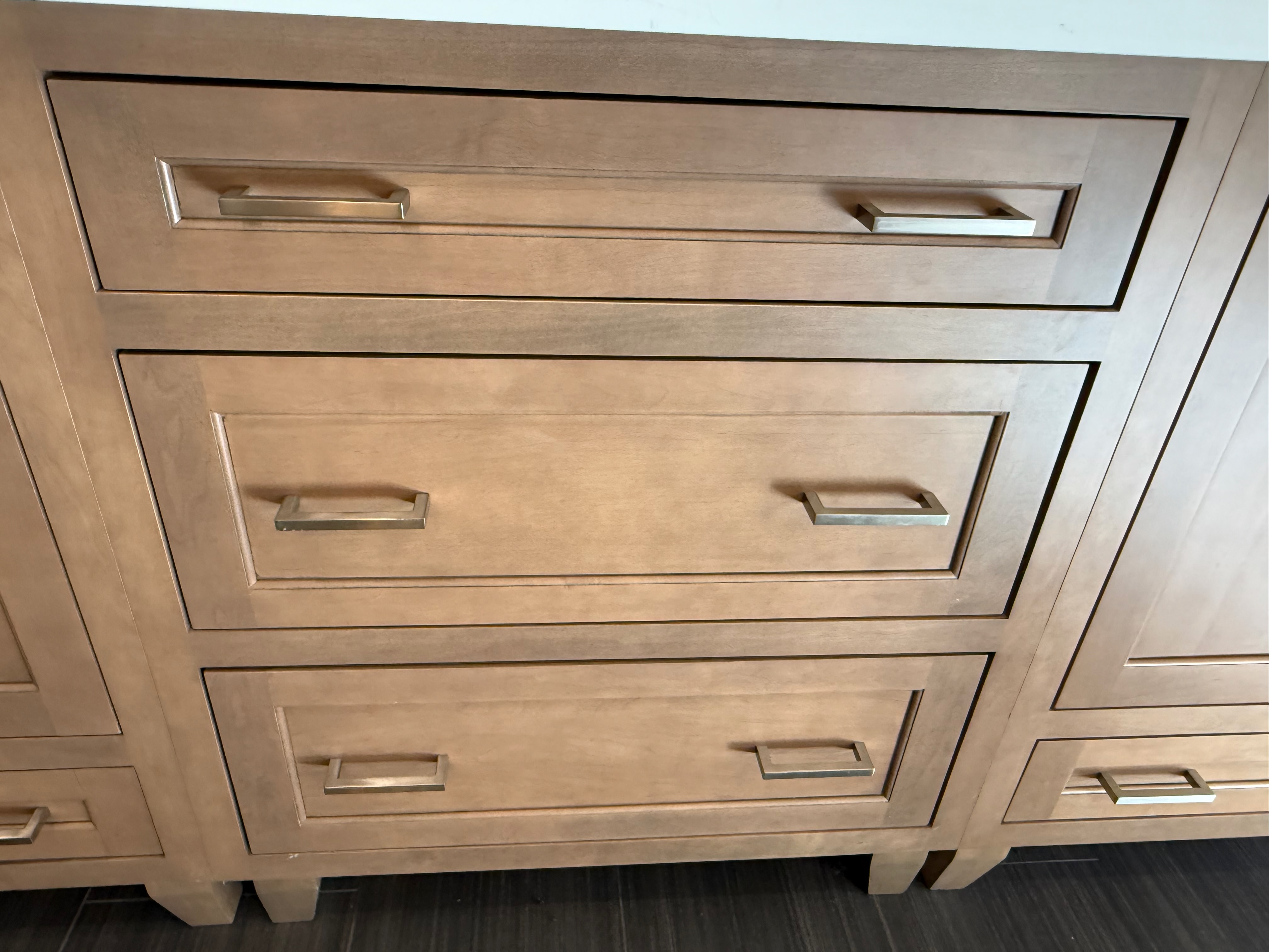 2-Six drawer, Two door floating Spokane slab door style in Arizona cypress finish. Overall 80 3/4"w