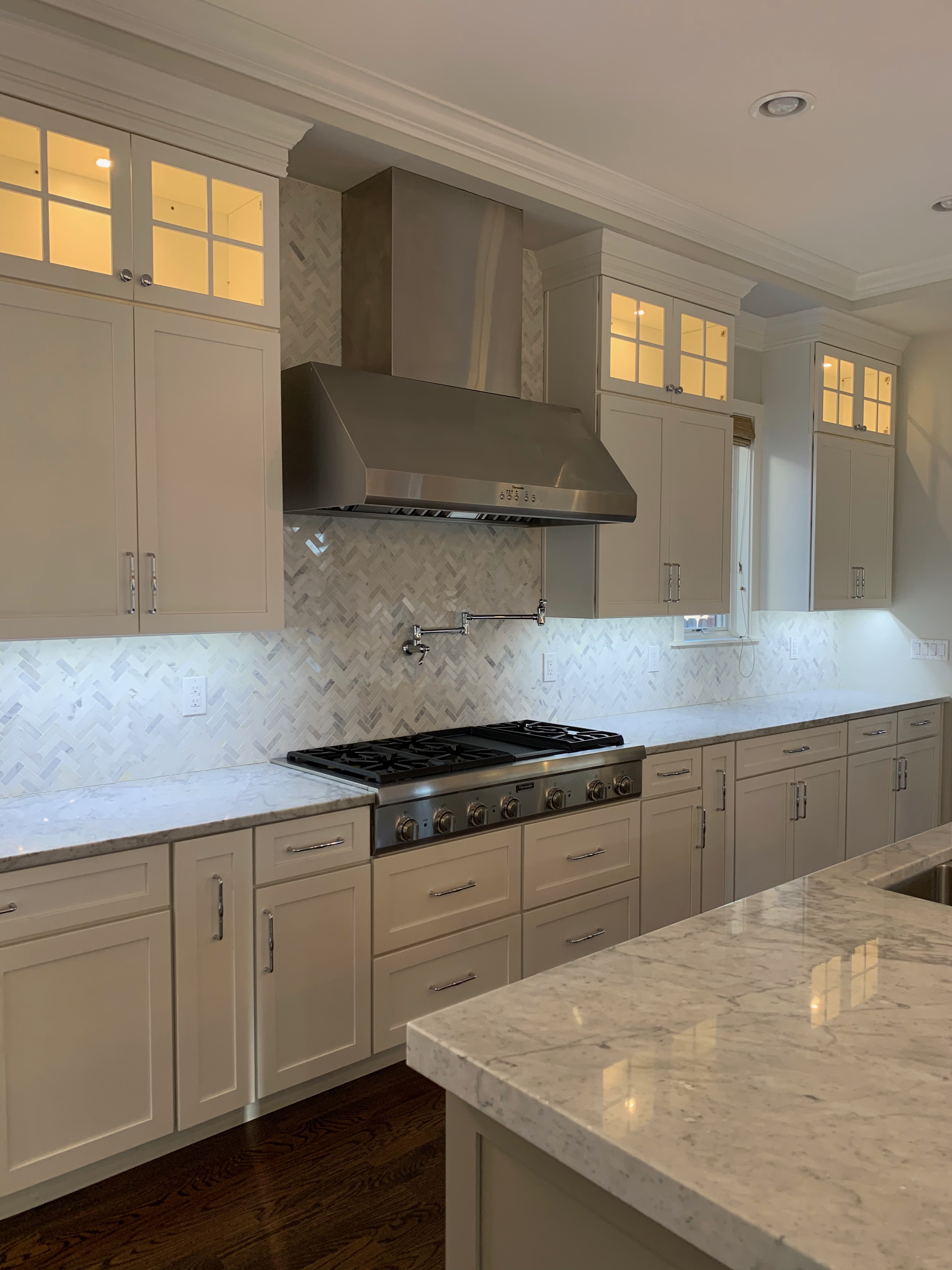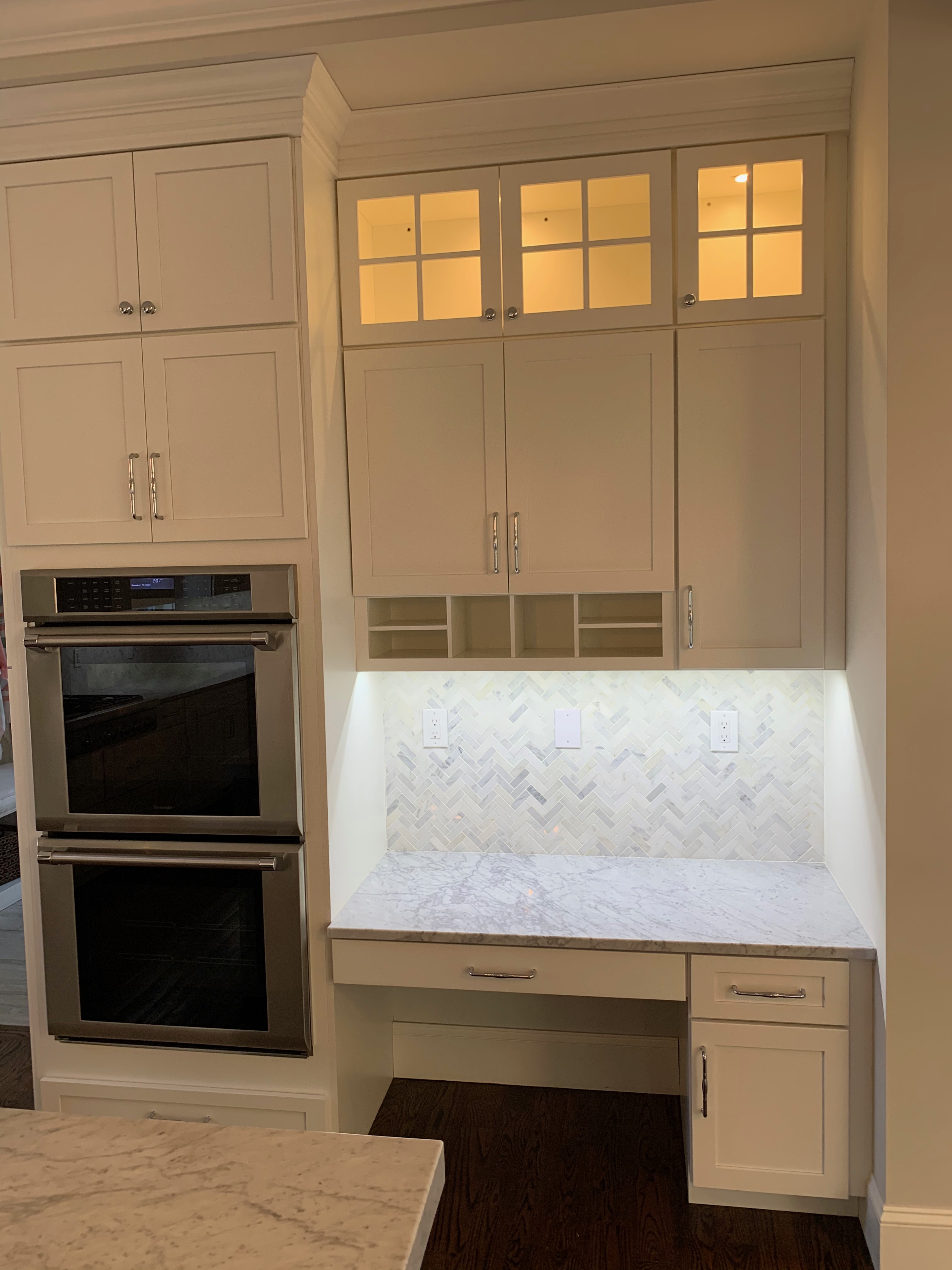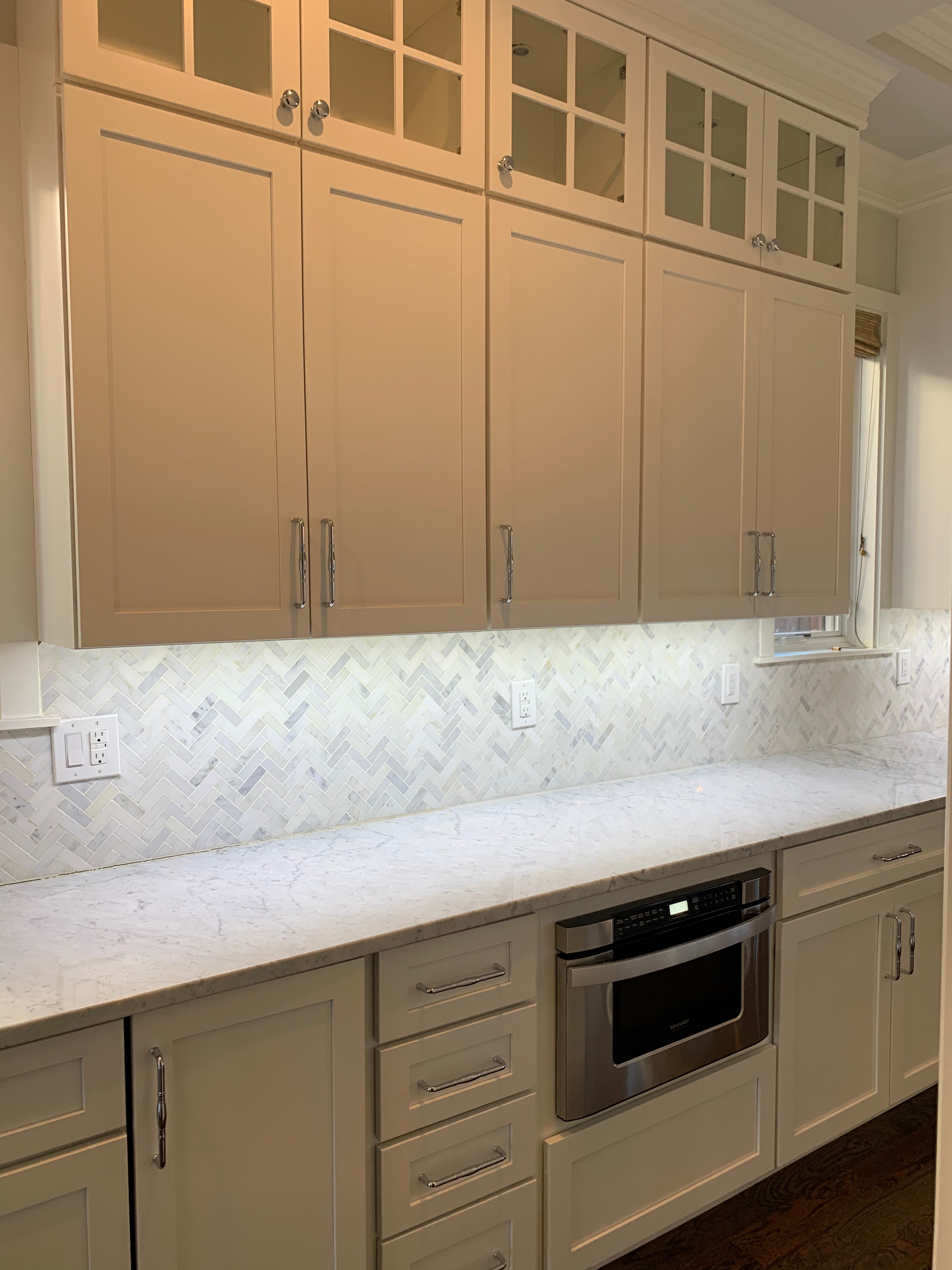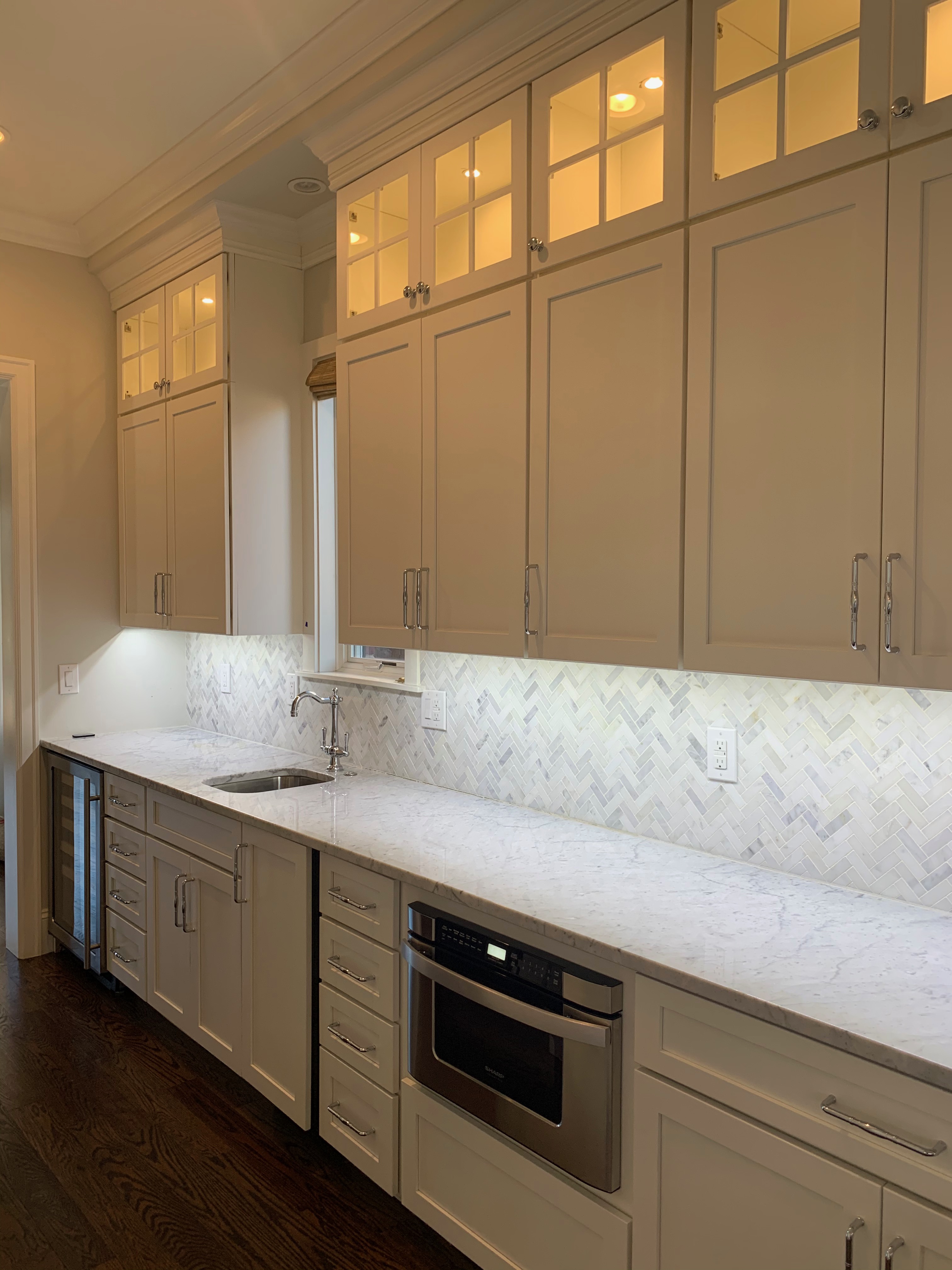 WALL CABINETS-The wall cabinets have puck lighting in the glass front cabinets