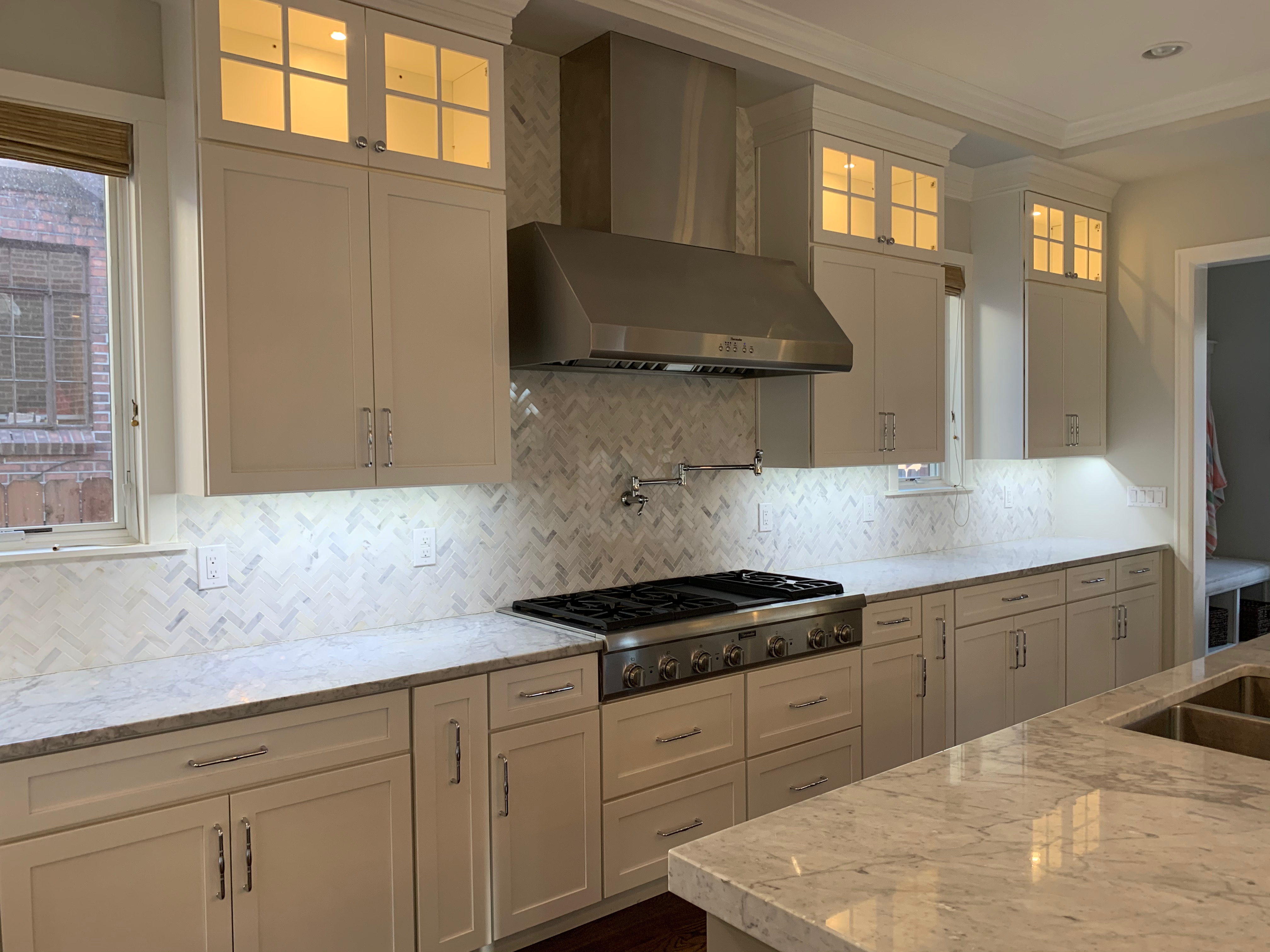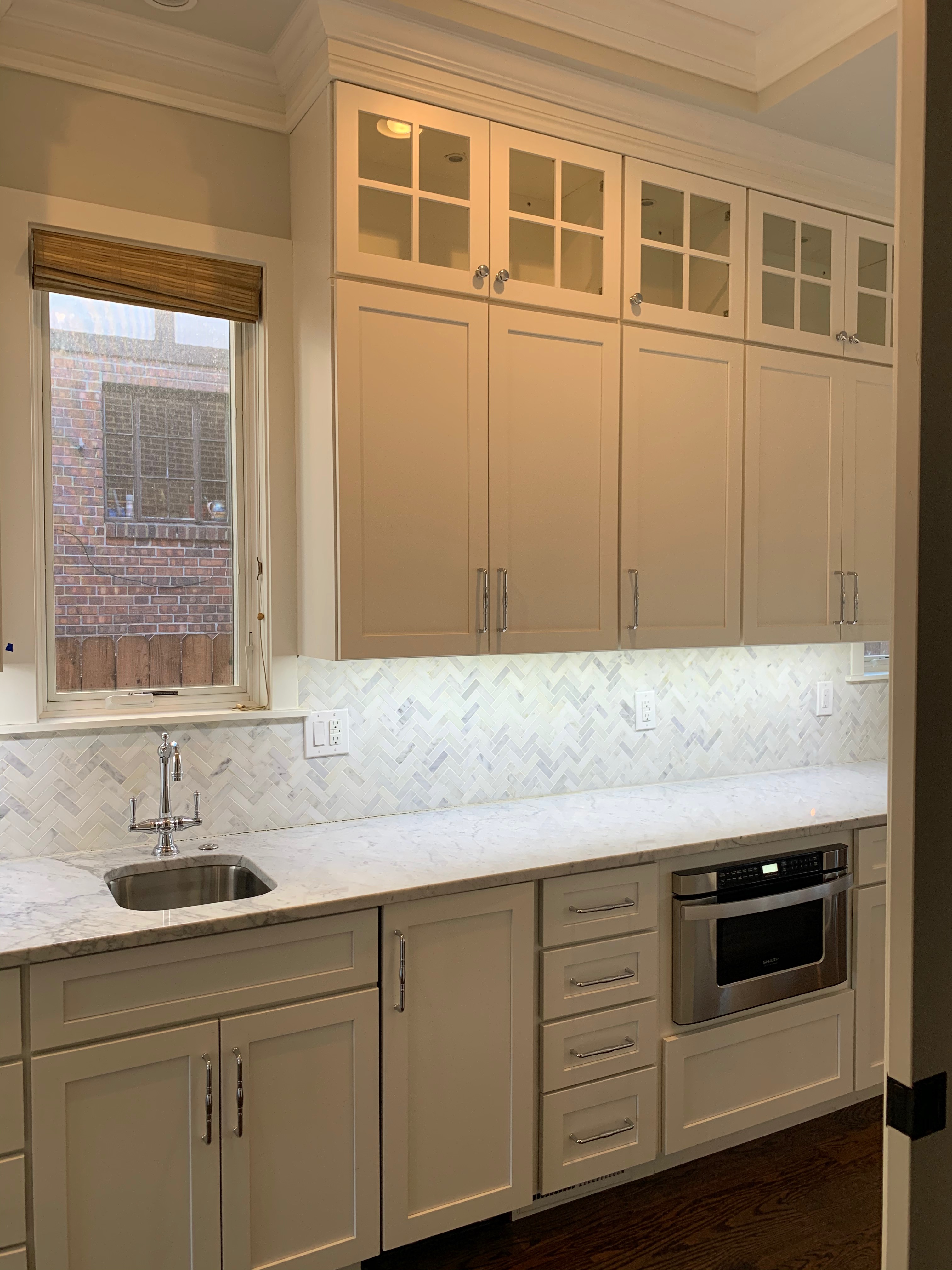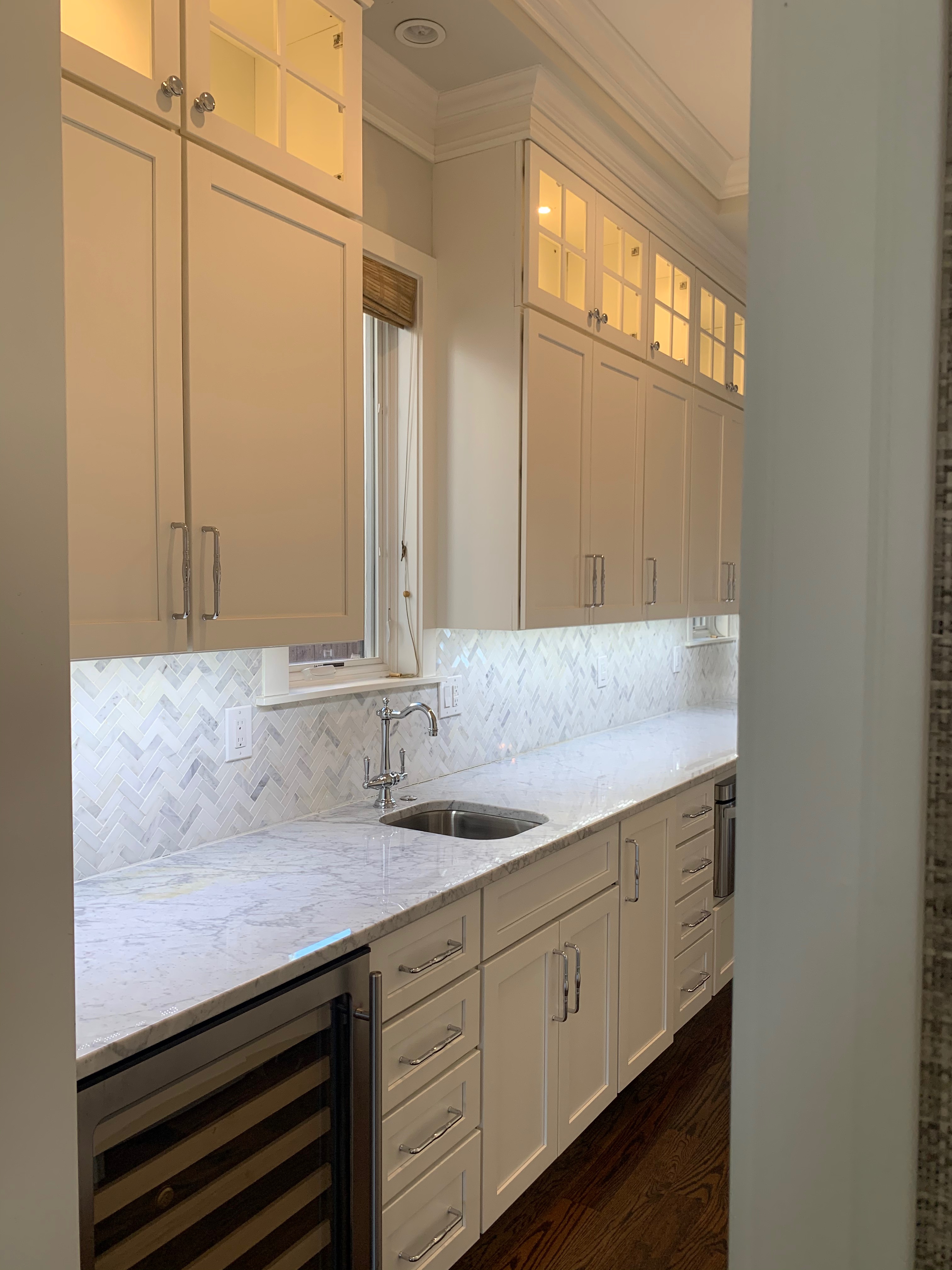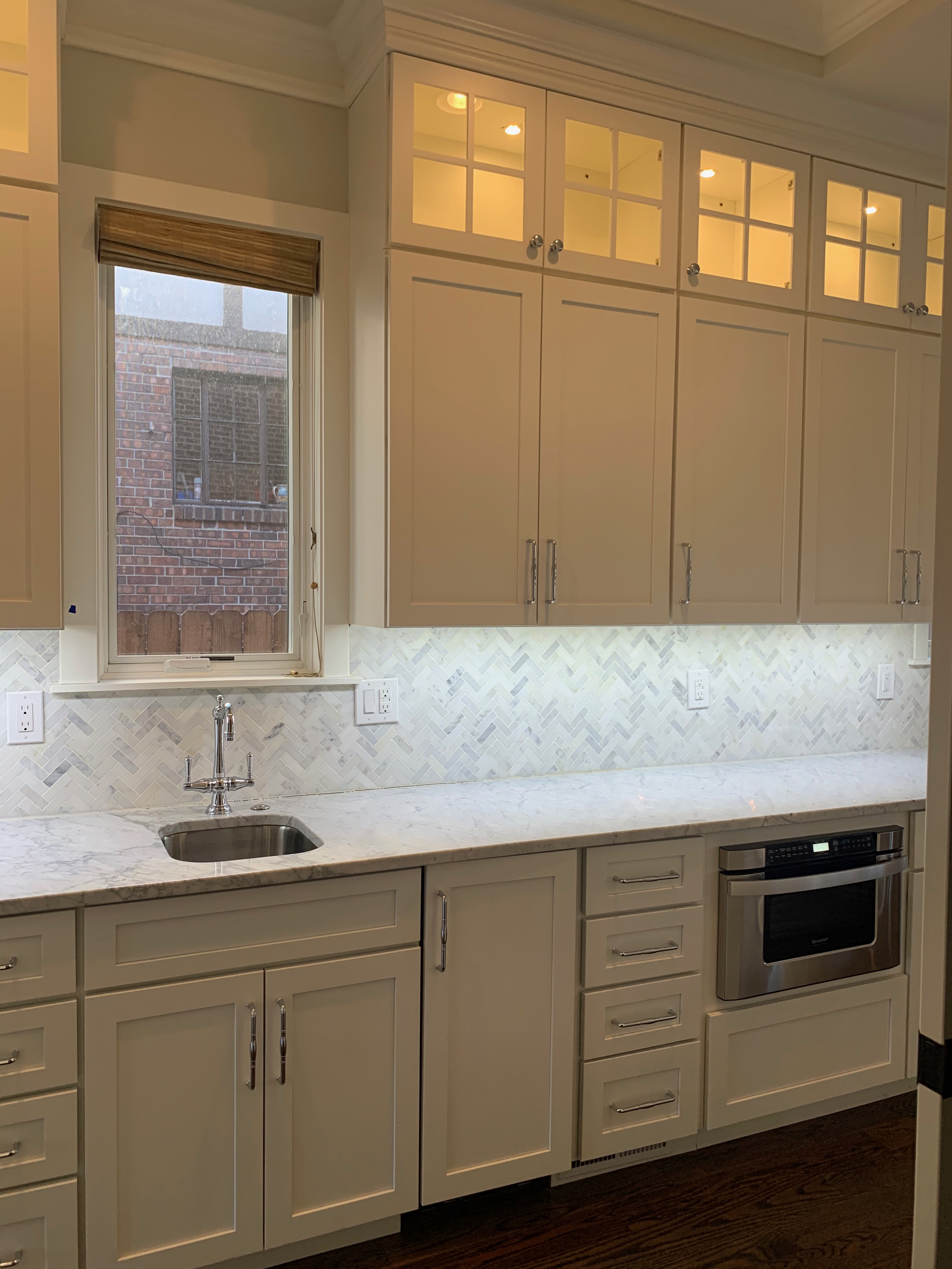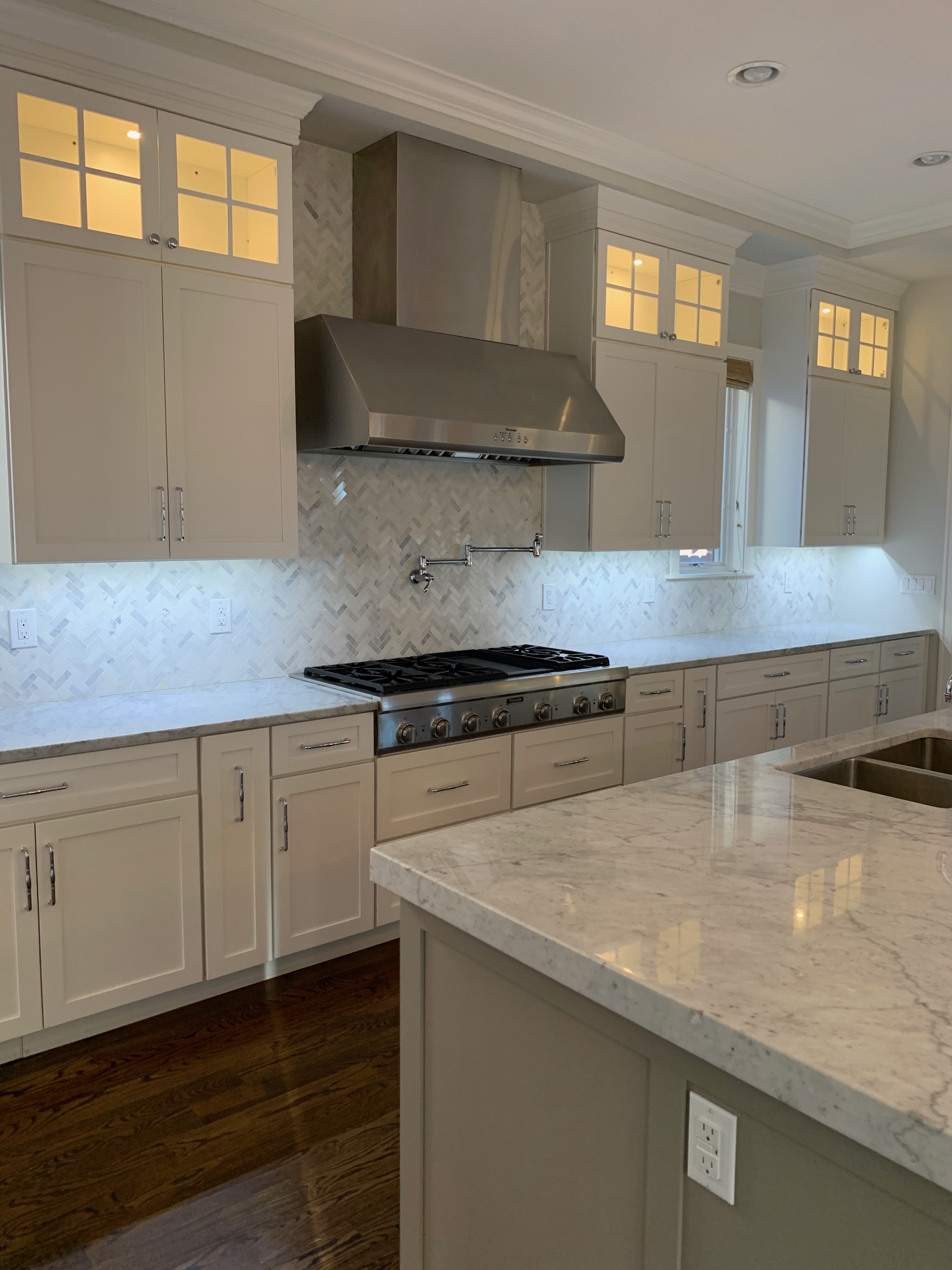 WALL CABINETS-The wall cabinets have puck lighting in the glass front cabinets