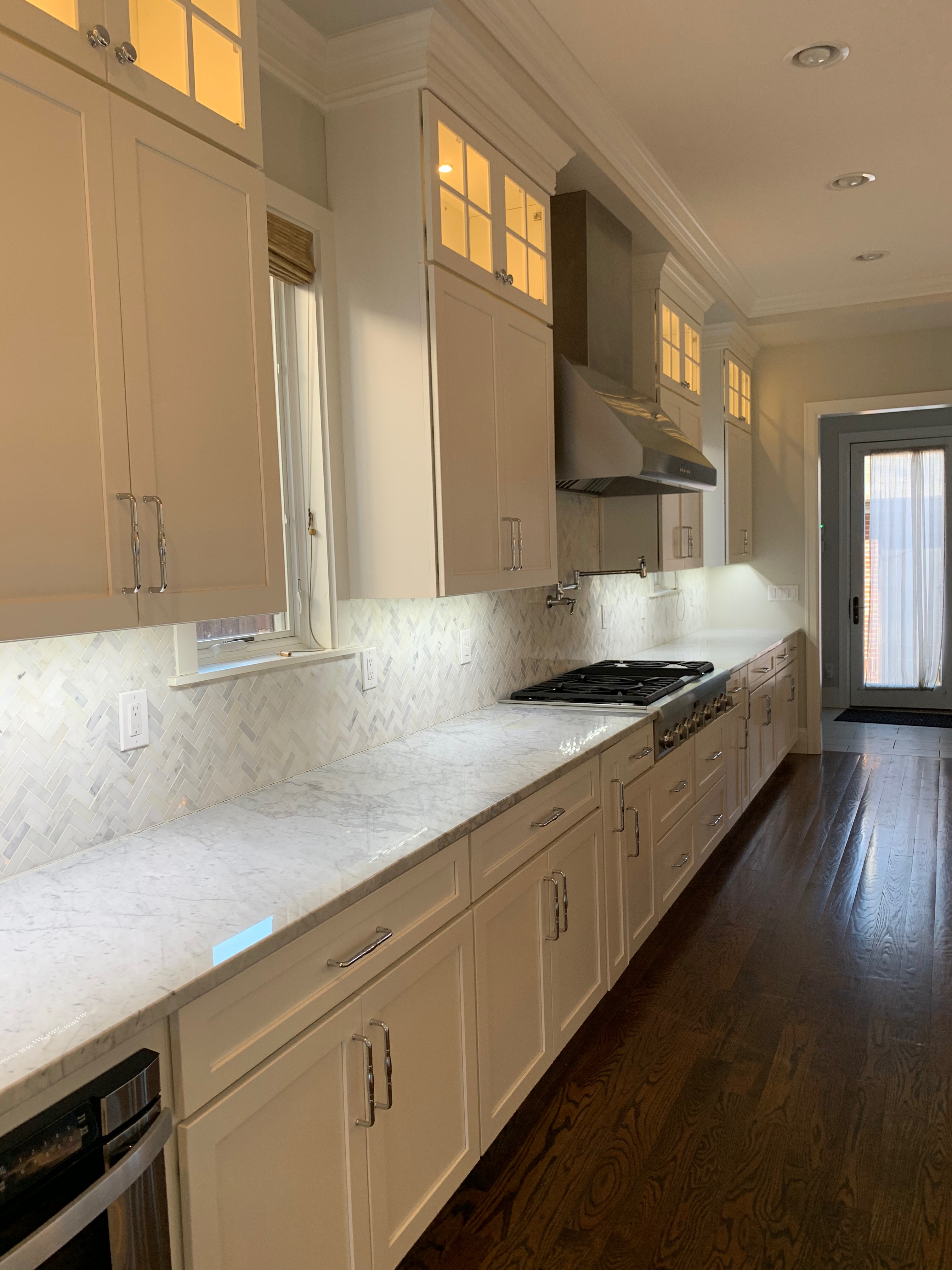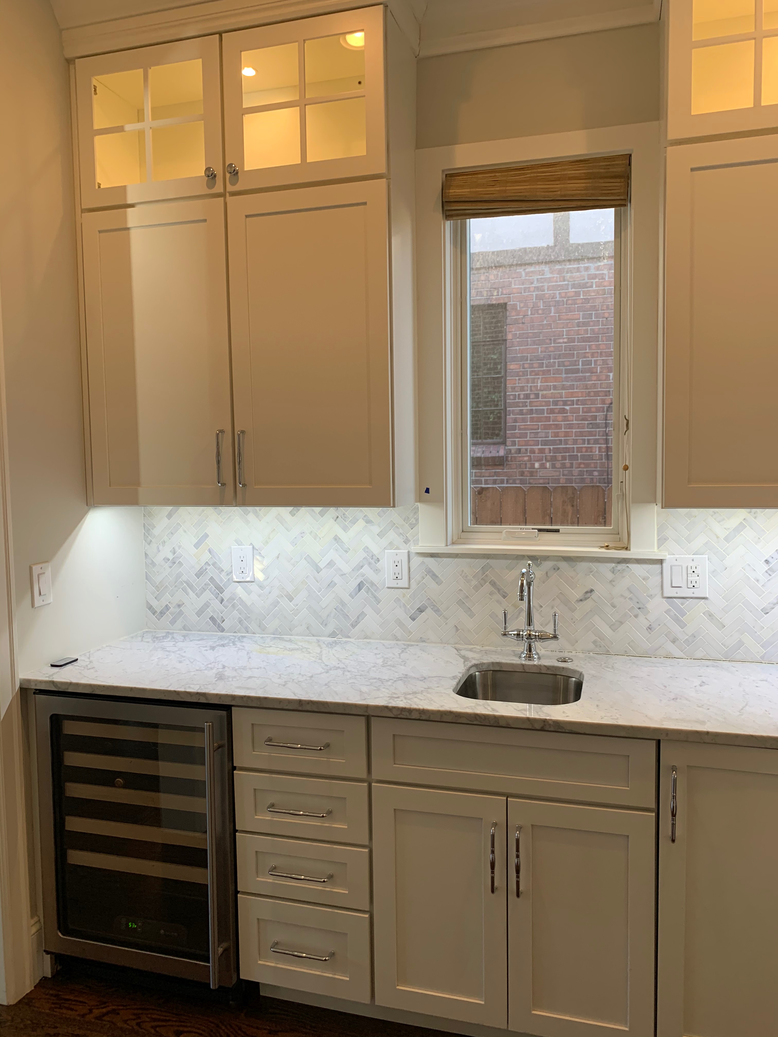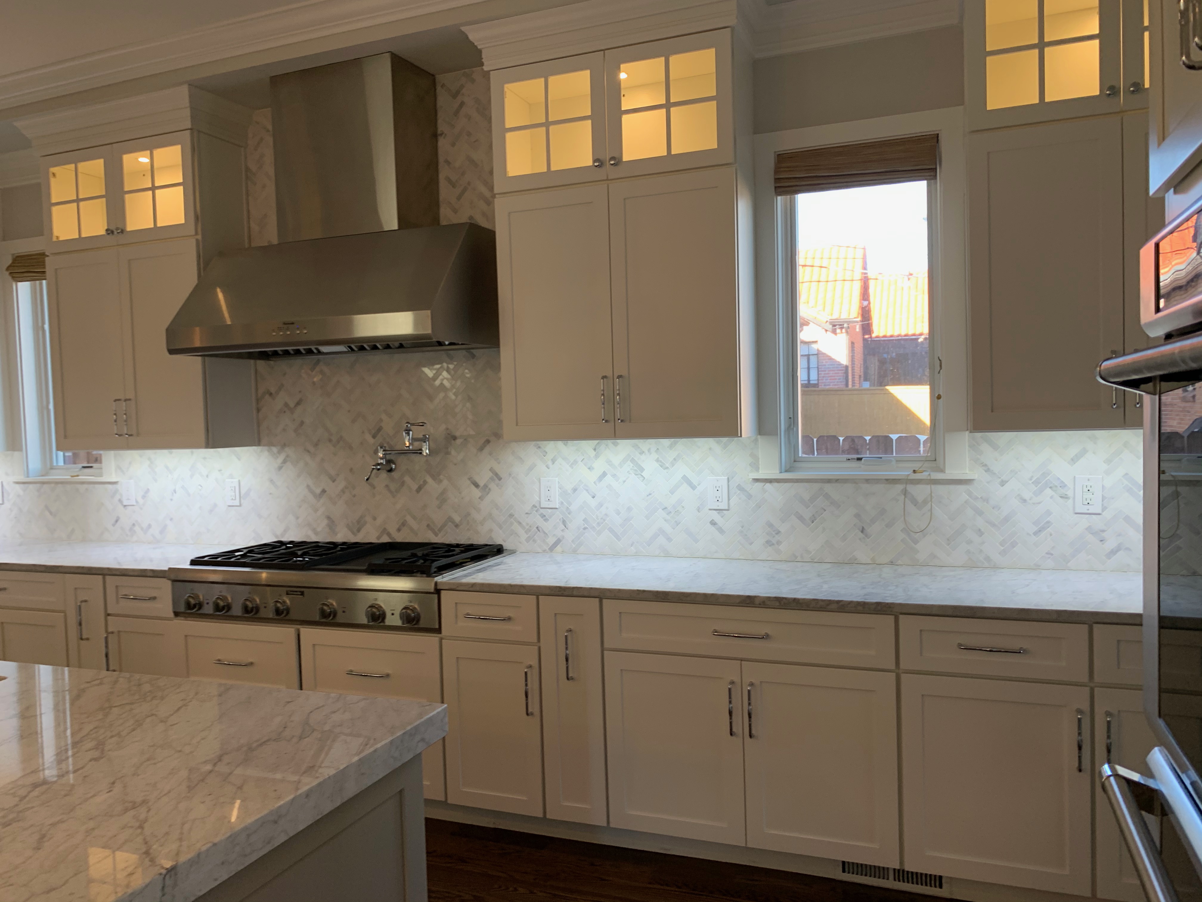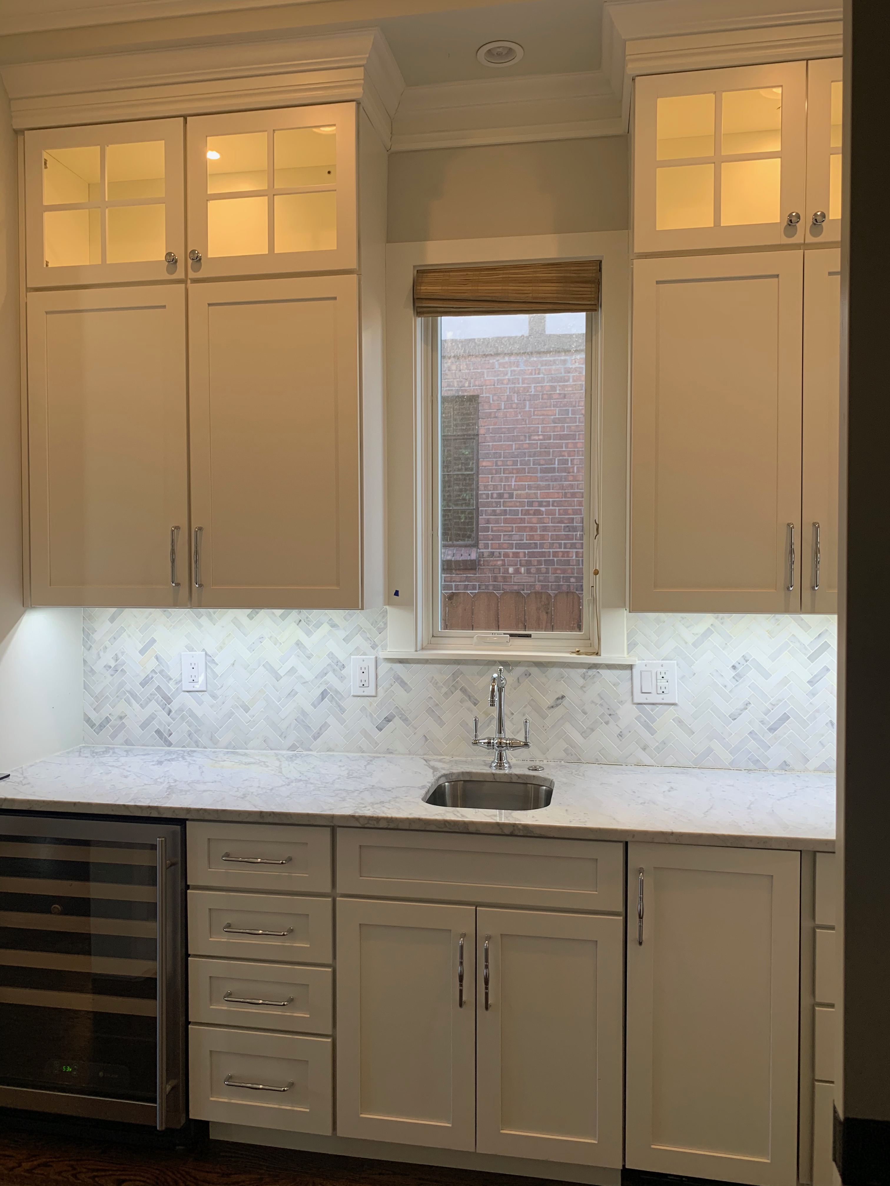WALL CABINETS-The wall cabinets have puck lighting in the glass front cabinets