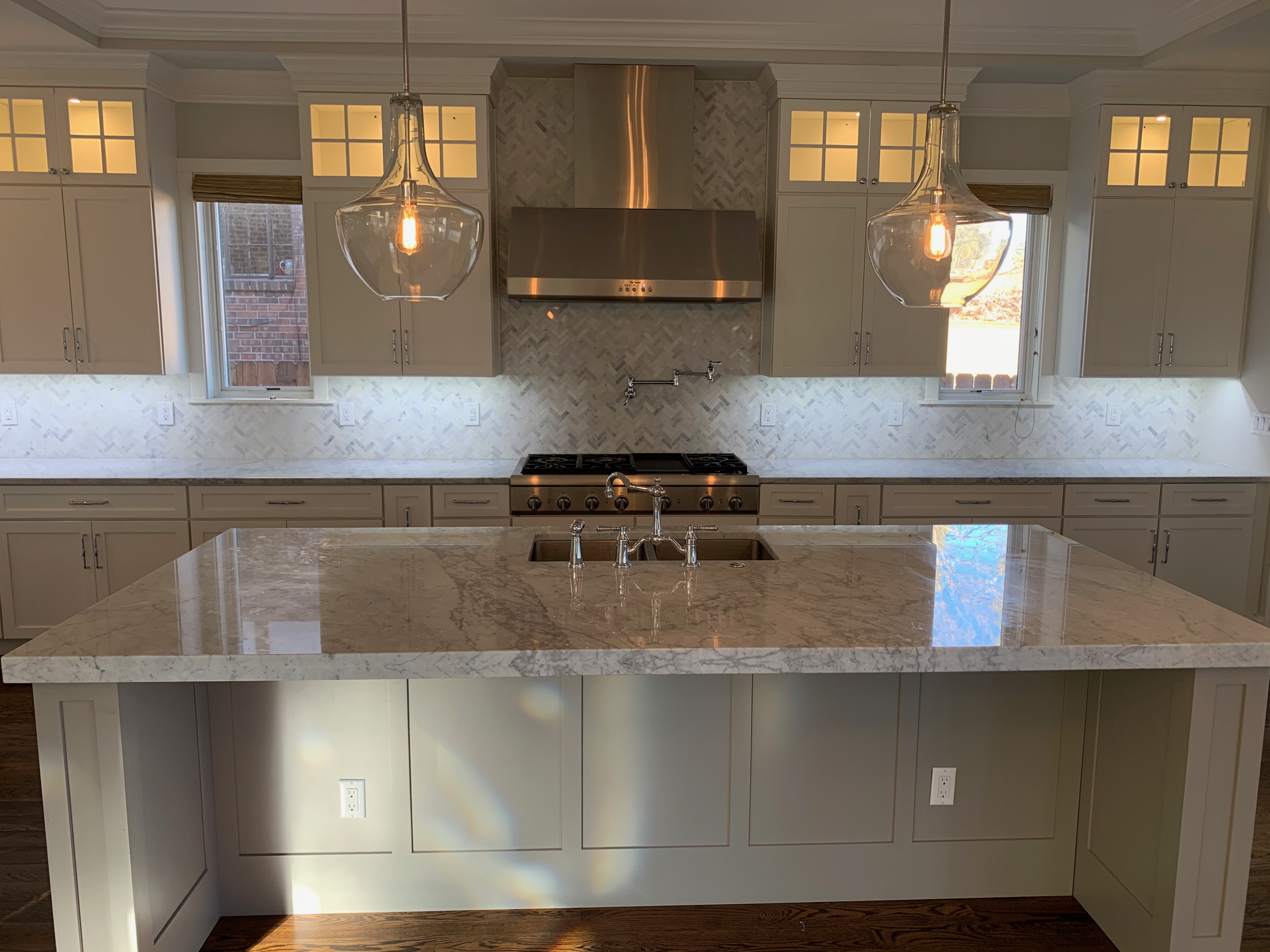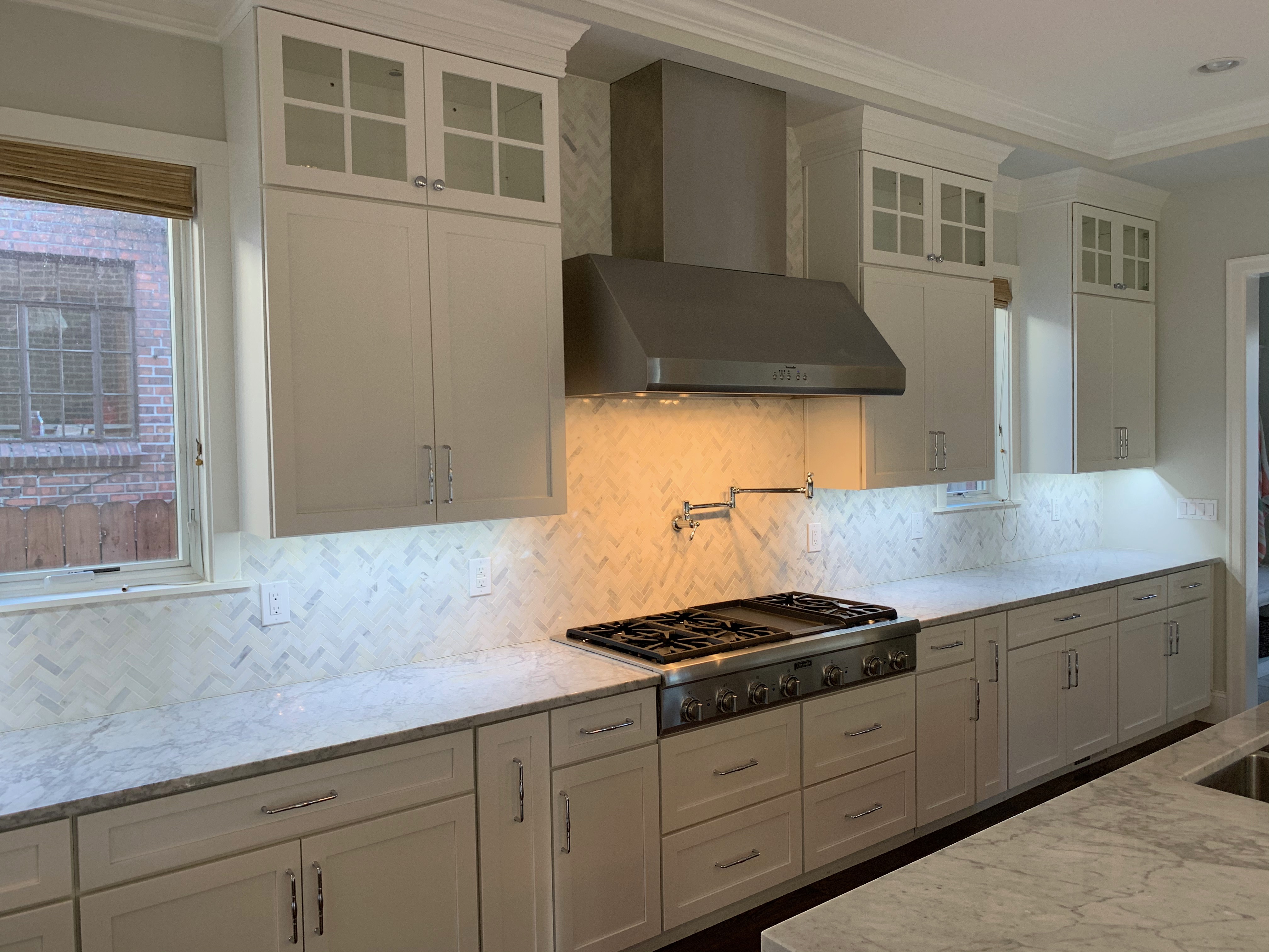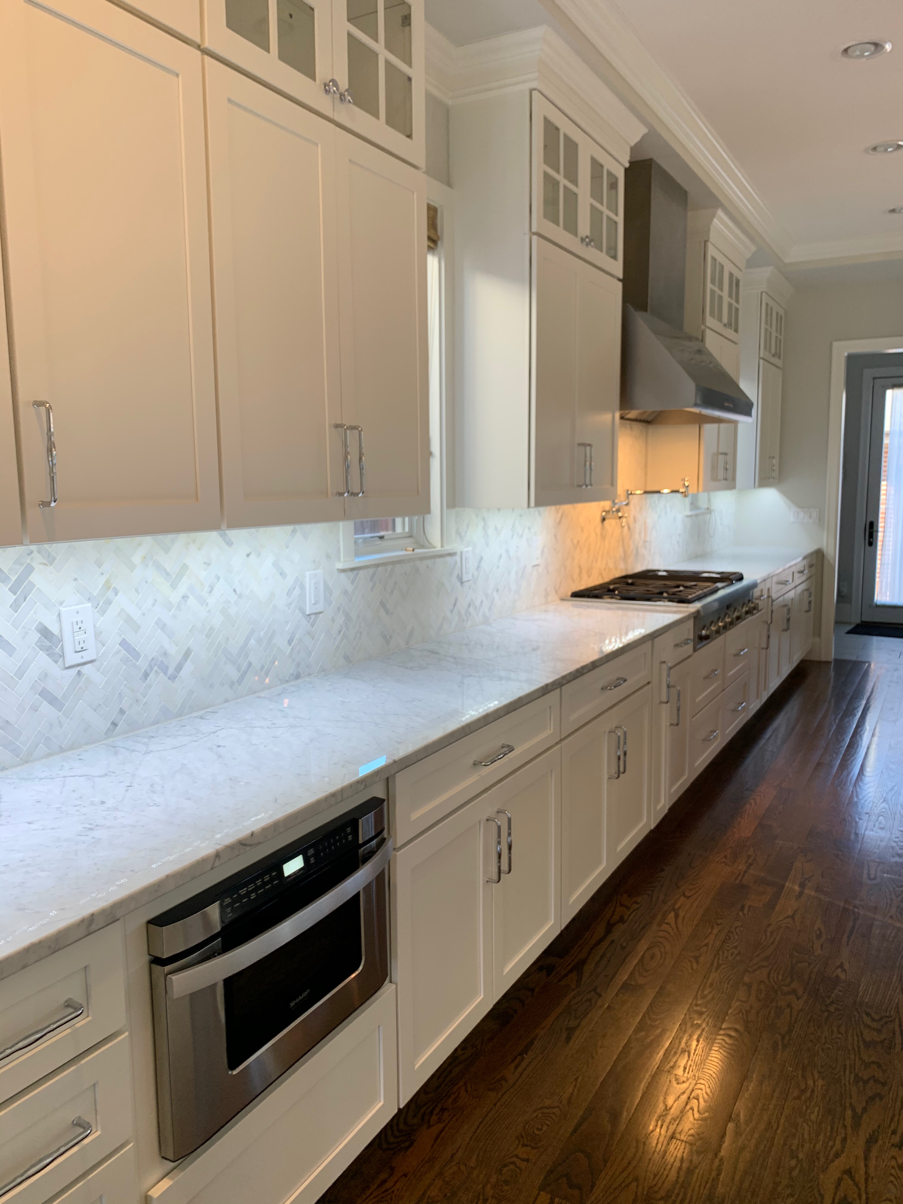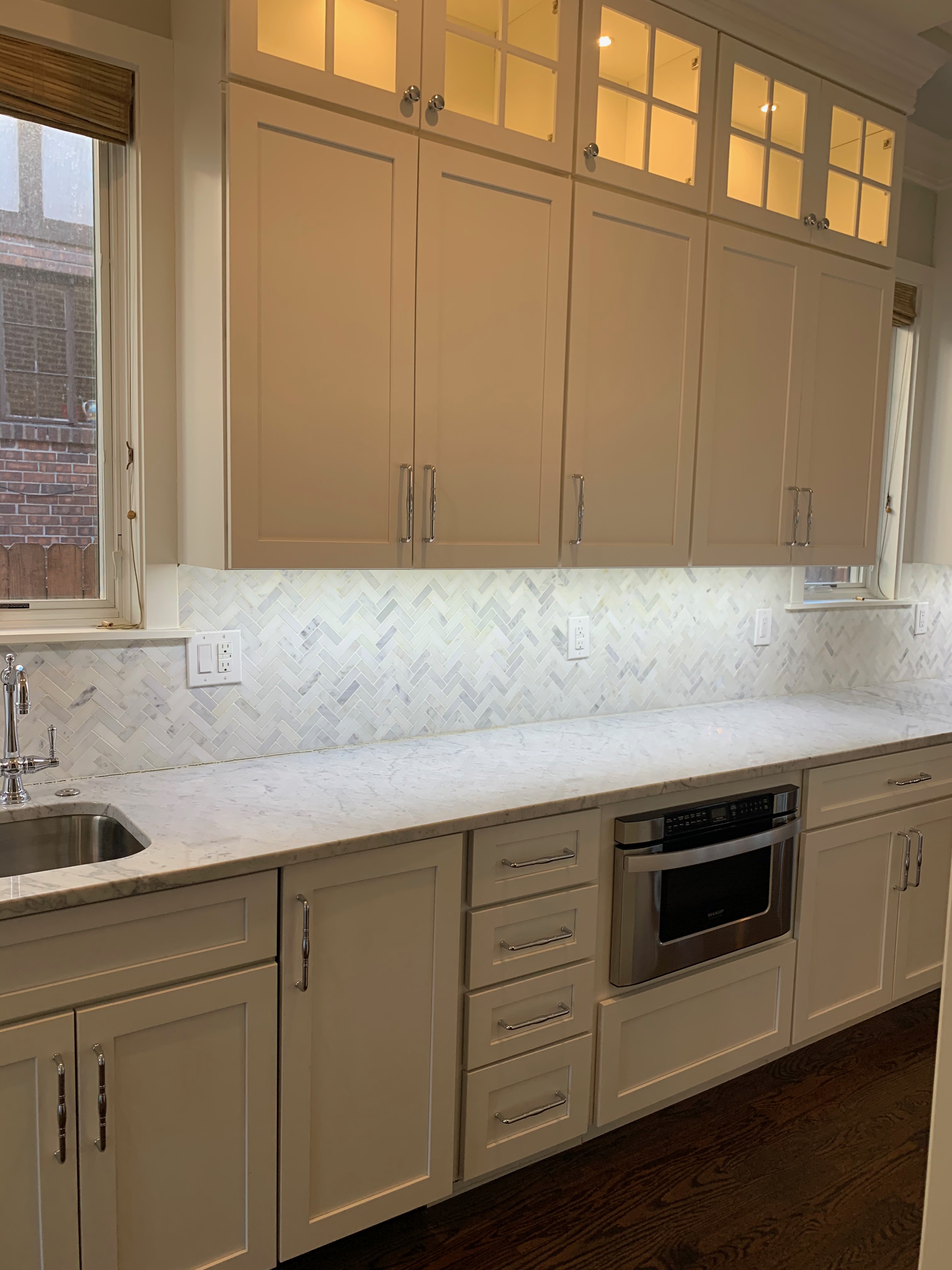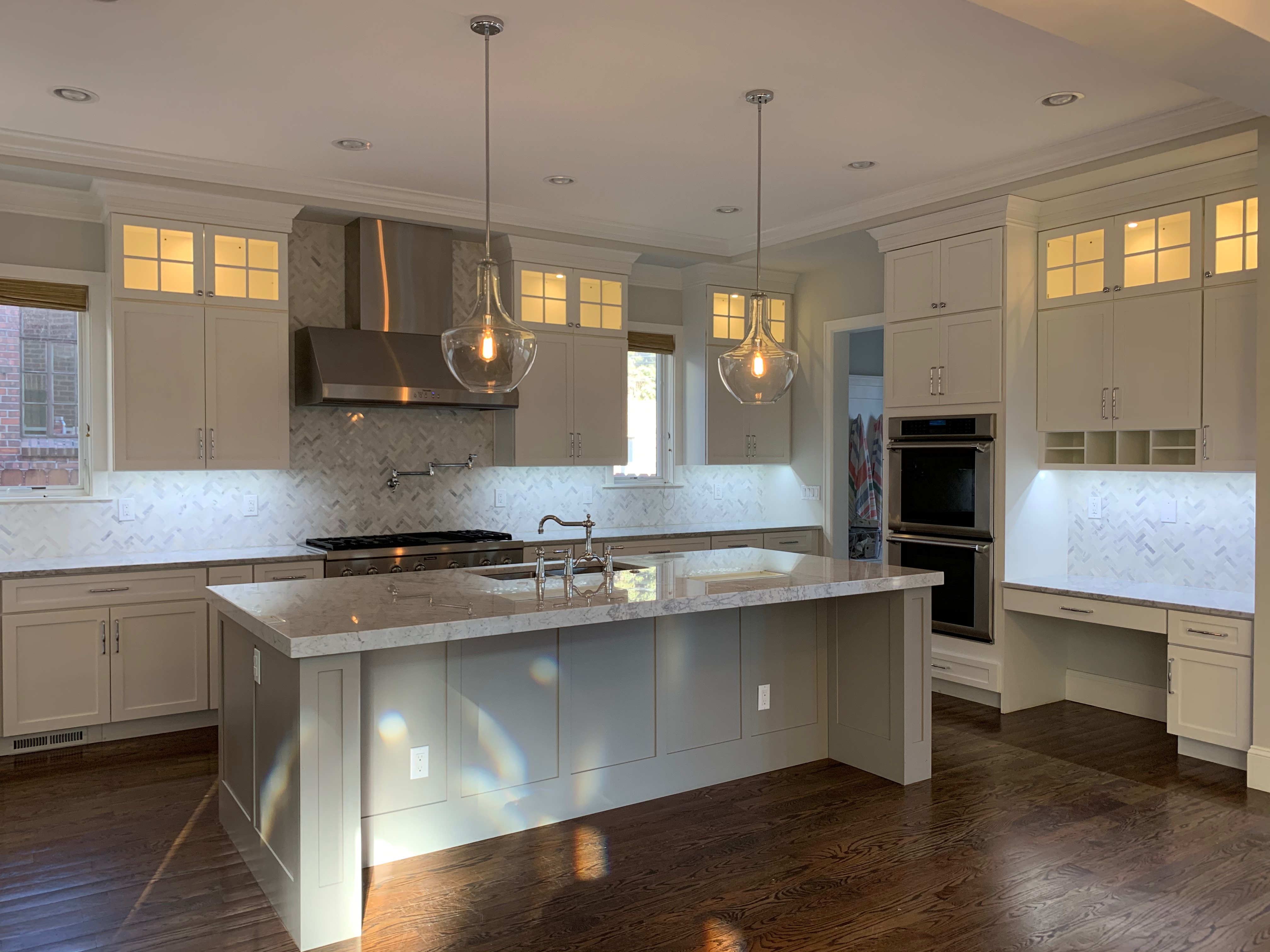 WALL CABINETS-The wall cabinets have puck lighting in the glass front cabinets