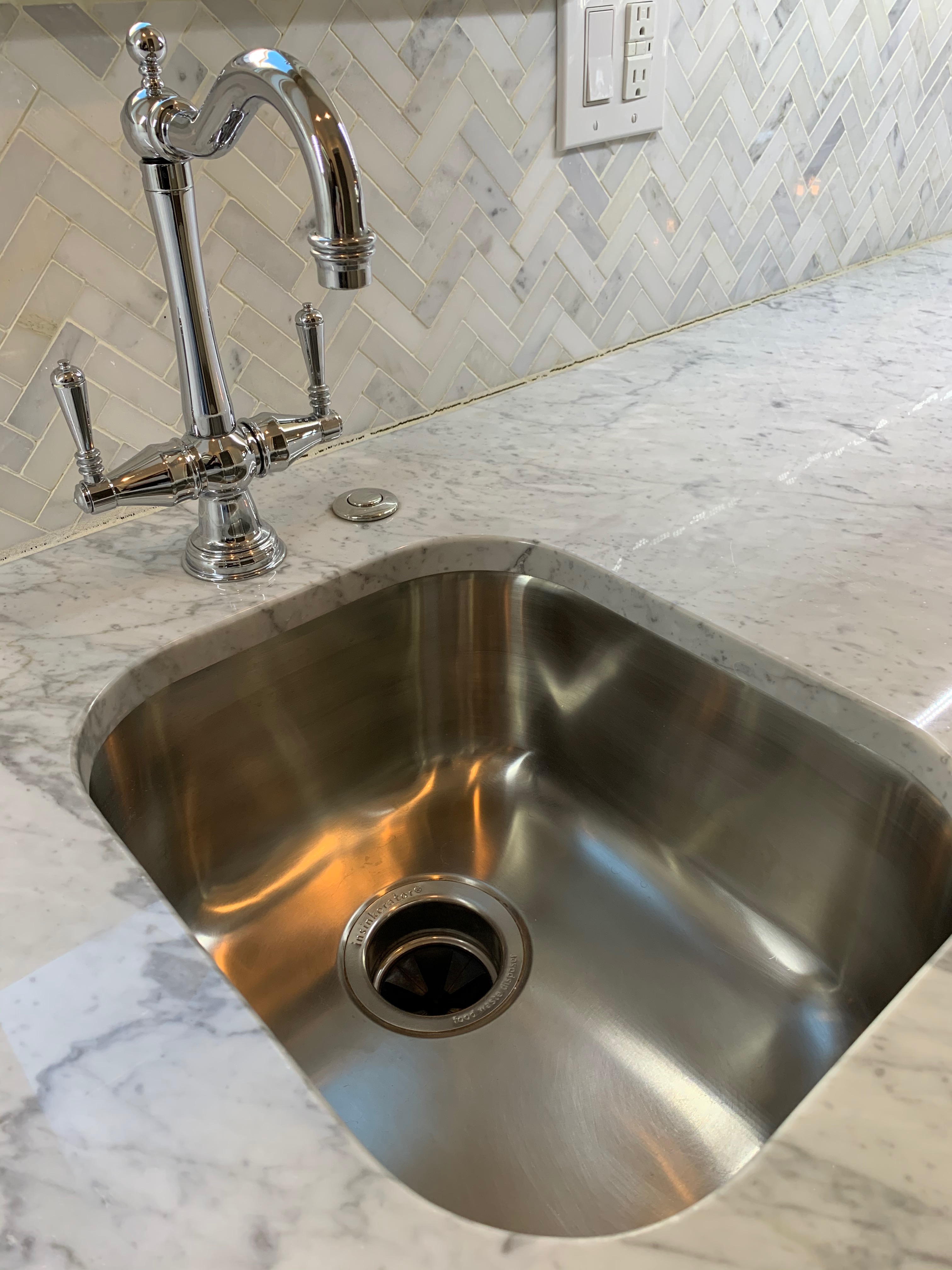 1-One false drawer, two door wet bar sink base Dim.: 27”w x 36”h x 24”d* Under mount sink 13”w x 15 ½ x 8 ½”, polished chrome faucet set, disposal