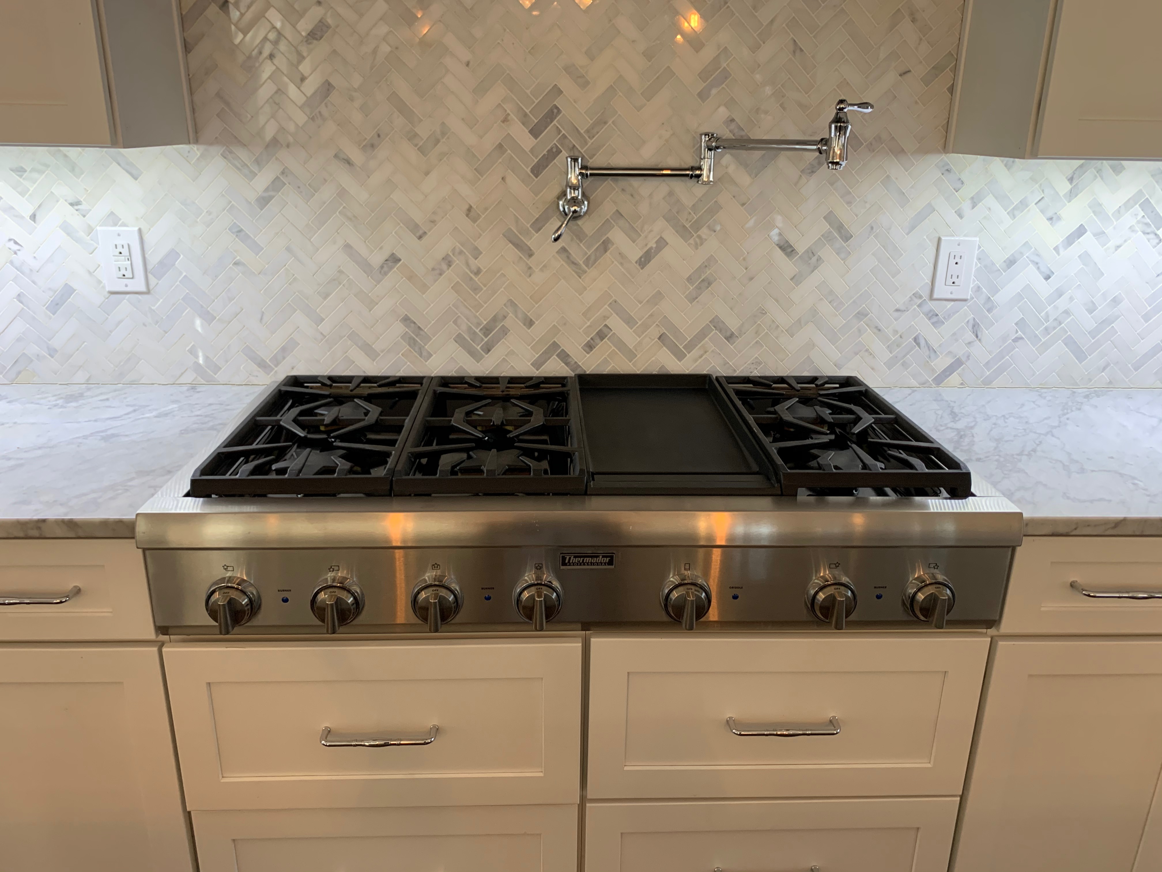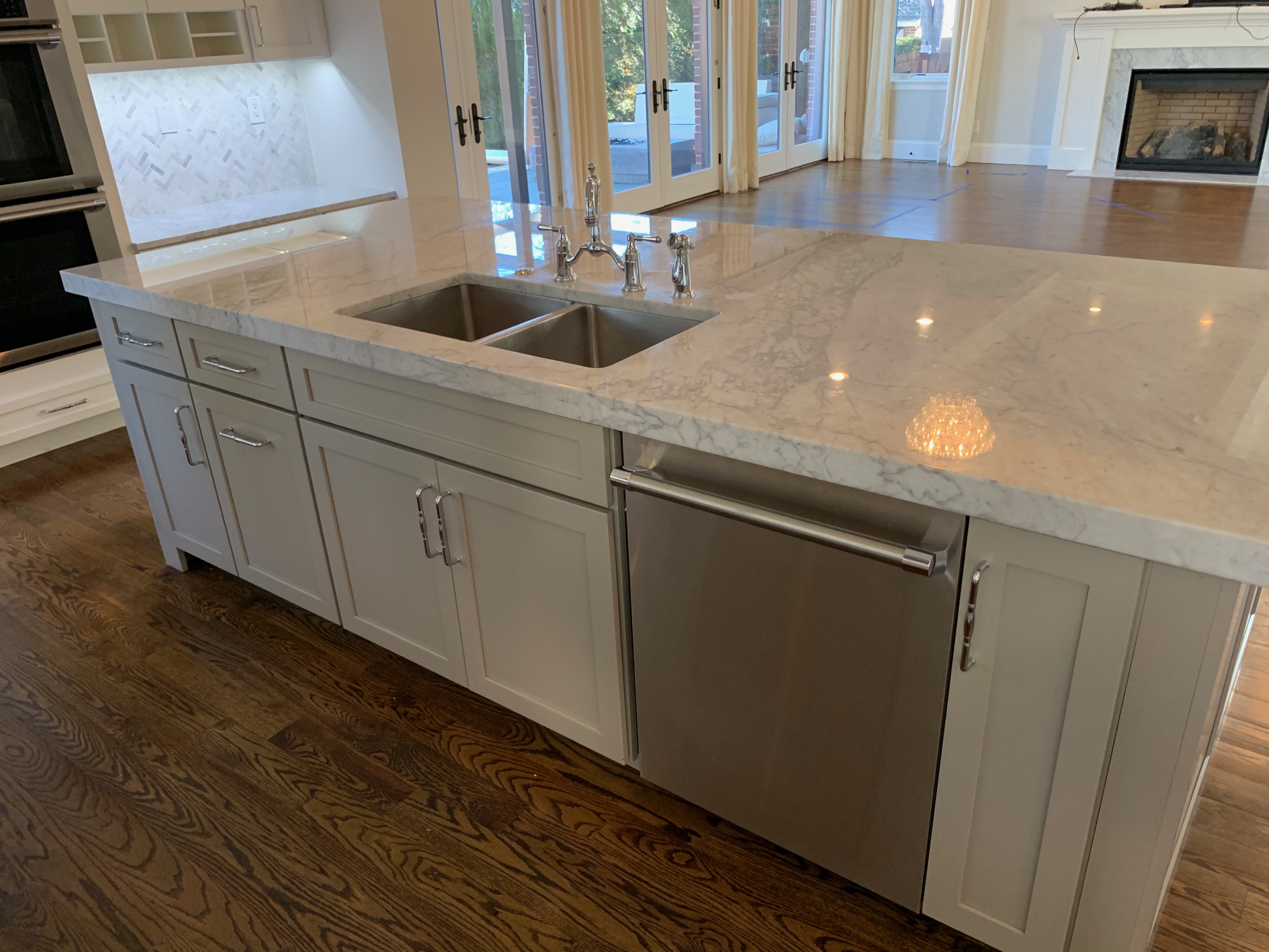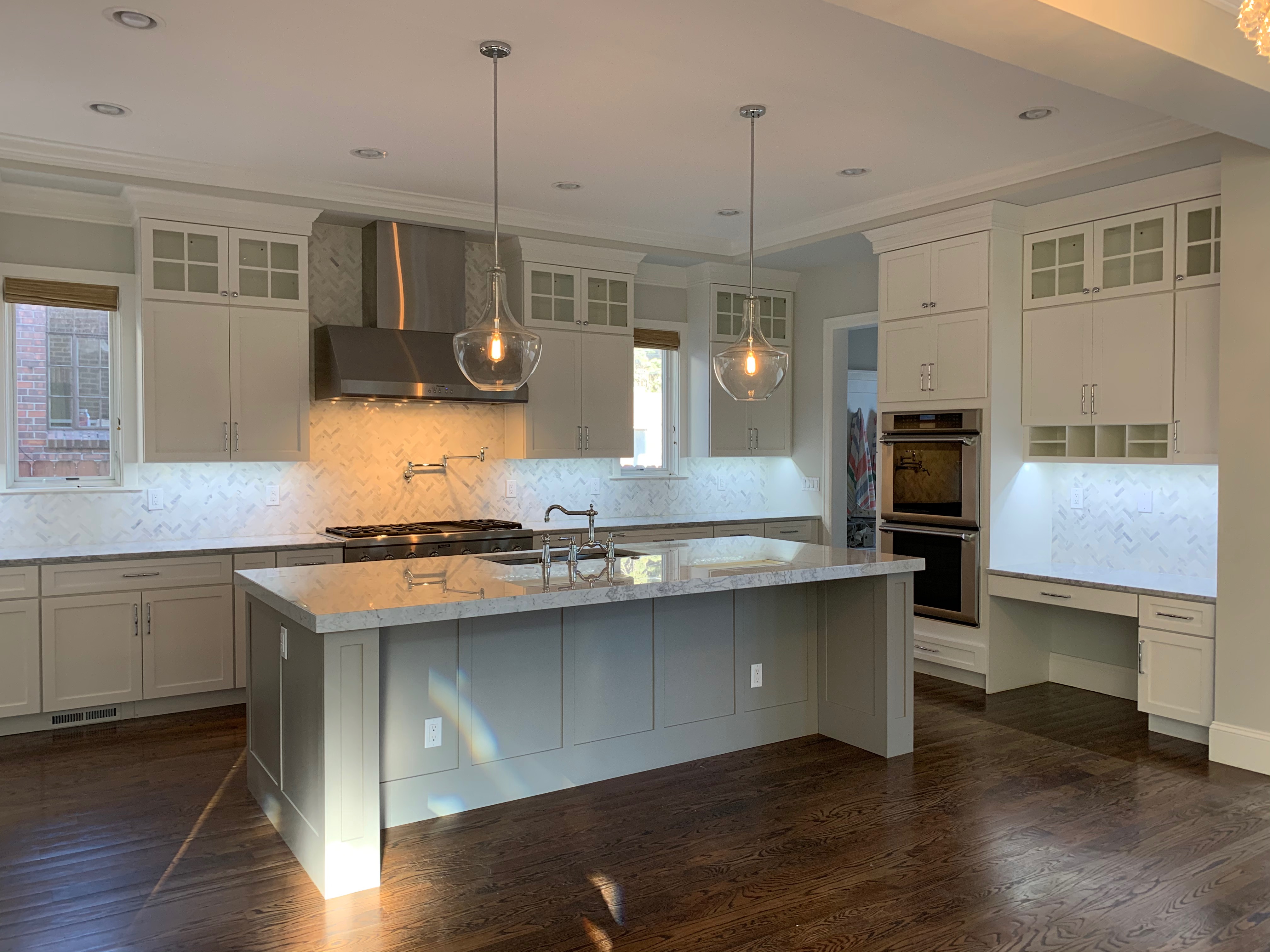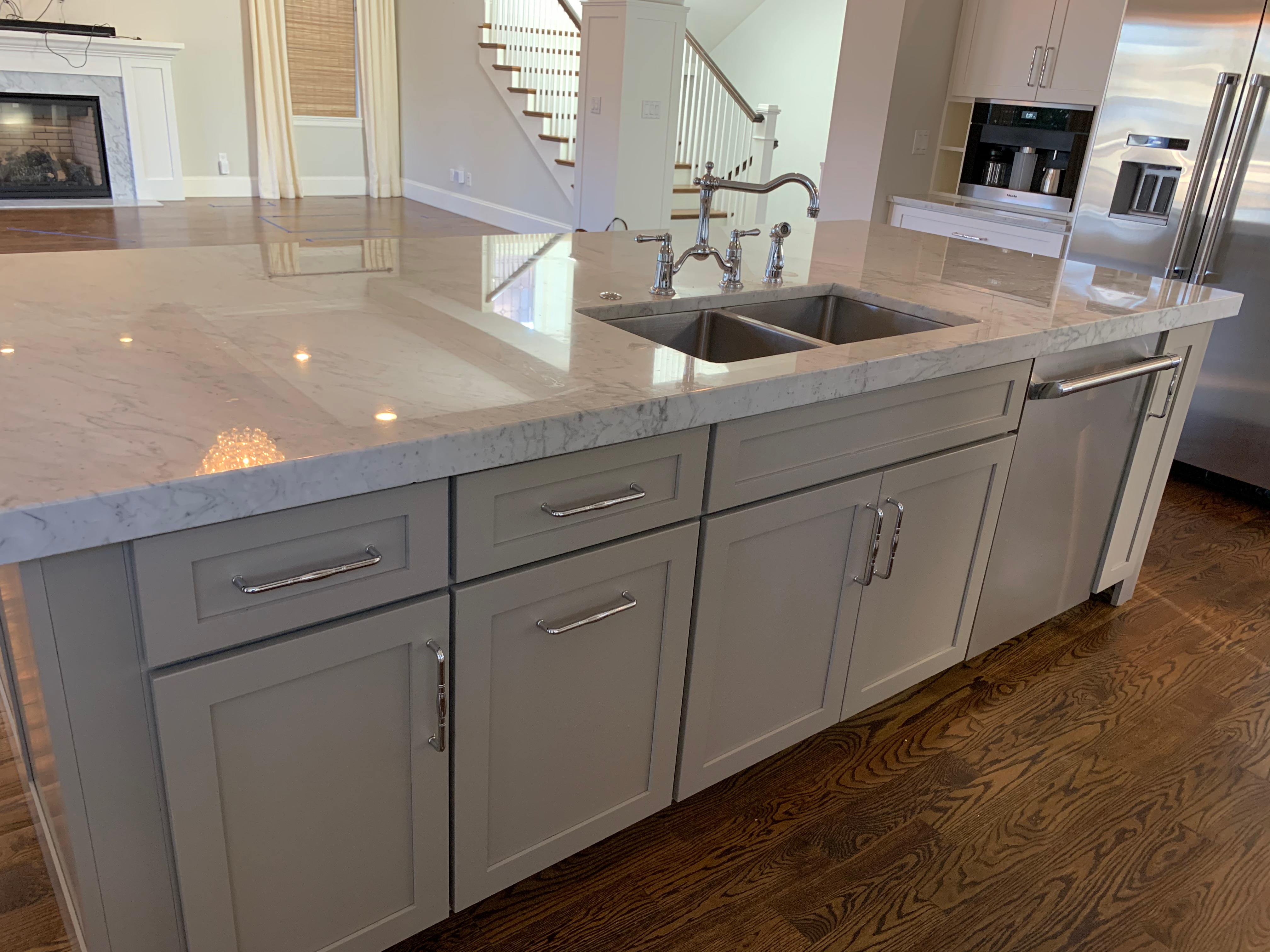 Stunning white Medallion Kitchen cabinets with contrasting light gray island cabinets, like new, only 6 years old! This deal is too good to be true that this newer kitchen package is available for resale. The cabinets are dovetail with soft close drawers. The kitchen has beautiful slab marble counter tops. High-end Appliances include Thermador stainless steel Refrigerator, Hood and dishwasher, ice maker, wine fridge, warming drawer and microwave drawer. The kitchen is available anytime. Sub-contractors are available to hire to remove the kitchen. Professional movers are also available to hire. Price for the package below.