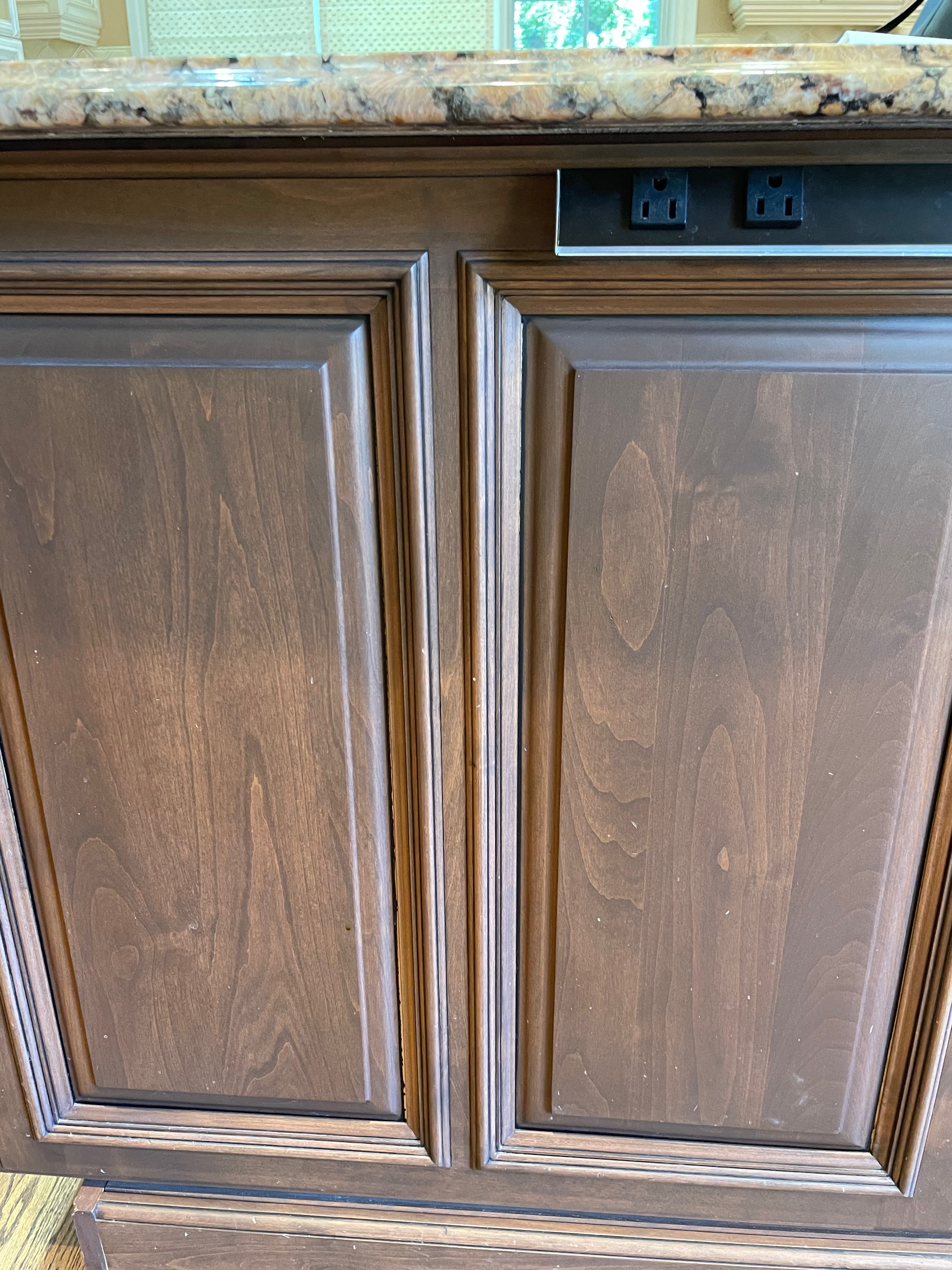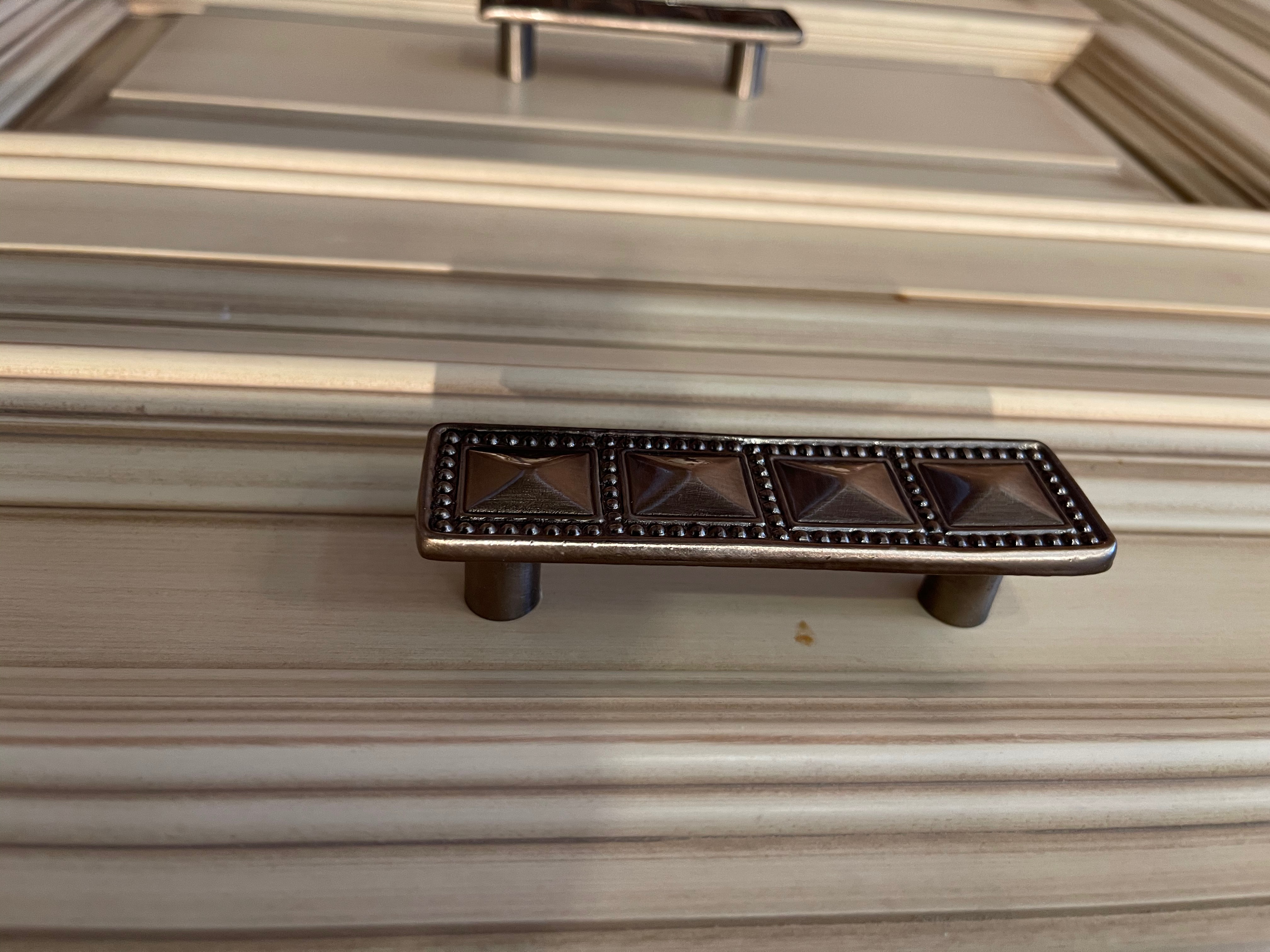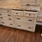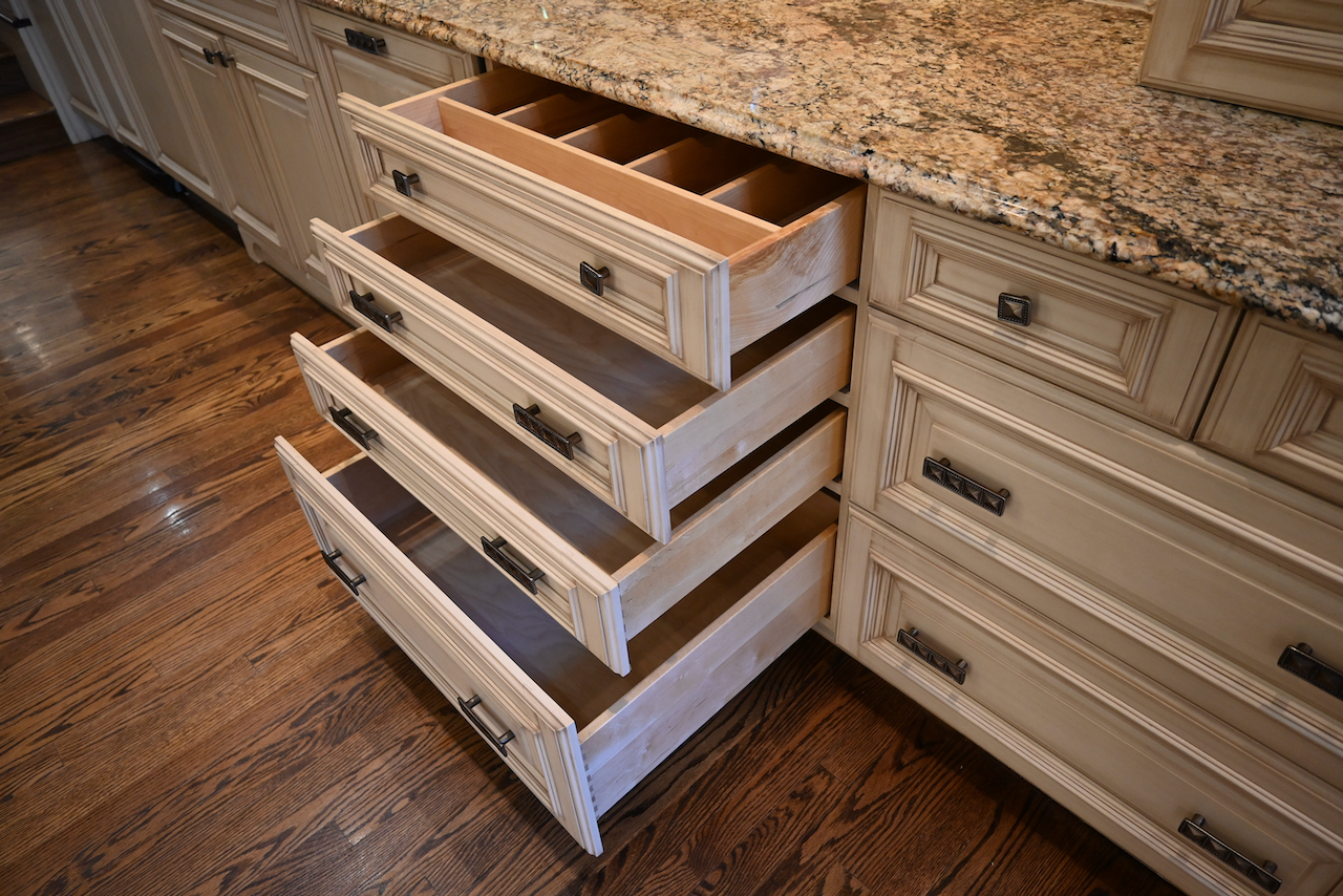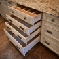2-Four drawer base cabinet the top two drawers on the left cabinet have wood utensil dividers and the top two drawers on the cabinet on the rt. have 2 wood spice racks Dim.: 28 ½”w x 36”h x 24”d
