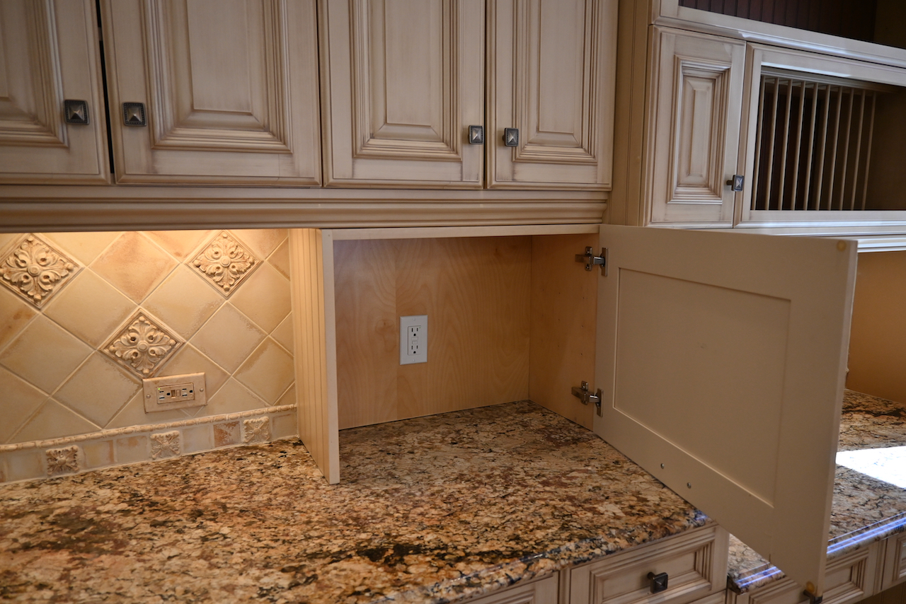 1-Four door wall cabinet to the right of the sink w/ appliance garage below Dim.: 24”w x 79 3/4"h x 12”d