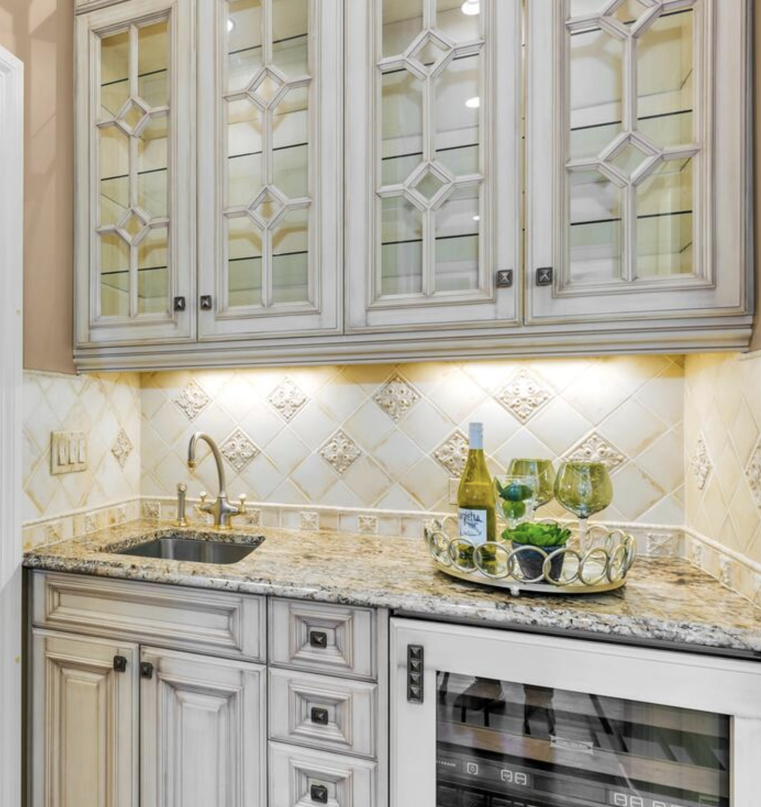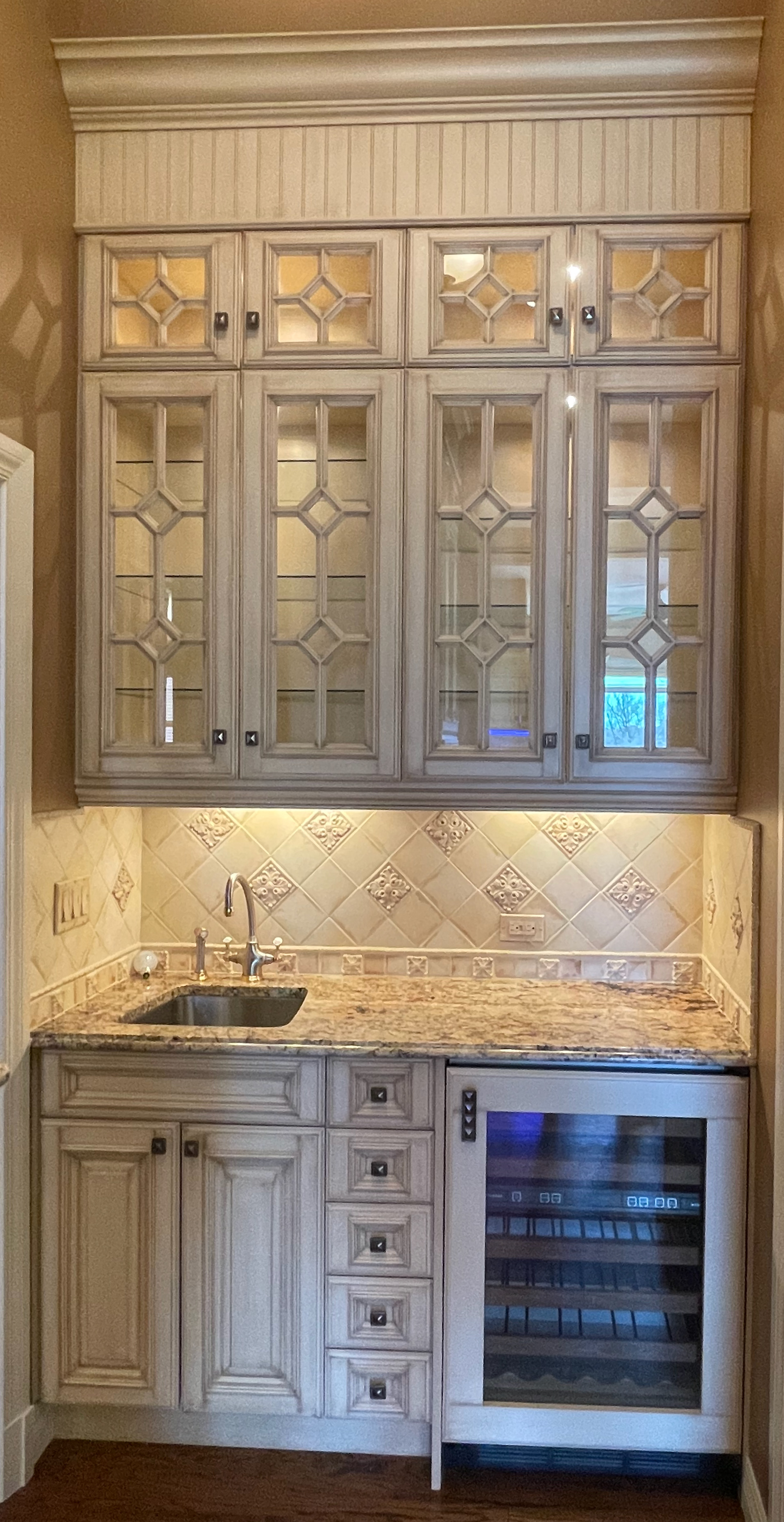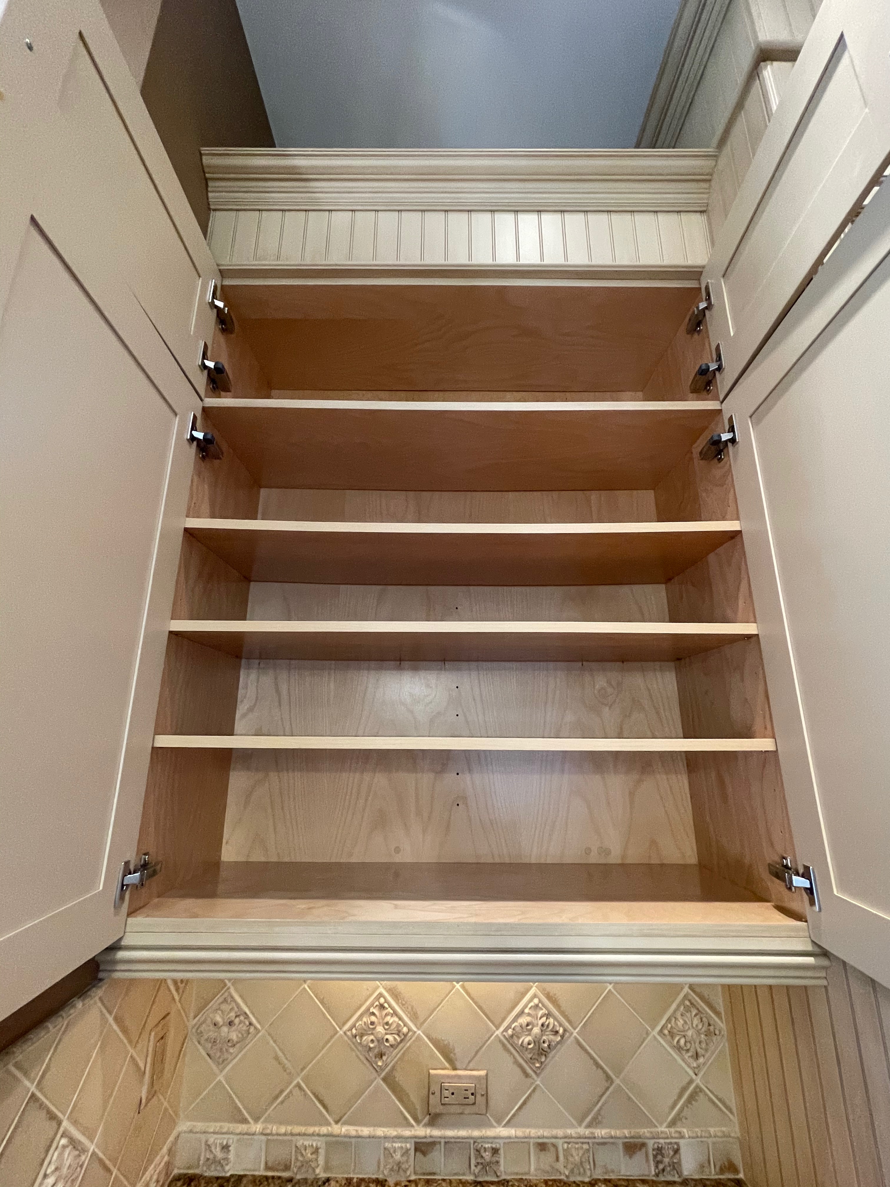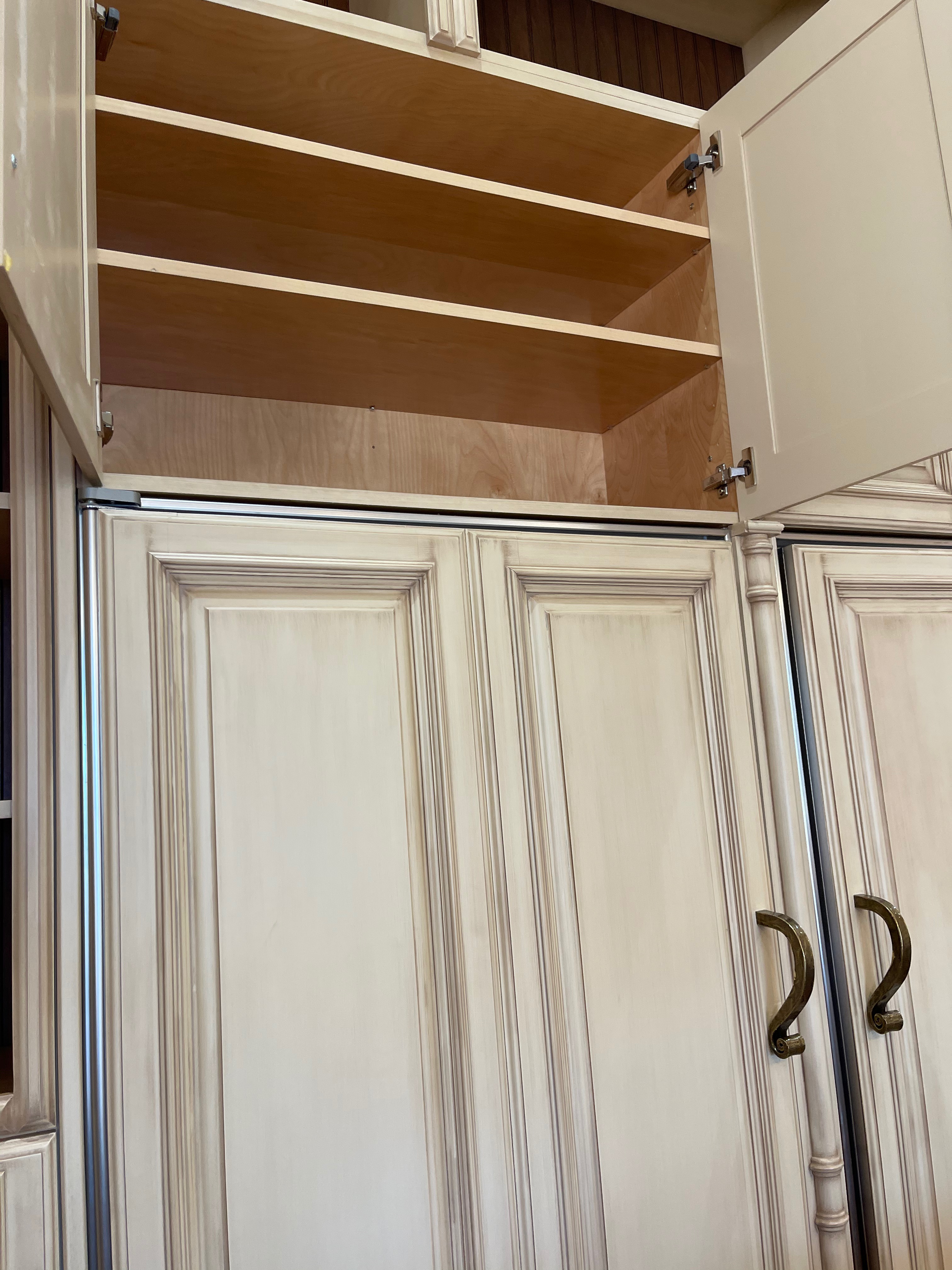 *The overall height of the shelving and the crown at the Refrigerator/freezer area 131”h