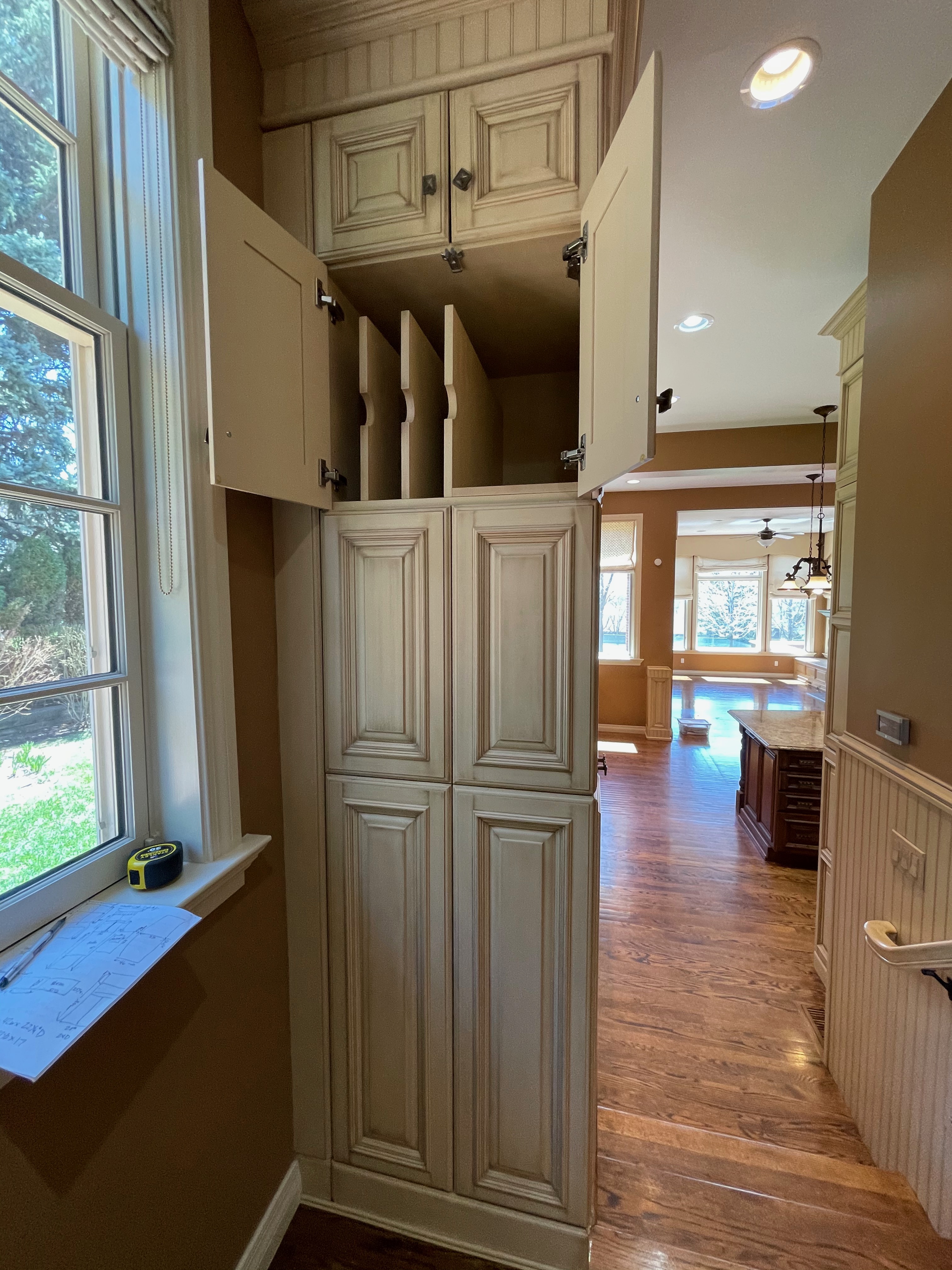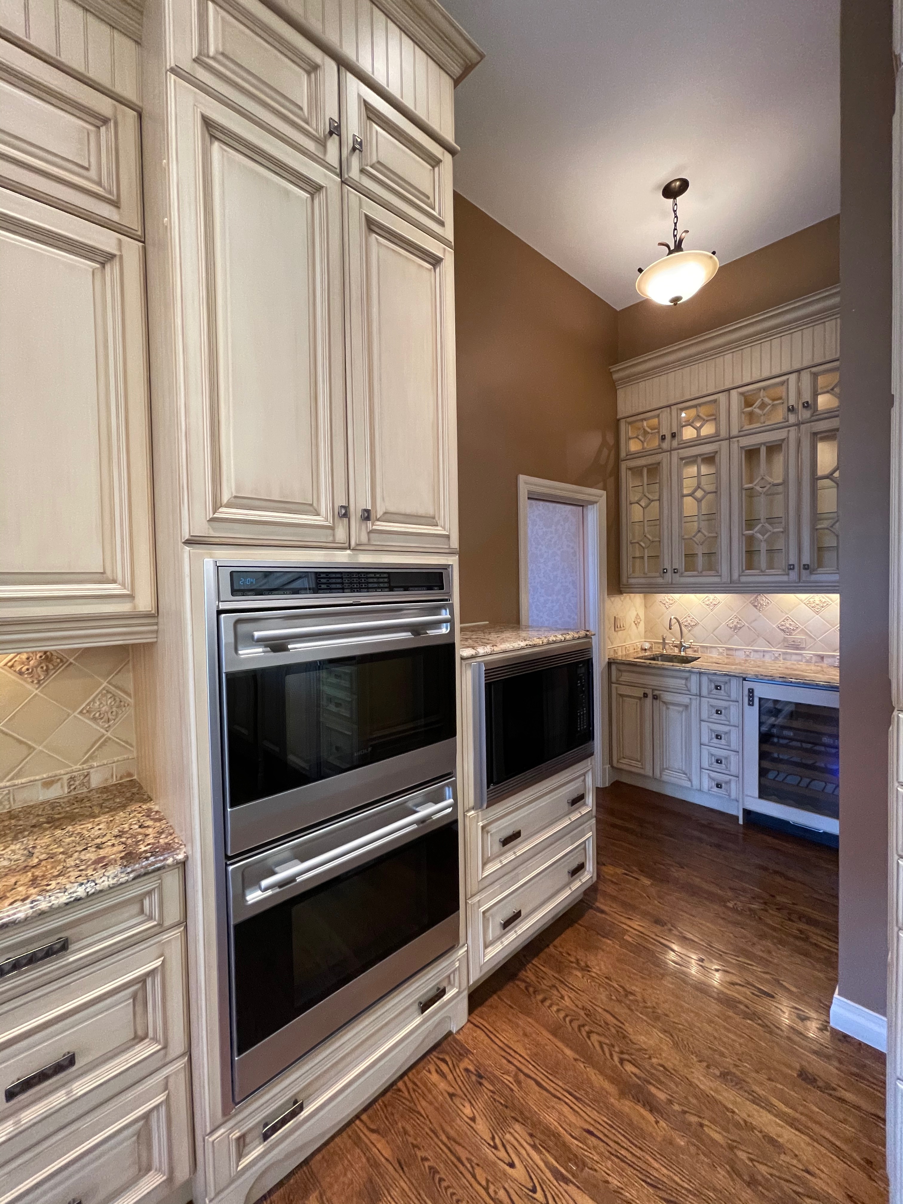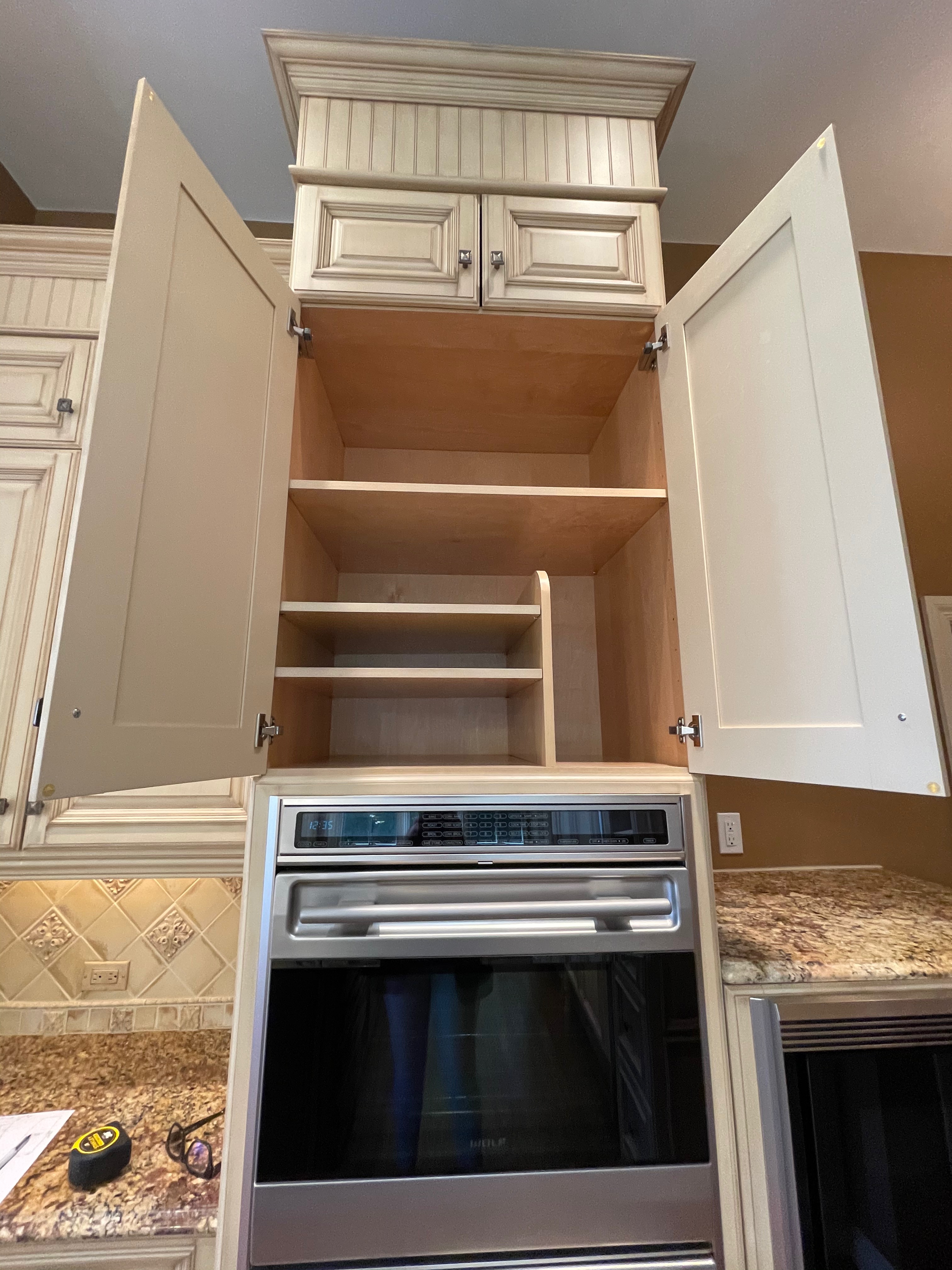 1-Four door, one drawer double oven cabinet Dim.:33” w x 114”h cab. only/ 126”h w/crown x 24”d