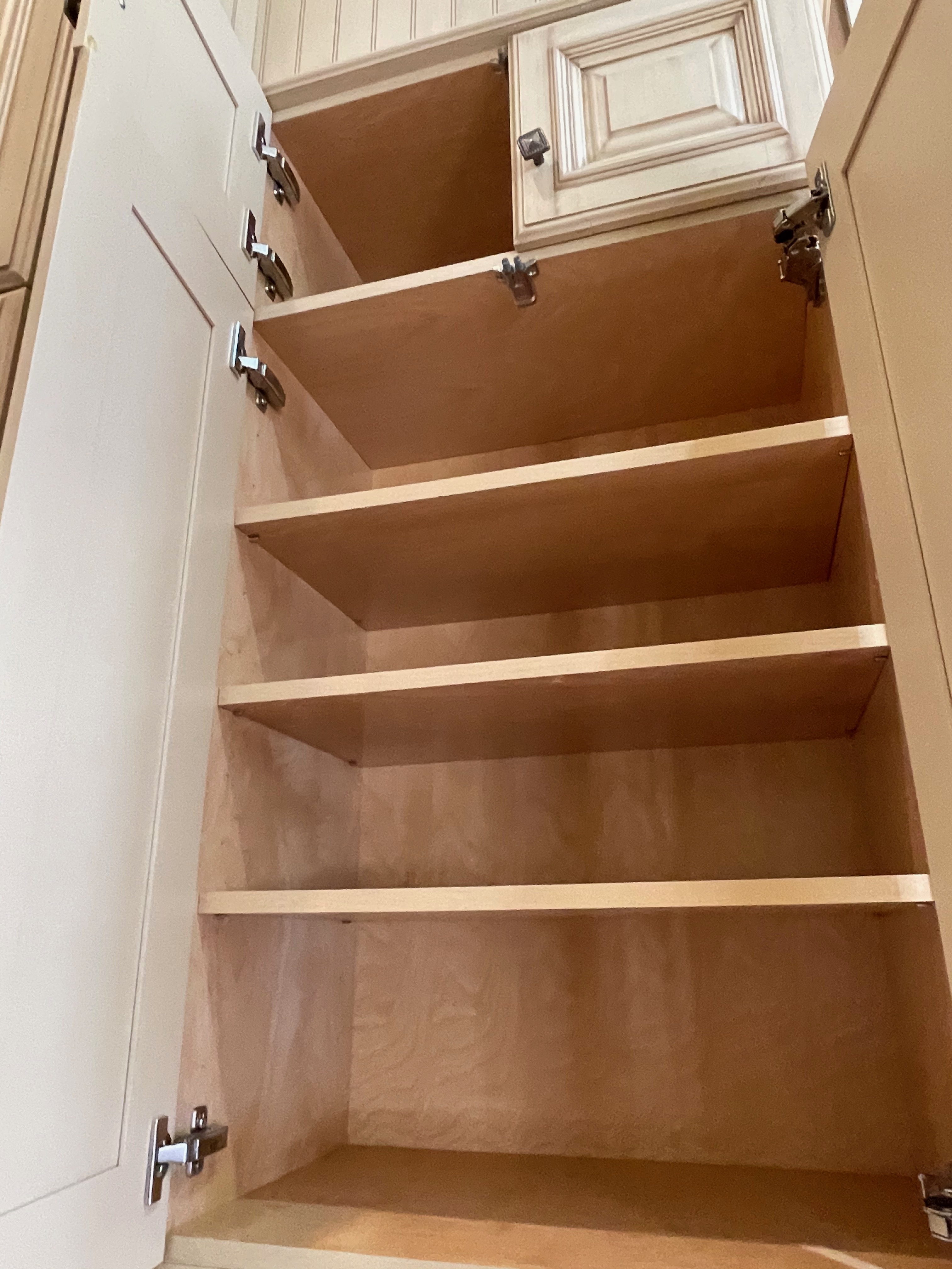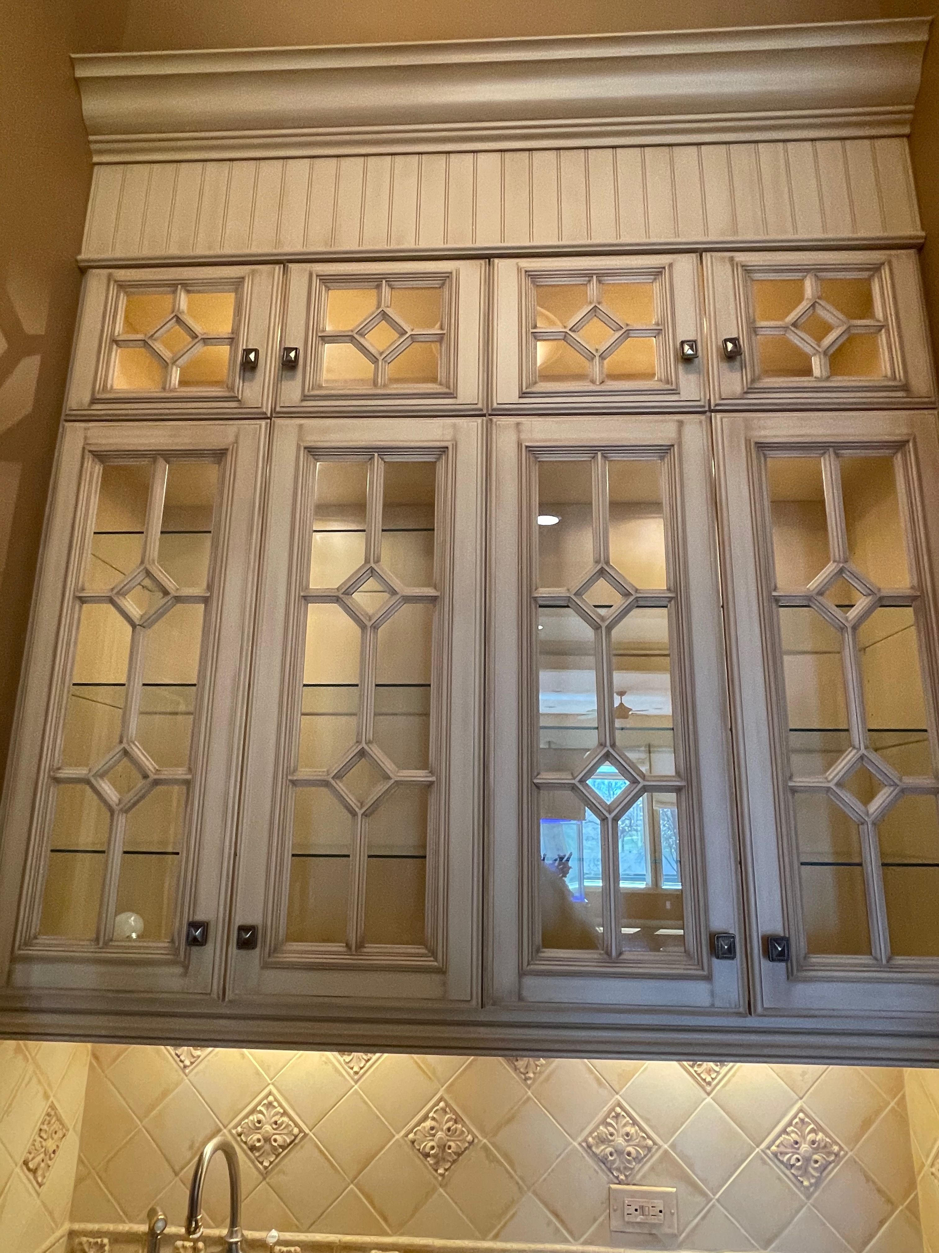 1-Four door wall cabinet to the right of the sink Dim.: 24”w x 61 ½”h w/ crown x 12”d