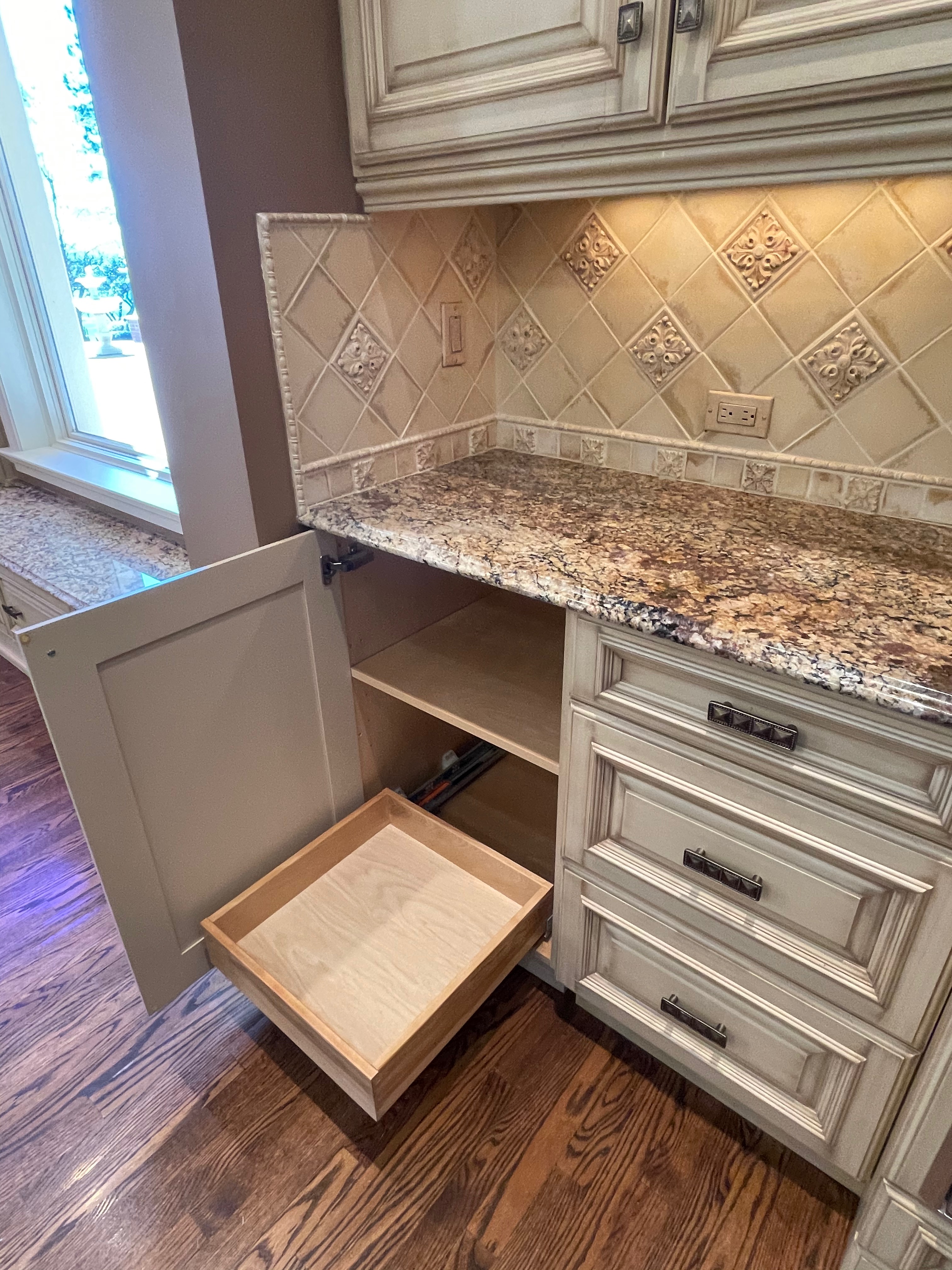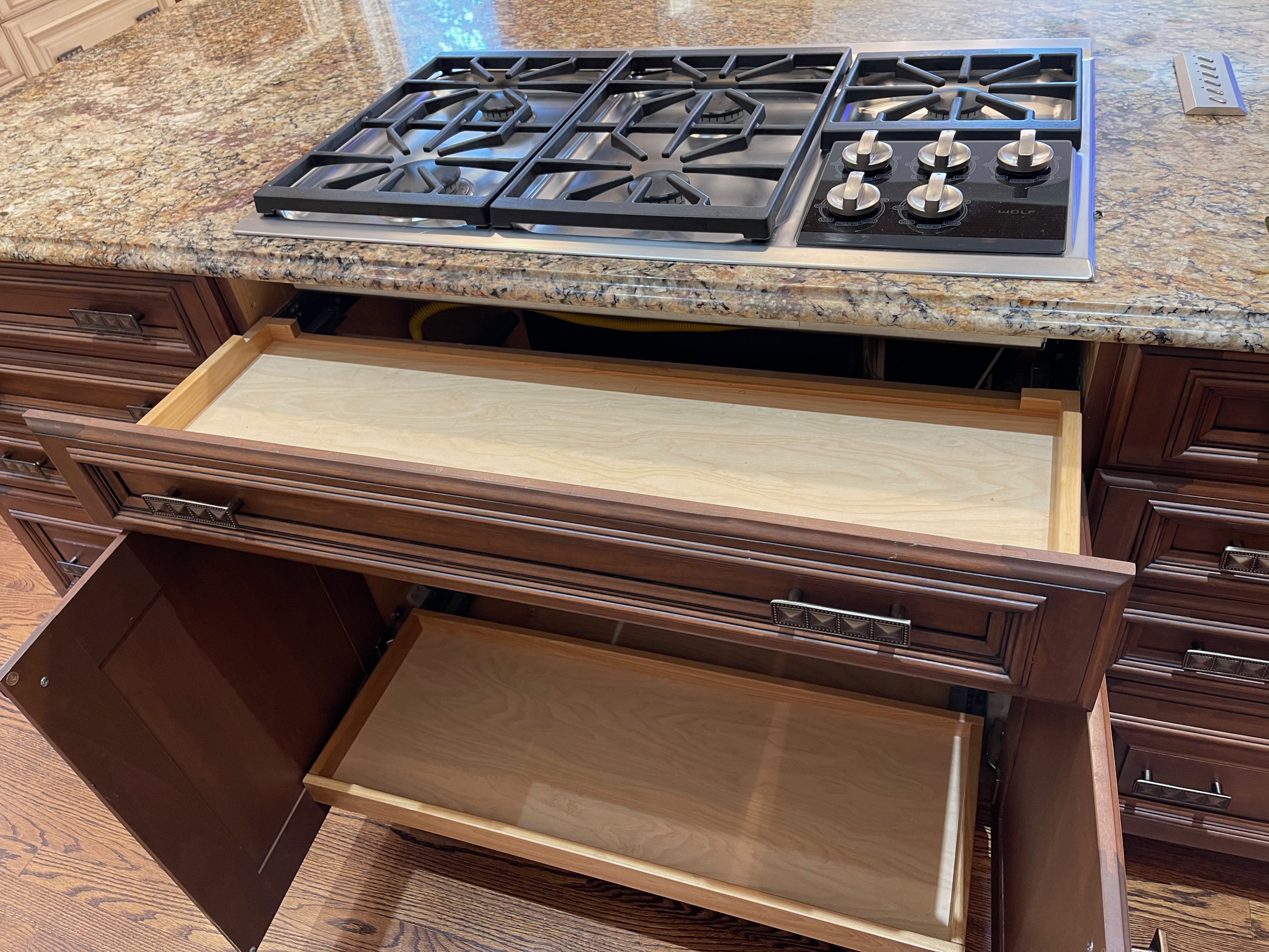 1-One drawer, Two door cooktop base w/ pull out drawer inside Dim.: 39”w x 36”h x 24”d