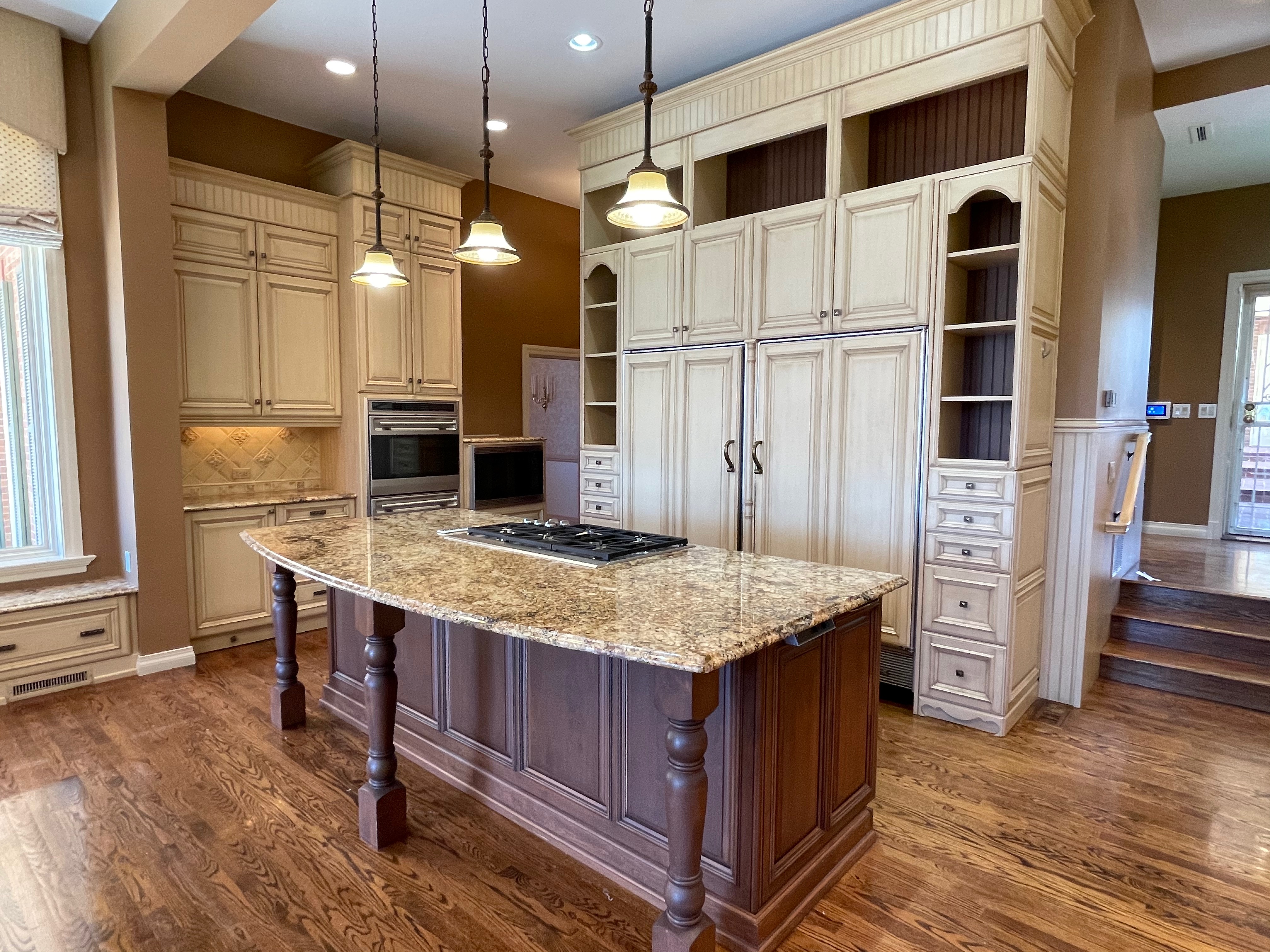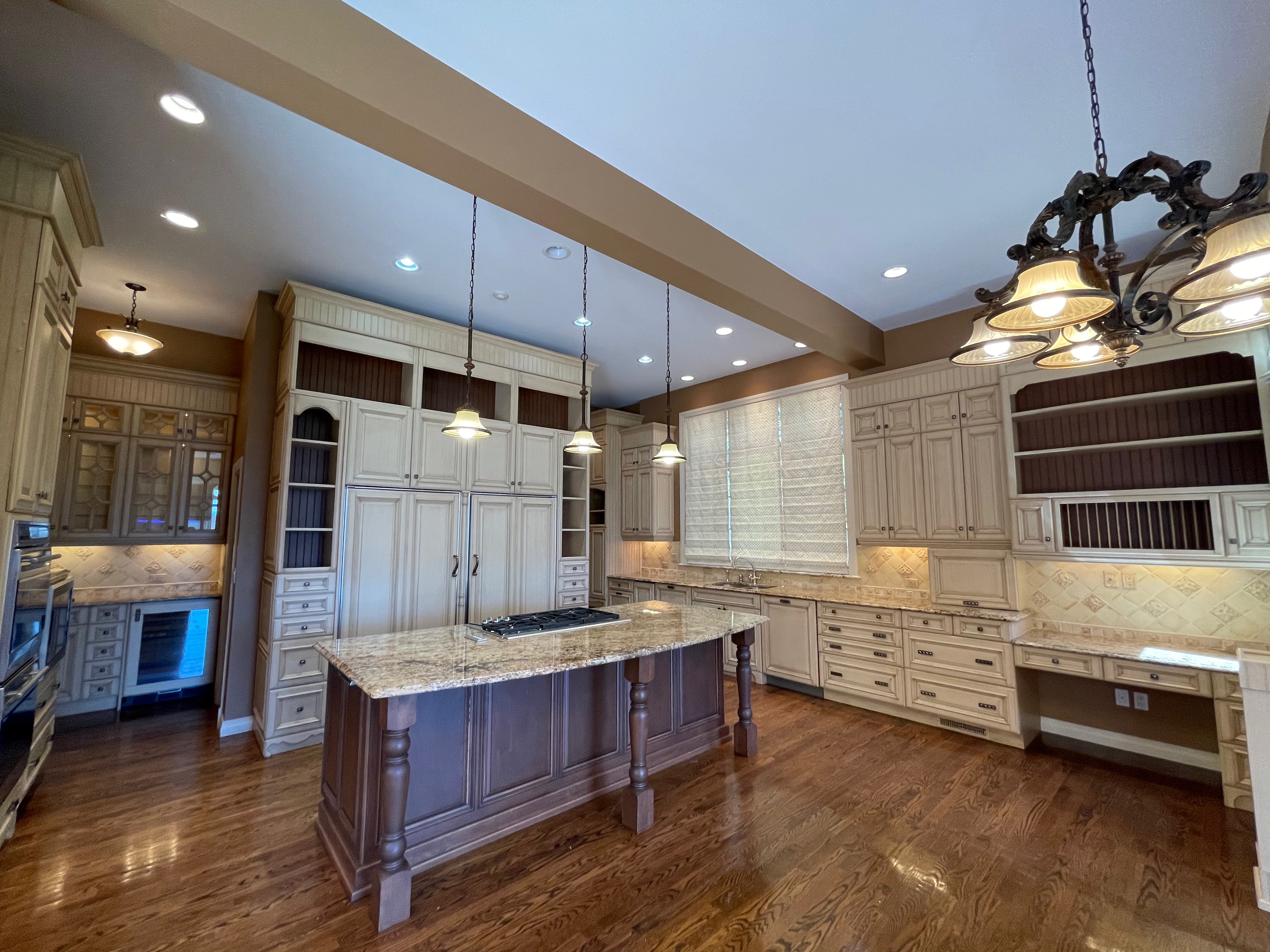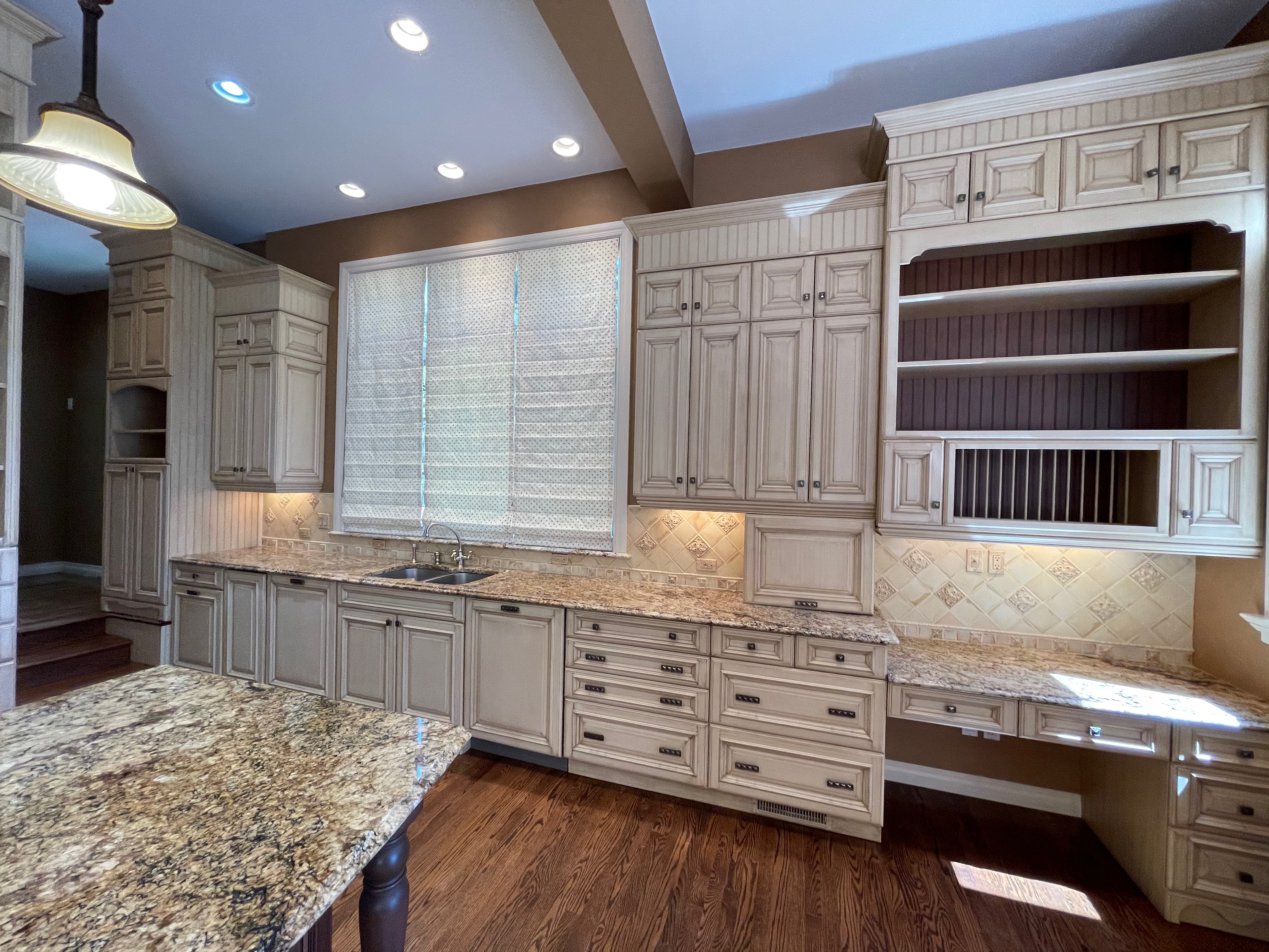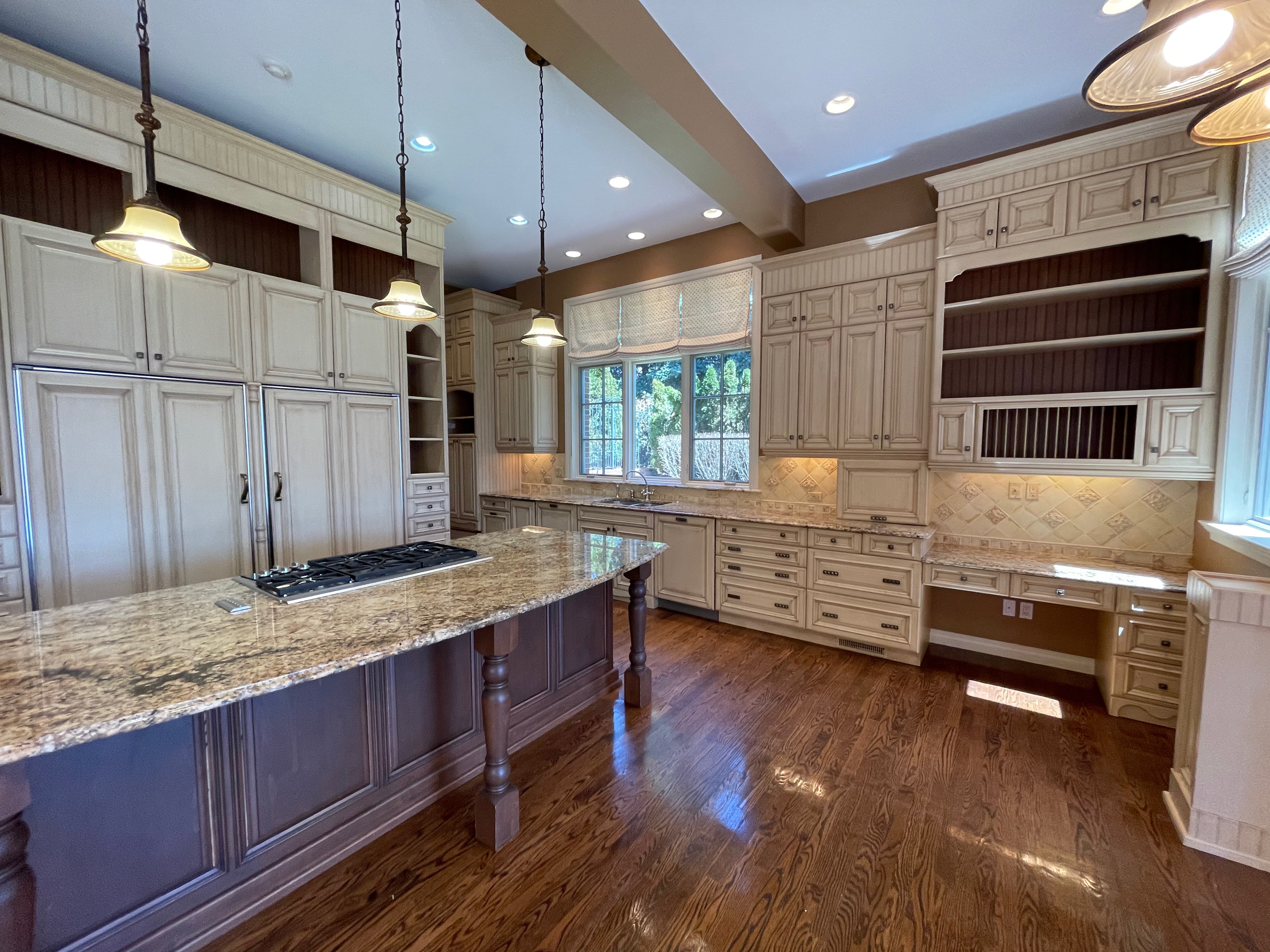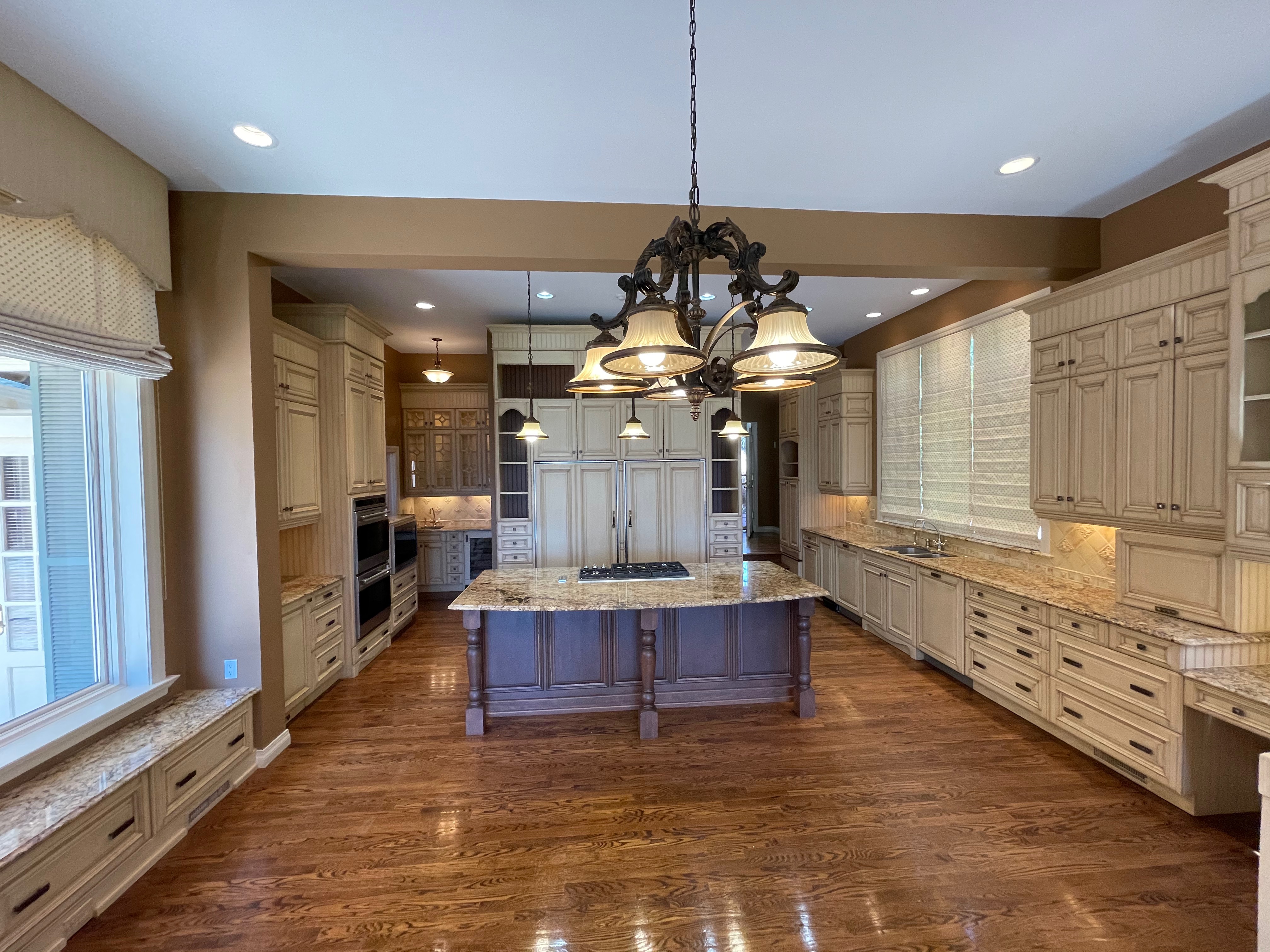 Amazing Deal! Beautiful “Cuisines Laurier” superior quality custom built kitchen cabinetry made in Quebec, Canada. These beautiful French country style kitchen cabinets are in excellent condition with dove tail drawers, soft close and plywood boxes. This is an amazing deal for this level of high quality cabinetry paid $100k+! There is a contrasting stained wood island with a Wolf gas cooktop and Wolf downdraft. Gorgeous slab granite counter tops, sinks, faucet sets and lighting included. There are matching window seat cabinets with storage that are included in the package. The photos don't do this kitchen justice! The kitchen can be modified to fit a 8' or 9' ceiling. Cabinet drawings can be emailed. The kitchen can be removed by a qualified buyer anytime or licensed sub-contractors are available to hire for the removal anytime! Must go by the end of September! Price for the package below.