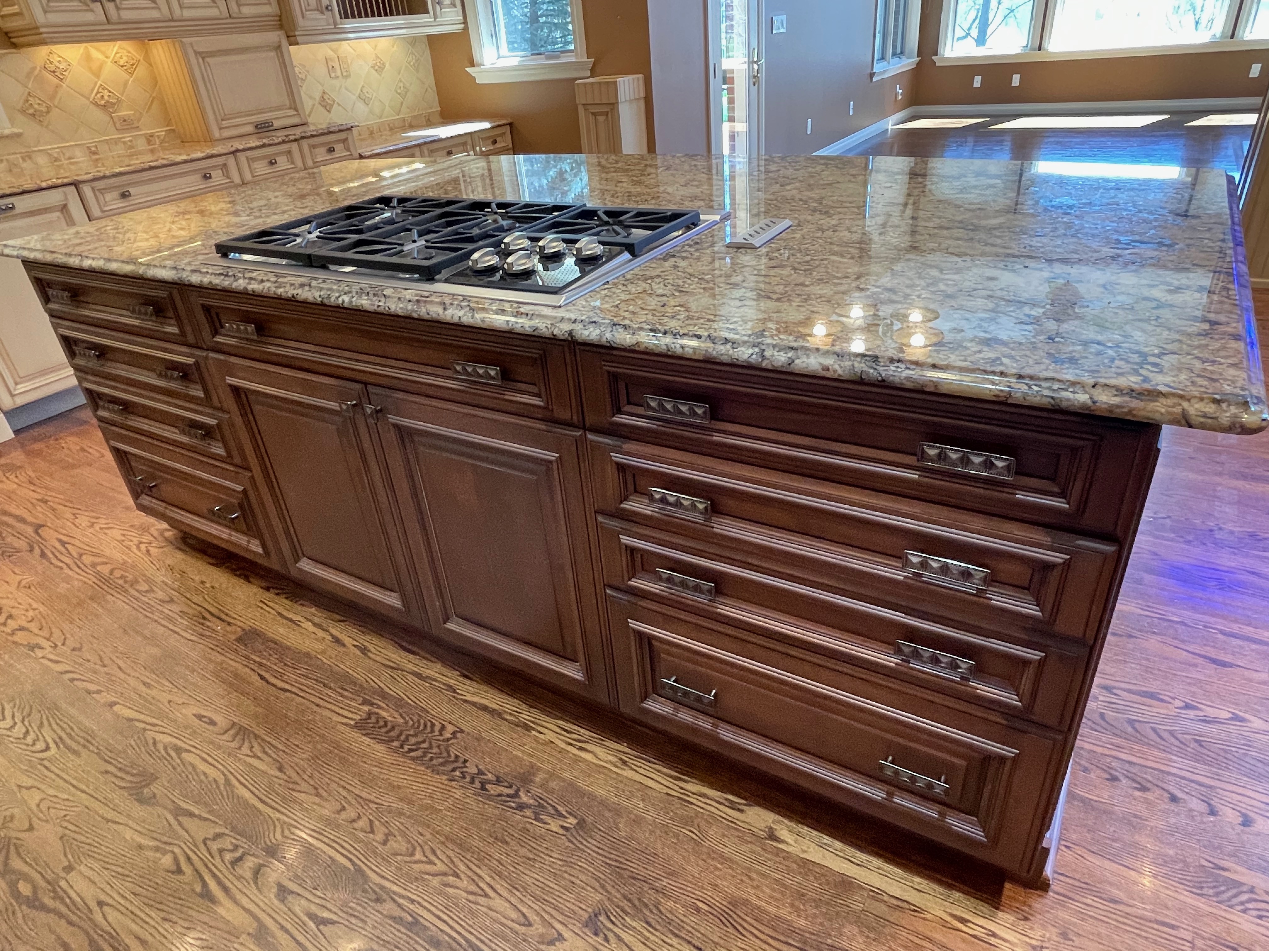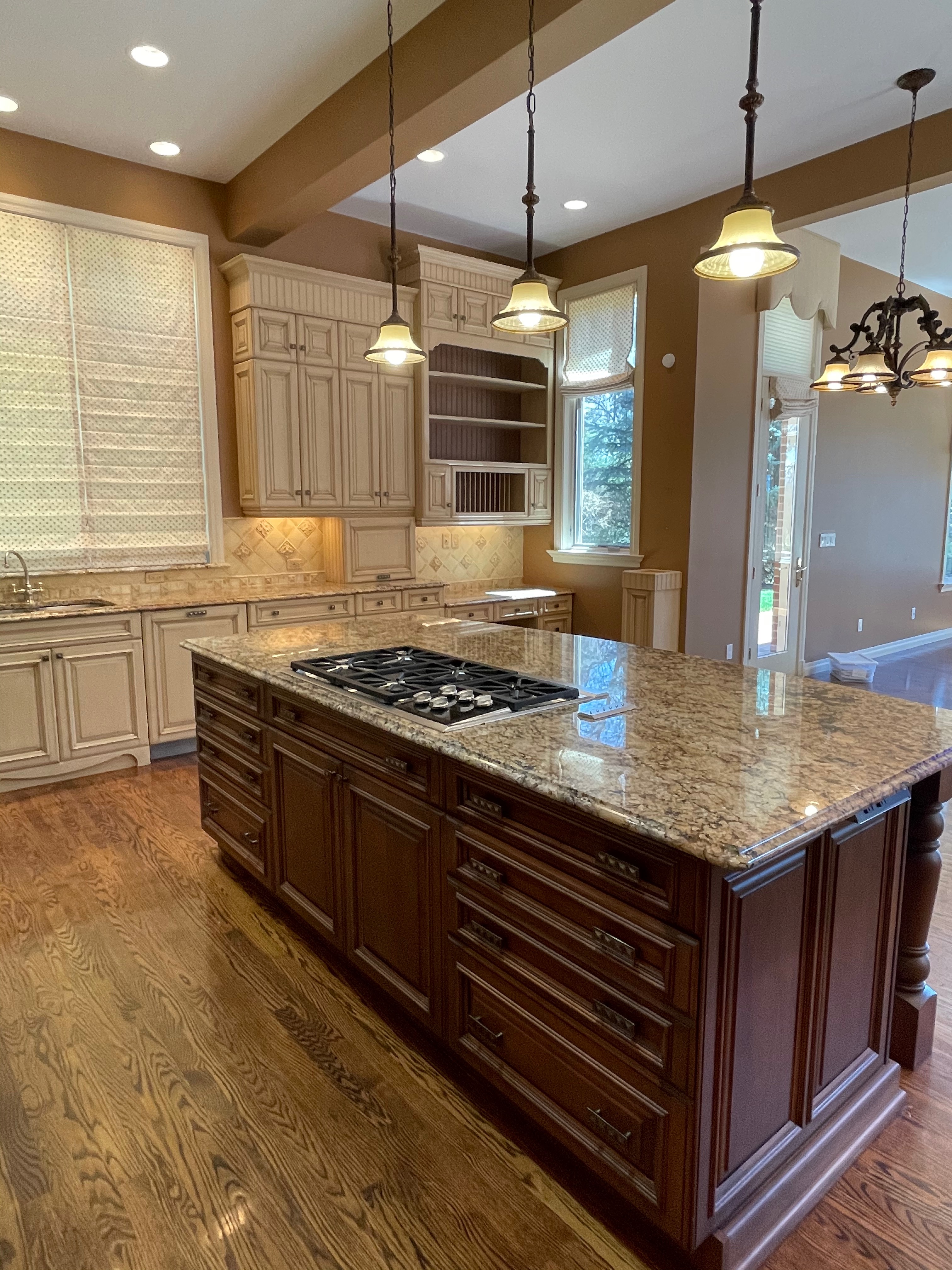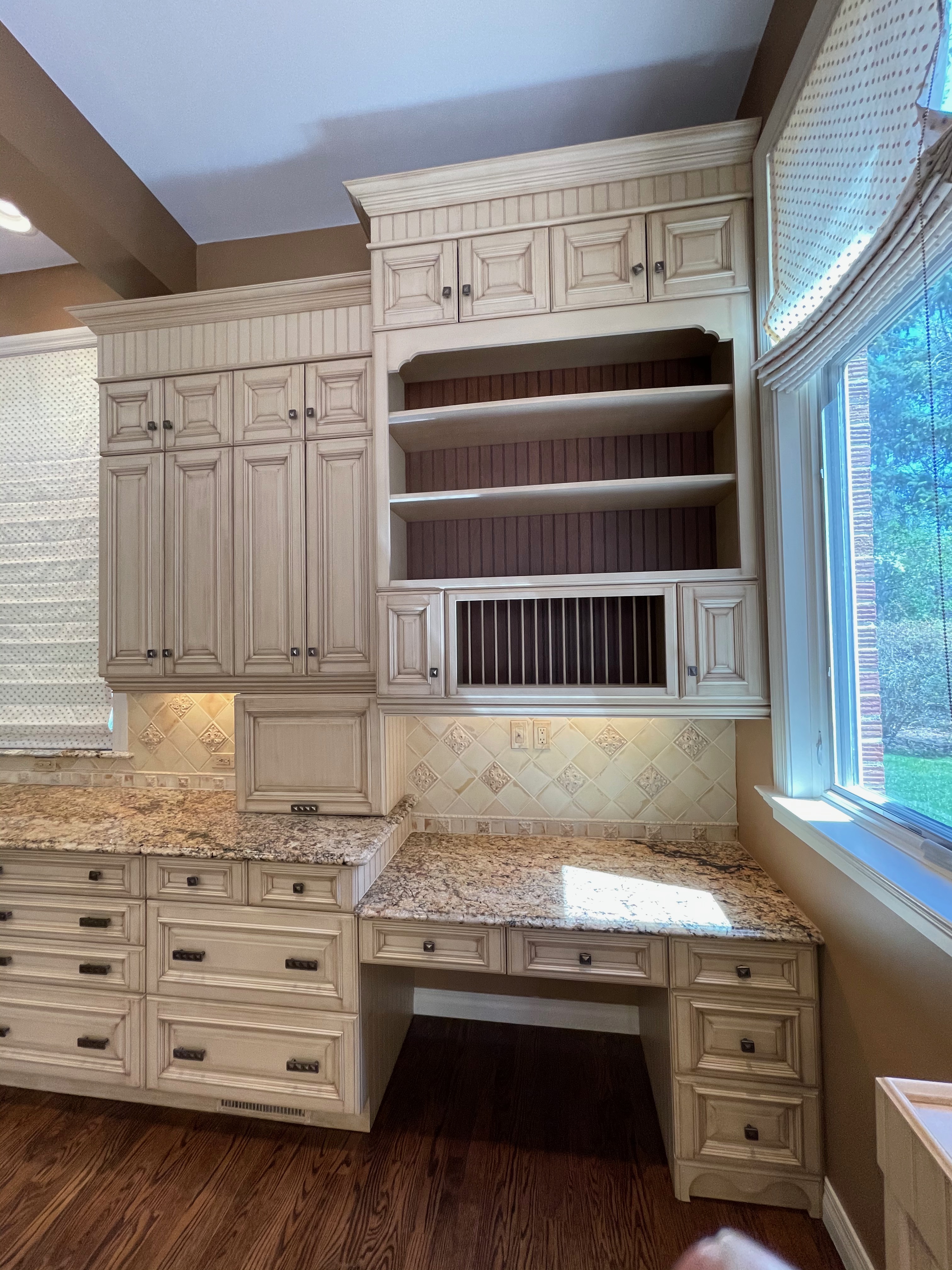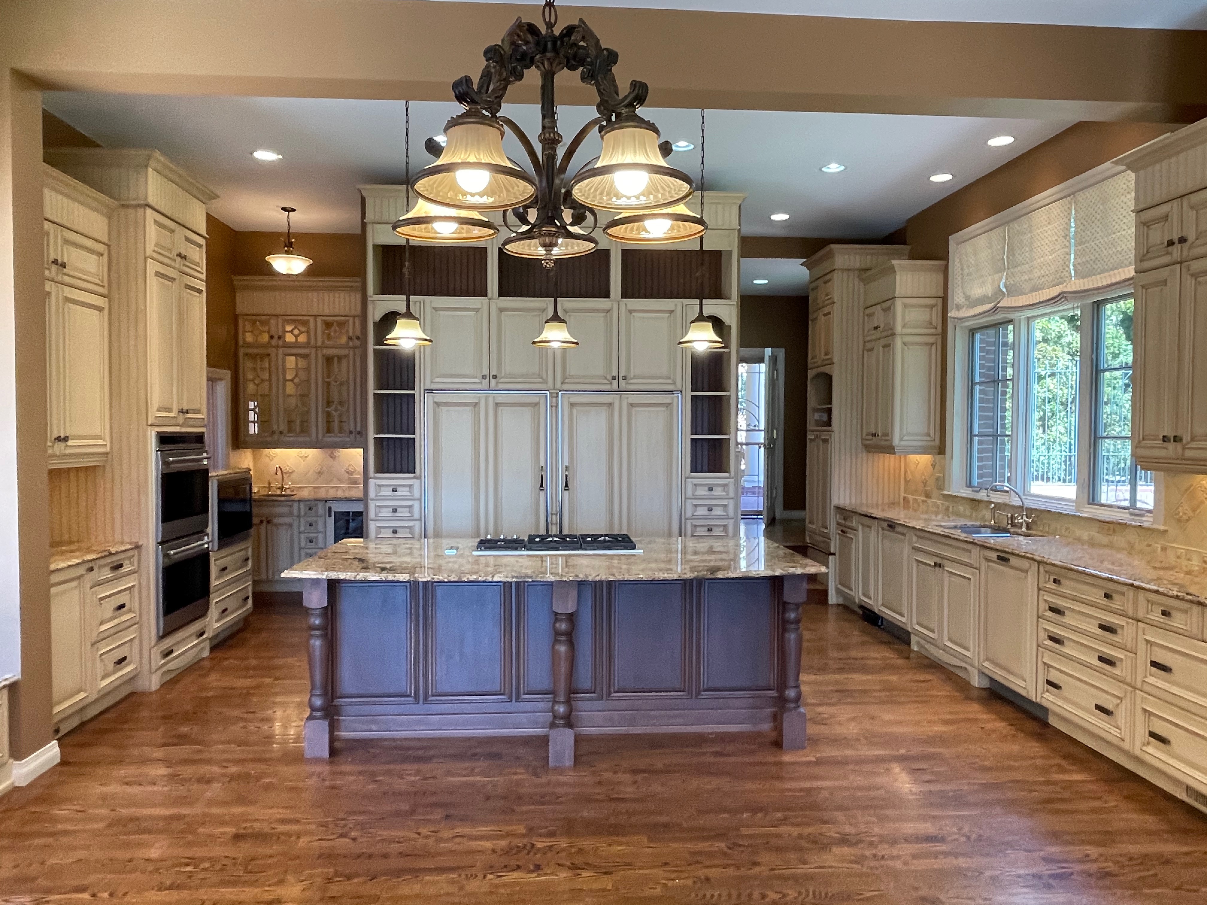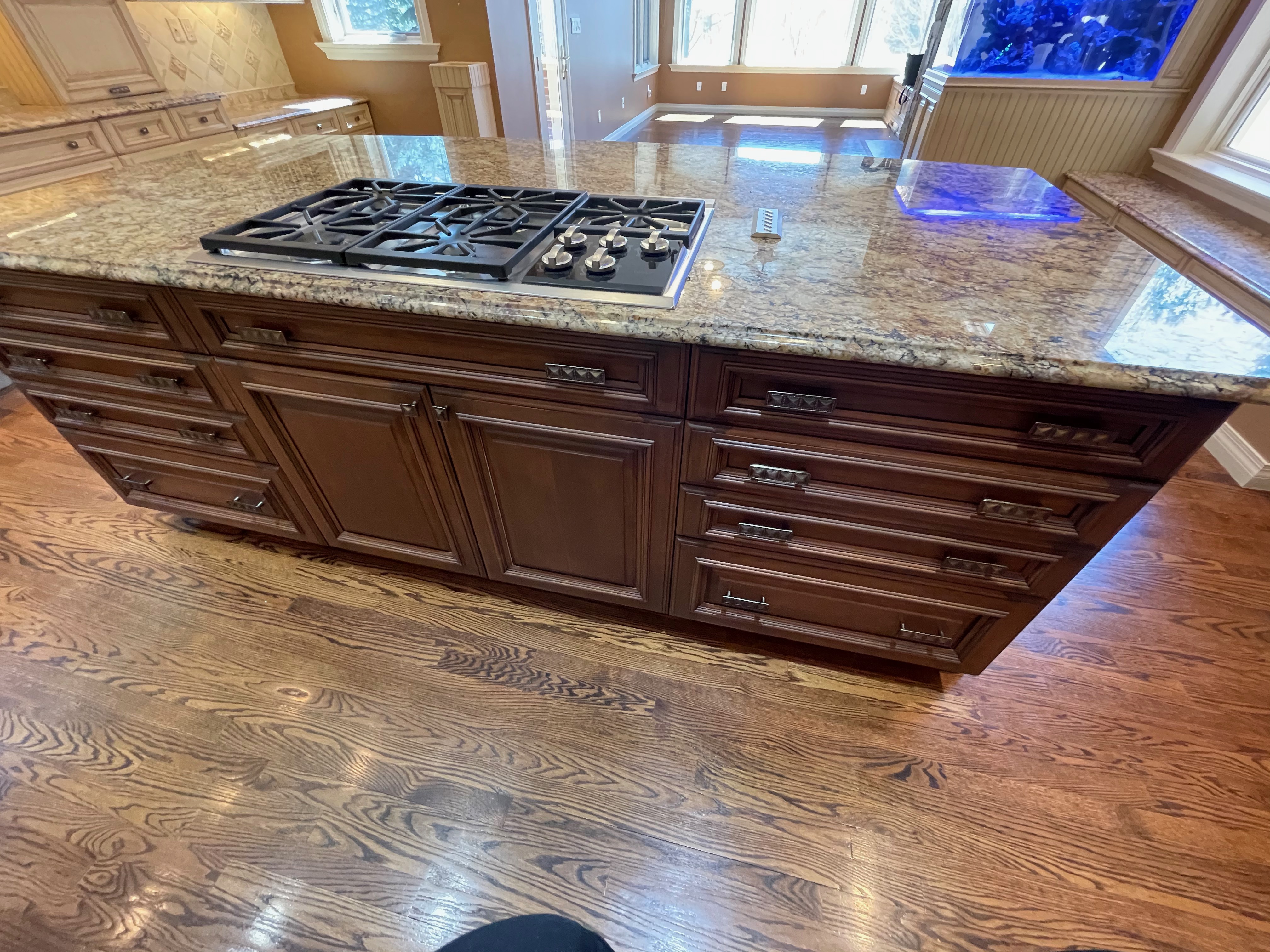 Amazing Deal! Beautiful “Cuisines Laurier” superior quality custom built kitchen cabinetry made in Quebec, Canada. These beautiful French country style kitchen cabinets are in excellent condition with dove tail drawers, soft close and plywood boxes. This is an amazing deal for this level of high quality cabinetry paid $100k+! There is a contrasting stained wood island with a Wolf gas cooktop and Wolf downdraft. Gorgeous slab granite counter tops, sinks, faucet sets and lighting included. There are matching window seat cabinets with storage that are included in the package. The photos don't do this kitchen justice! The kitchen can be modified to fit a 8' or 9' ceiling. Cabinet drawings can be emailed. The kitchen can be removed by a qualified buyer anytime or licensed sub-contractors are available to hire for the removal anytime! Must go by the end of September! Price for the package below.
