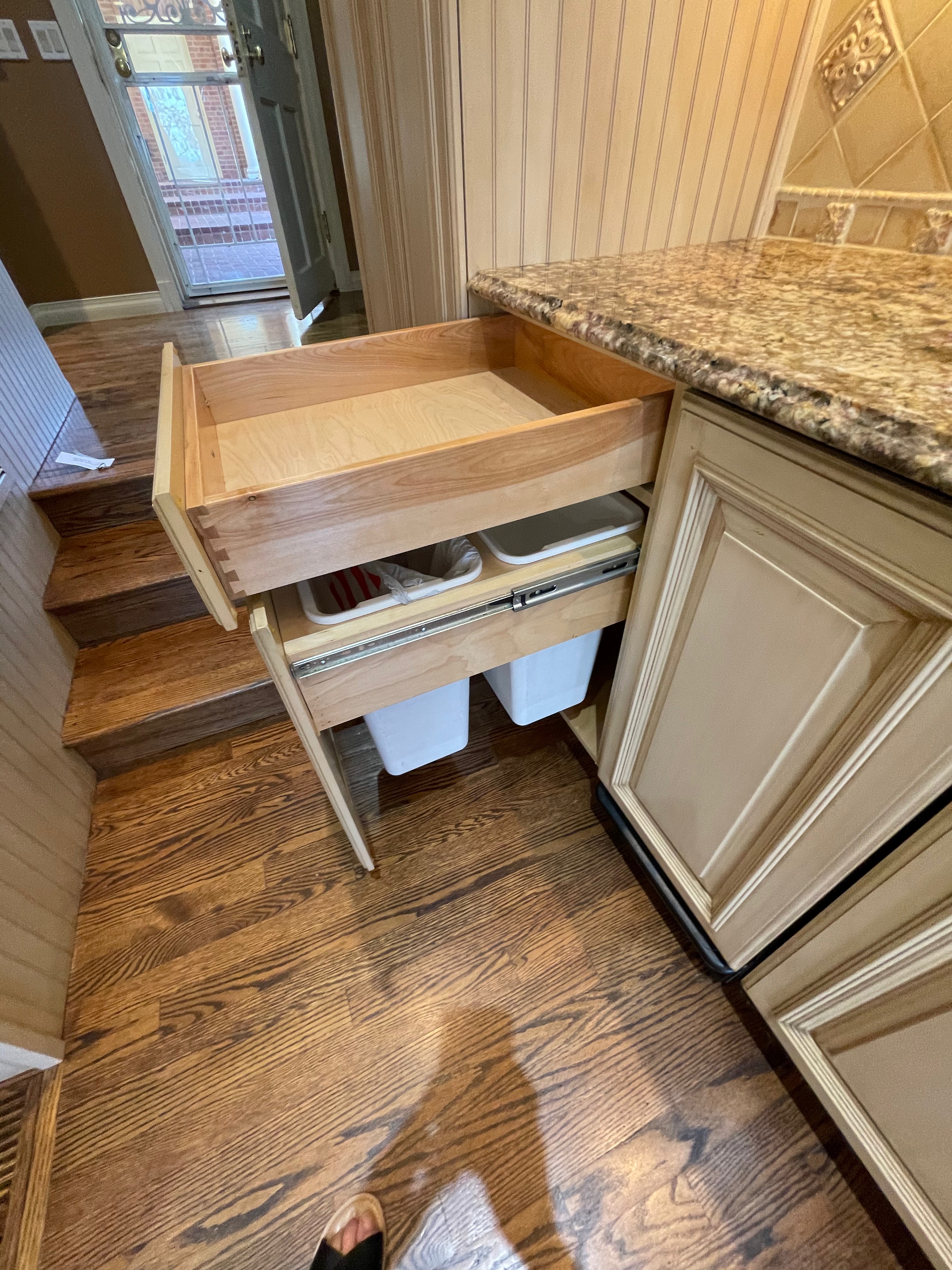 1-One drawer, One door with trash/recycle bins Dim.: 20”w x 36”h x 24”d