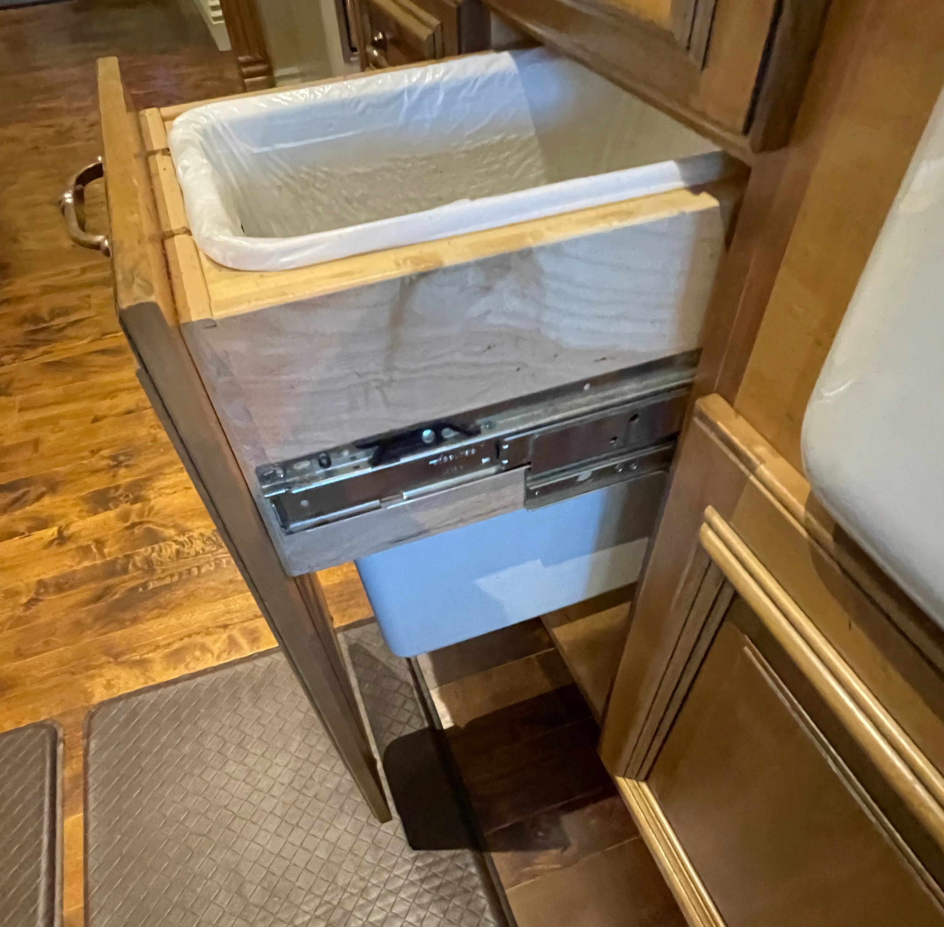 1-One drawer, One door base cabinet, trash can inside Dim.: 15"w x 36"h x 24"d