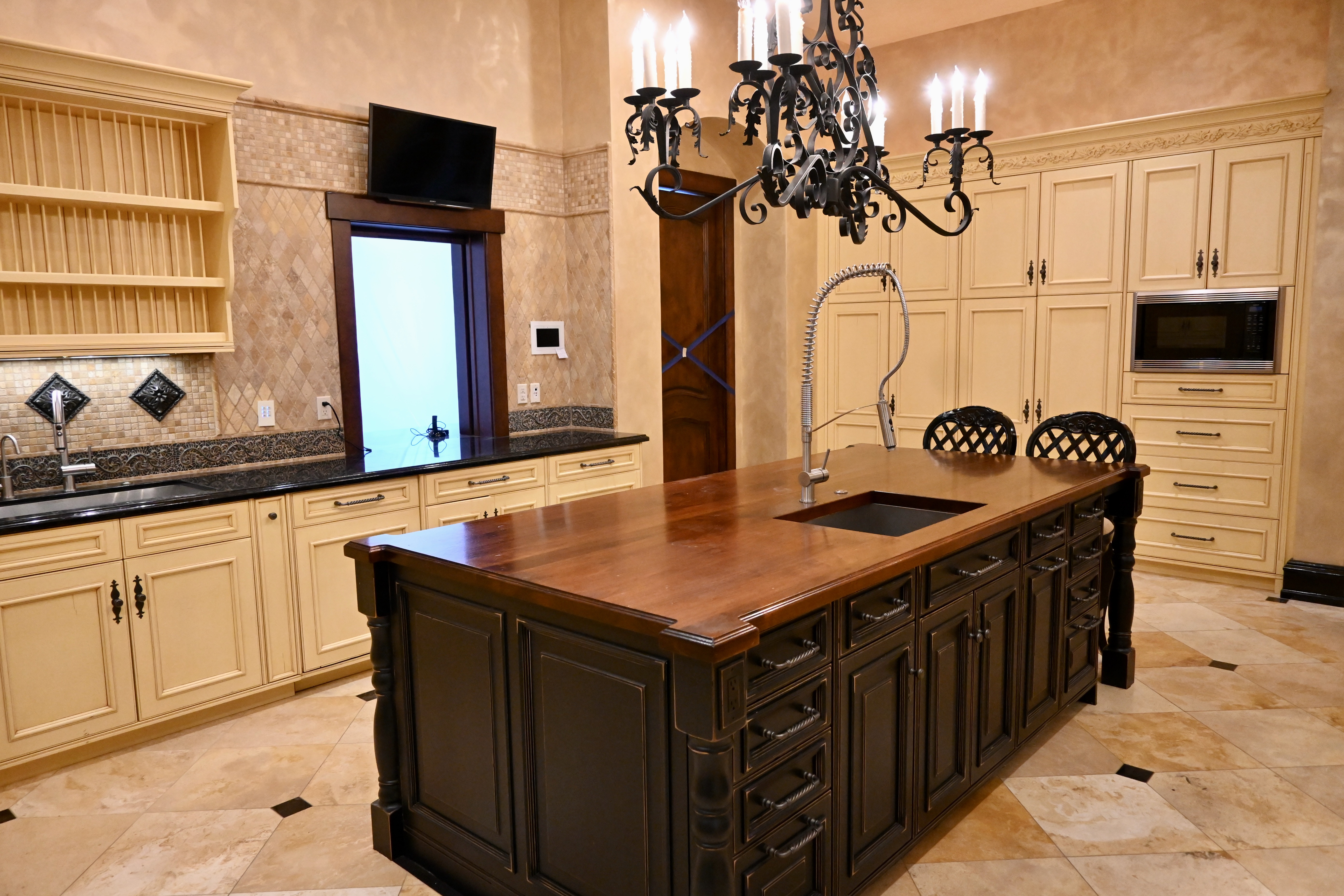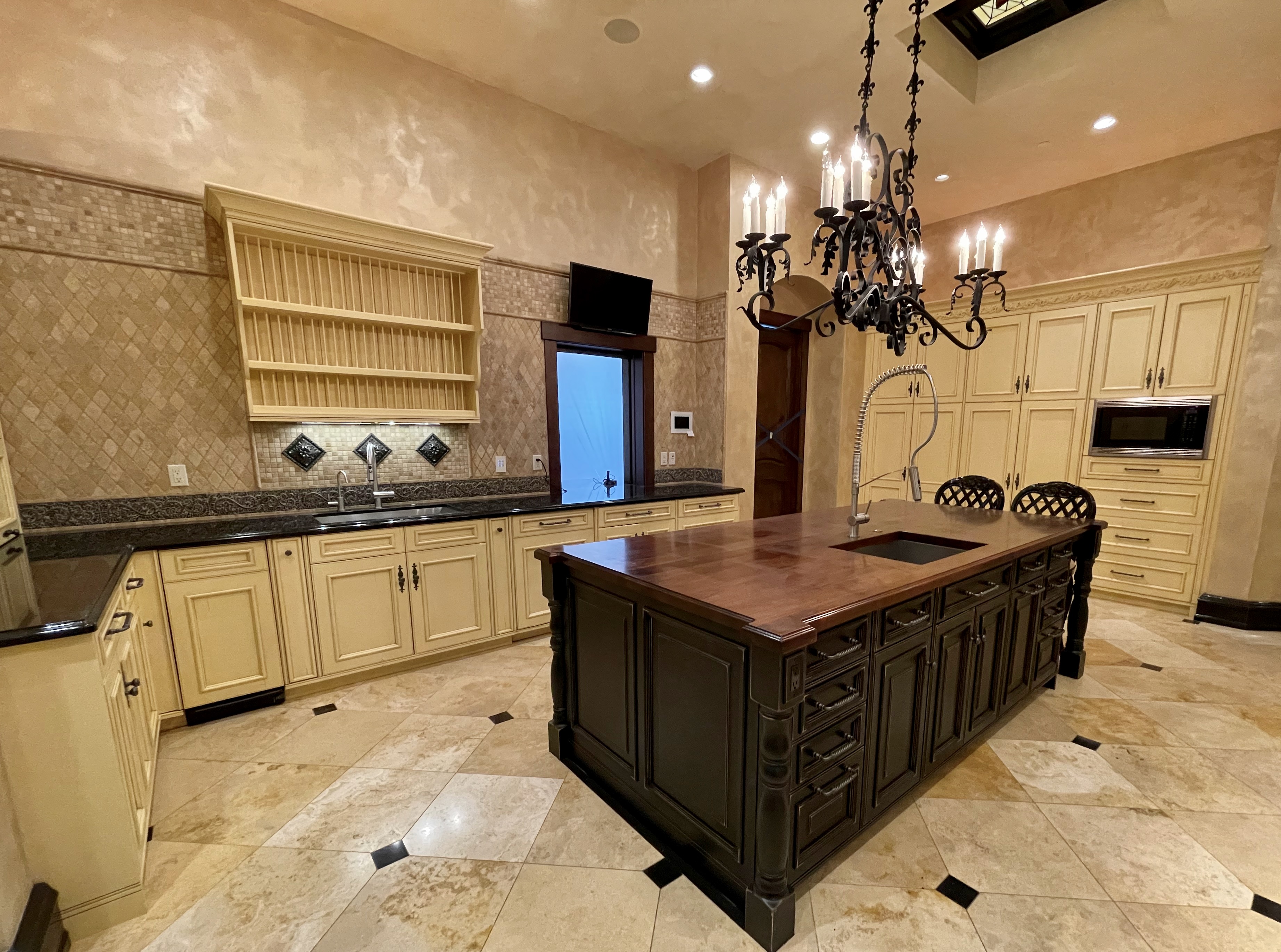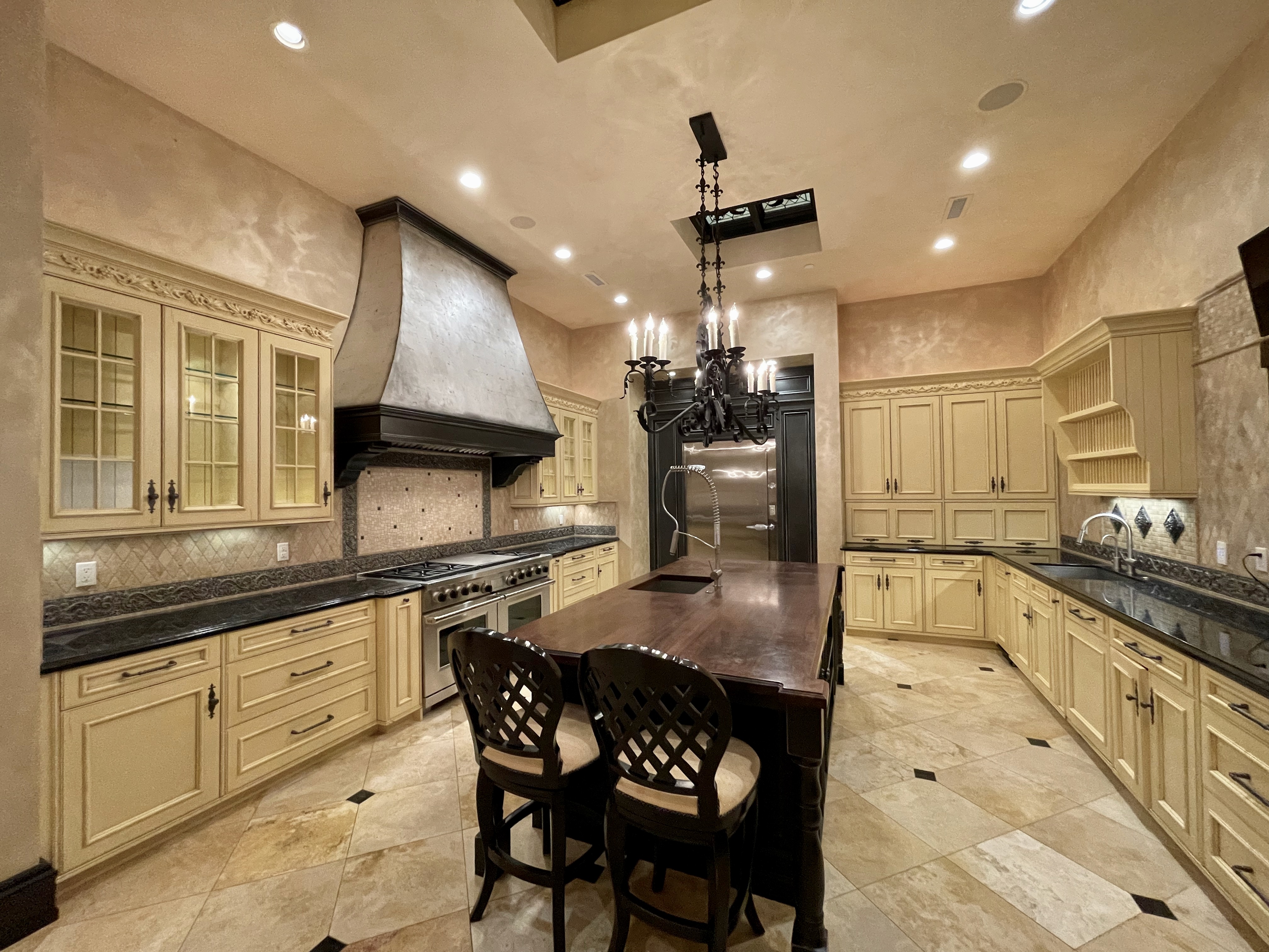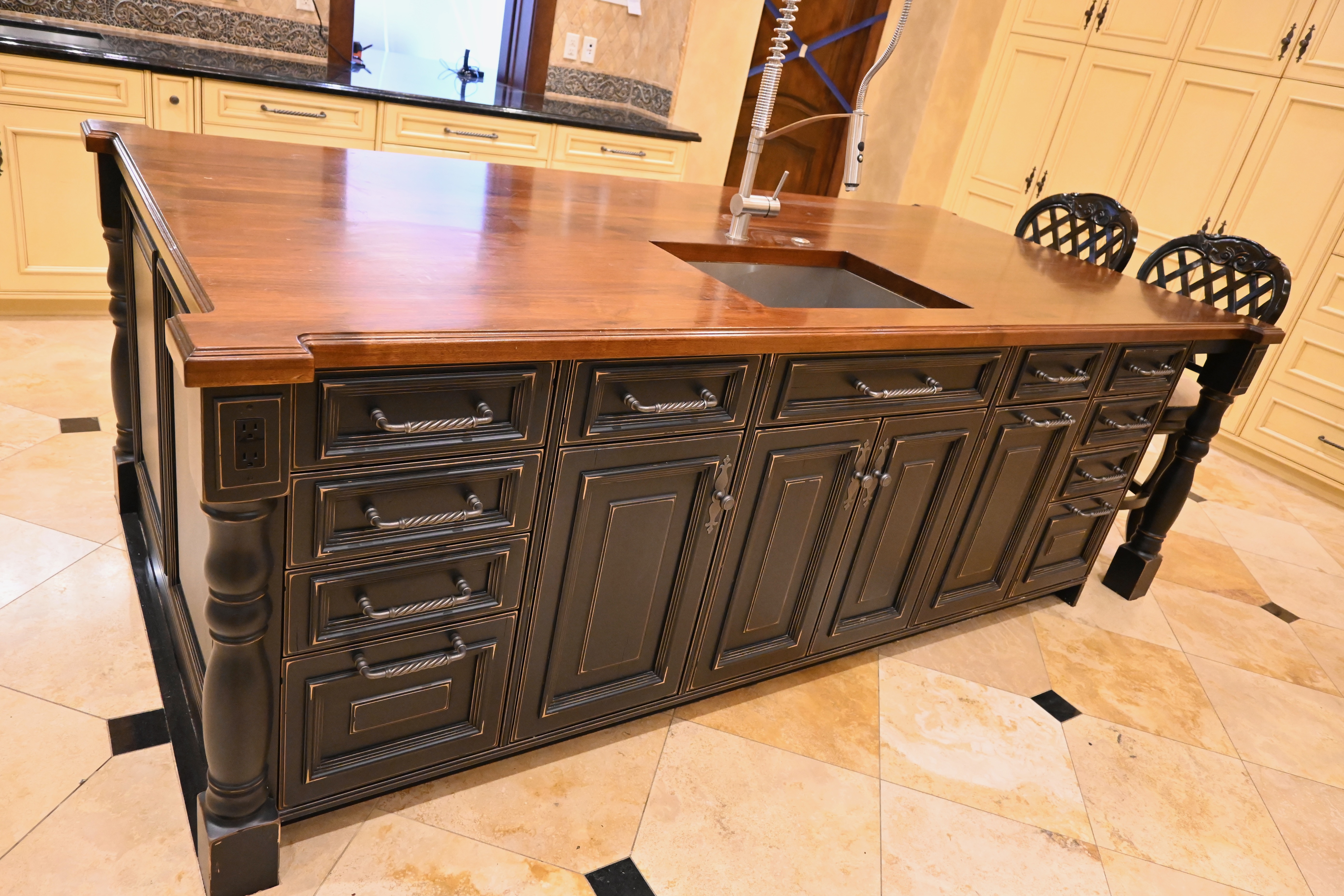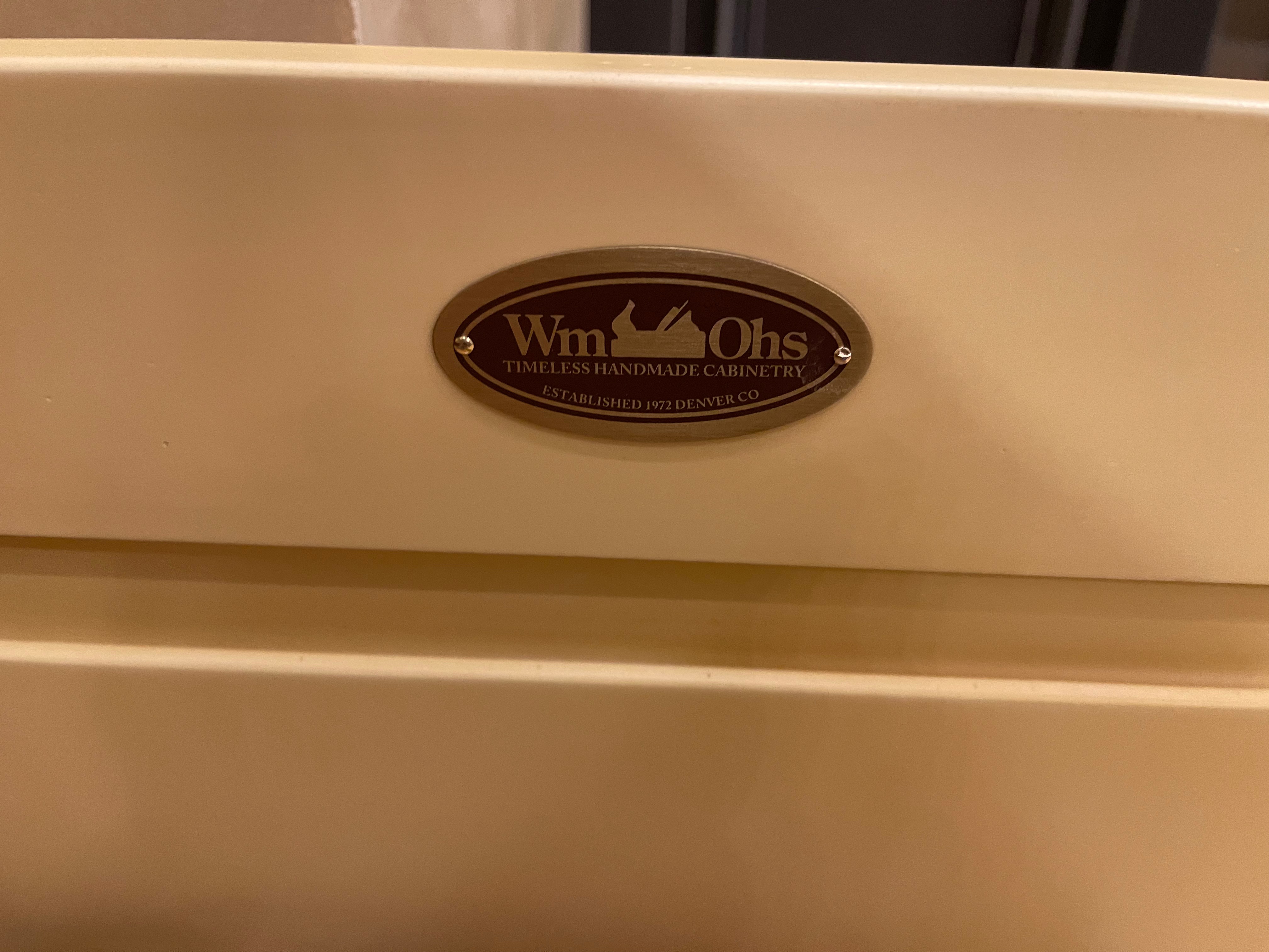 A rare find in the resale market a top of the line beautifully crafted, William Ohs Kitchen! The Kitchen is in excellent condition coming out of one of the finest estates in the Denver area. The Alder wood fronts have a custom custard finish with a dark glaze and distressing. Of course all the cabinetry has all the high-end features standard in a William Ohs kitchen, dovetail drawers, soft close doors/drawers and full extension drawers. The contrasting island is Alder wood with a black finish and custom distressing with a nice Spekva wood counter top. The perimeter cabinets have gorgeous slab granite counter tops. Own your dream kitchen at a fraction of the cost. Kitchen has been professionally removed. Price for the package below. Drawings for the kitchen can be emailed.
