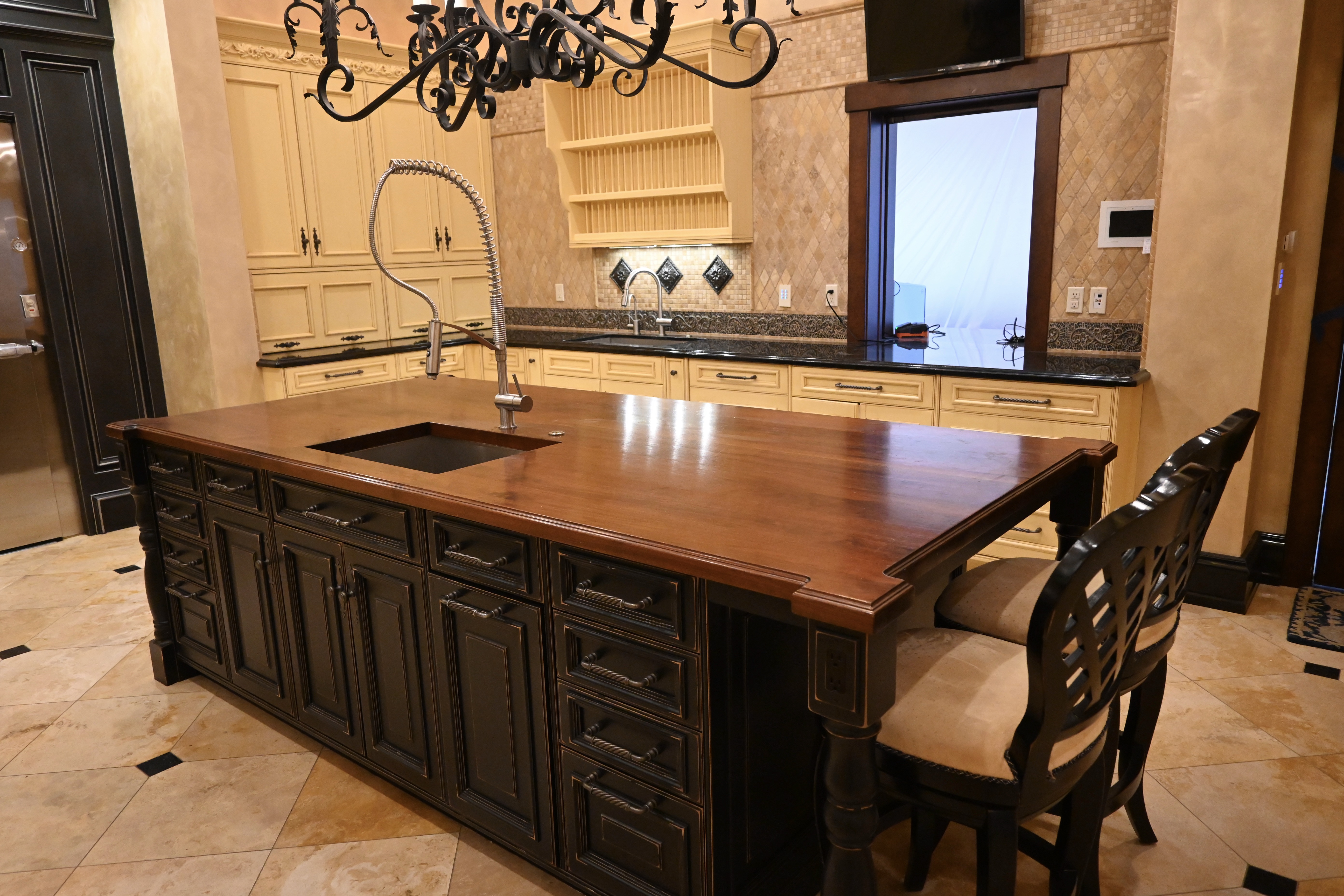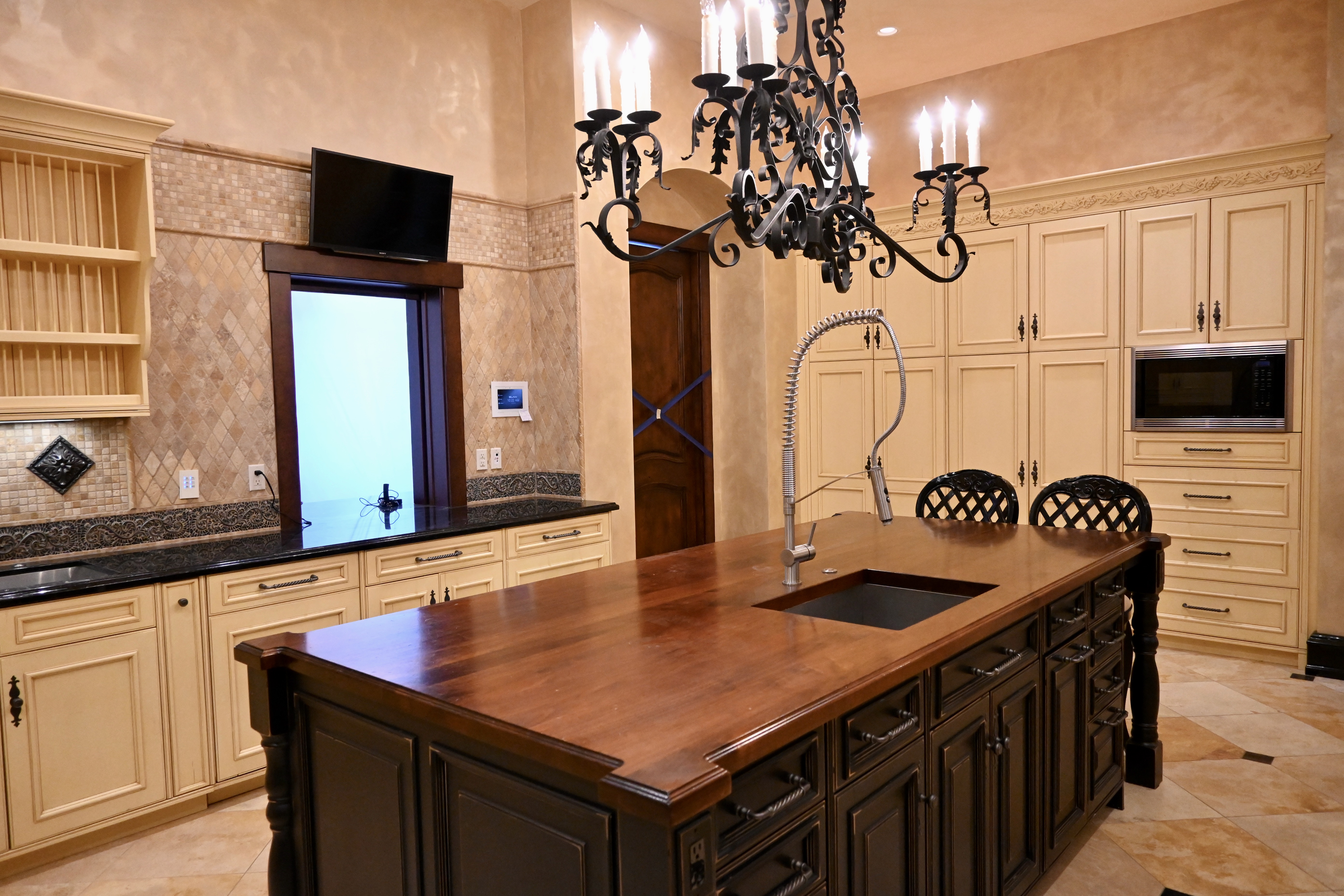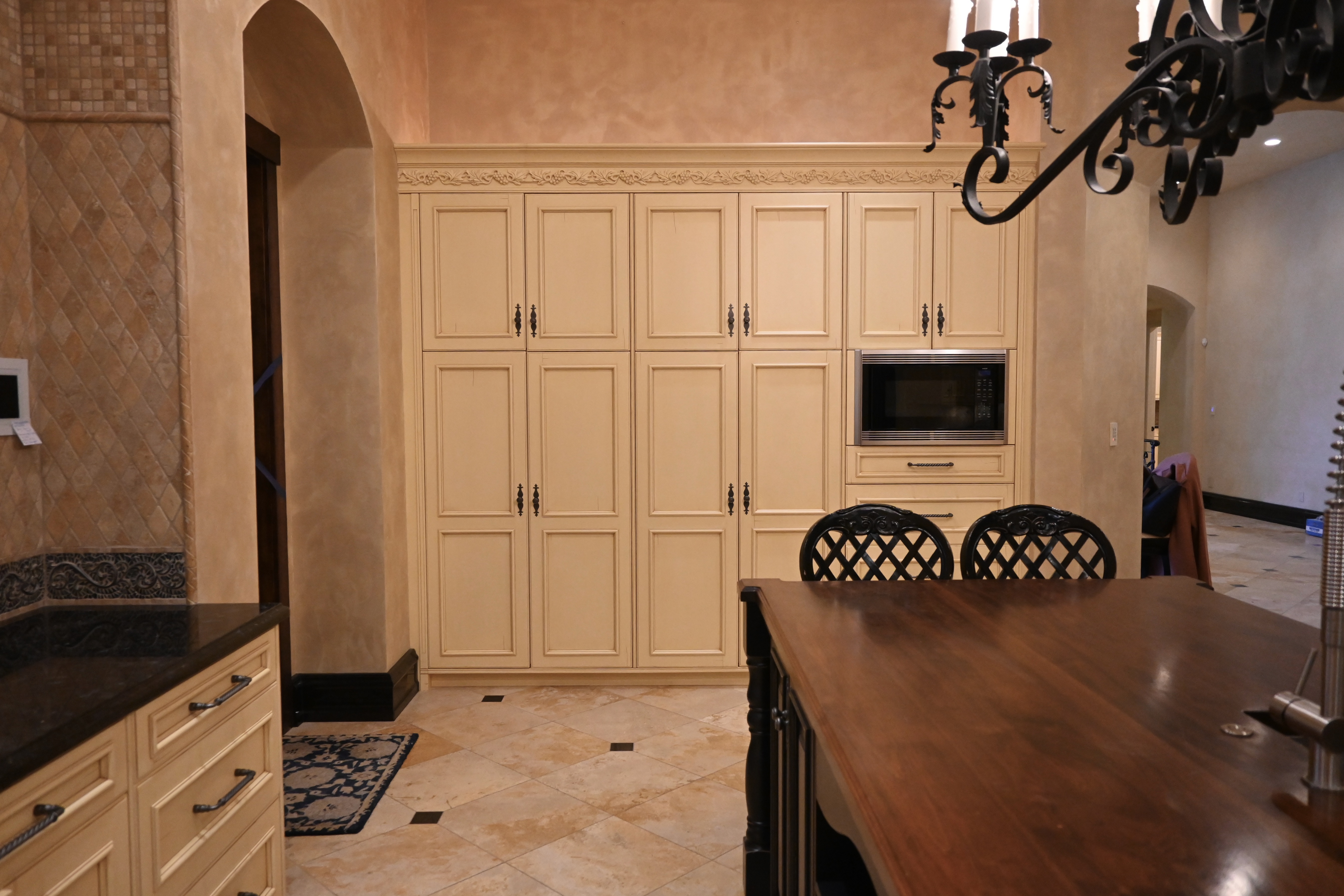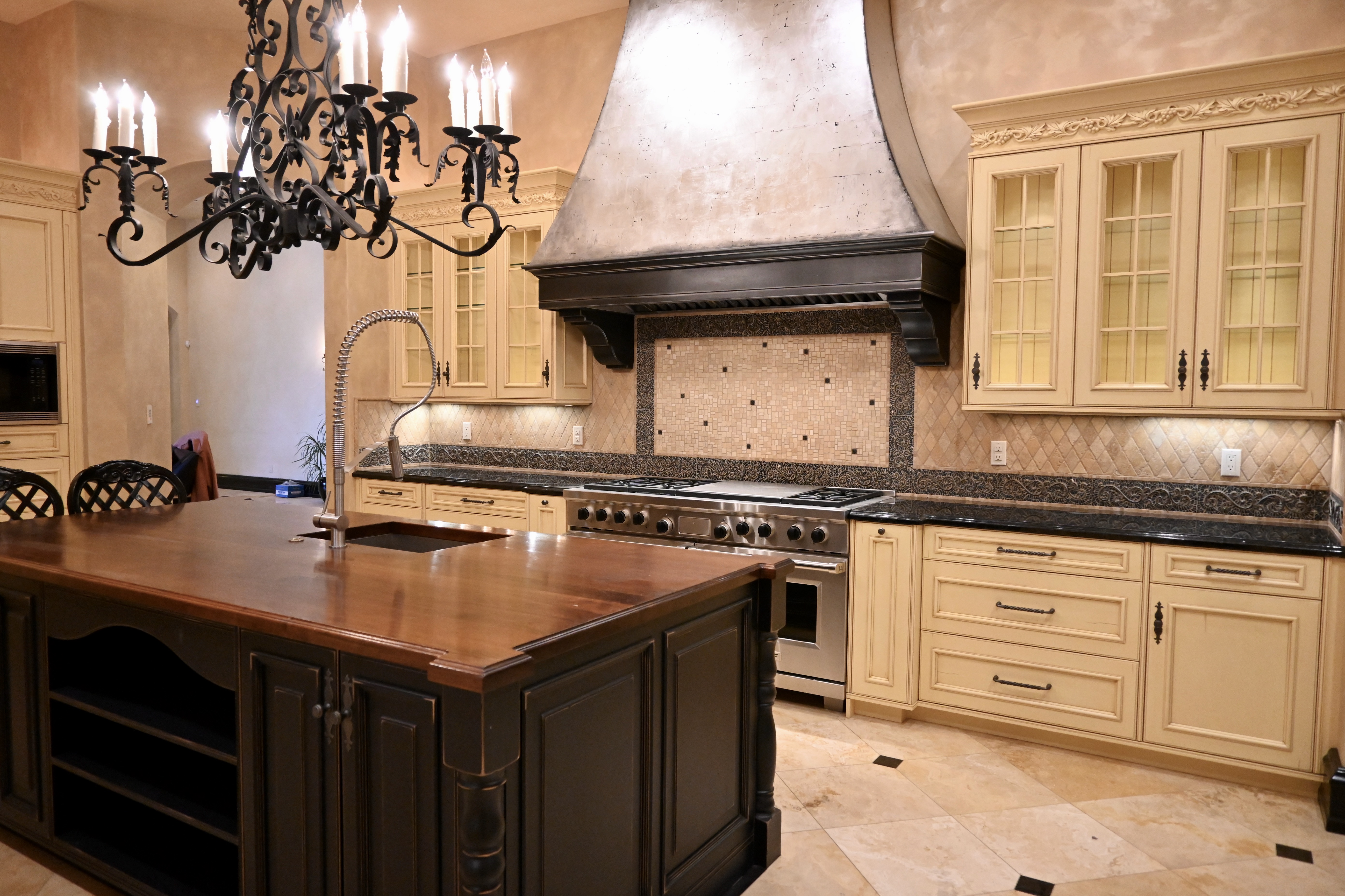 A rare find in the resale market a top of the line beautifully crafted, William Ohs Kitchen! The Kitchen is in excellent condition coming out of one of the finest estates in the Denver area. The Alder wood fronts have a custom custard finish with a dark glaze and distressing. Of course all the cabinetry has all the high-end features standard in a William Ohs kitchen, dovetail drawers, soft close doors/drawers and full extension drawers. The contrasting island is Alder wood with a black finish and custom distressing with a nice Spekva wood counter top. The perimeter cabinets have gorgeous slab granite counter tops. Own your dream kitchen at a fraction of the cost. Kitchen has been professionally removed. Price for the package below. Drawings for the kitchen can be emailed.