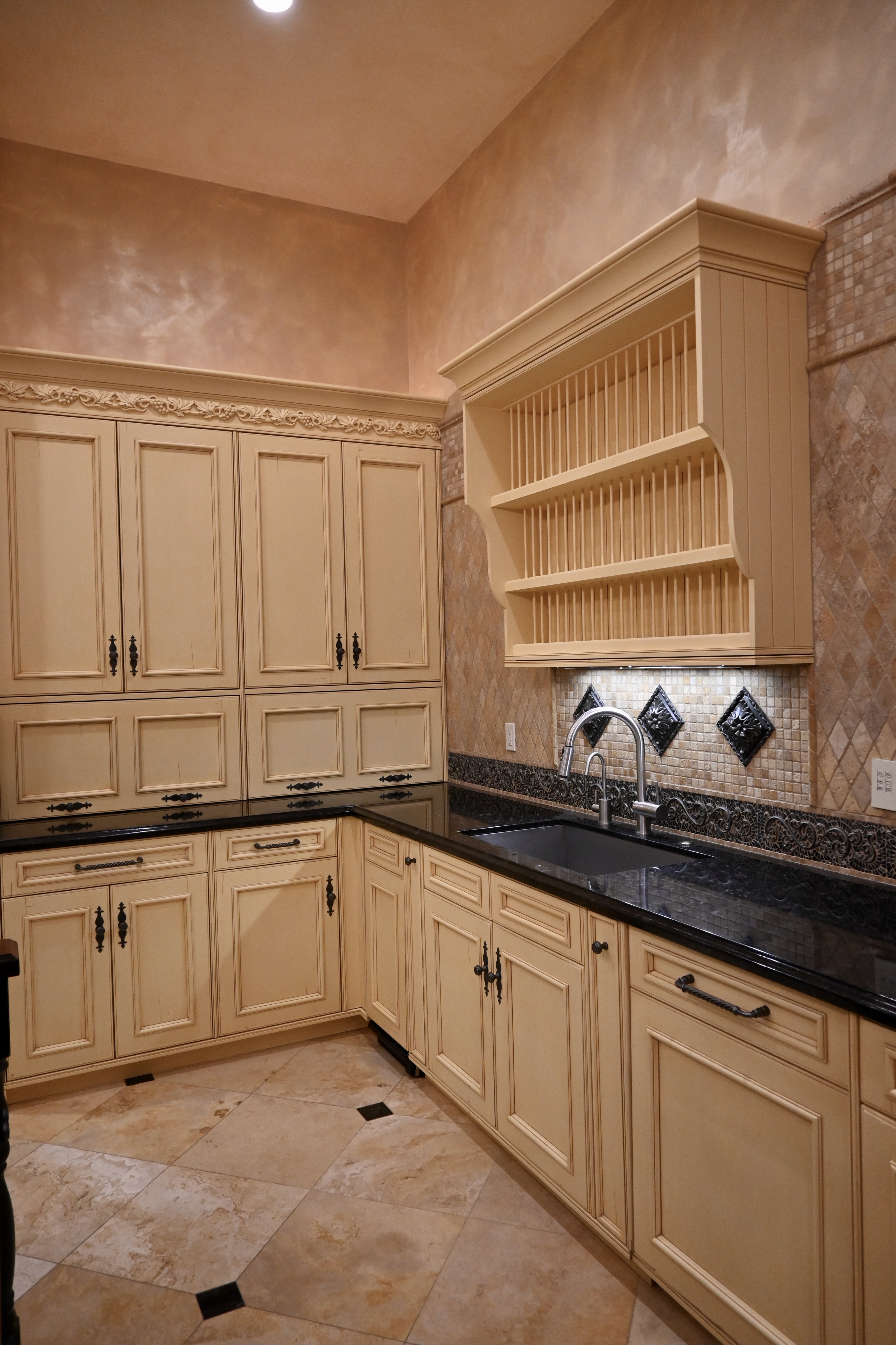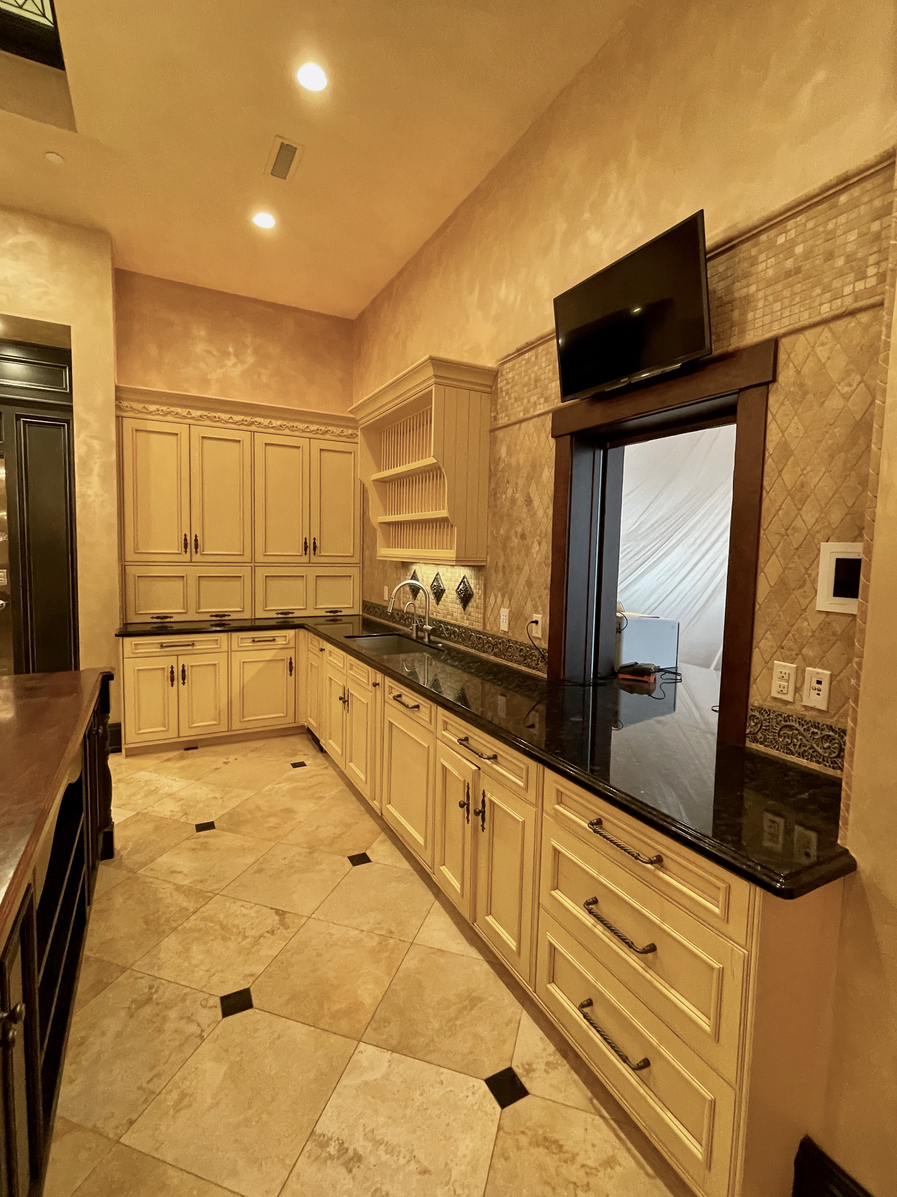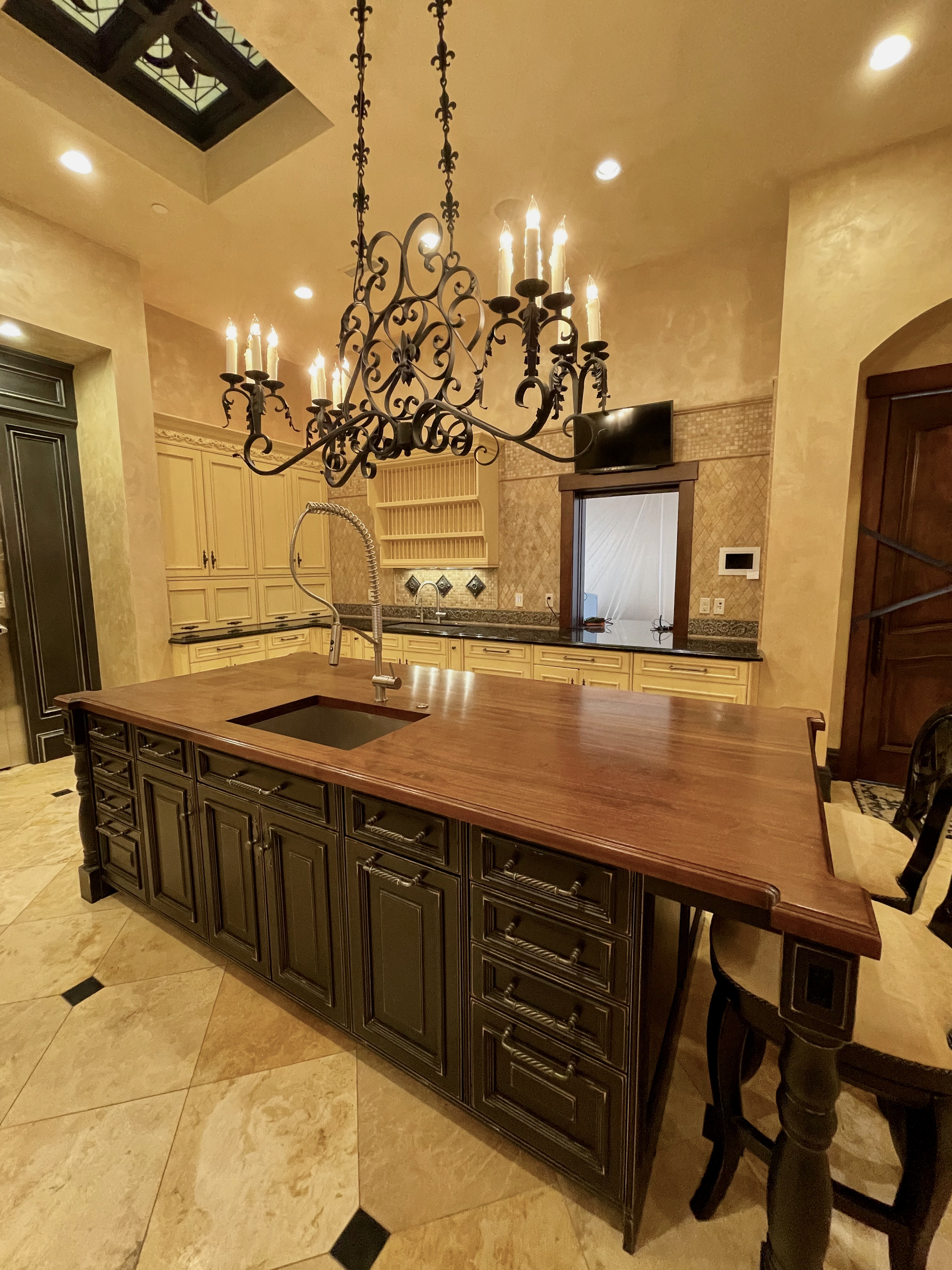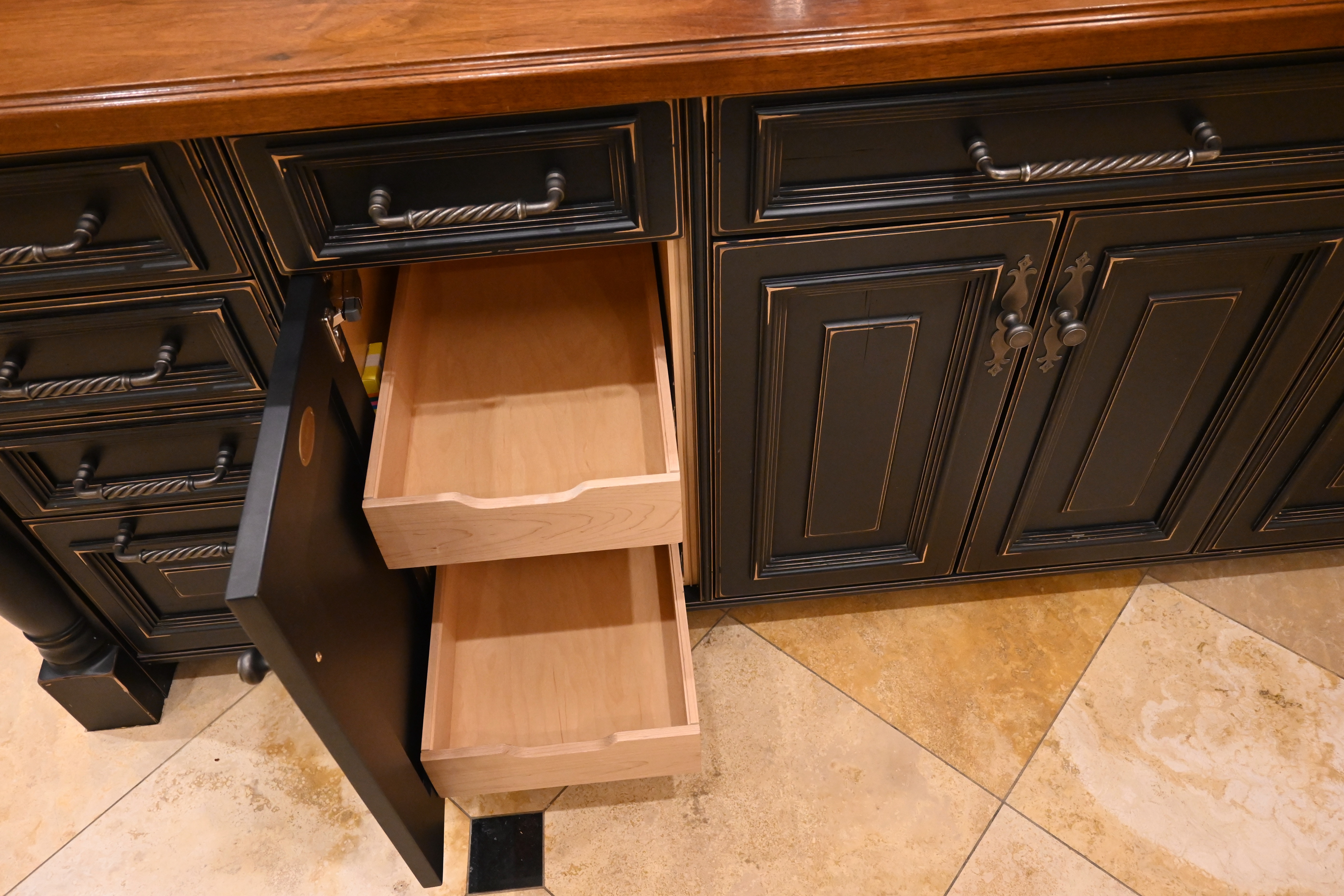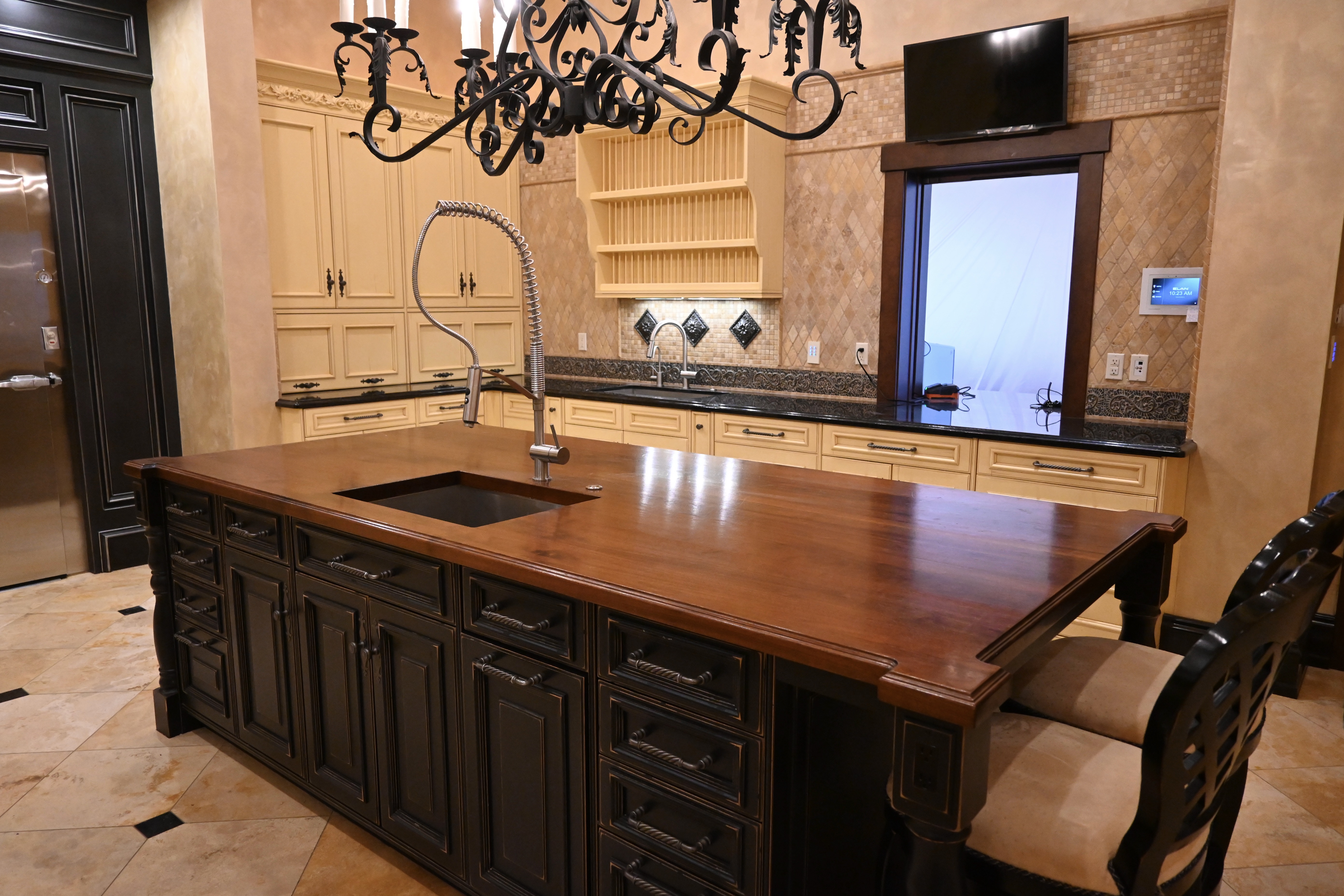 A rare find in the resale market a top of the line beautifully crafted, William Ohs Kitchen! The Kitchen is in excellent condition coming out of one of the finest estates in the Denver area. The Alder wood fronts have a custom custard finish with a dark glaze and distressing. Of course all the cabinetry has all the high-end features standard in a William Ohs kitchen, dovetail drawers, soft close doors/drawers and full extension drawers. The contrasting island is Alder wood with a black finish and custom distressing with a nice Spekva wood counter top. The perimeter cabinets have gorgeous slab granite counter tops. Own your dream kitchen at a fraction of the cost. Kitchen has been professionally removed. Price for the package below. Drawings for the kitchen can be emailed.