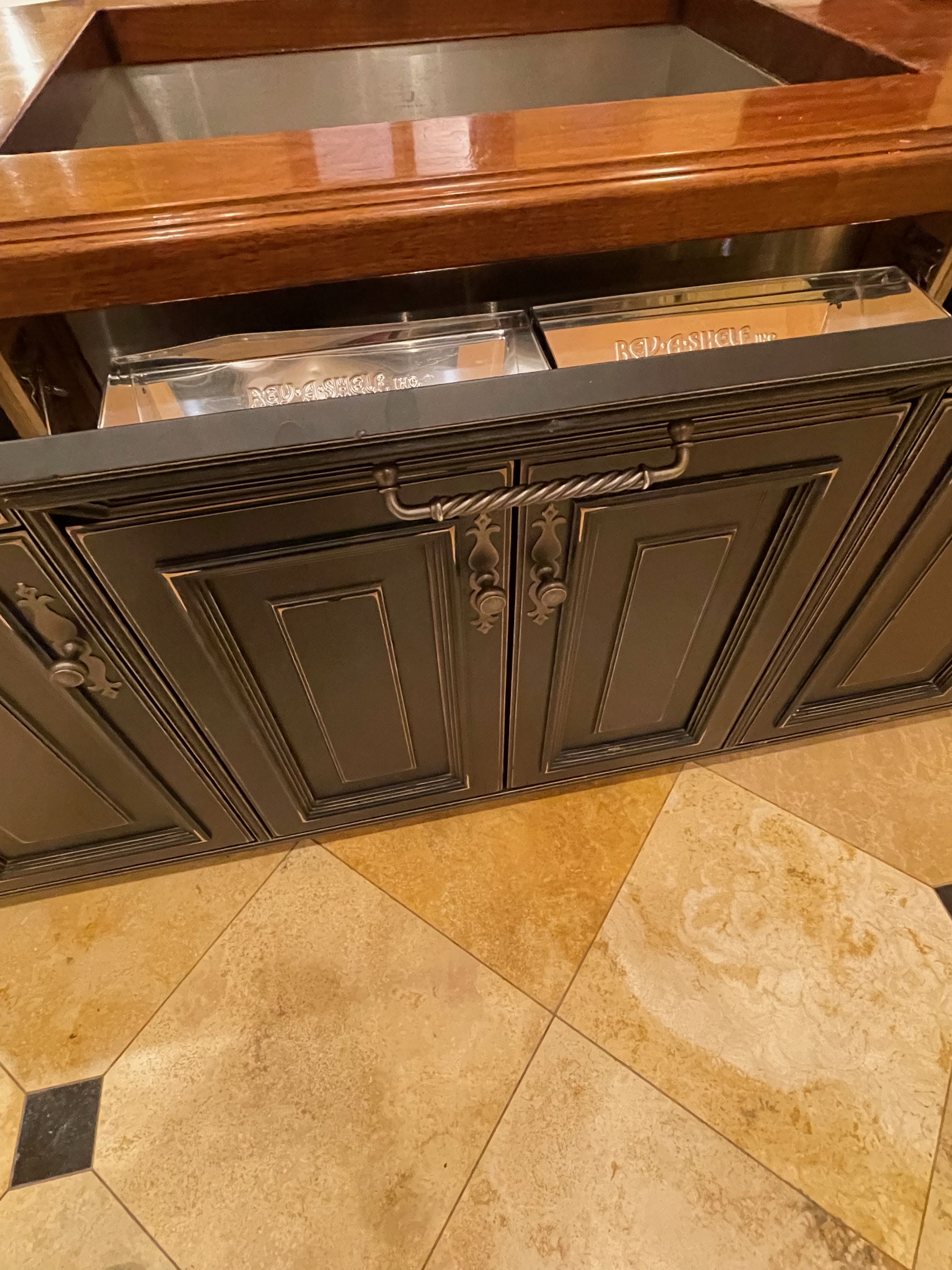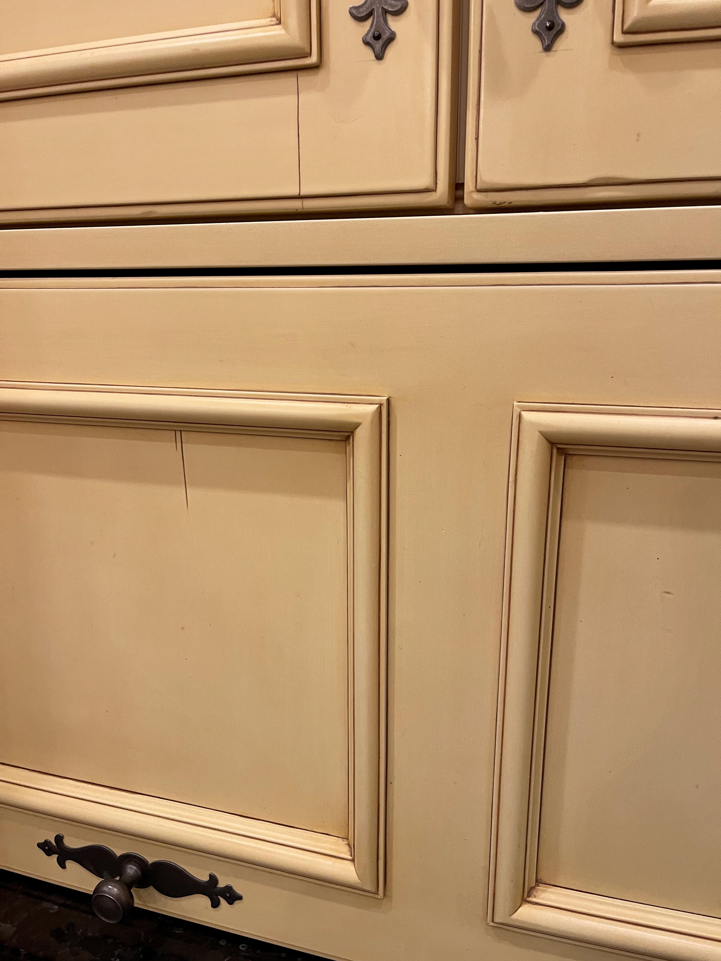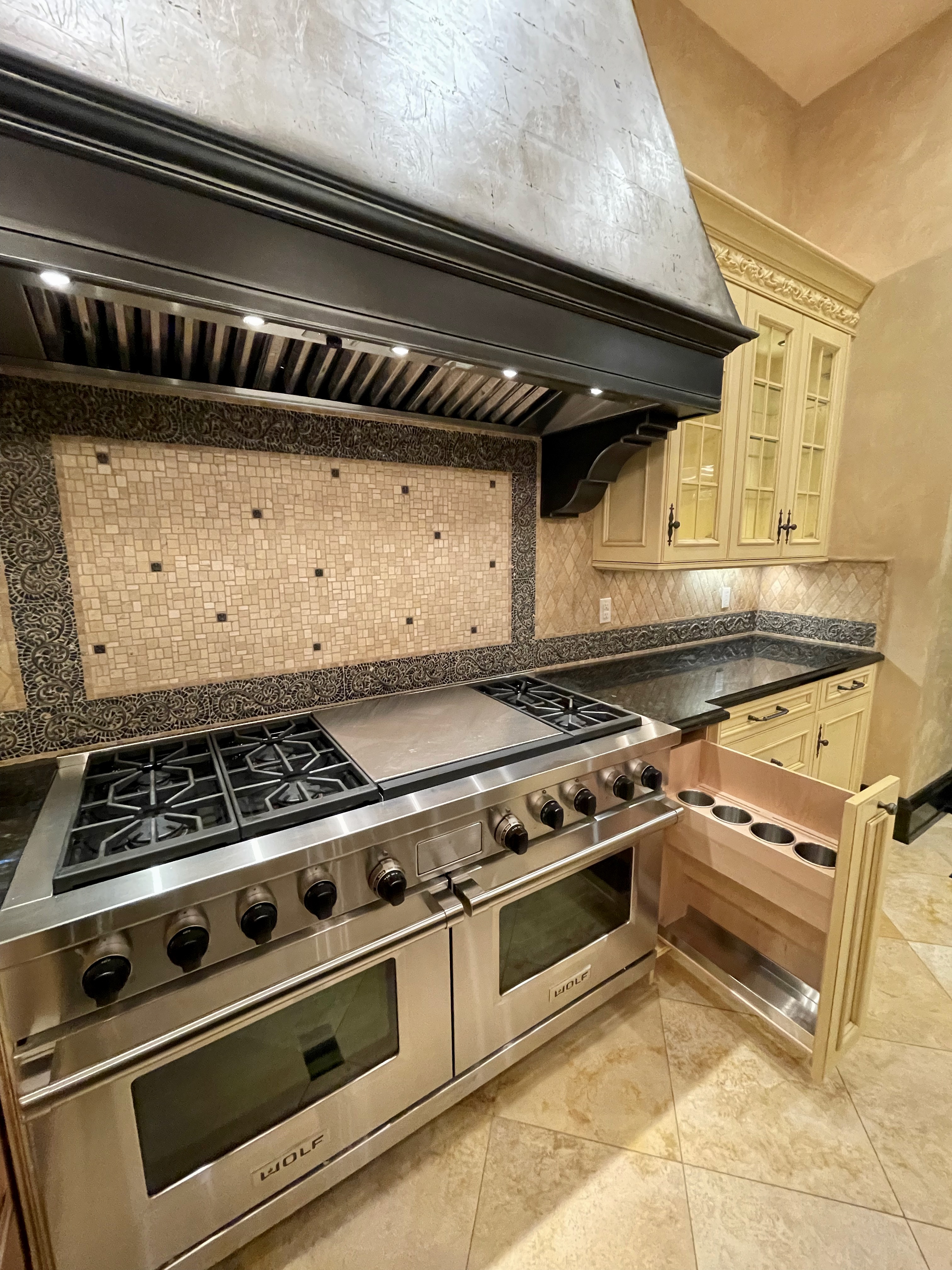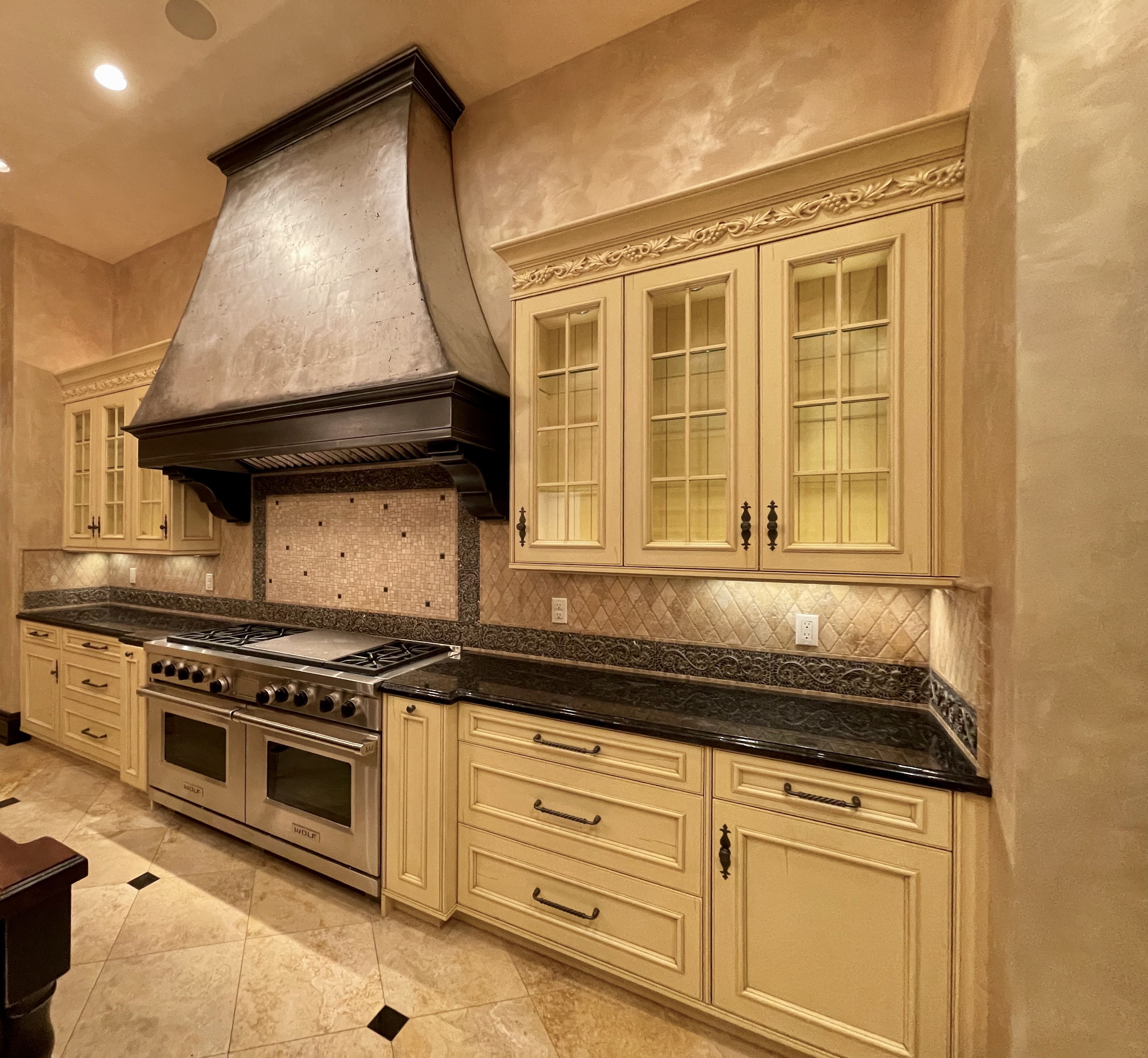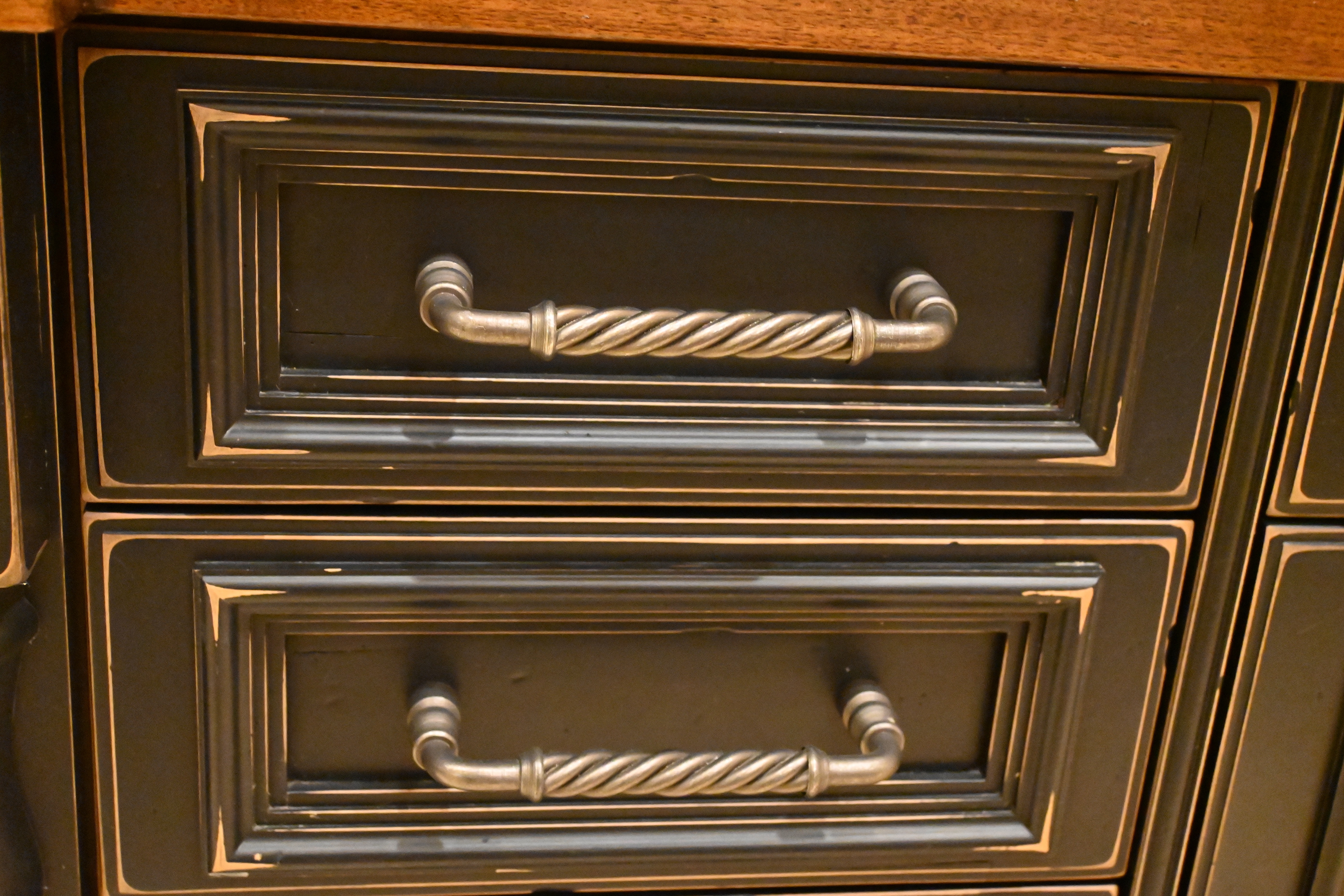 A rare find in the resale market a top of the line beautifully crafted, William Ohs Kitchen! The Kitchen is in excellent condition coming out of one of the finest estates in the Denver area. The Alder wood fronts have a custom custard finish with a dark glaze and distressing. Of course all the cabinetry has all the high-end features standard in a William Ohs kitchen, dovetail drawers, soft close doors/drawers and full extension drawers. The contrasting island is Alder wood with a black finish and custom distressing with a nice Spekva wood counter top. The perimeter cabinets have gorgeous slab granite counter tops. Own your dream kitchen at a fraction of the cost. Kitchen has been professionally removed. Price for the package below. Drawings for the kitchen can be emailed.