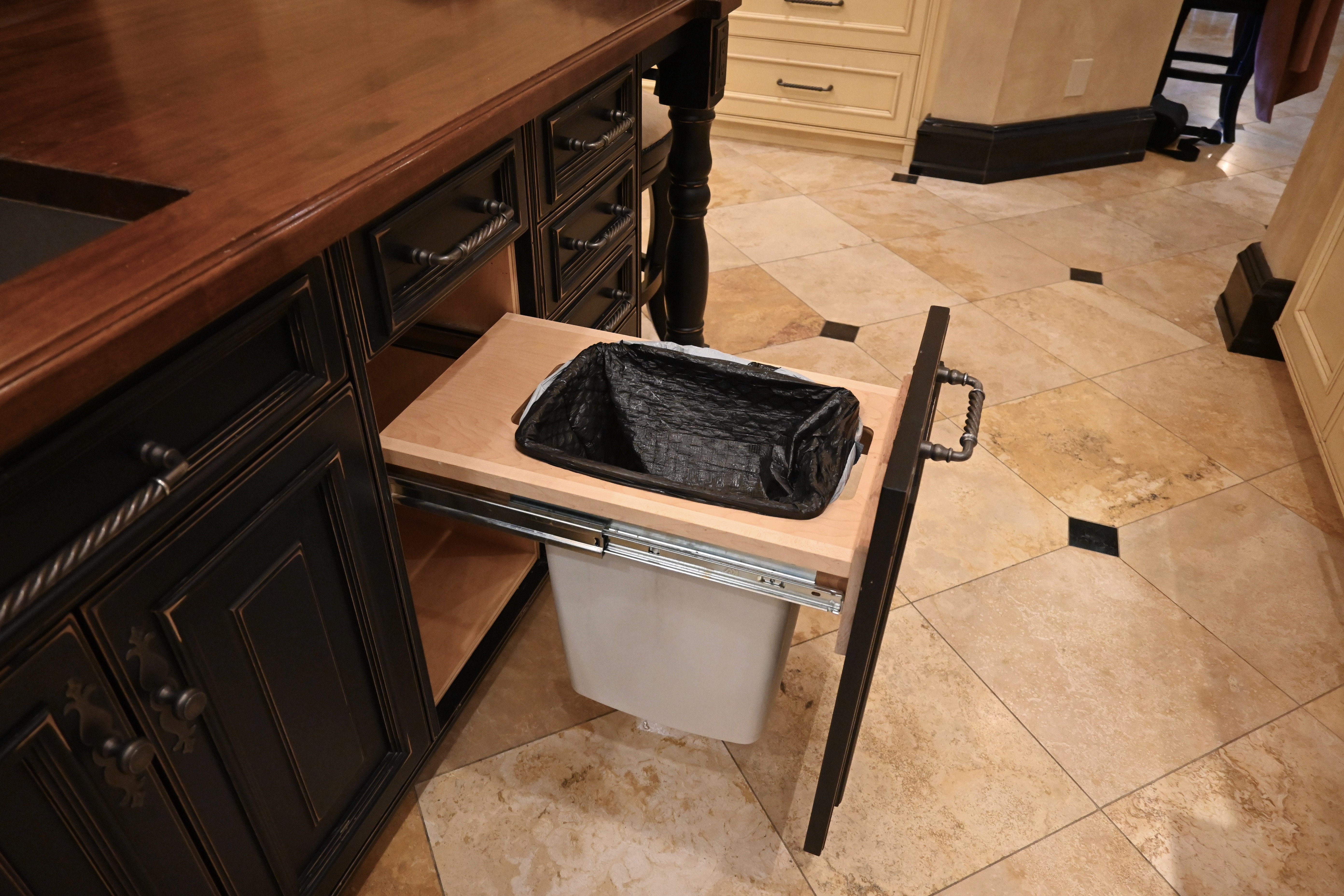1-One drawer, One door base cabinet, one trash can inside Dim.: 15”w x 36”h x 24”d