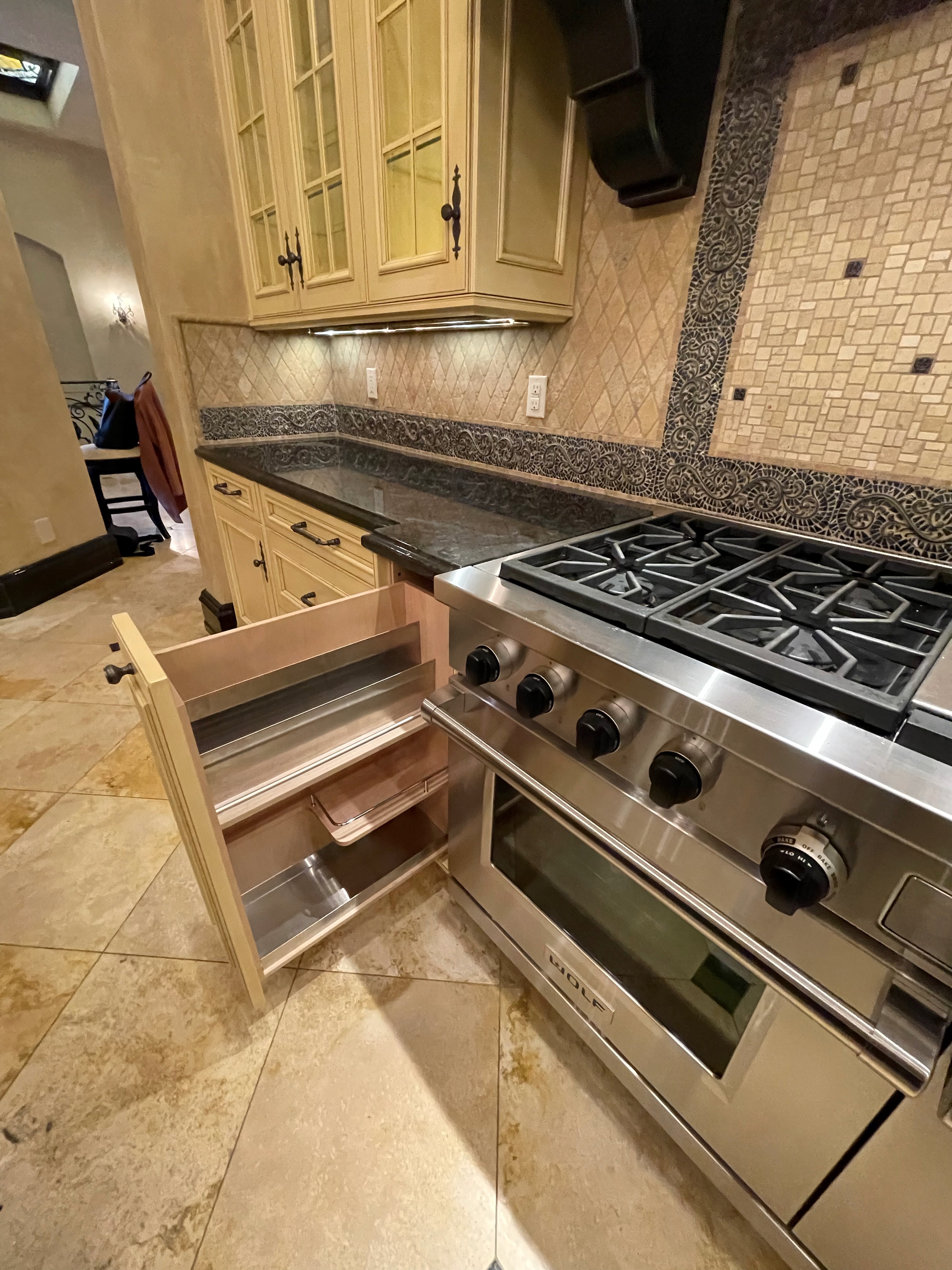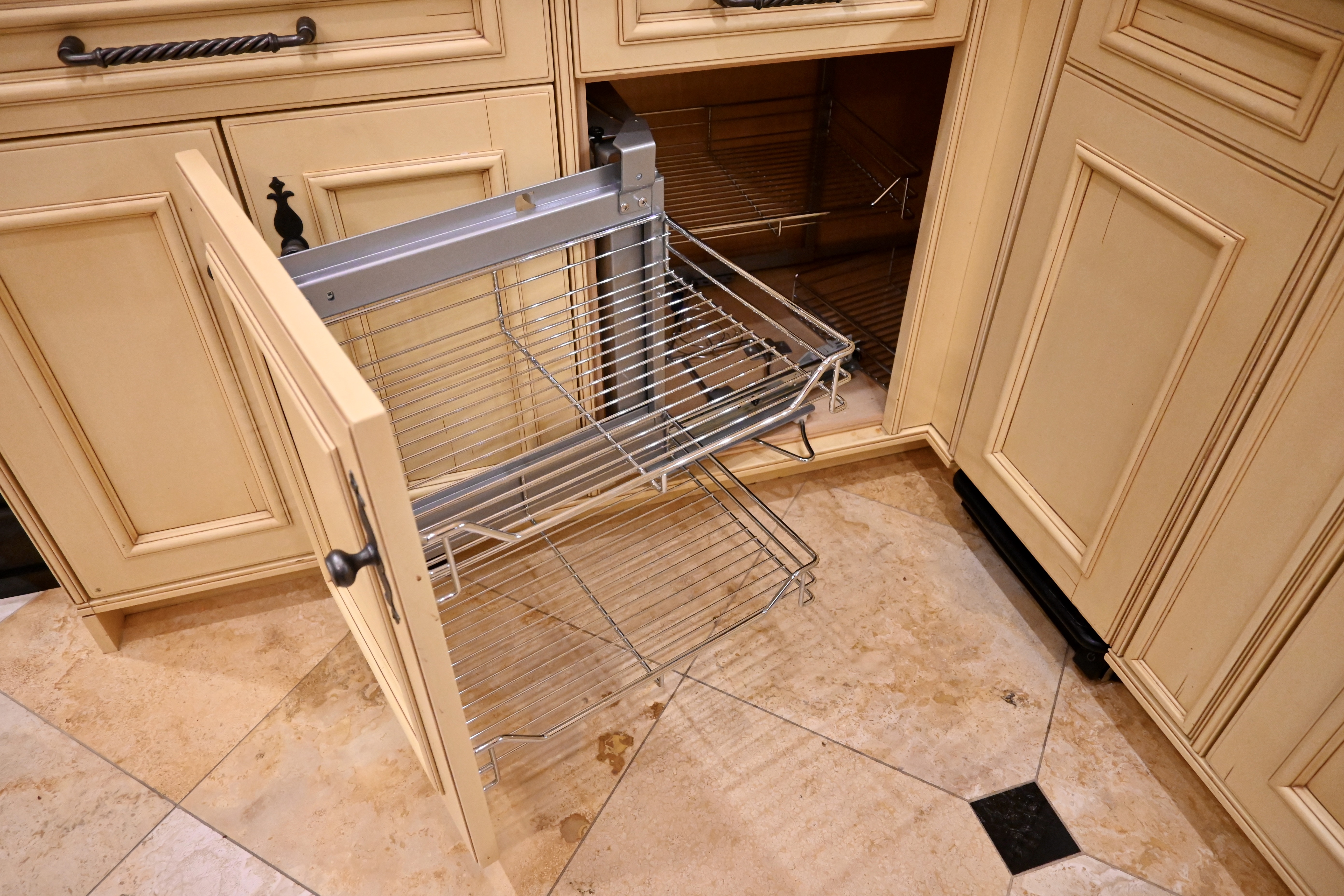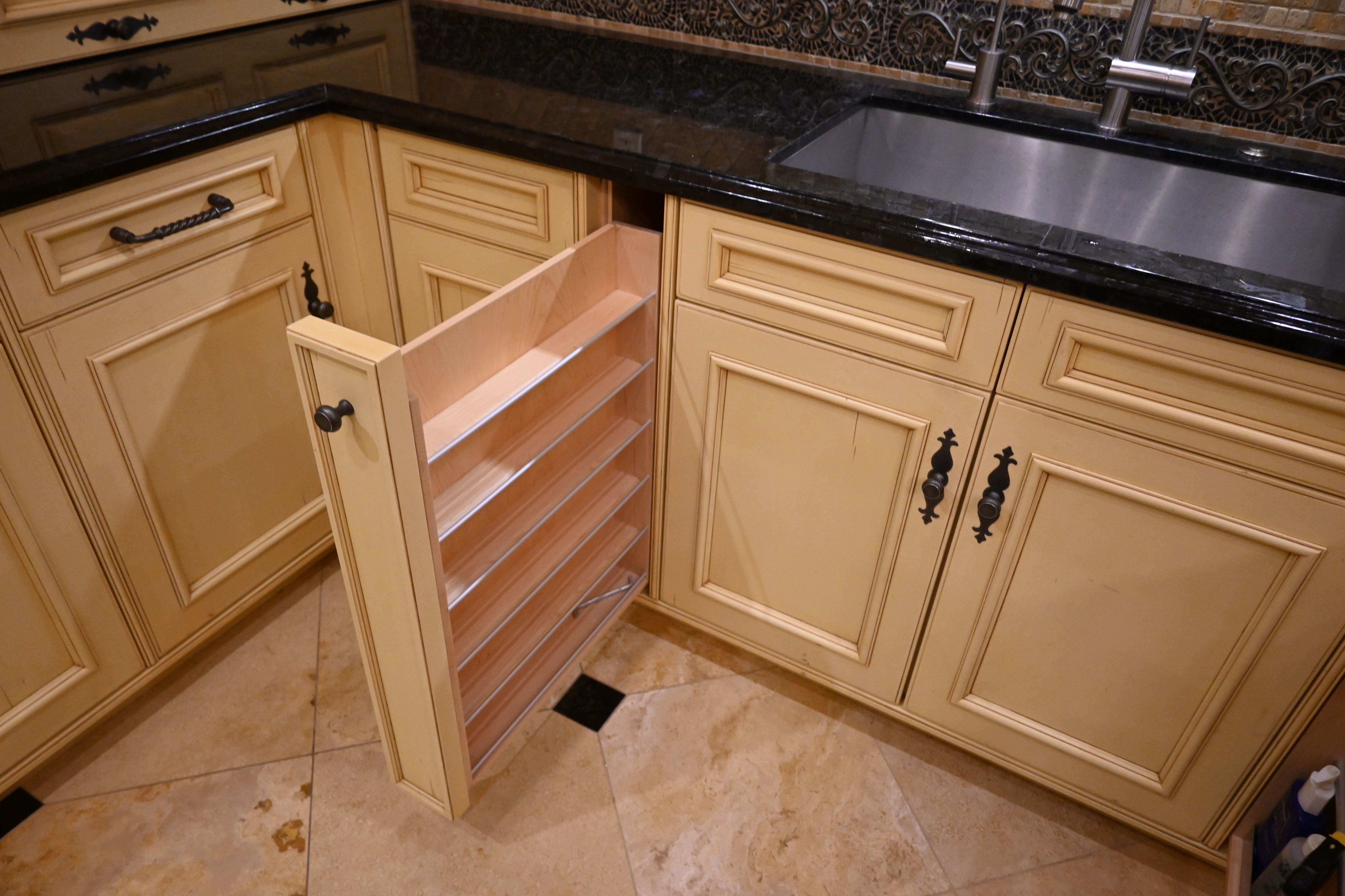 2-One door pull out with shelves for spices base cabinets. Dim.:10”w x 36”h x 24”d