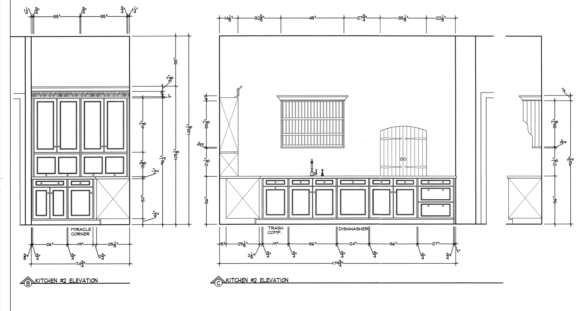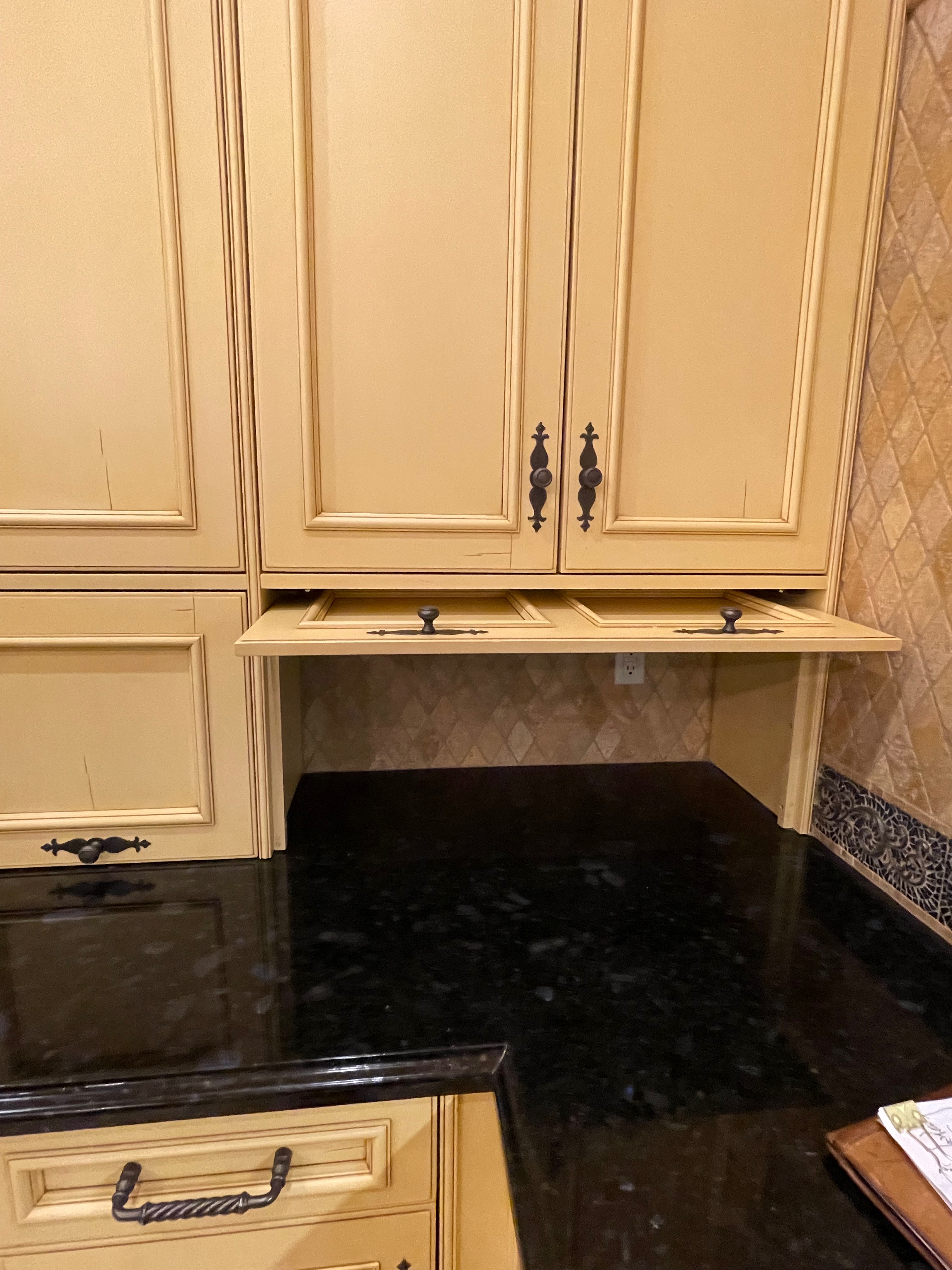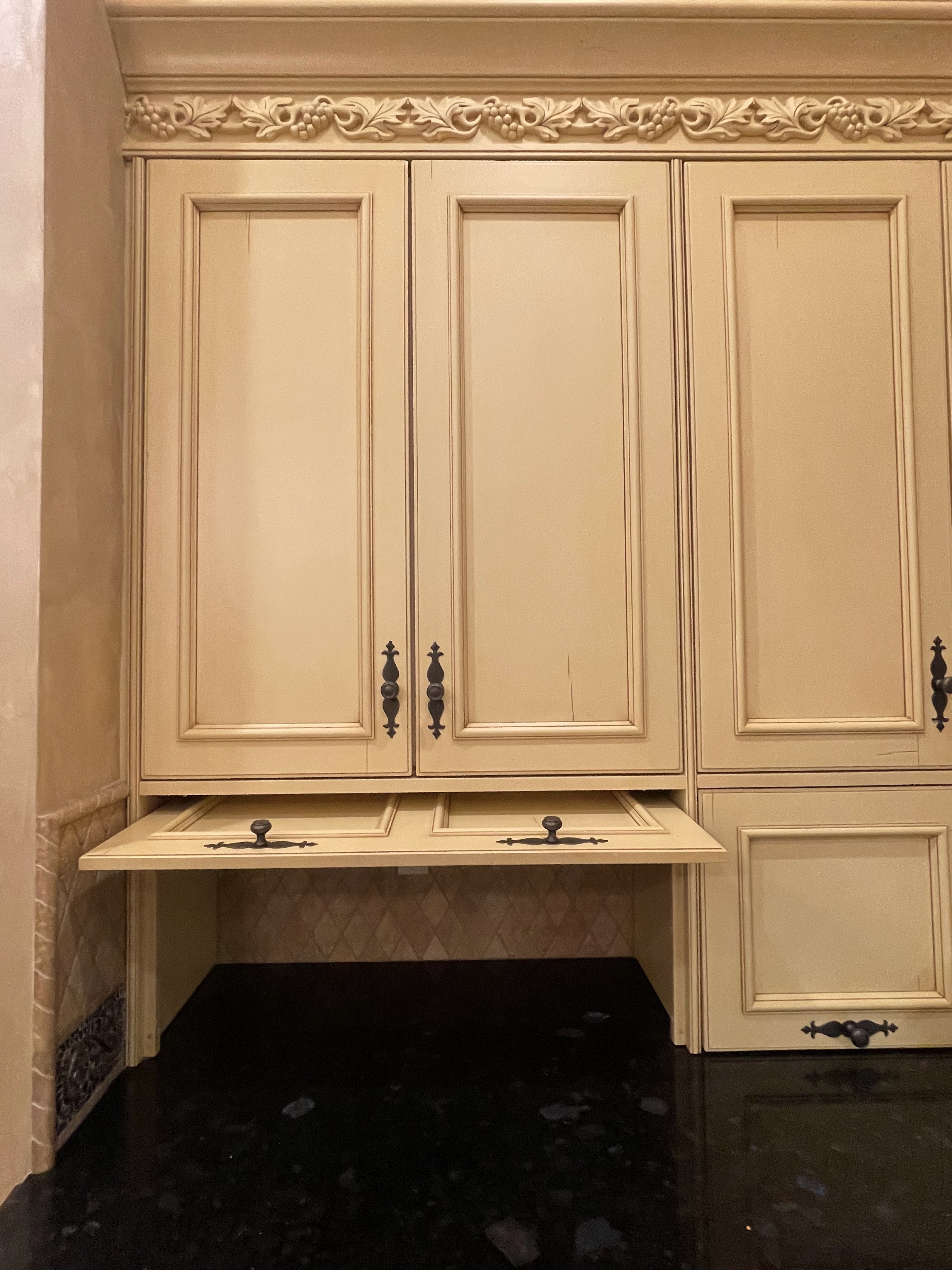 2-Two door wall/counter w/appliance garage below Dim.:36”w x 42”h two door cabinet only/60”h w/ appliance garage/68 ¾”h w/ crown x 14”d