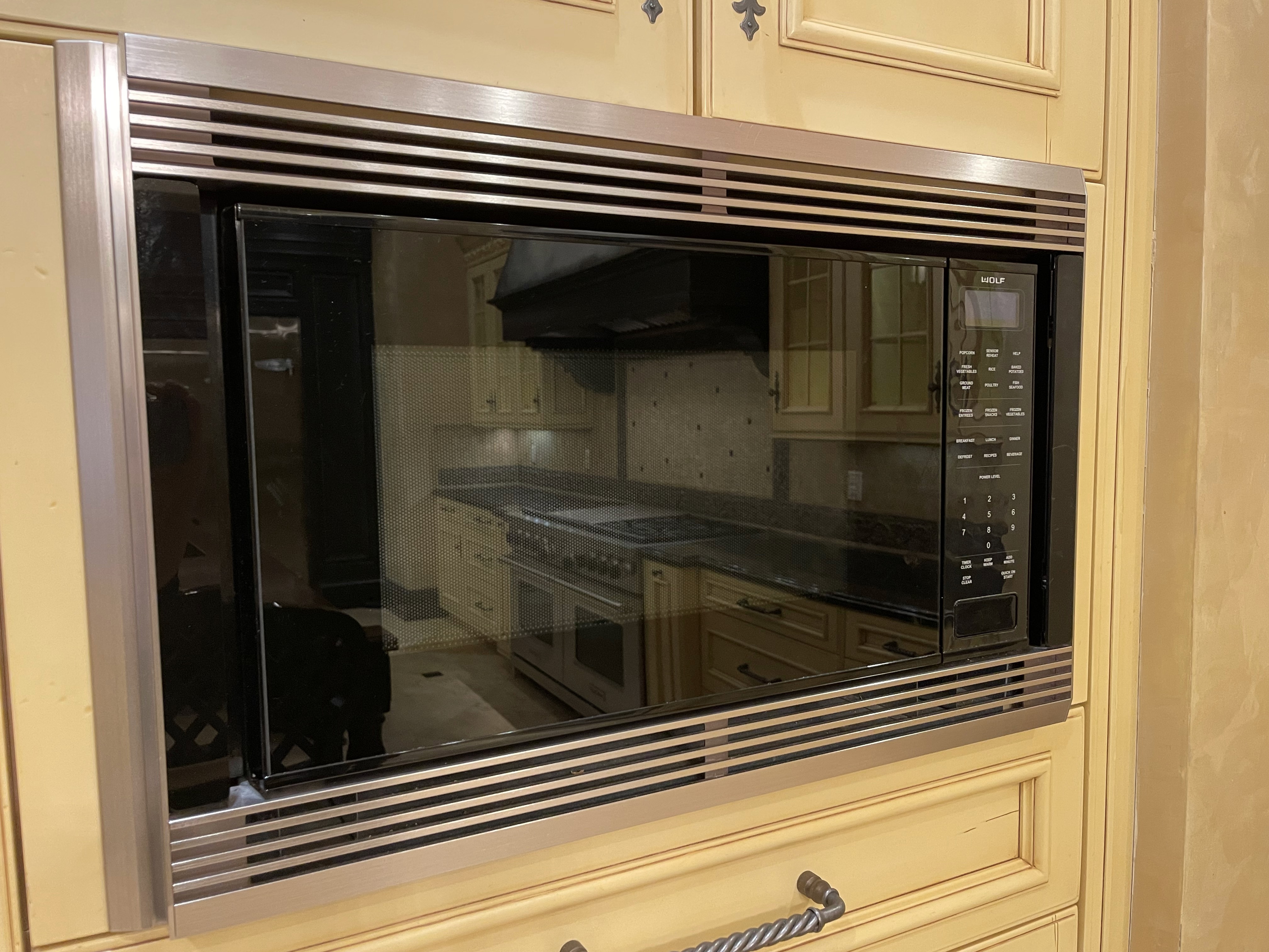 30” Wolf stainless steel Microwave. Model#MW24 6/08 Dim. 30”w x 17 ½”h Listing price new $1,155