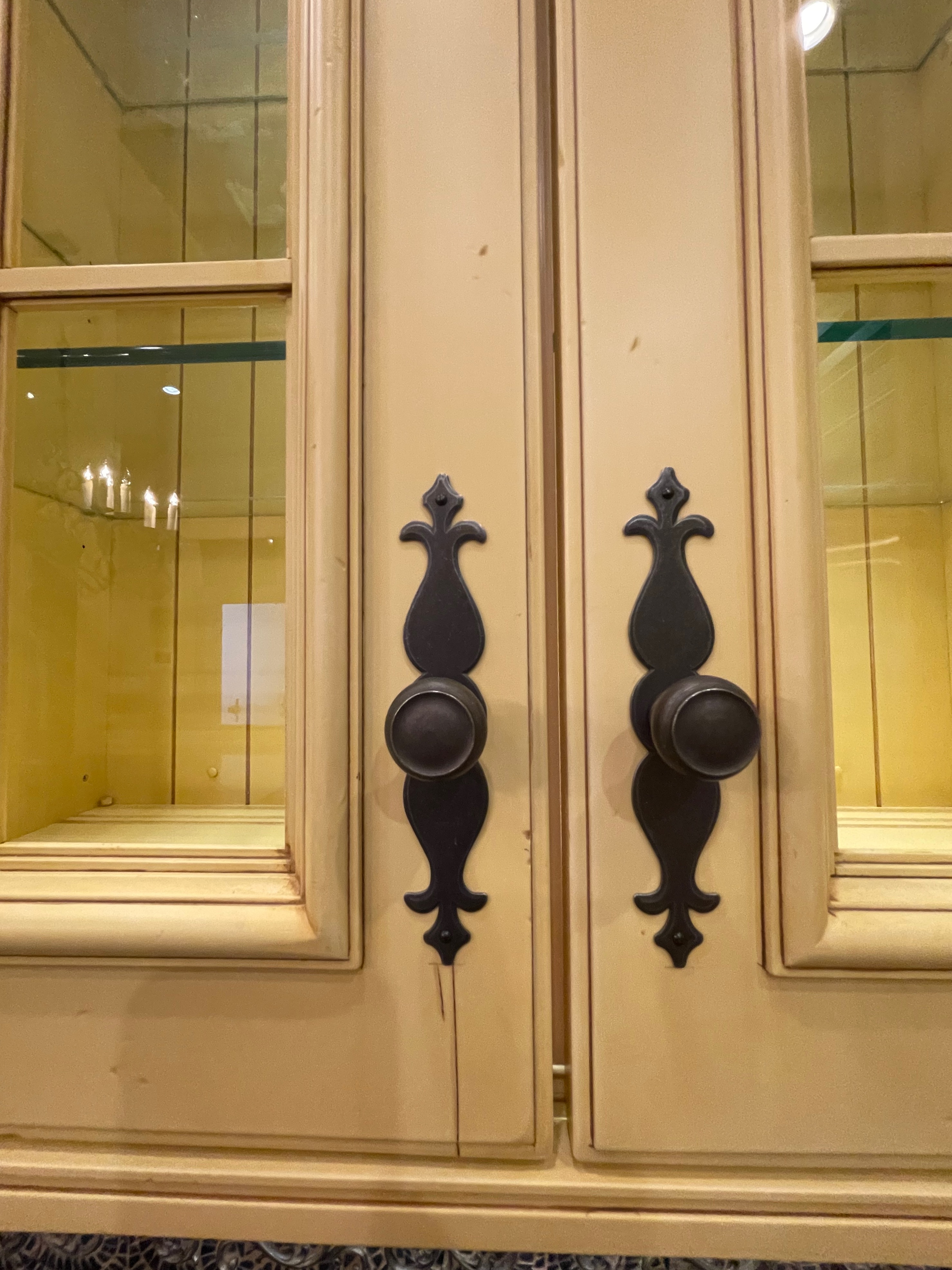 2-Four door double tall cabinet w/four pull out wood soft close drawers inside Dim.:40”w x 96”h cabinet only/101 ¾”h to the top of the middle crown/105”h to top crown x 24”d