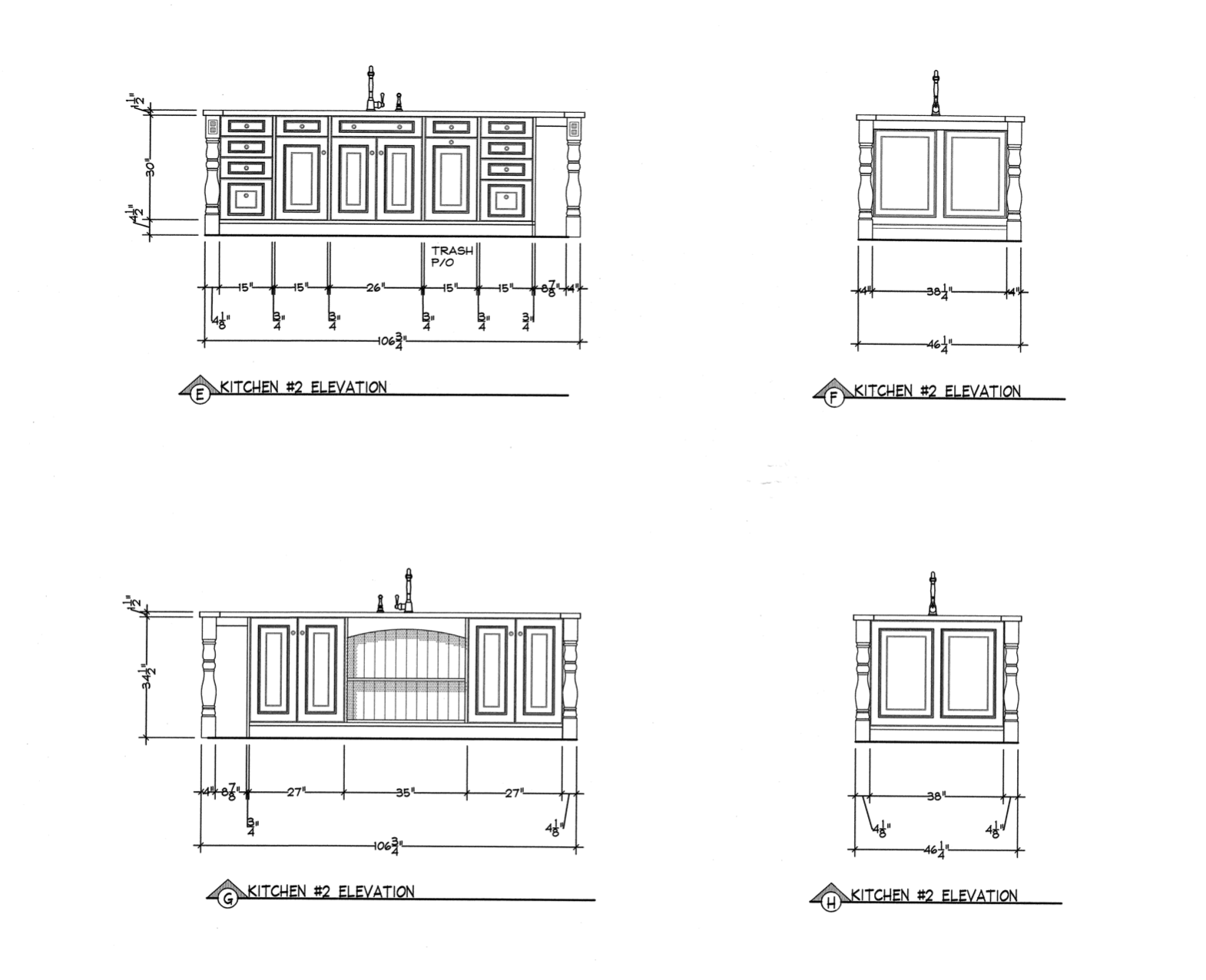 2-Four drawer base cabinets Dim.:15” w x. 36” h x 24”d