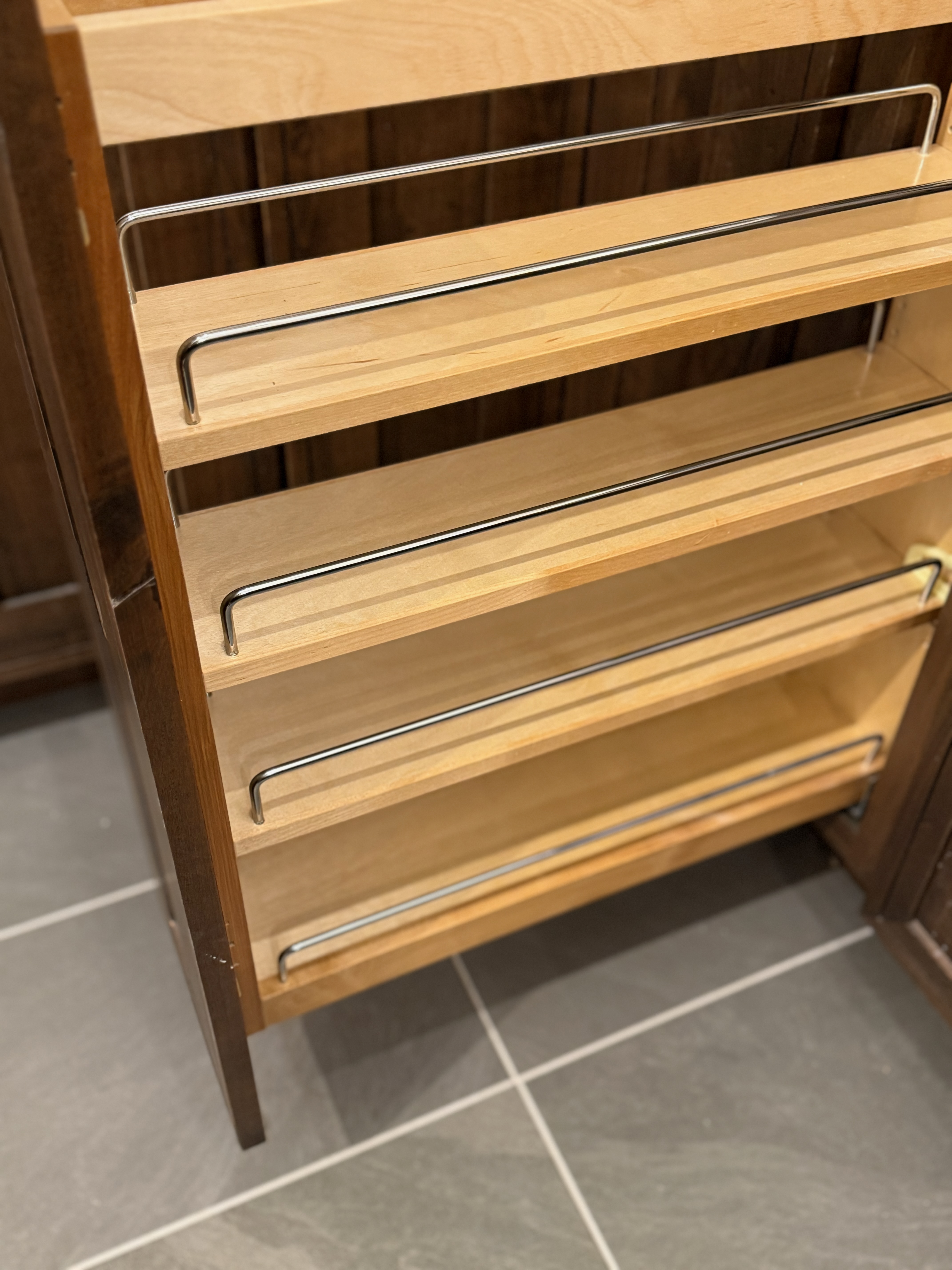 1-One door base cabinet storage with wooden spice shelves inside Dim.: 9:w x 36”h x 24”d