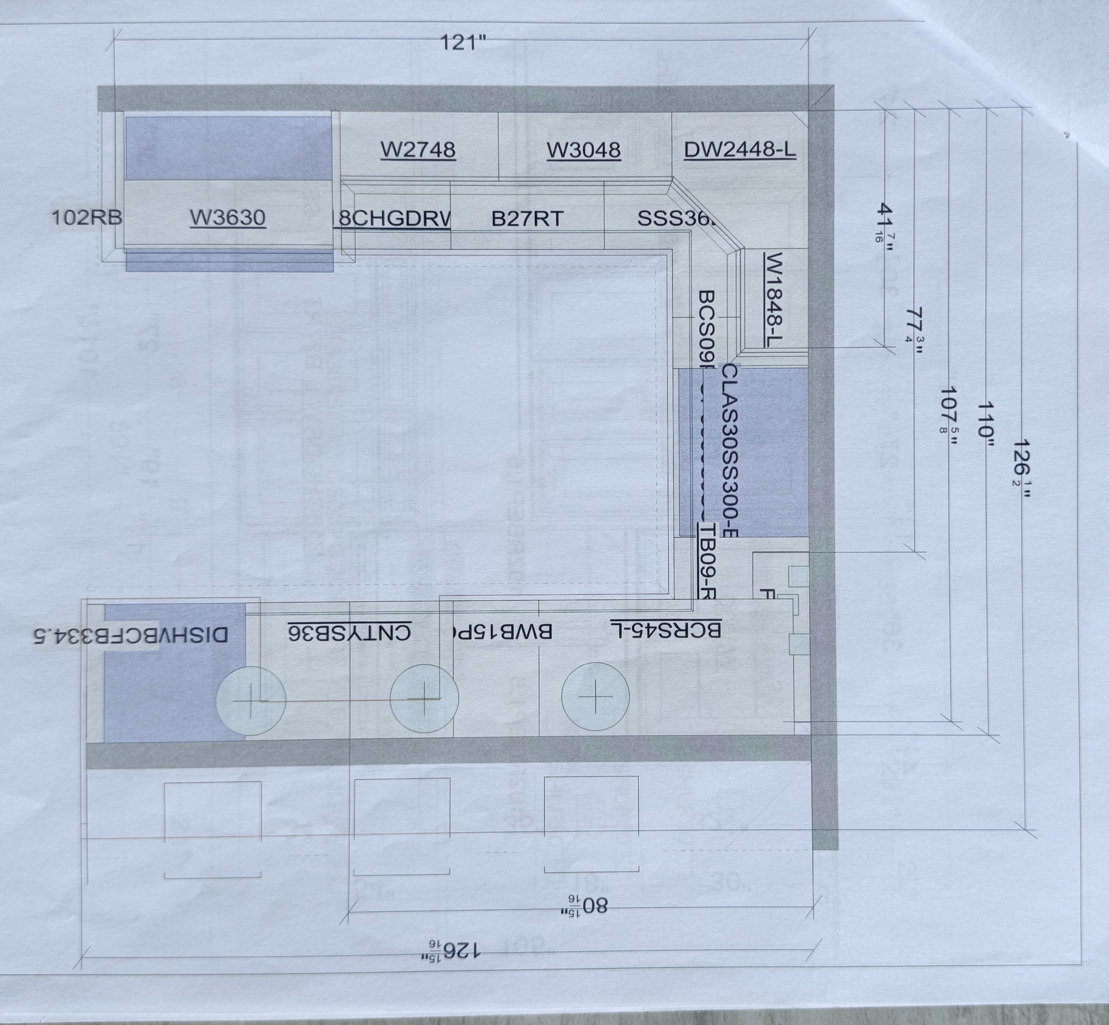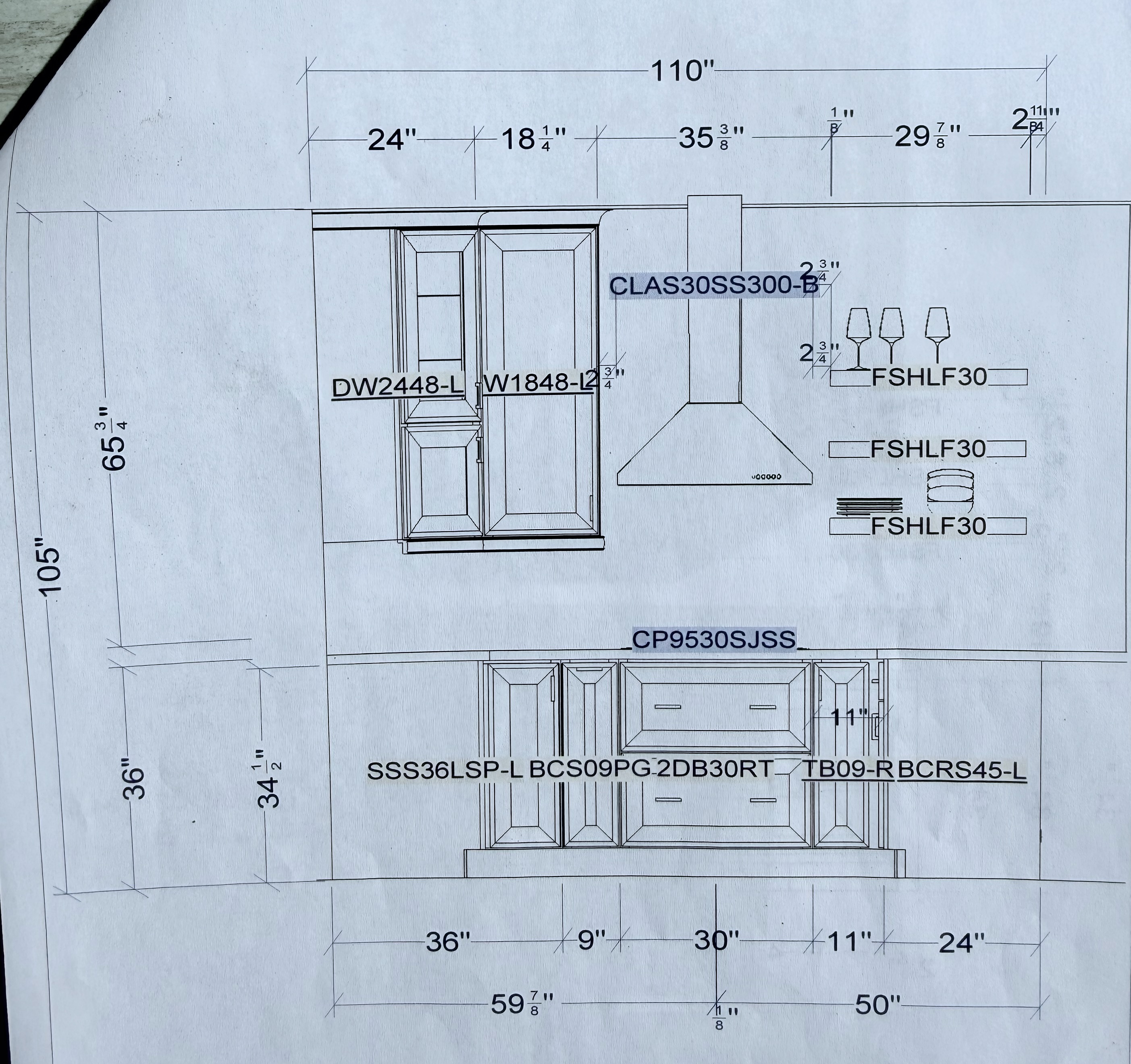 1-Two drawer deeper for pots and pans, that has an opening for a 30" cooktop Dim,: 30” w x 36”H x 24”d