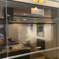 24” Miele speed oven in obsidian black on the pantry wall Model #H6800BMOBSW Dimensions: 24"w/30"w with trim kit