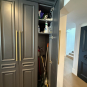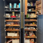 2-Two door double tall cabinet with 5 walnut wood soft-close pull-out drawers inside. One of the cabinets has two Walnut wood organizers/shelving on the doors $900-$1,100 Dim.:30”w x 89 ¾”h cabinet only/ 94 ½”h w/crown x 24”d