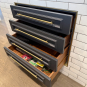 1-Large three drawer base cabinet, looks like it has six drawers, base cabinet Dimensions: 42 5/8”w x 35 ¼”h cabinet only/37”h x 24” d
