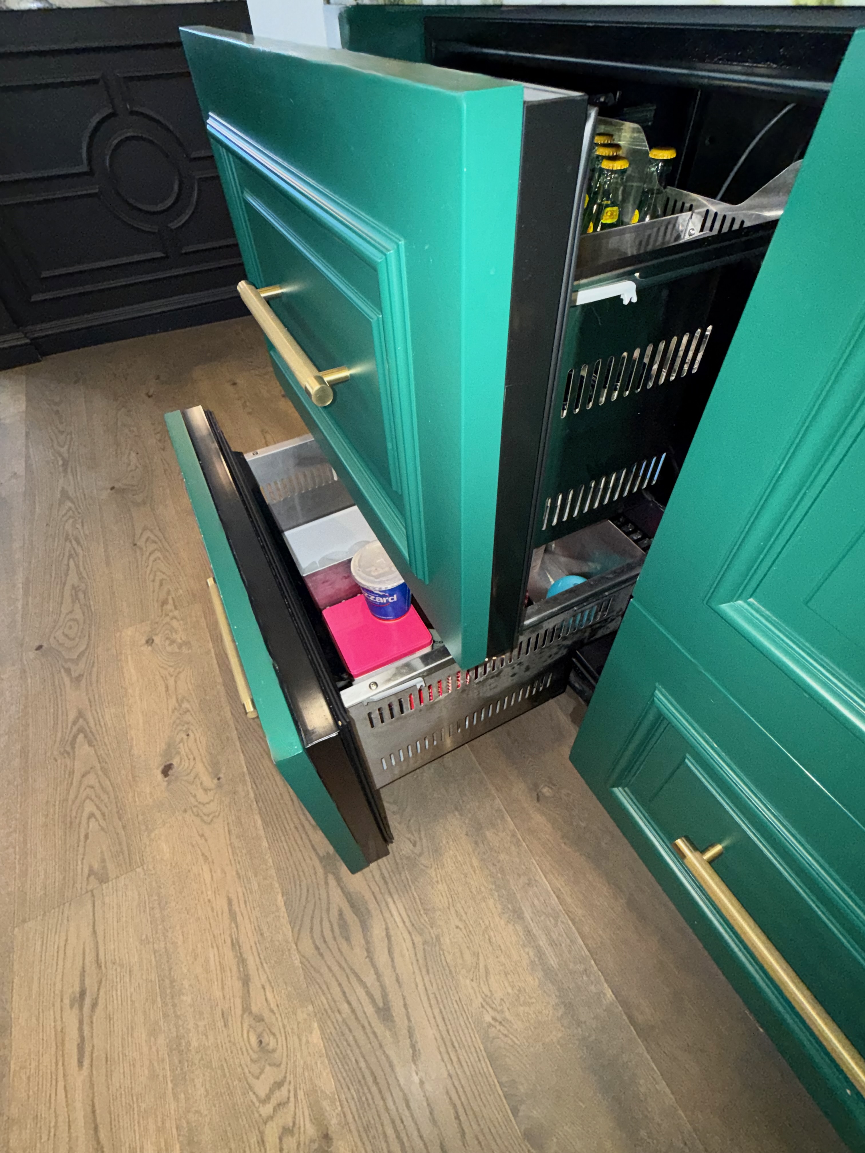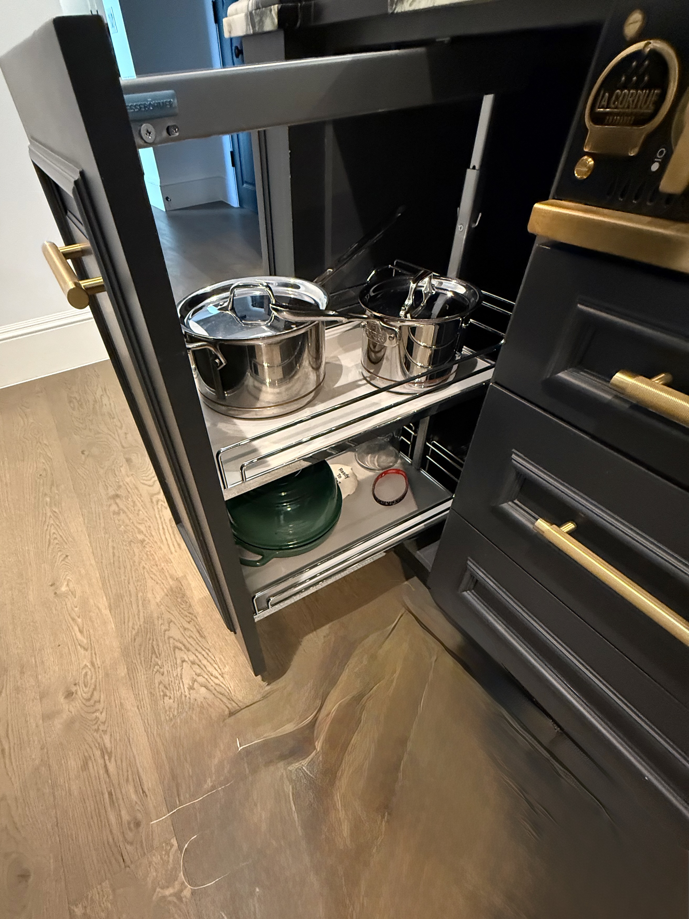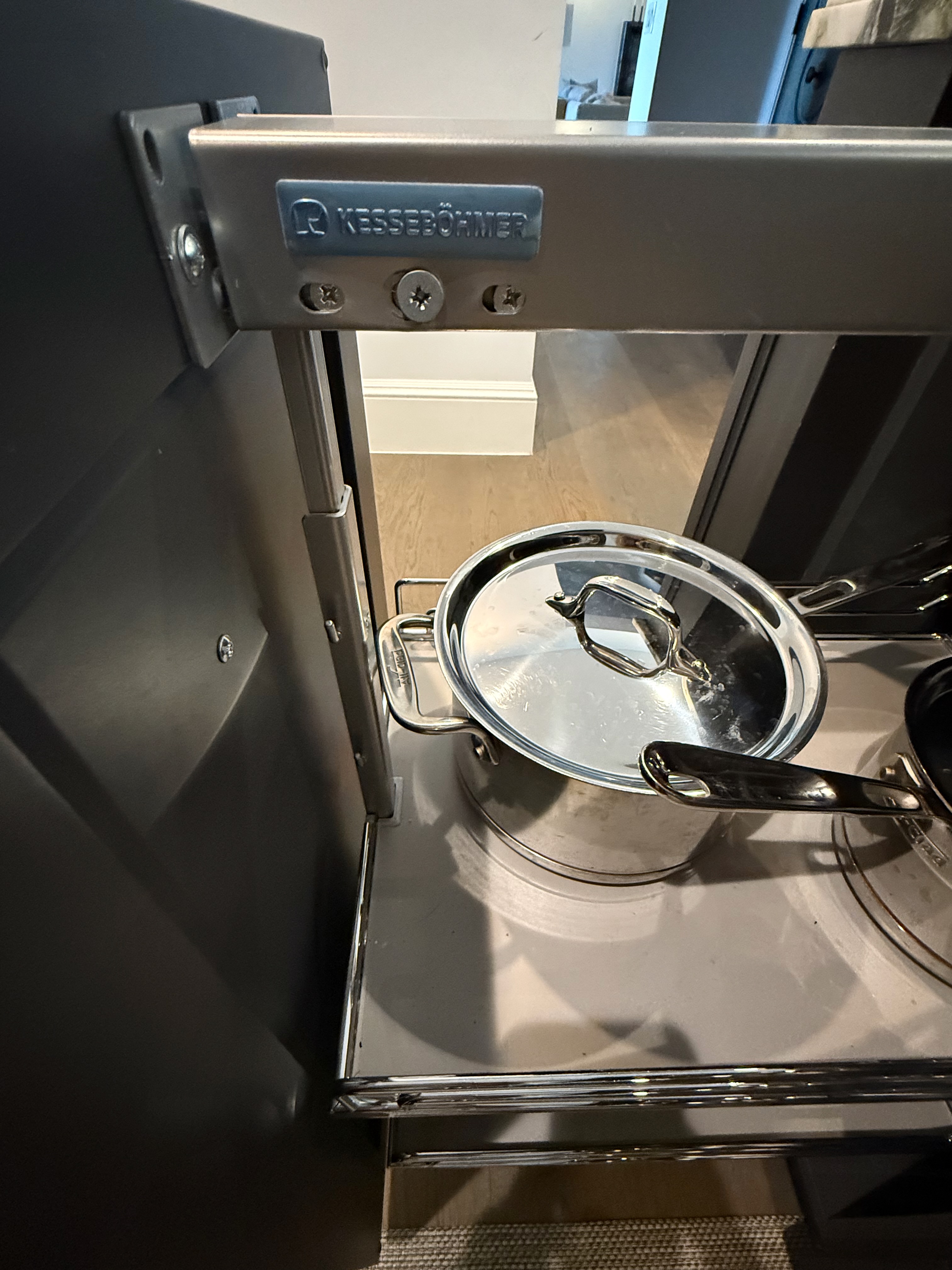 2-One drawer base cabinets with “Kesseboehmer” metal shelf organizers. Listing price new for organizers $600 each Cabinet Dimensions: 17 1/2” w x 37 “h x 24”d