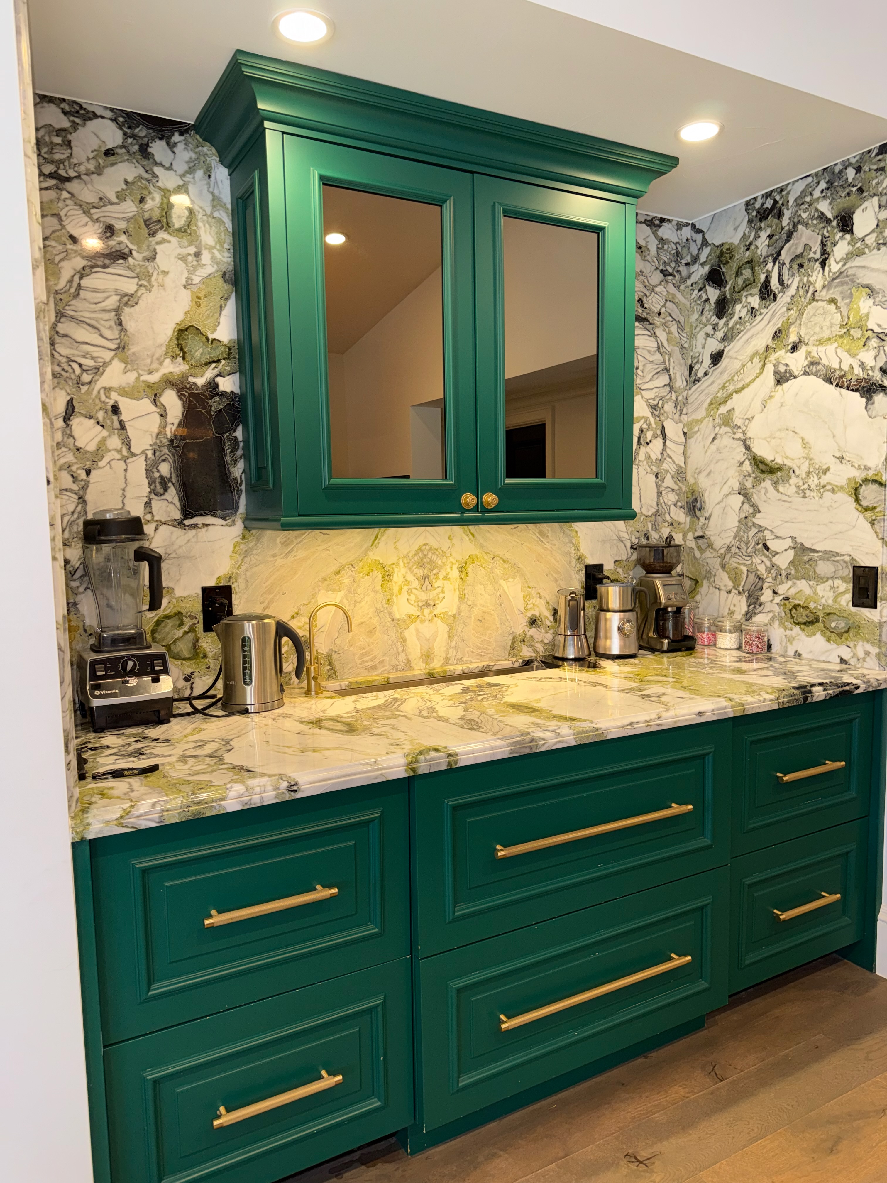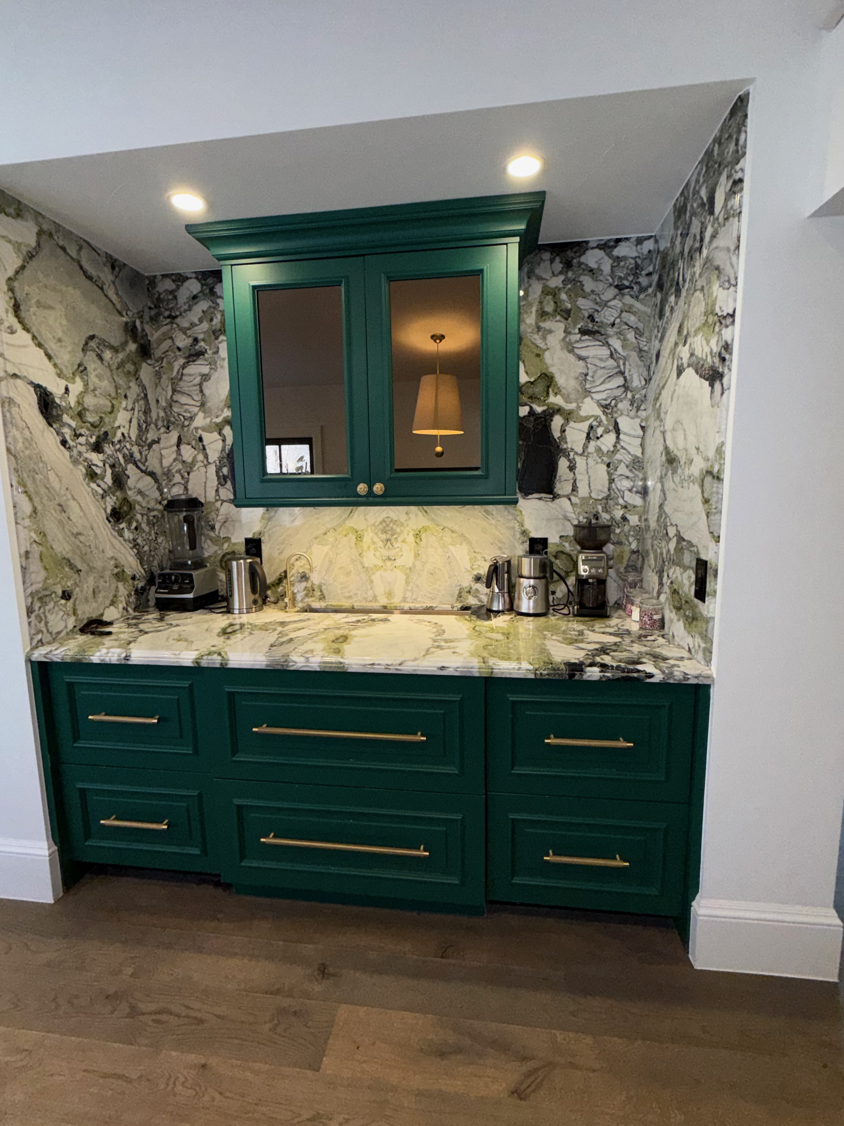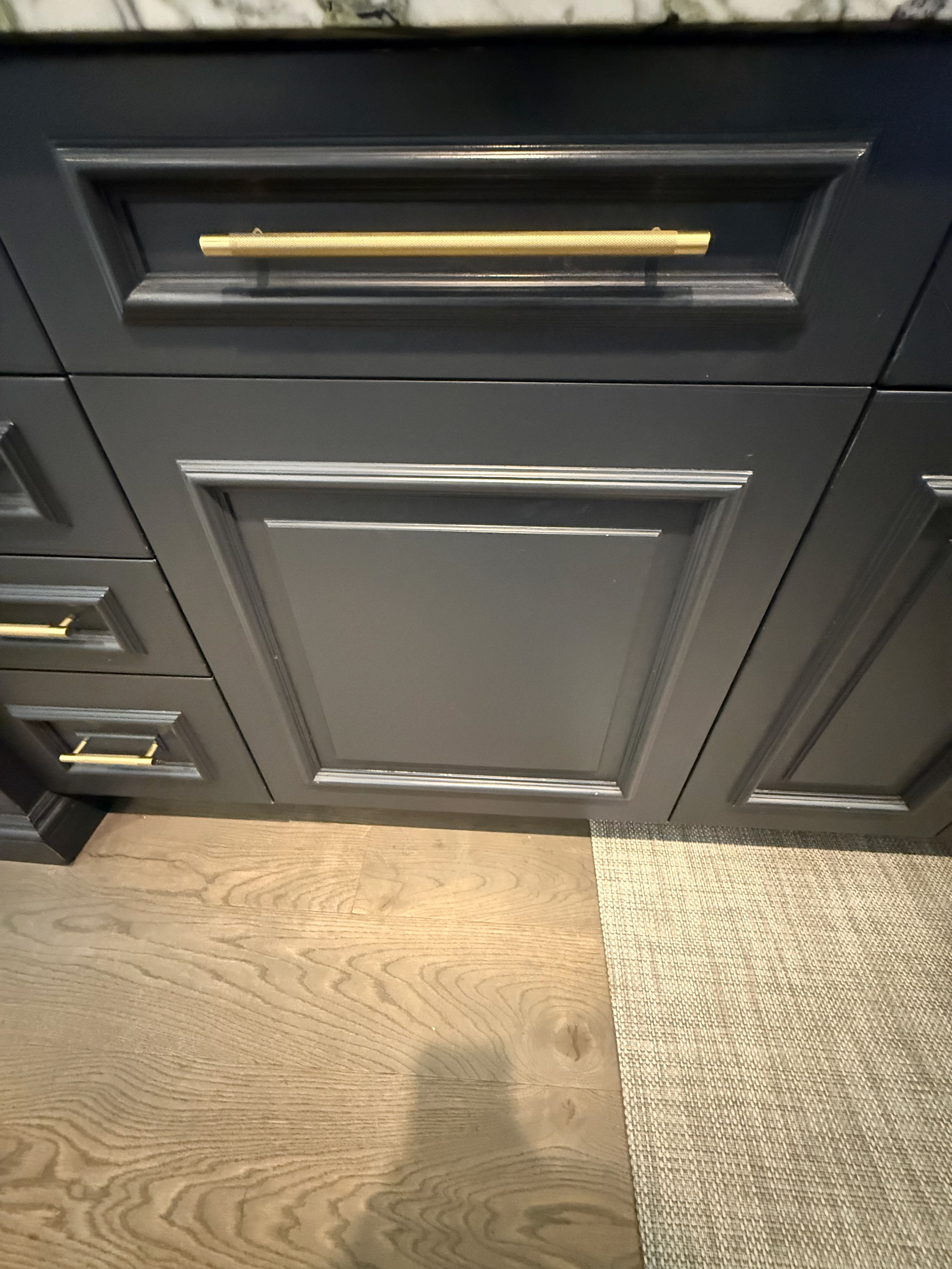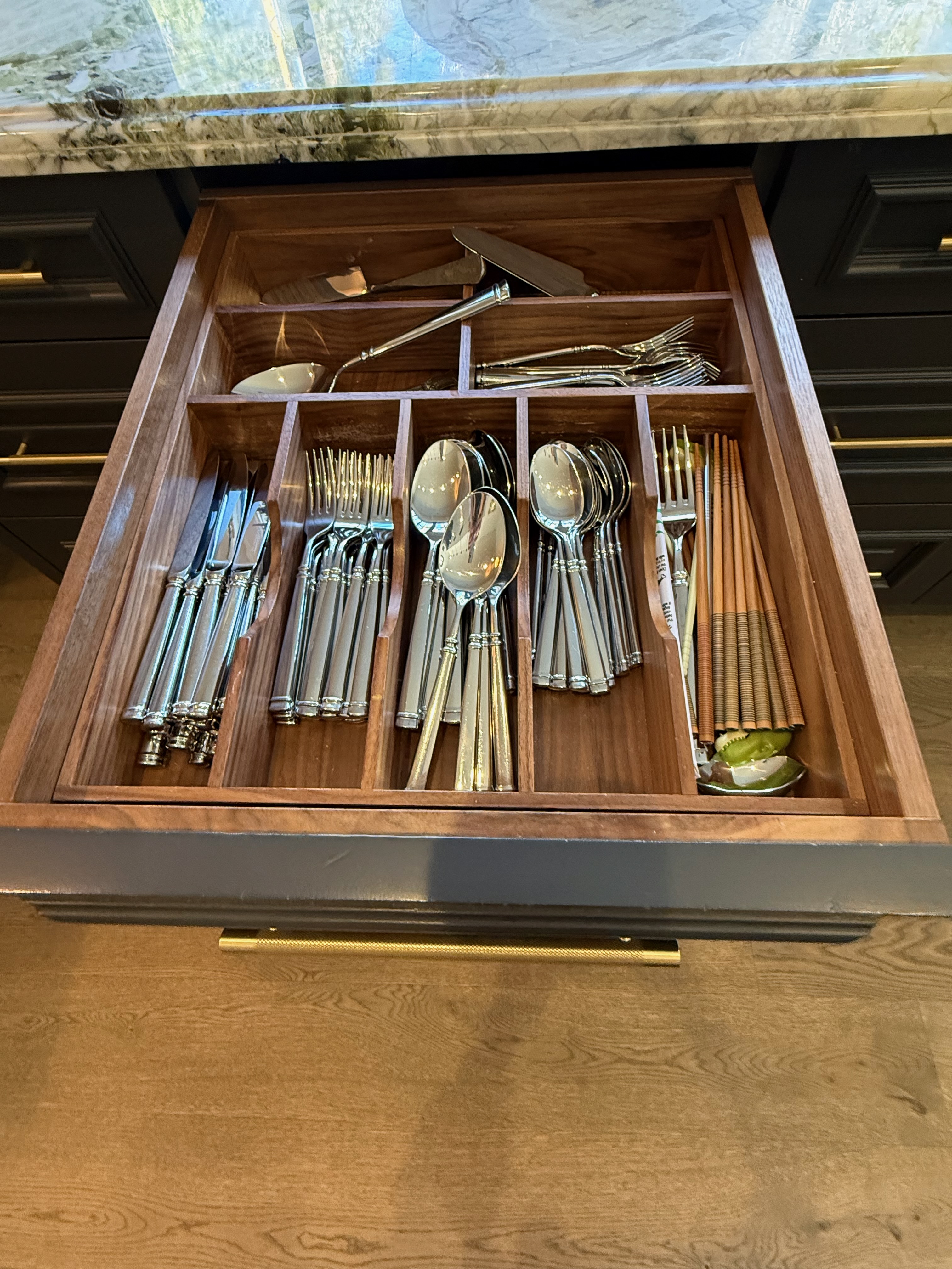 2-One door base cabinets on the back of the island with Walnut wood roll-out drawers inside +$600