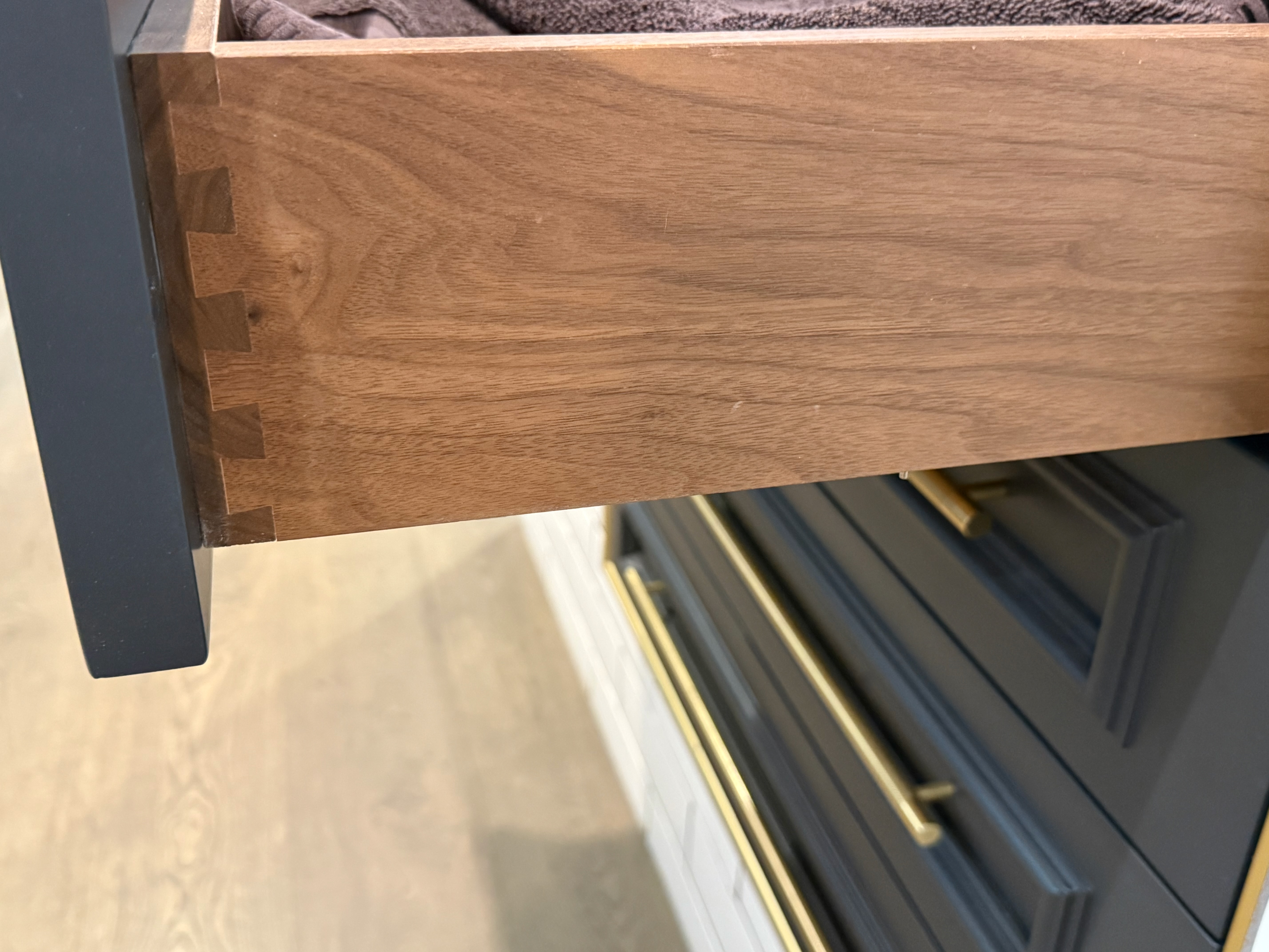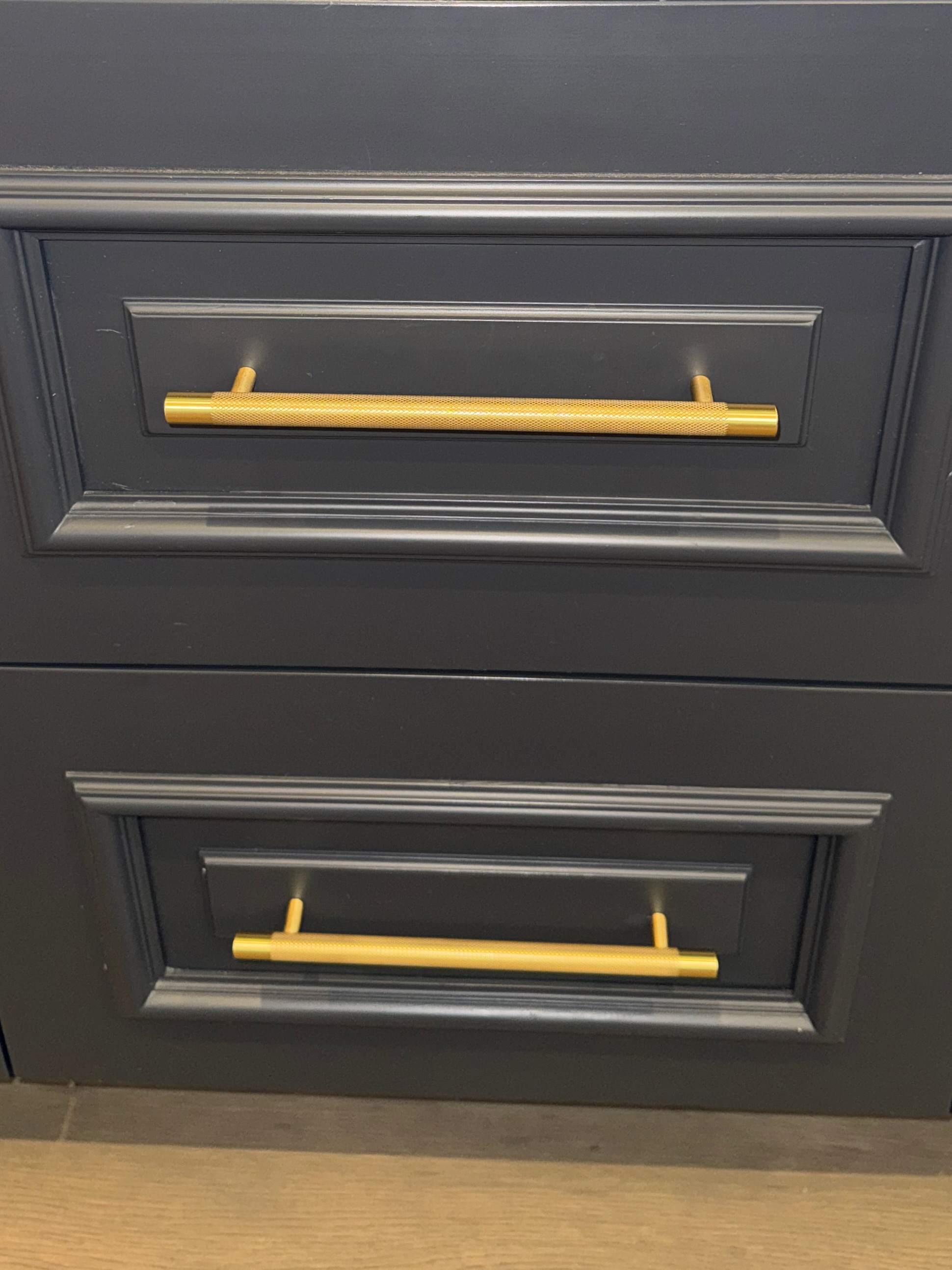 2-Two drawer base cabinets under the range top for pots and pans Dimensions: 35 1/2“ w x 37 “h x 24 “d