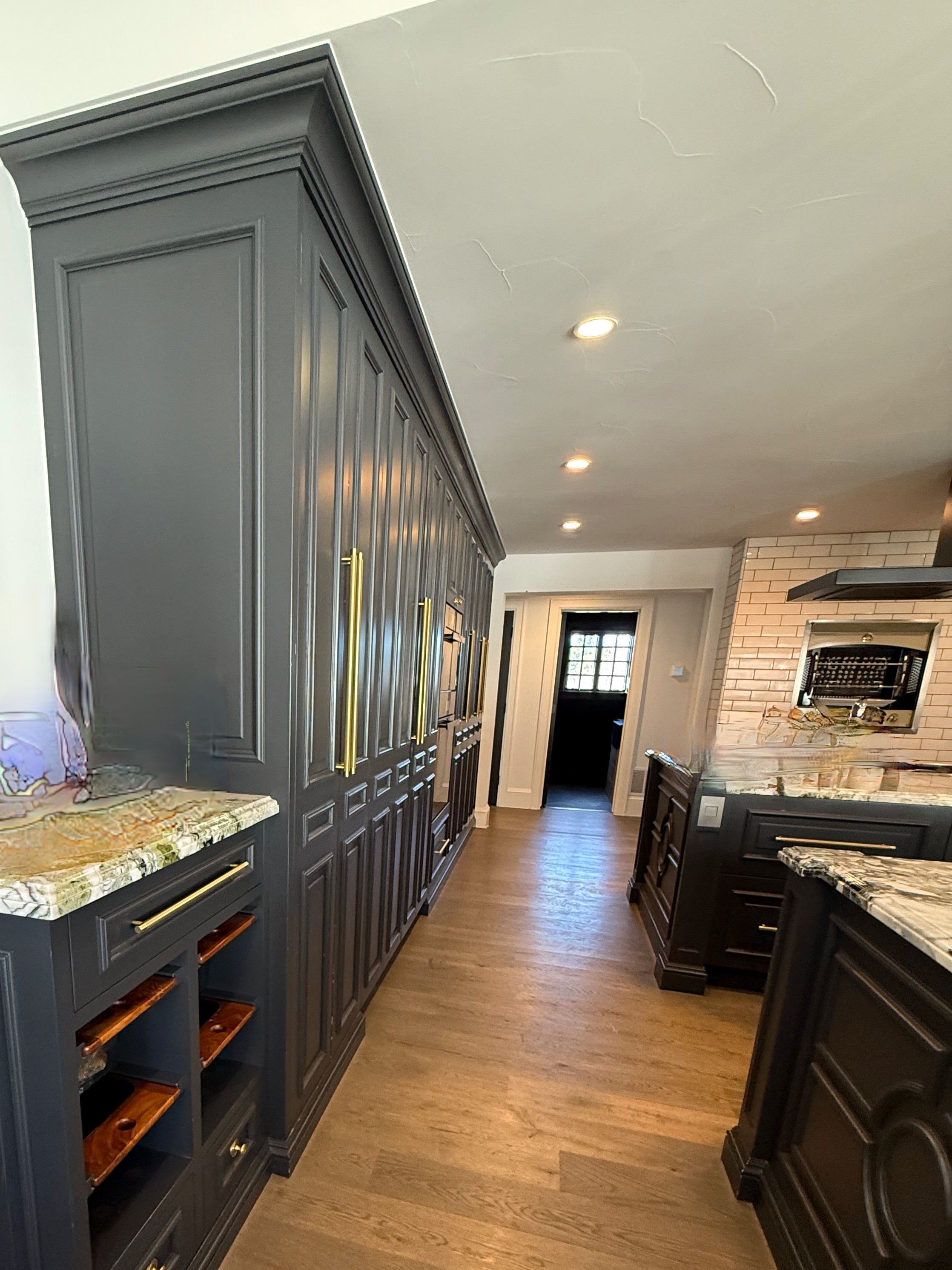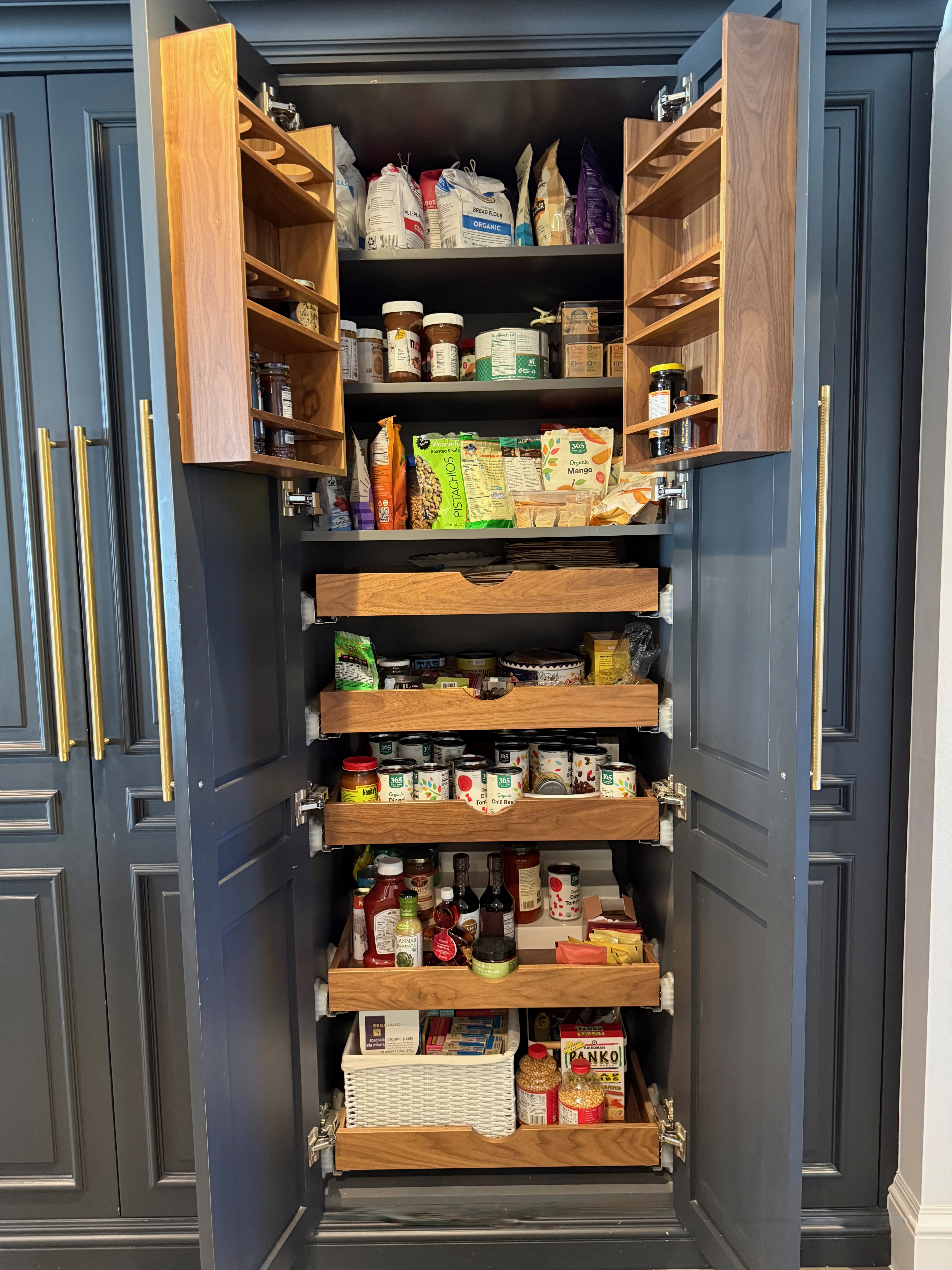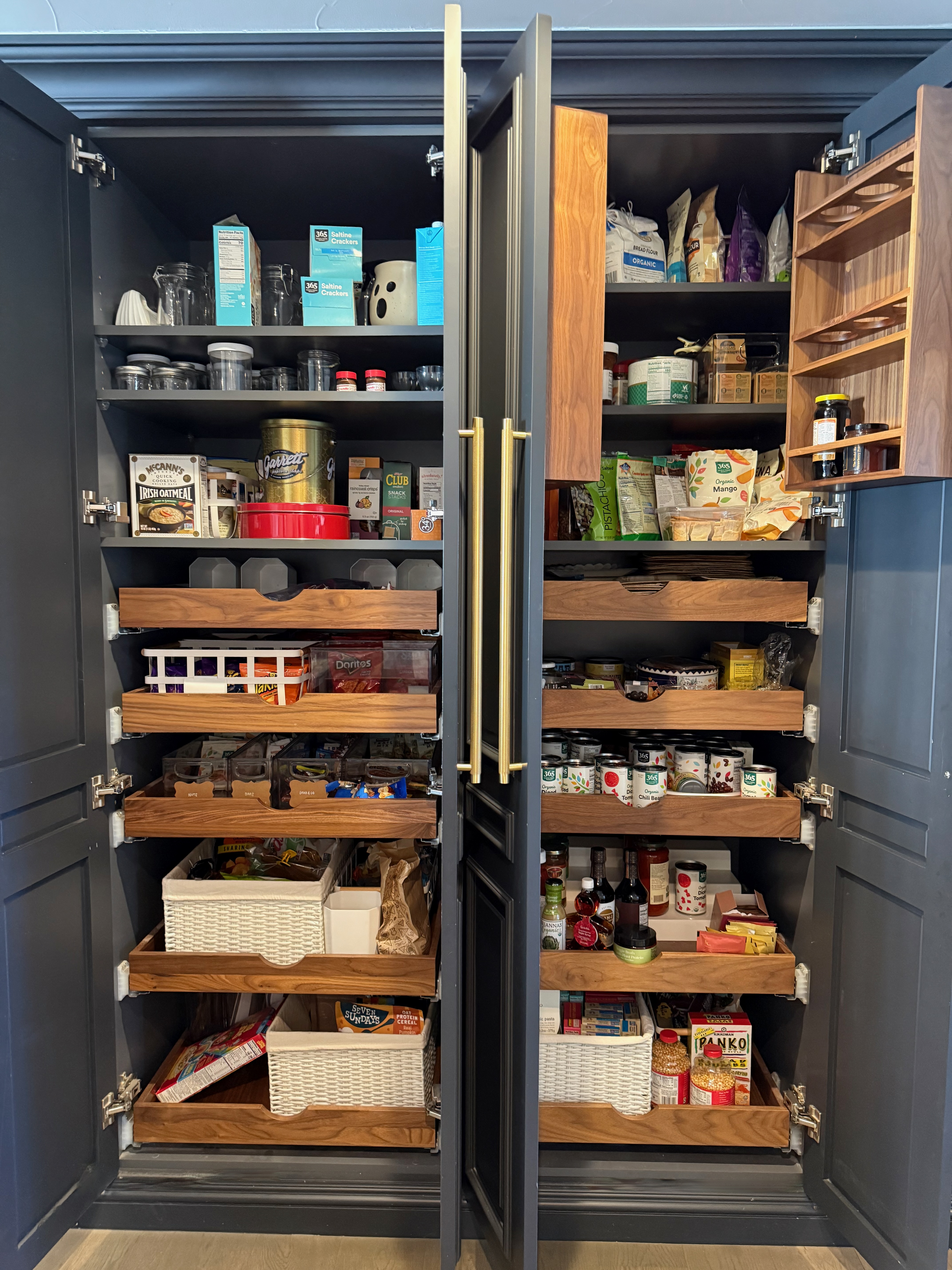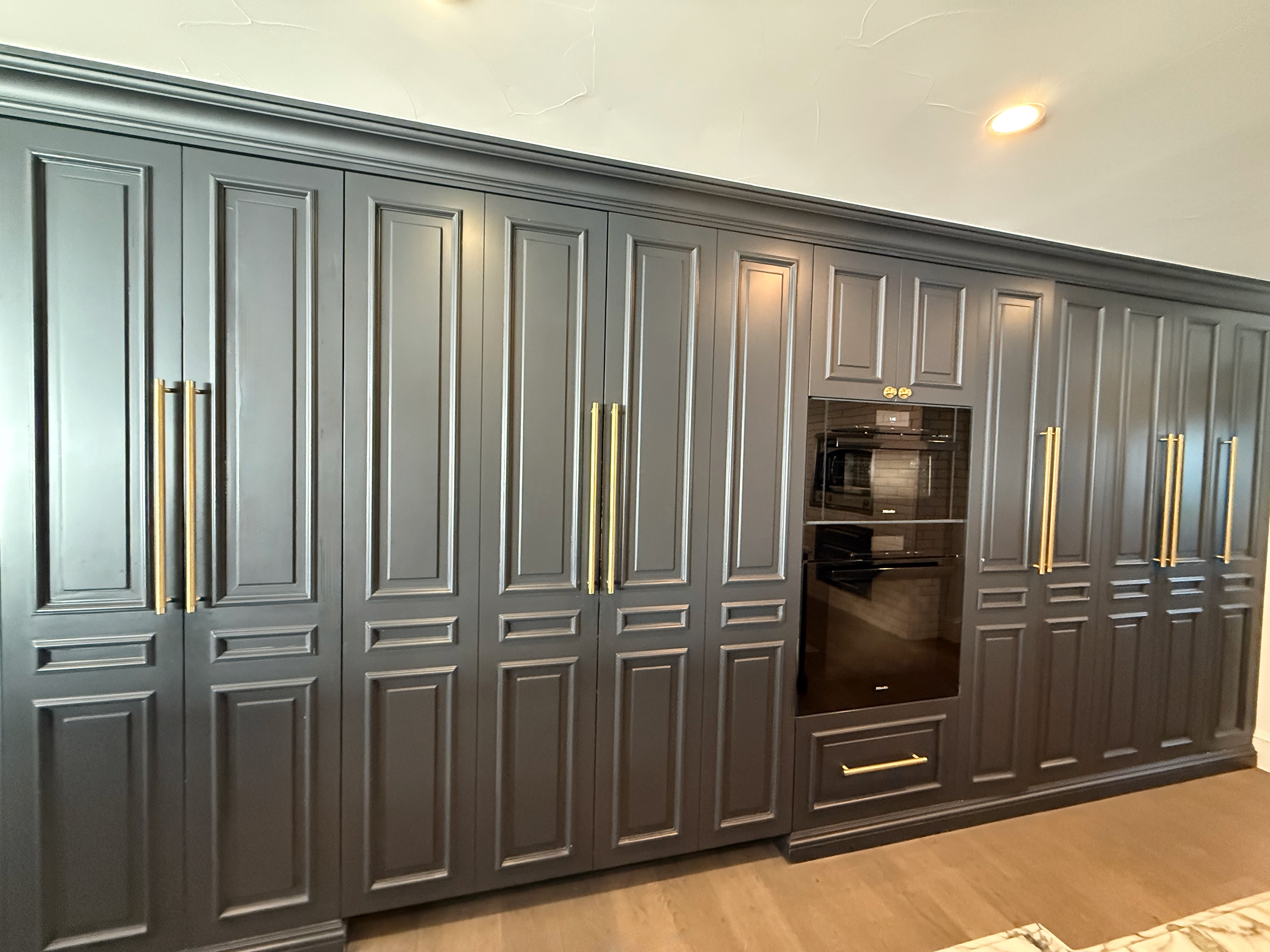 30” Miele warming drawer panel ready on the pantry wall below the oven