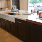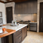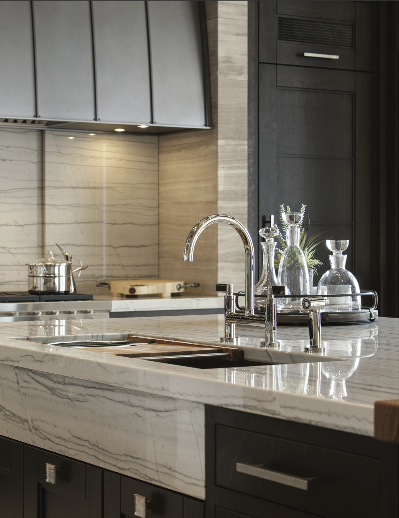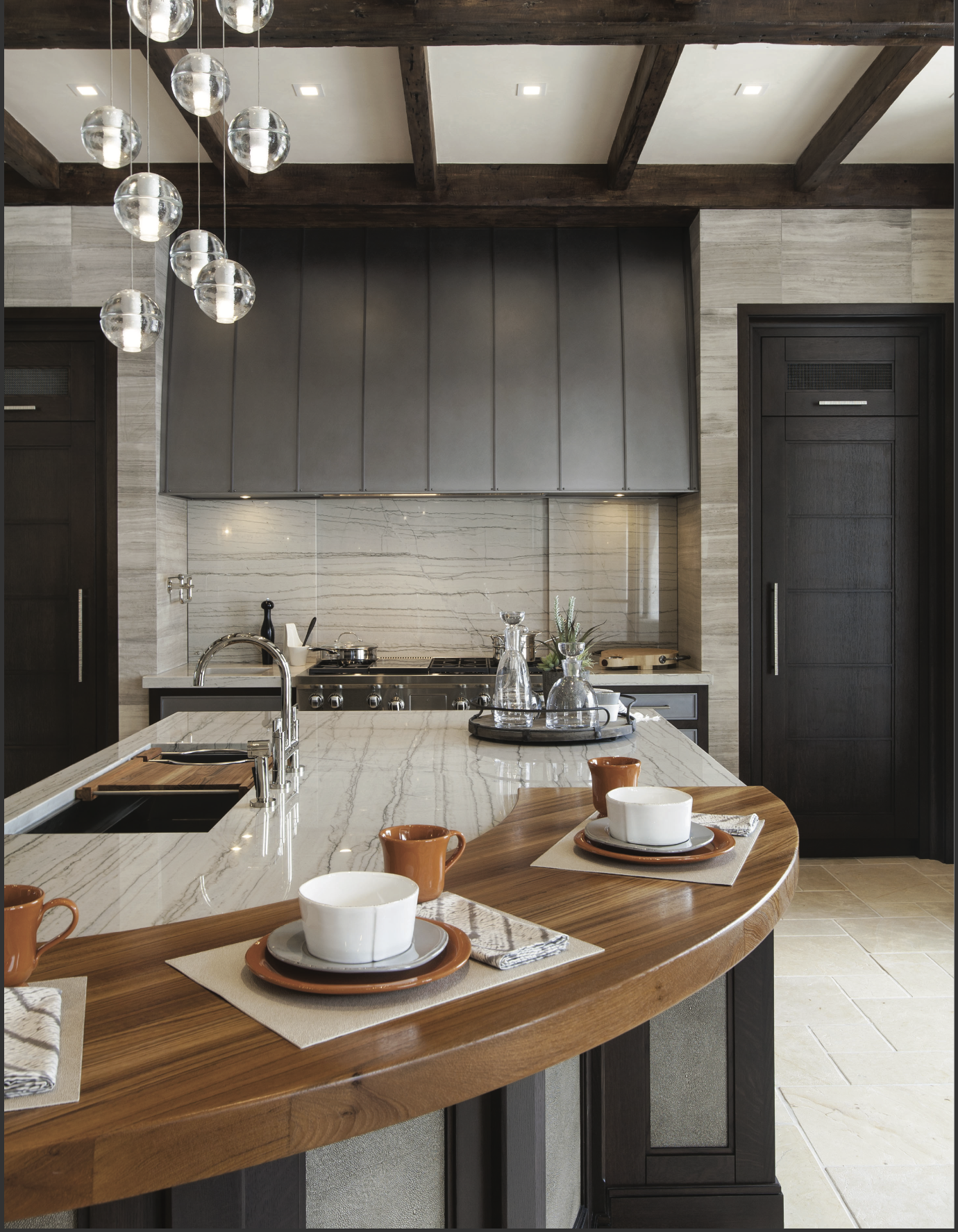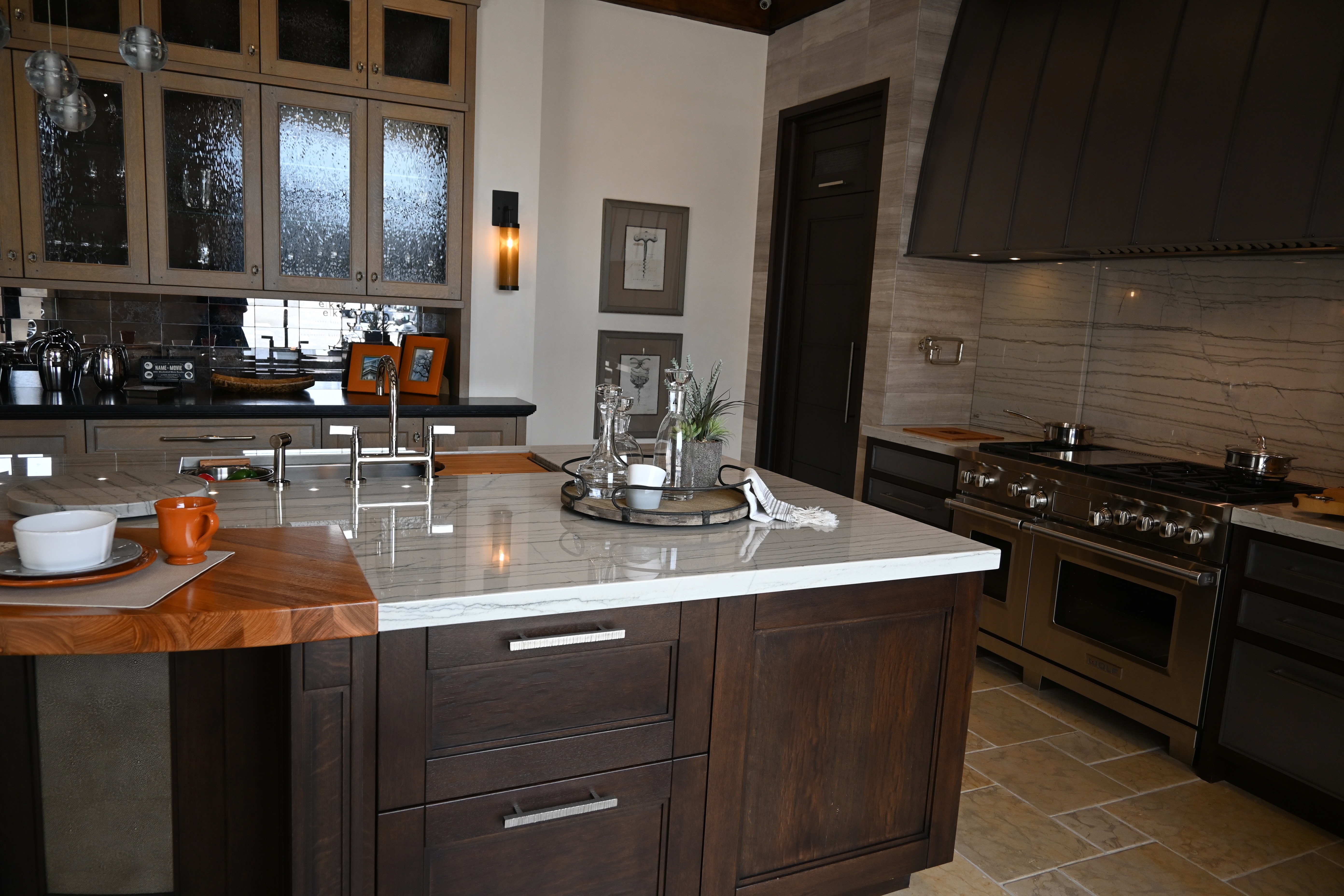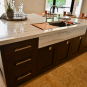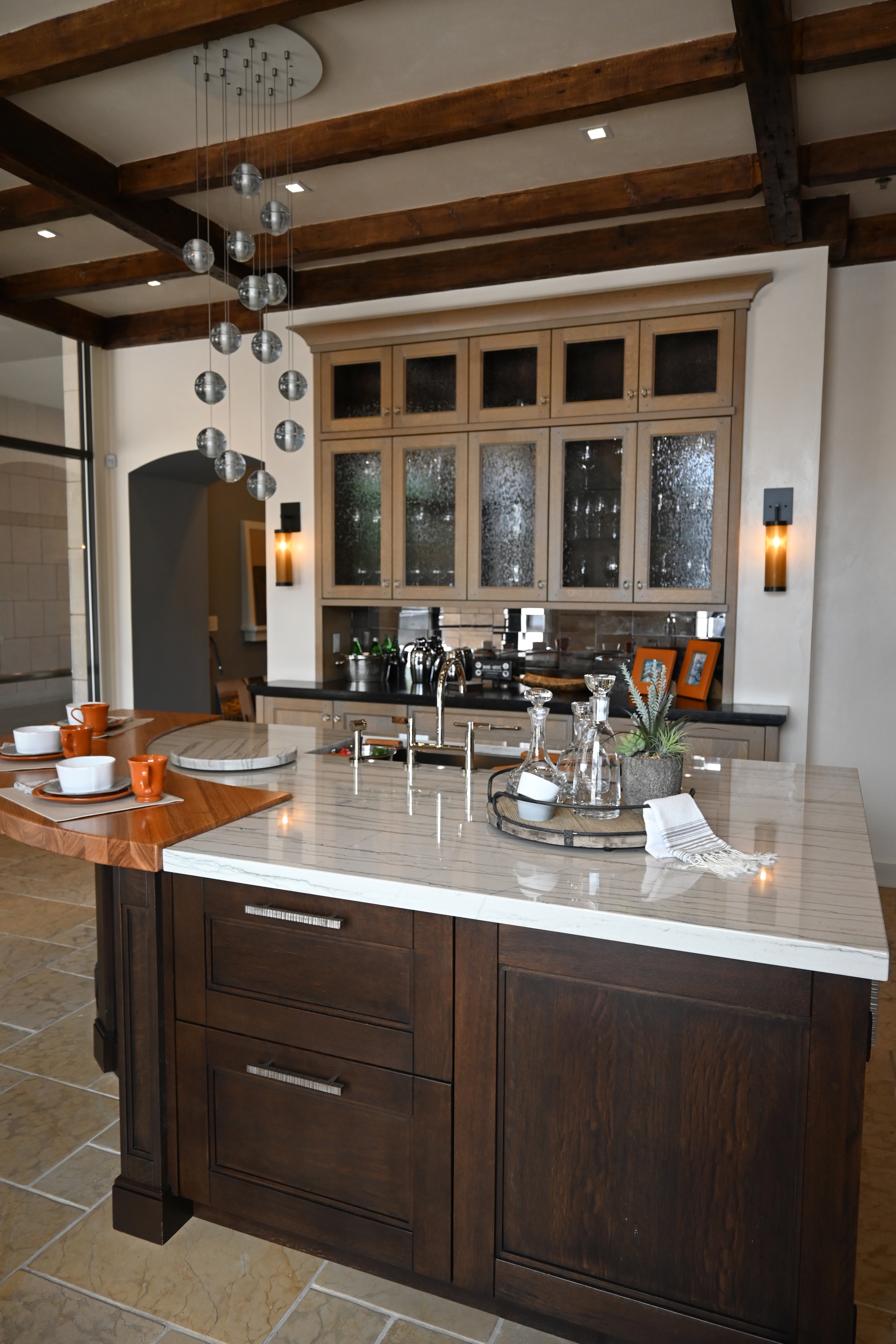 ISLAND-Quartzite countertops with quarter sawn white oak cabinetry and paneling with an espresso finish