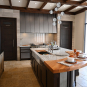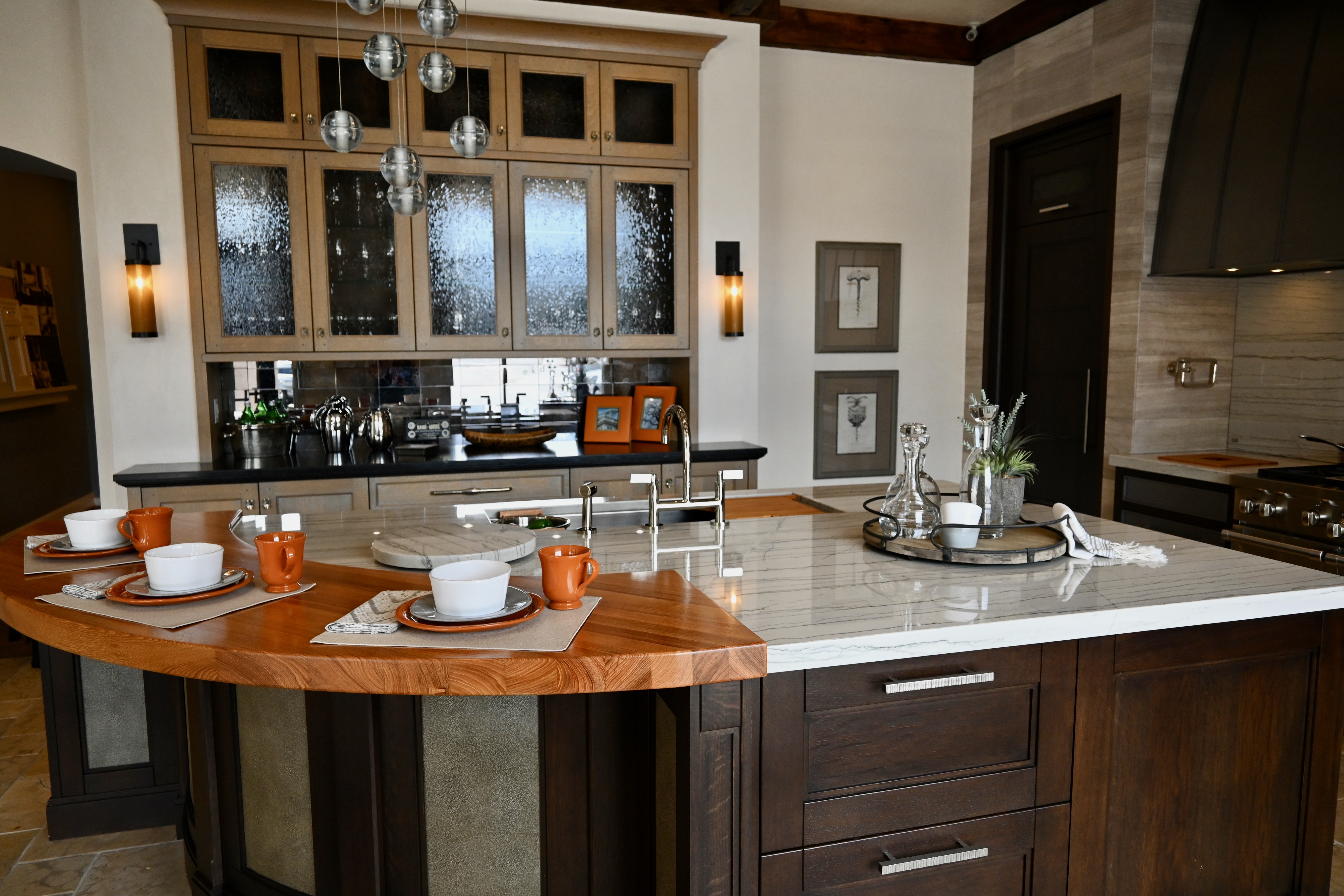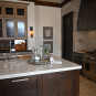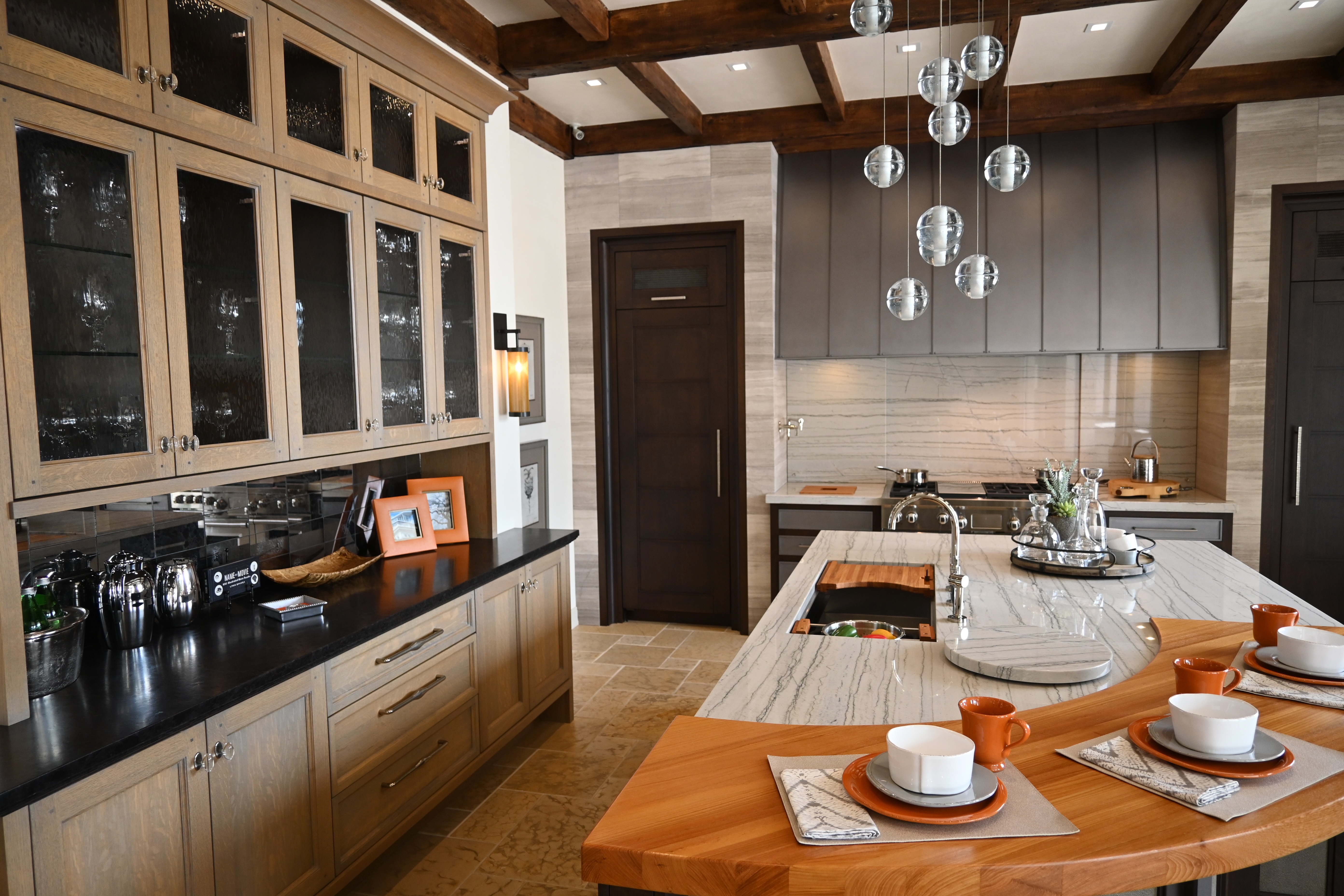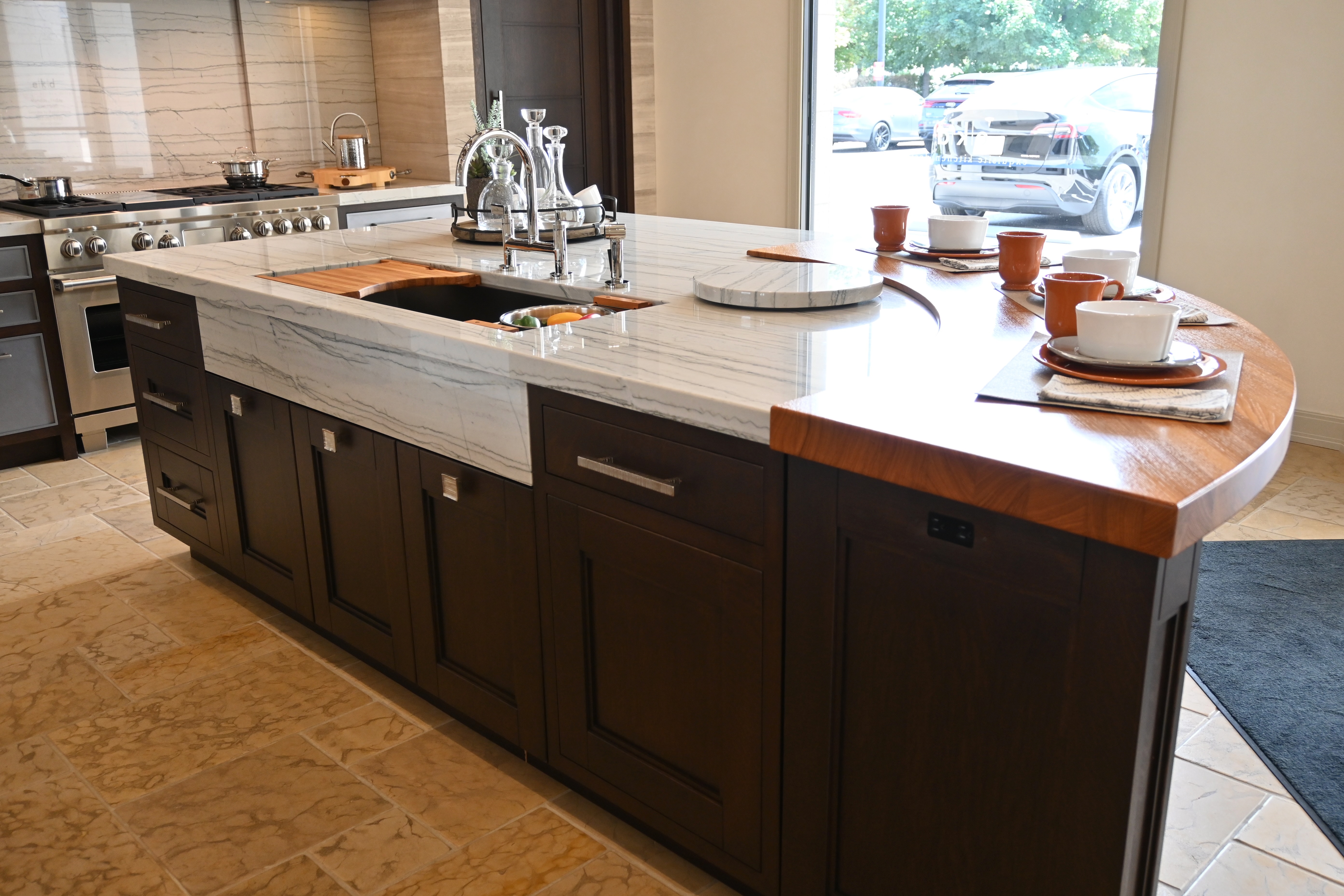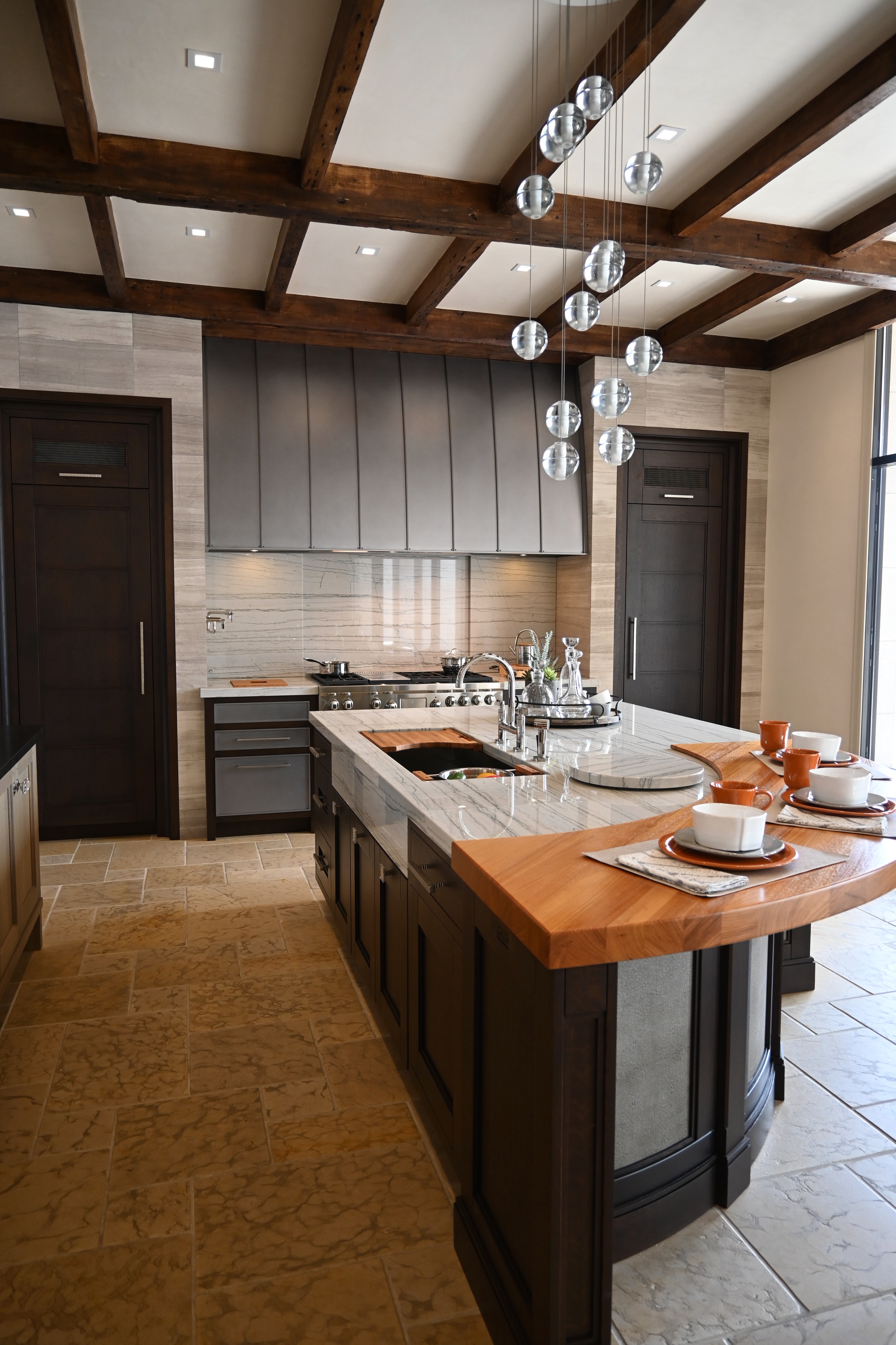 ISLAND-Quartzite countertops with quarter sawn white oak cabinetry and paneling with an espresso finish