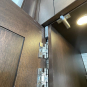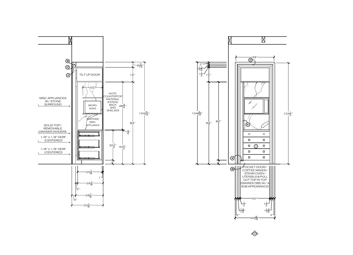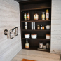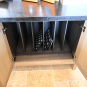 2-Shelving cabinets behind the range behind the quartz sliding doors Dim.: 24” w x 36”h x 6”d