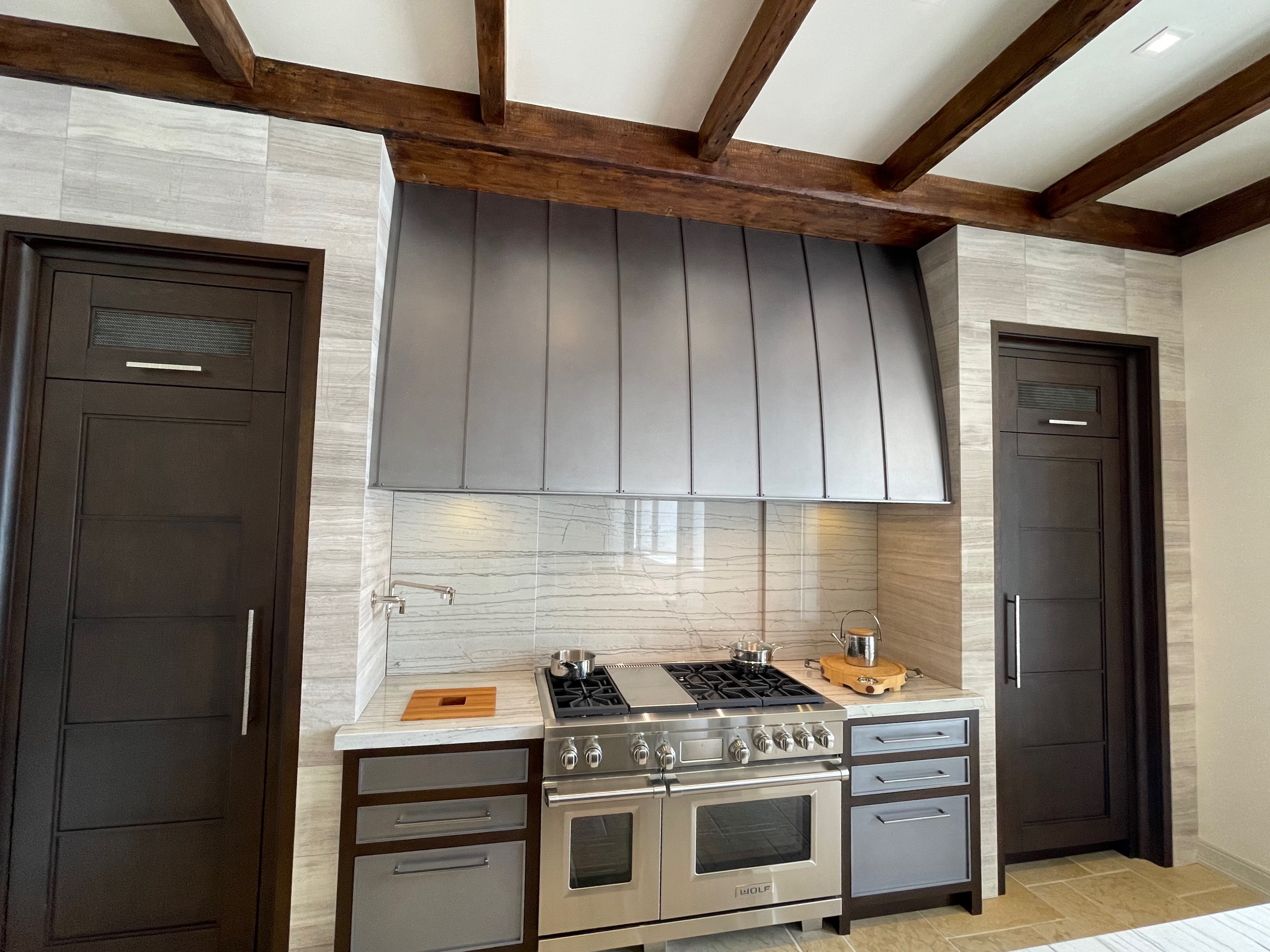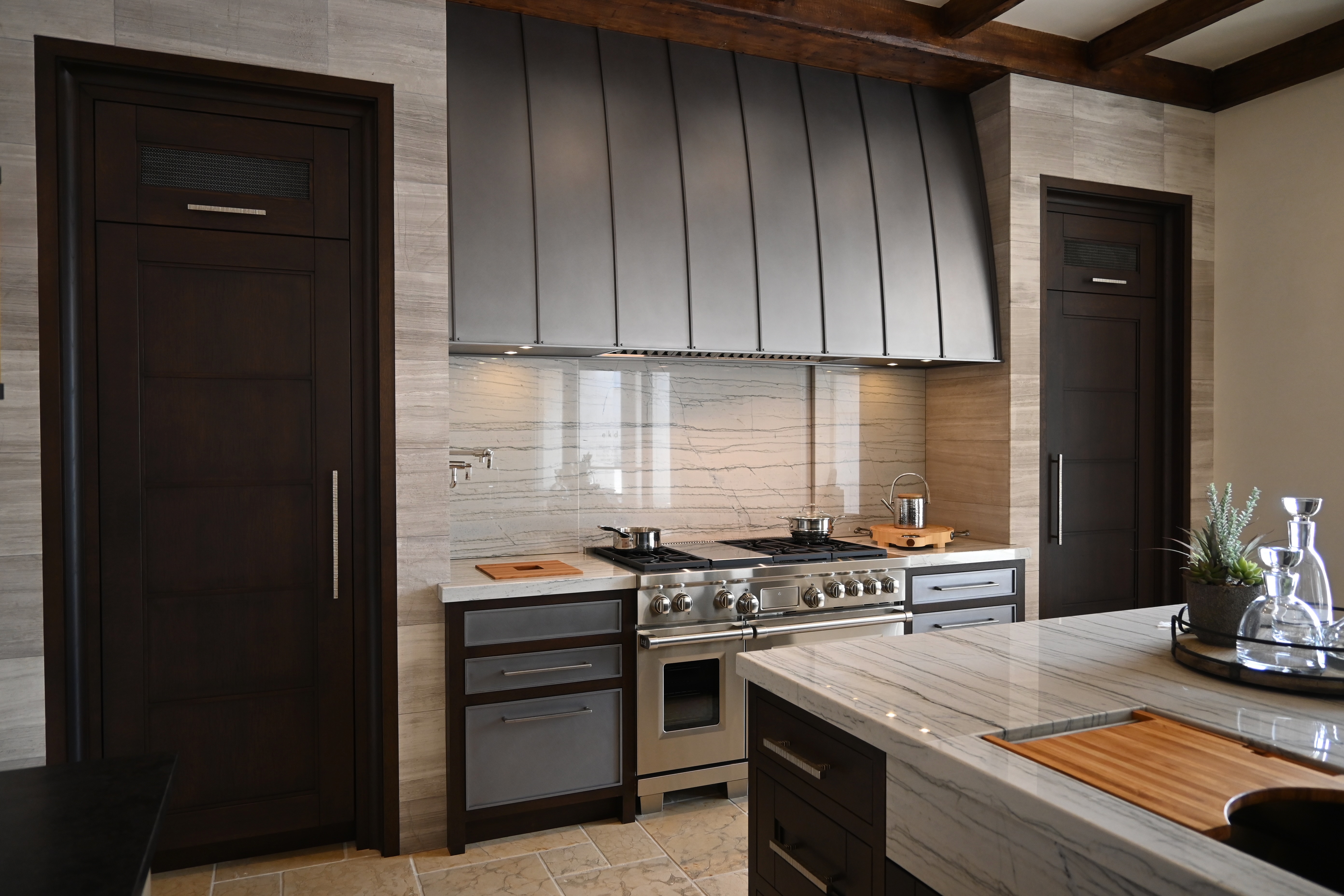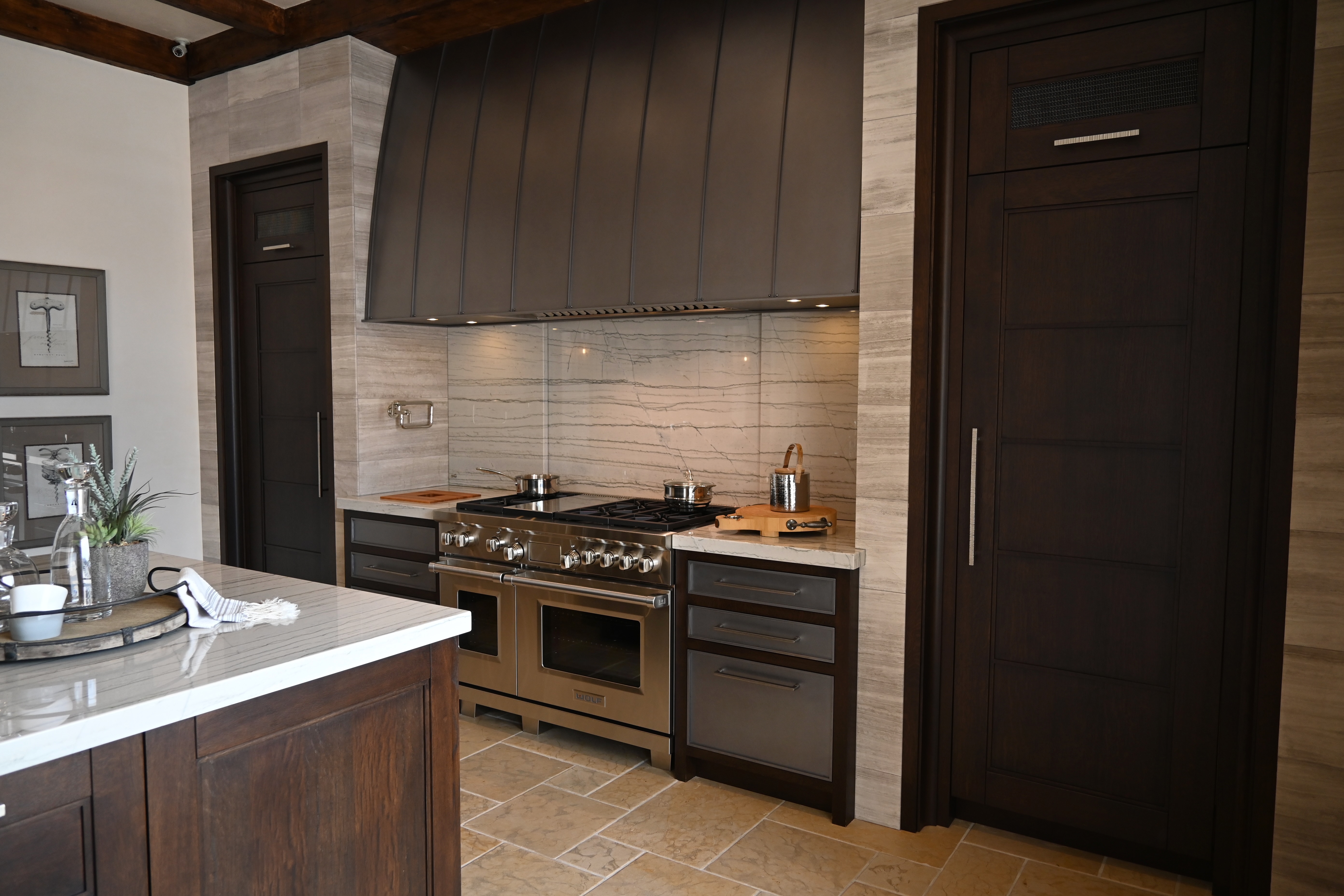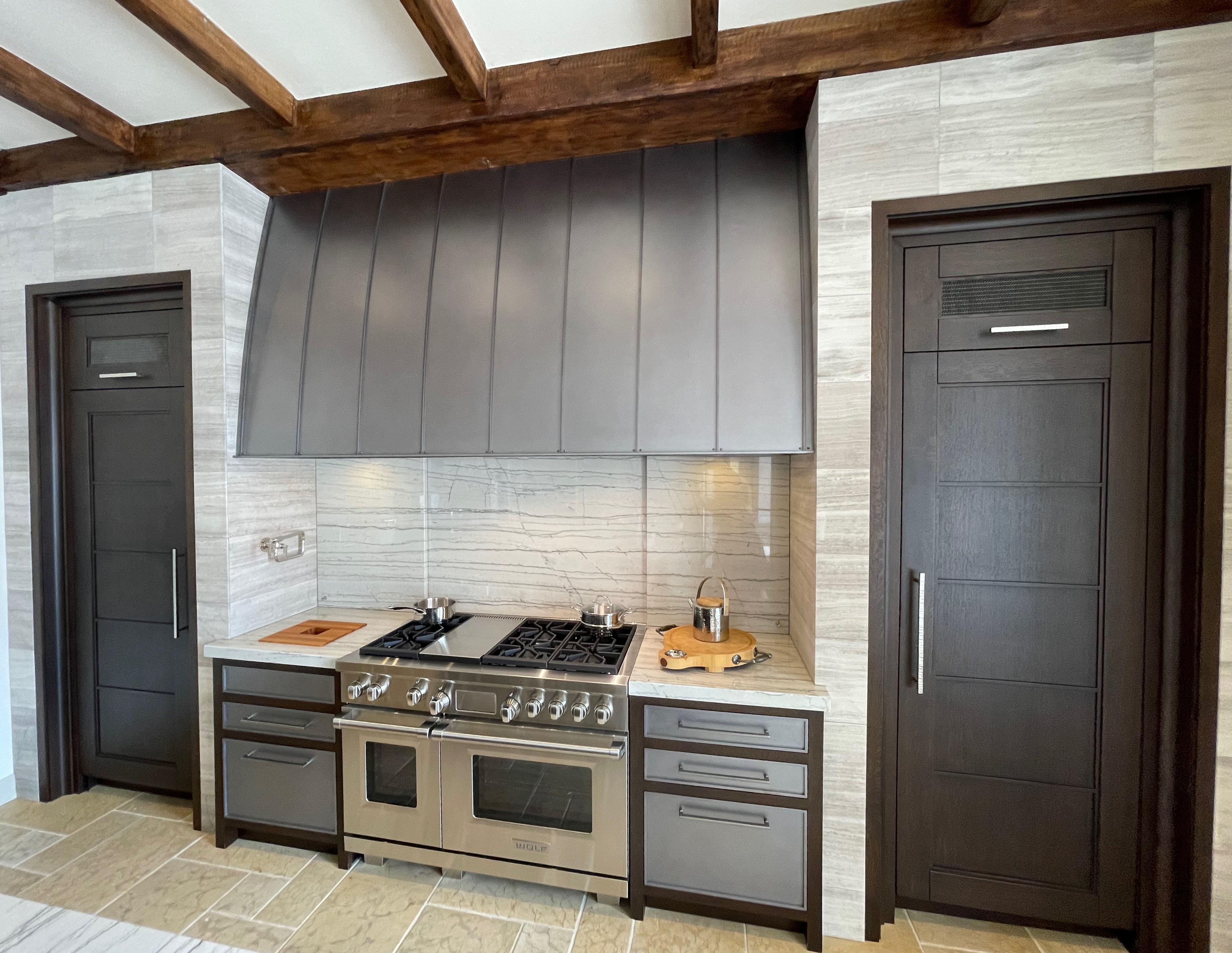 RANGE WALL- Cabinets & doors are quarter sawn white oak with an espresso finish