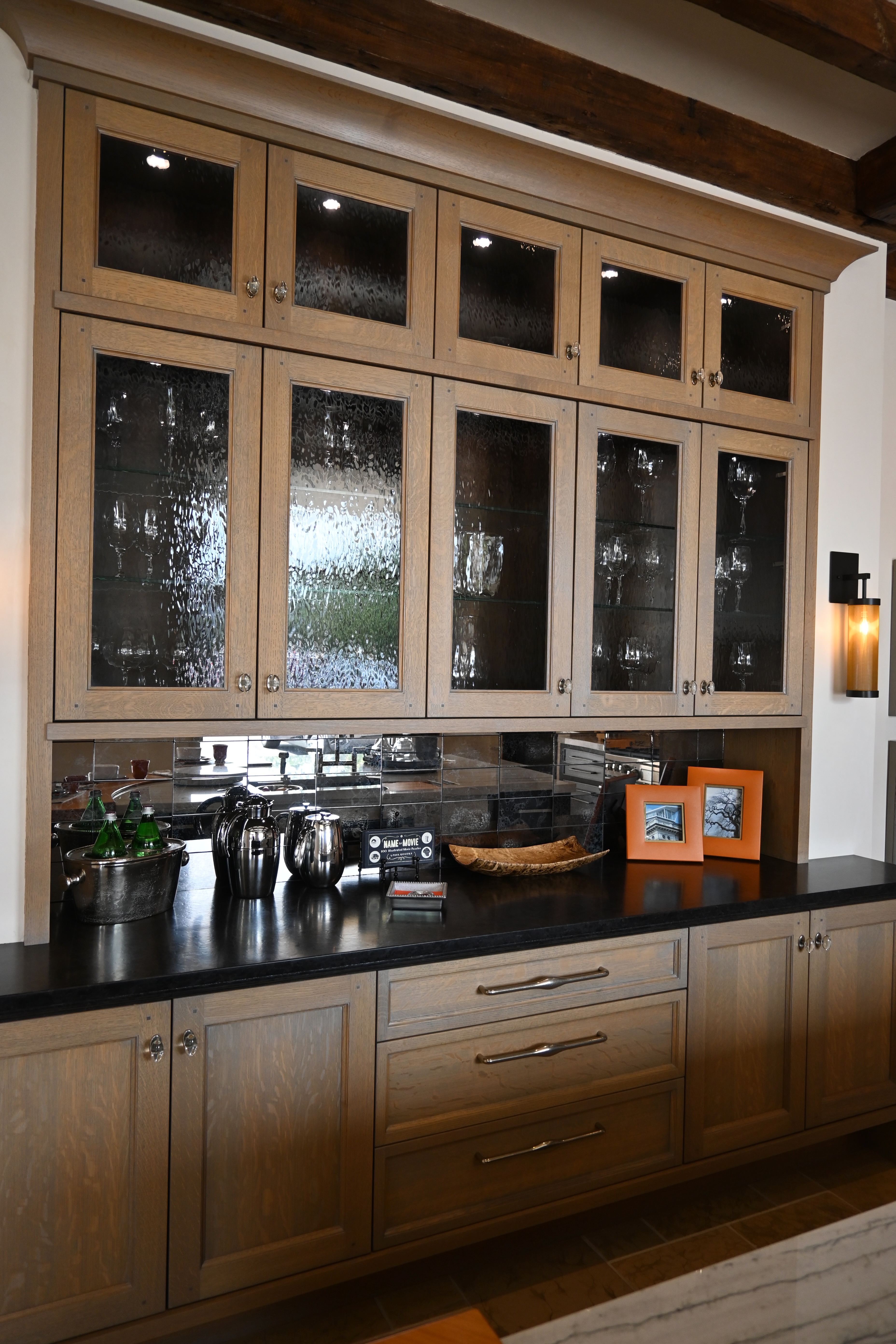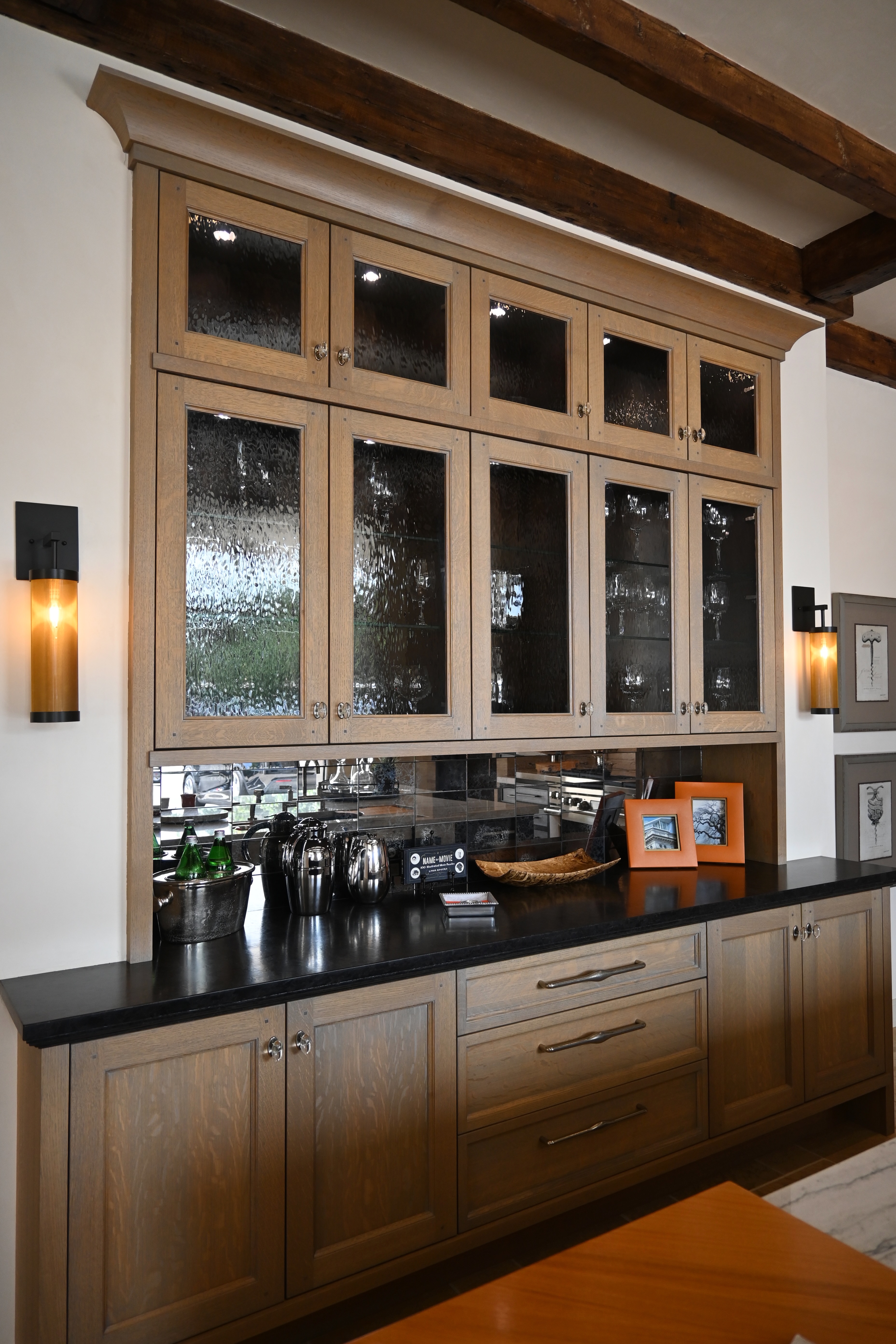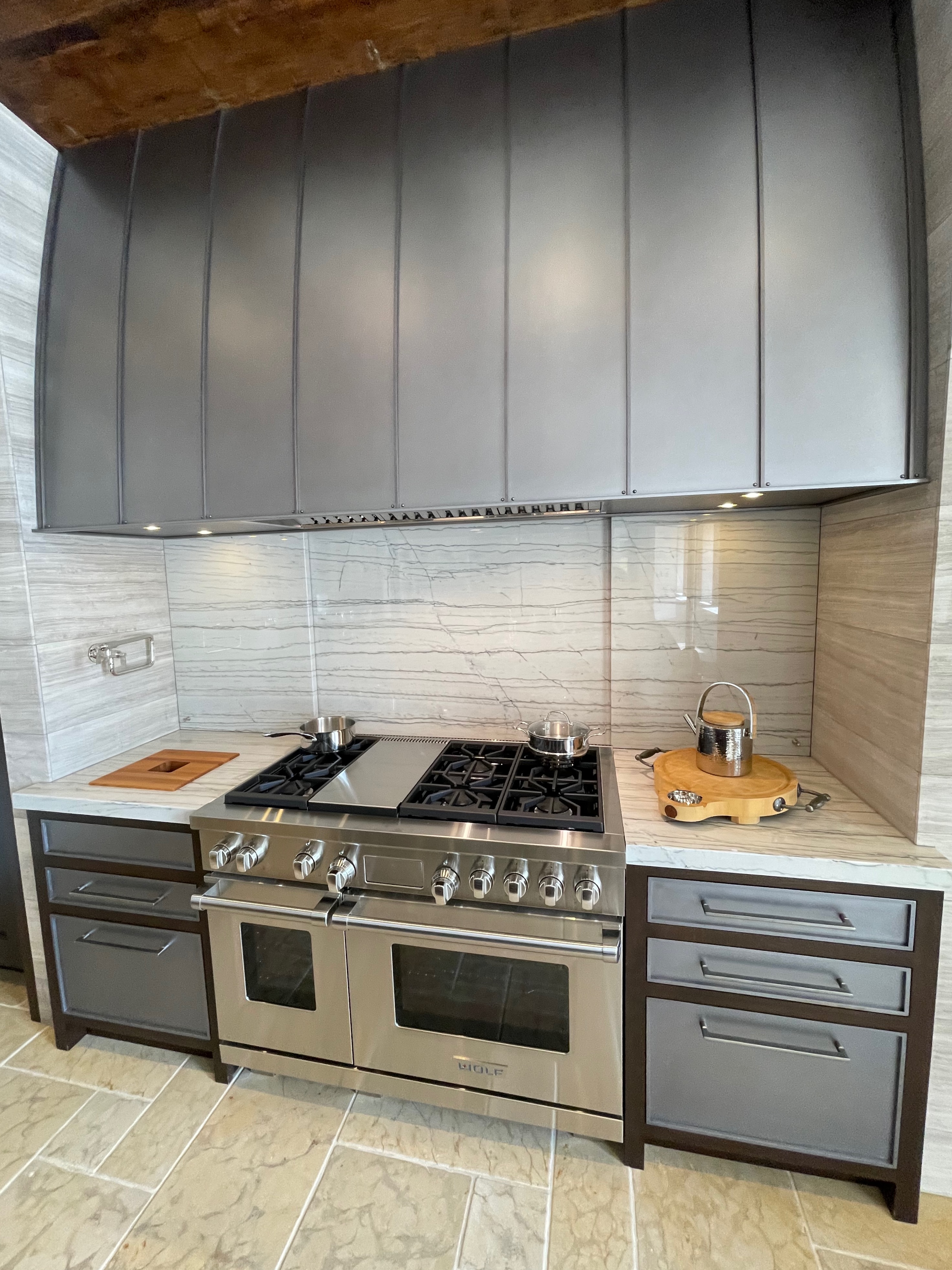 RANGE WALL- Cabinets & doors are quarter sawn white oak with an espresso finish