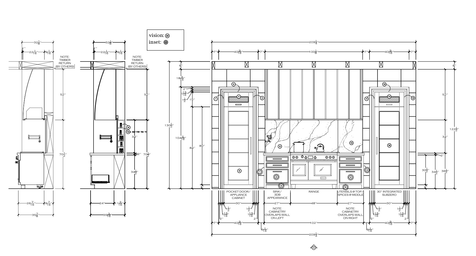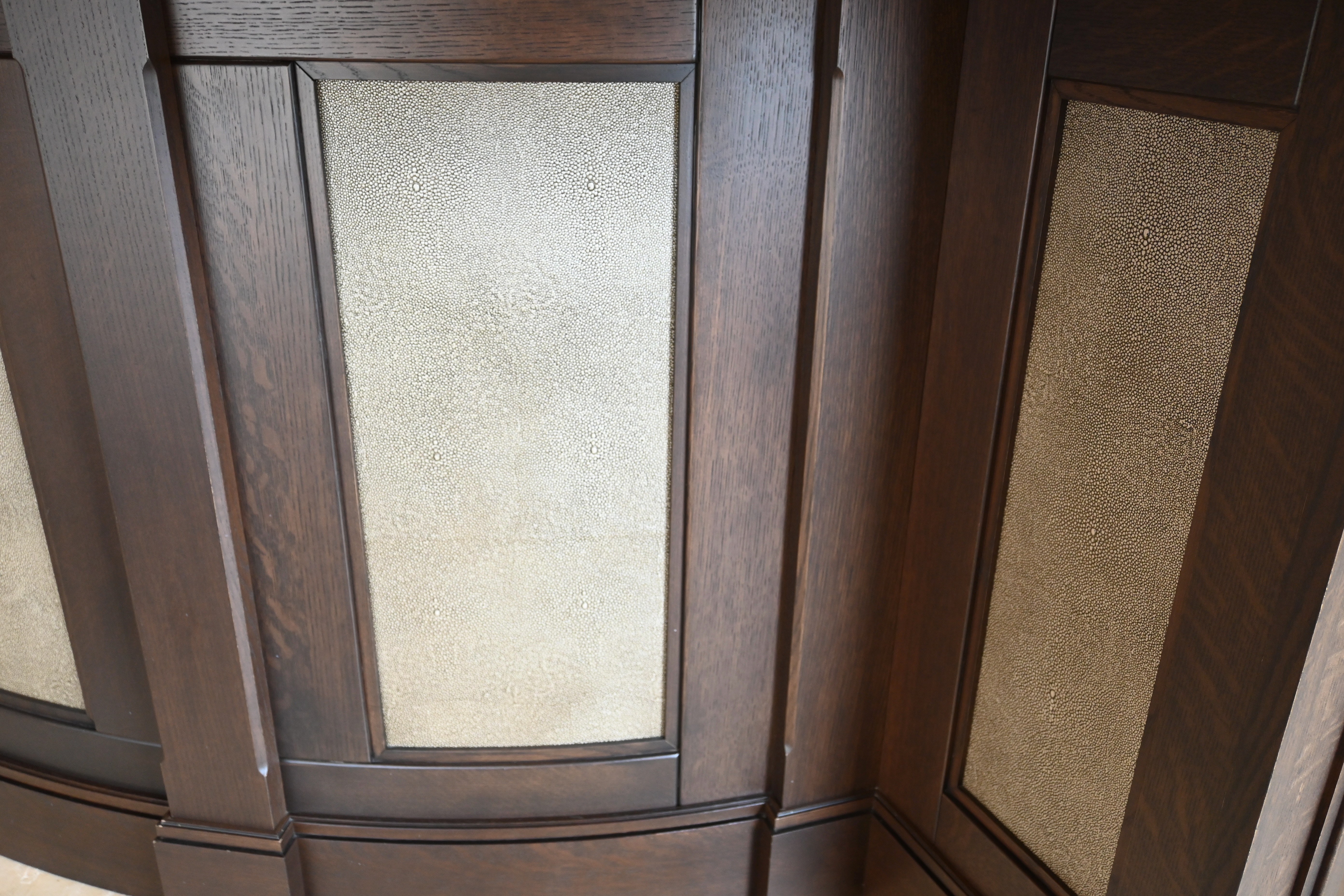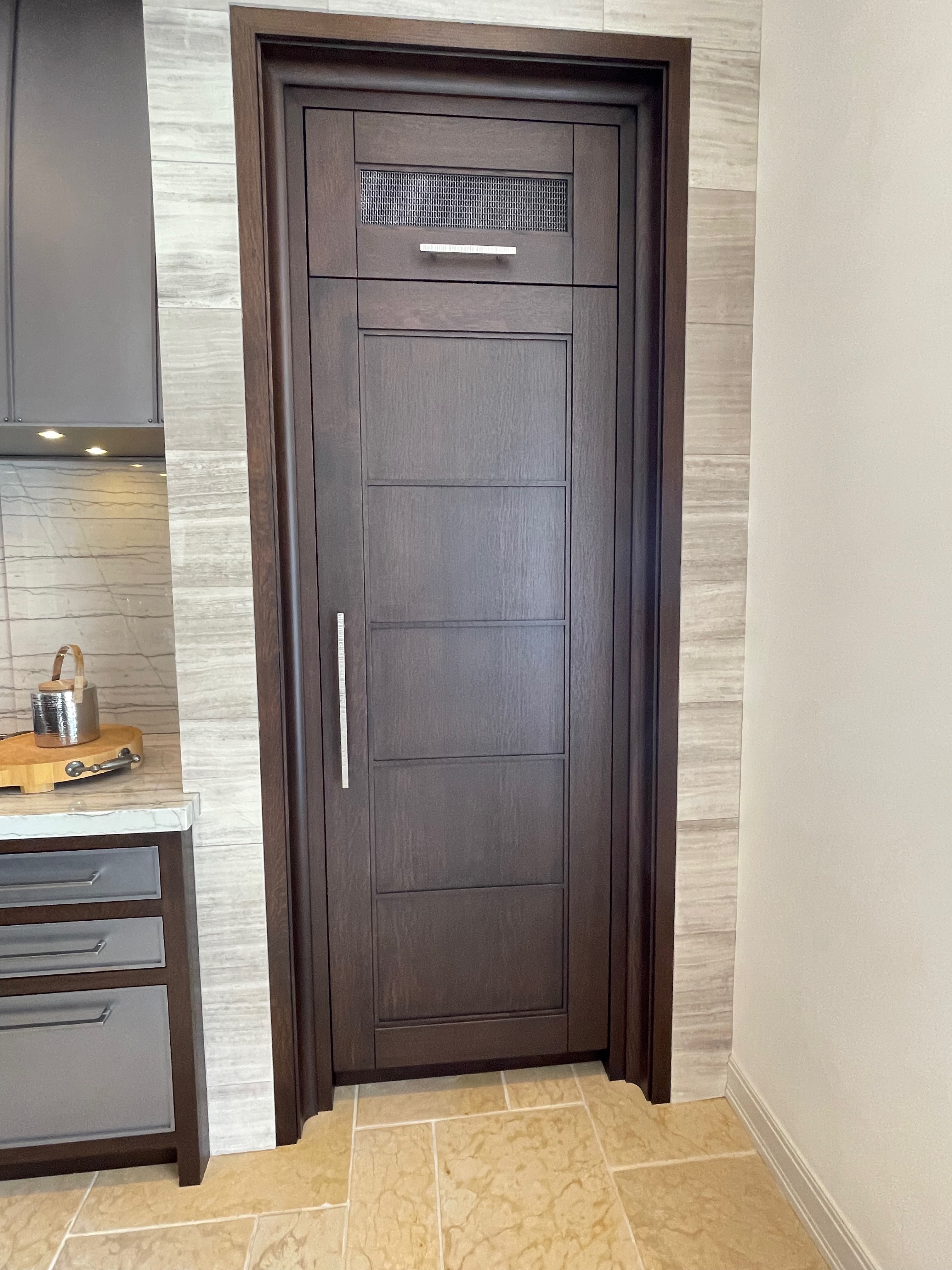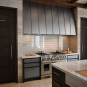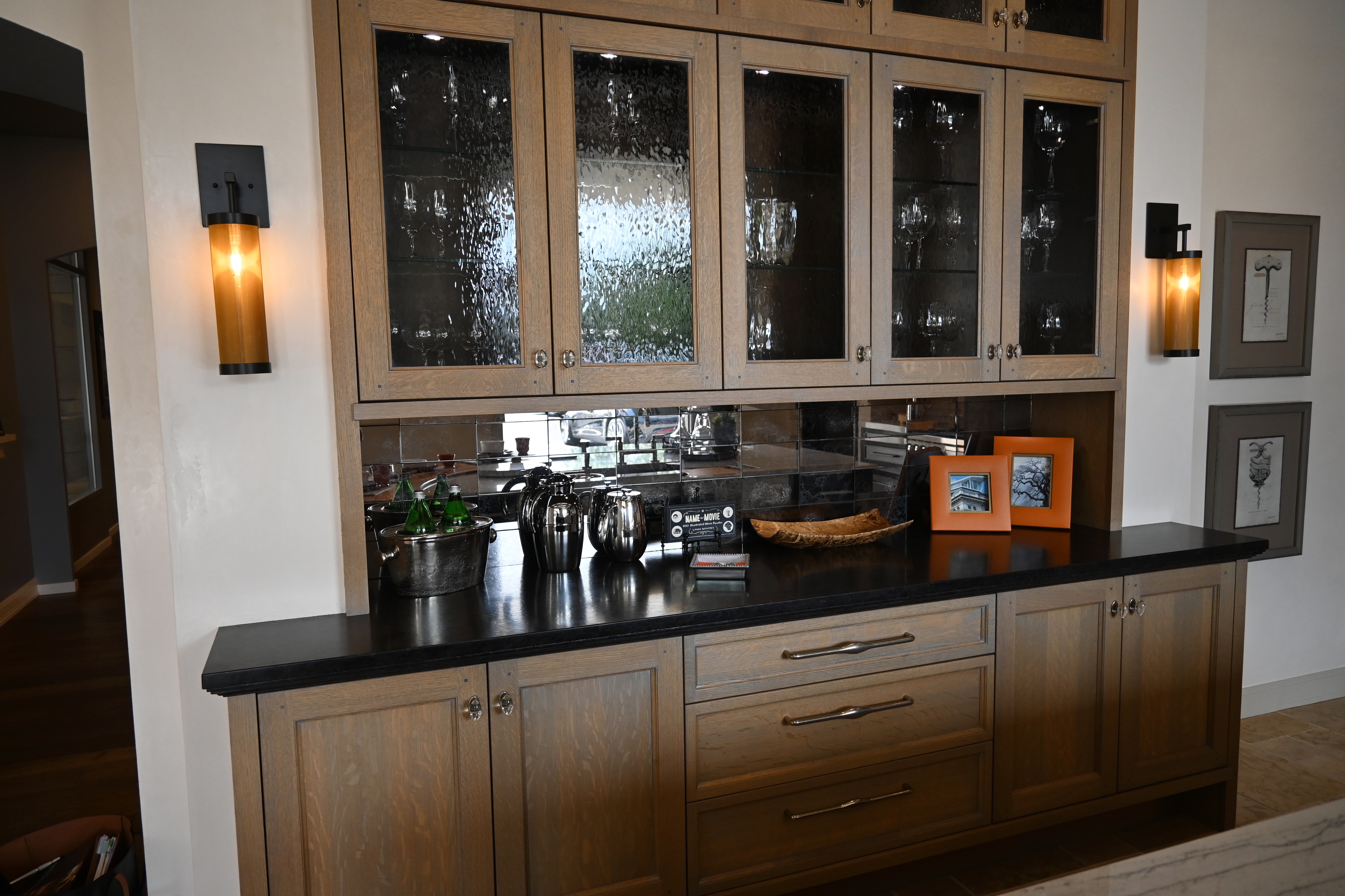 RANGE WALL- Cabinets & doors are quarter sawn white oak with an espresso finish