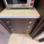1-Three drawer base cabinet w/ quartz top Dim.: 27”w/29 1 4”w x 36”h x 24 7/8”d/overall 27 ¼”d