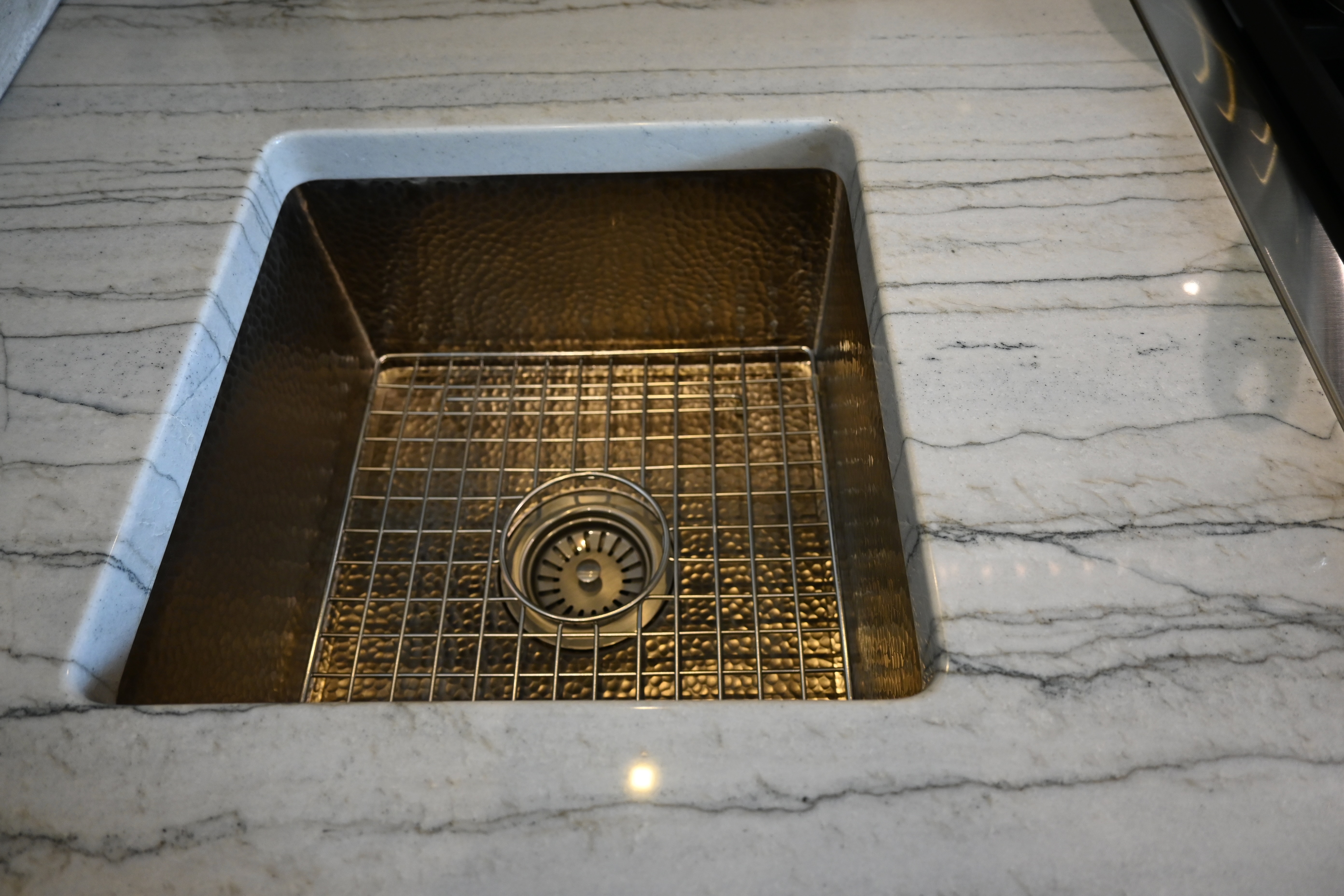 Decorative Quartzite front to the sink Dim.: 54”w x 8”h