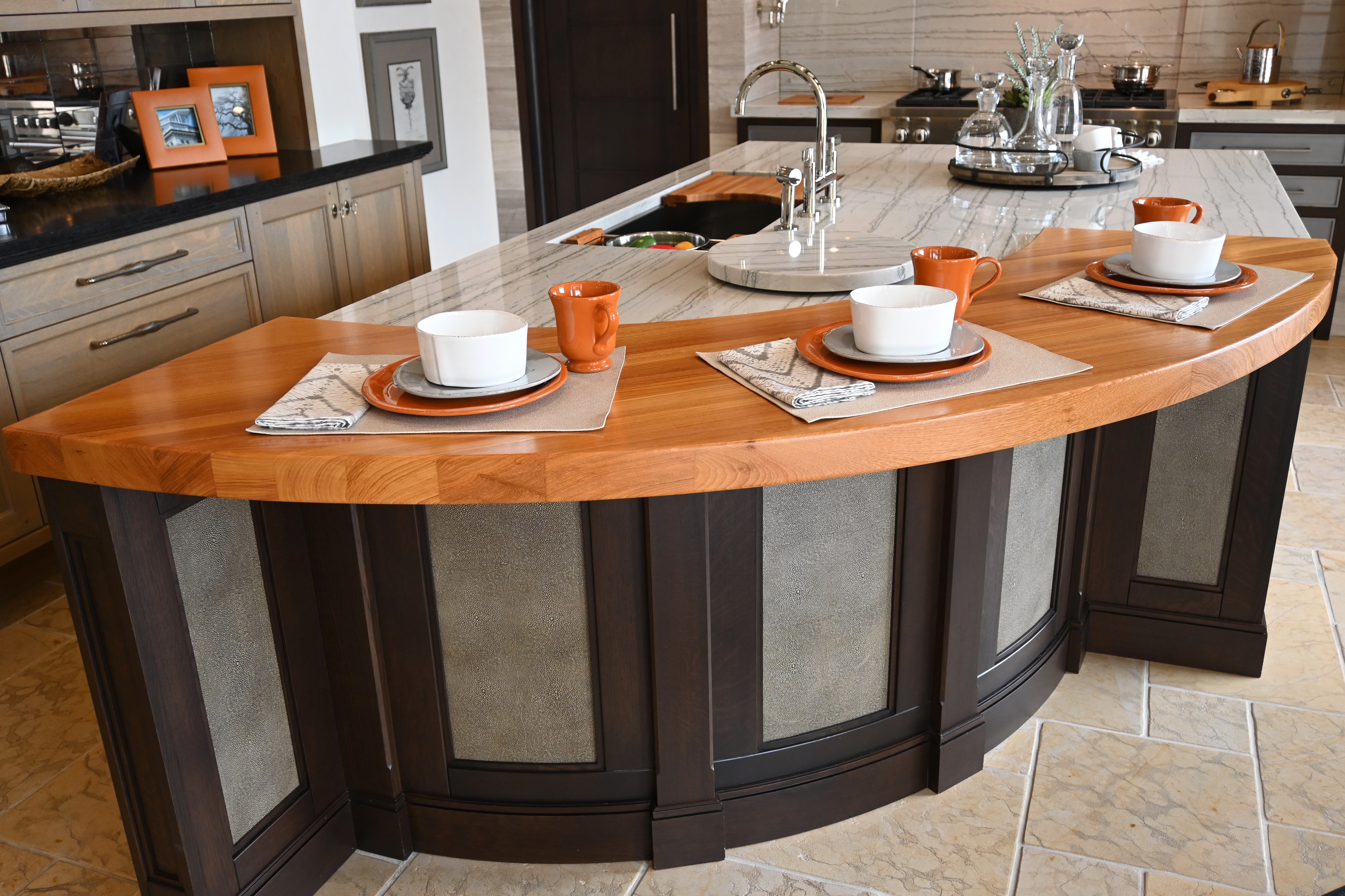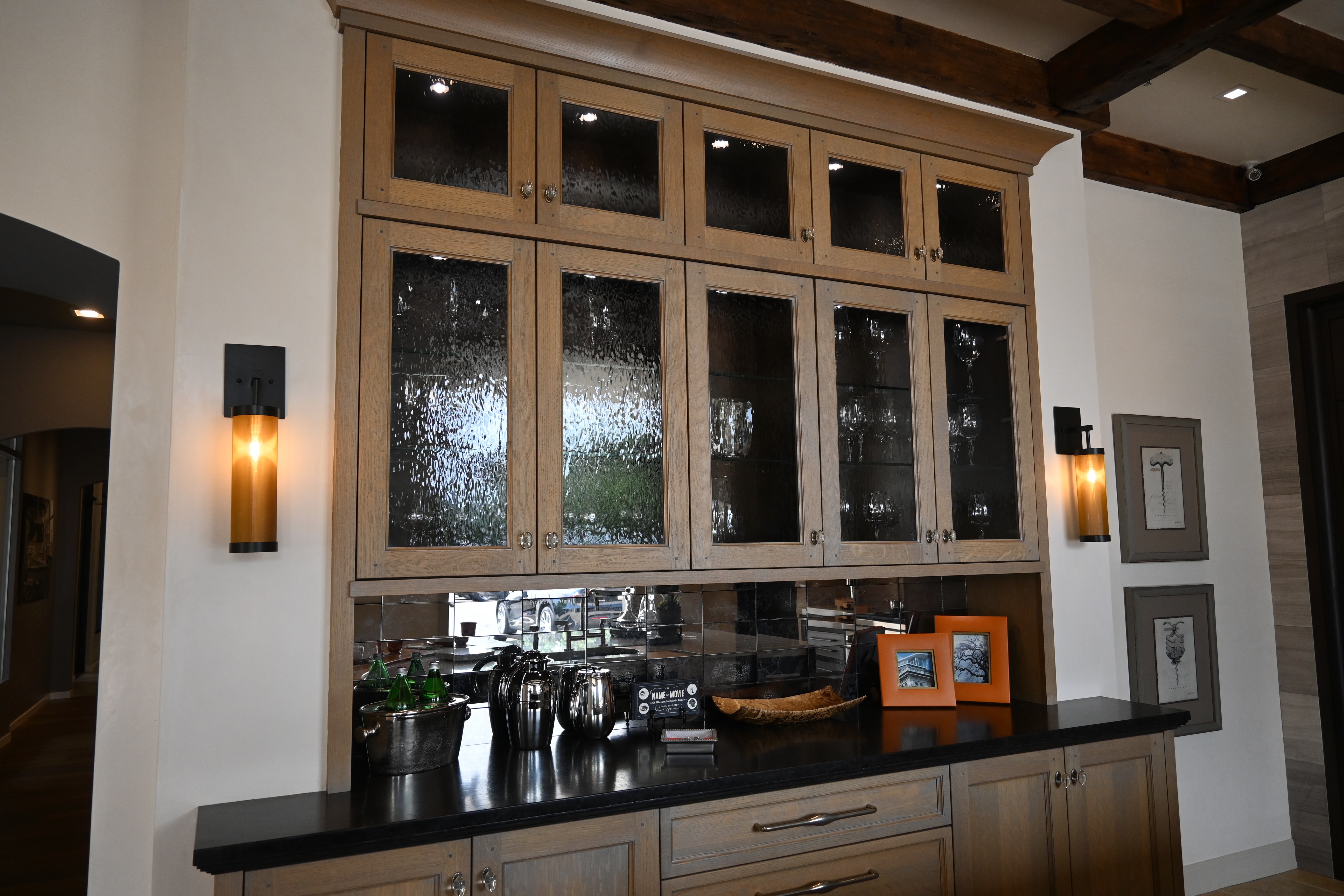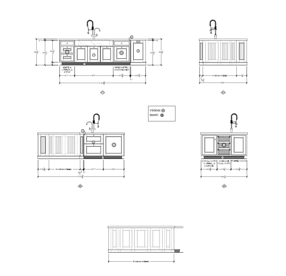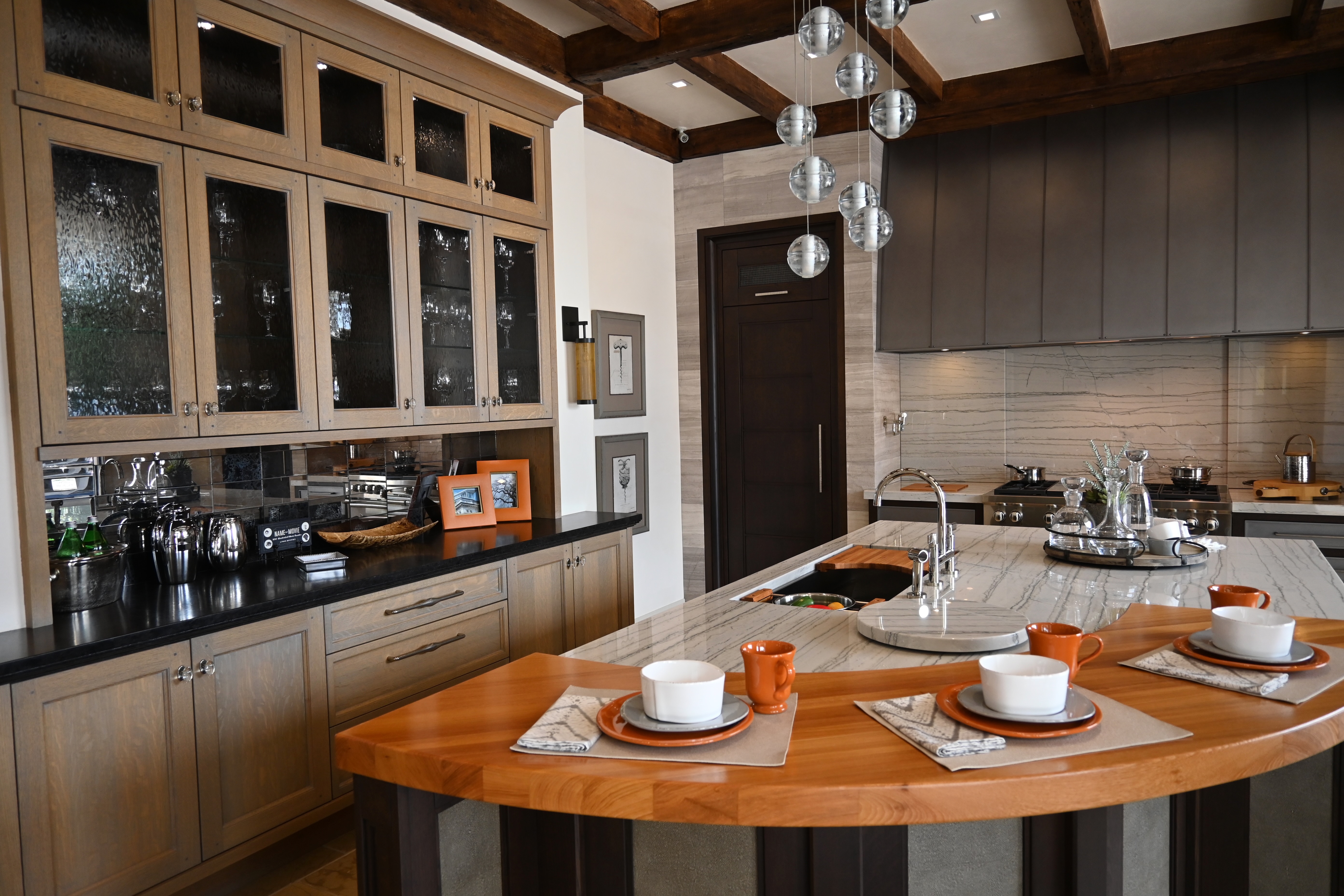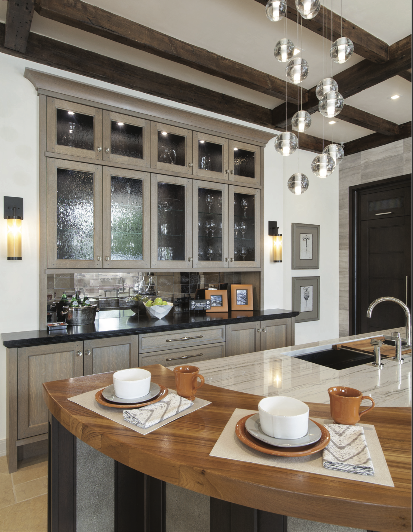 *Decorative wood cabinet panels on the backside and side of the island and bar