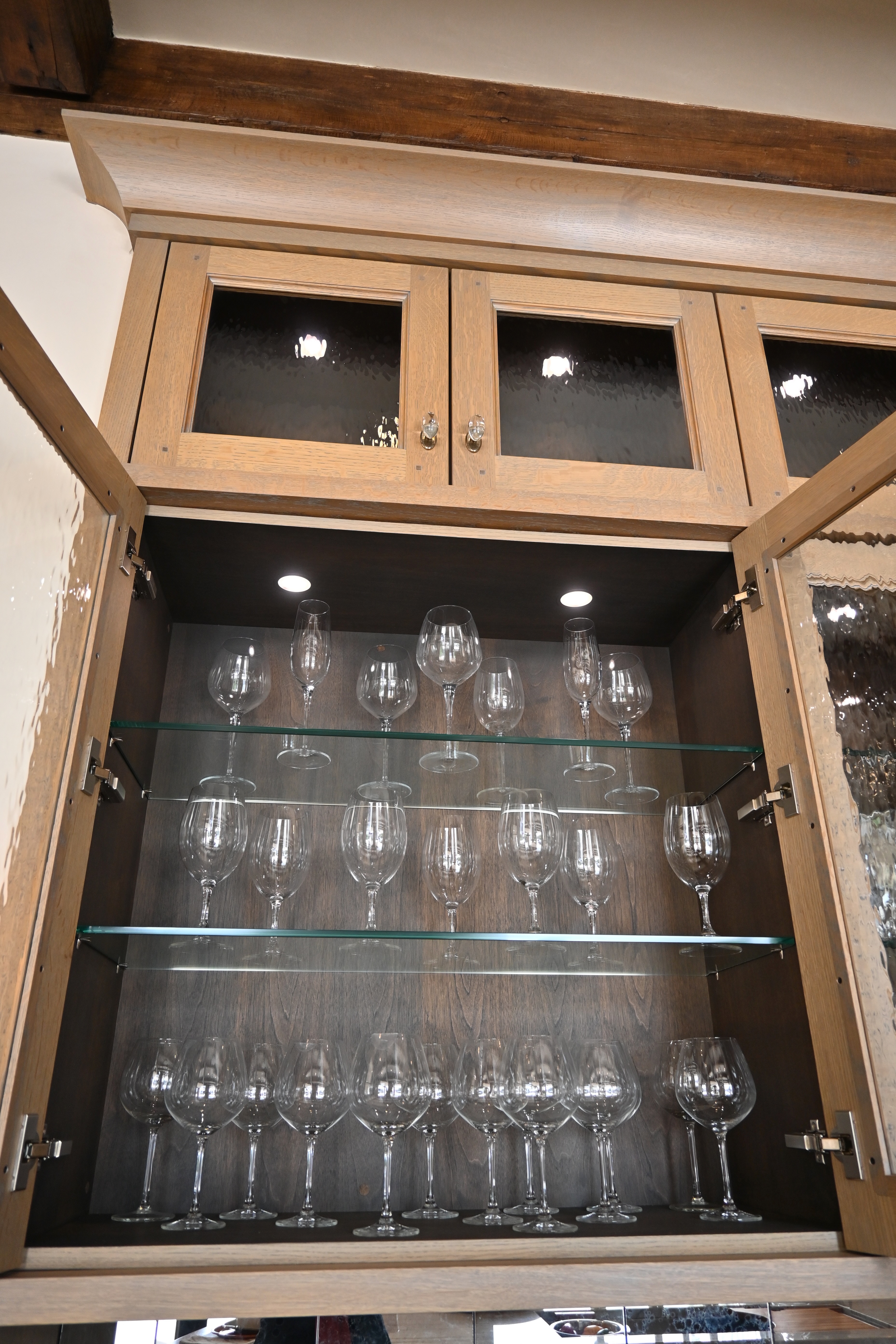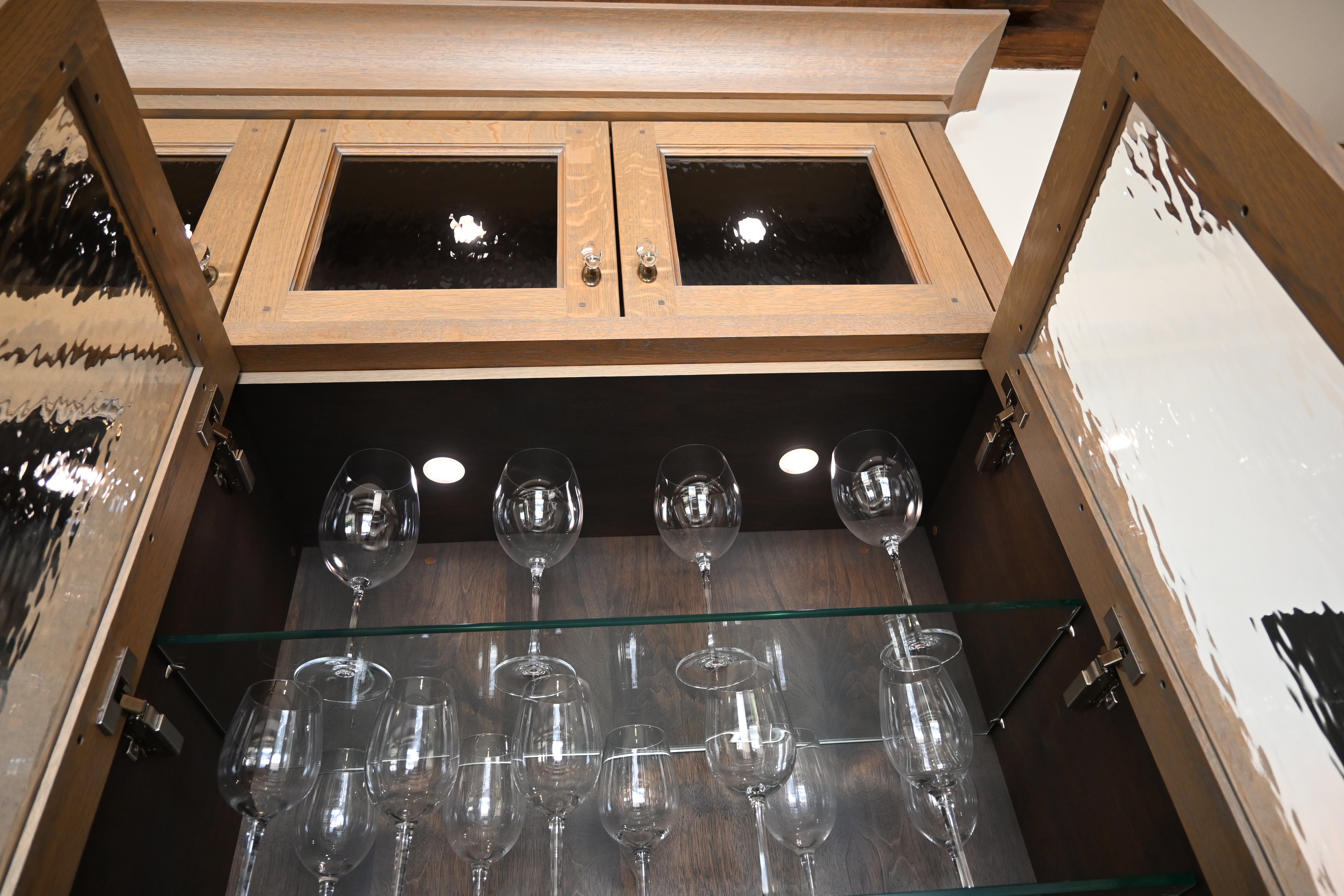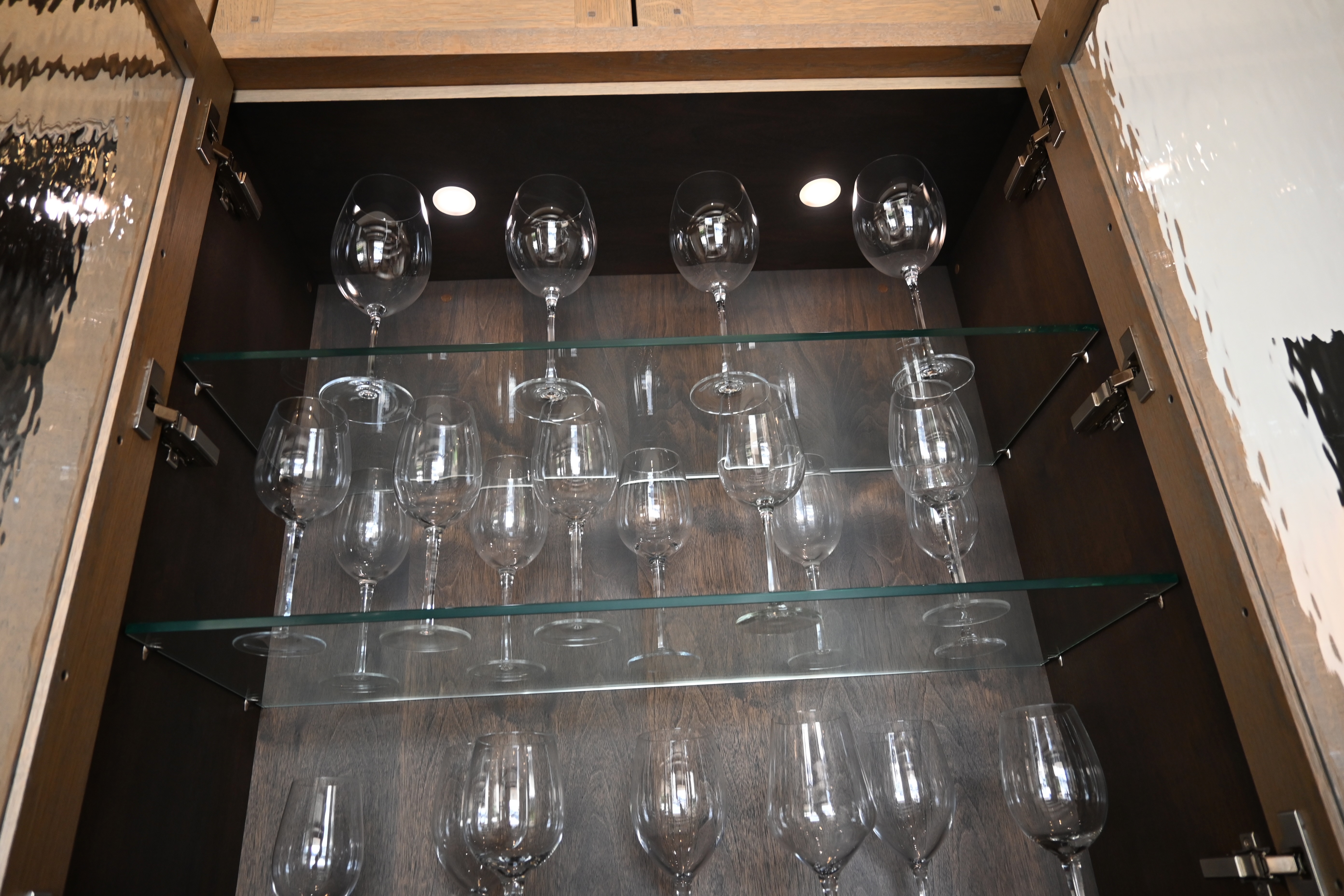 *All glass front wall cabinets have glass shelving and puck lights inside
