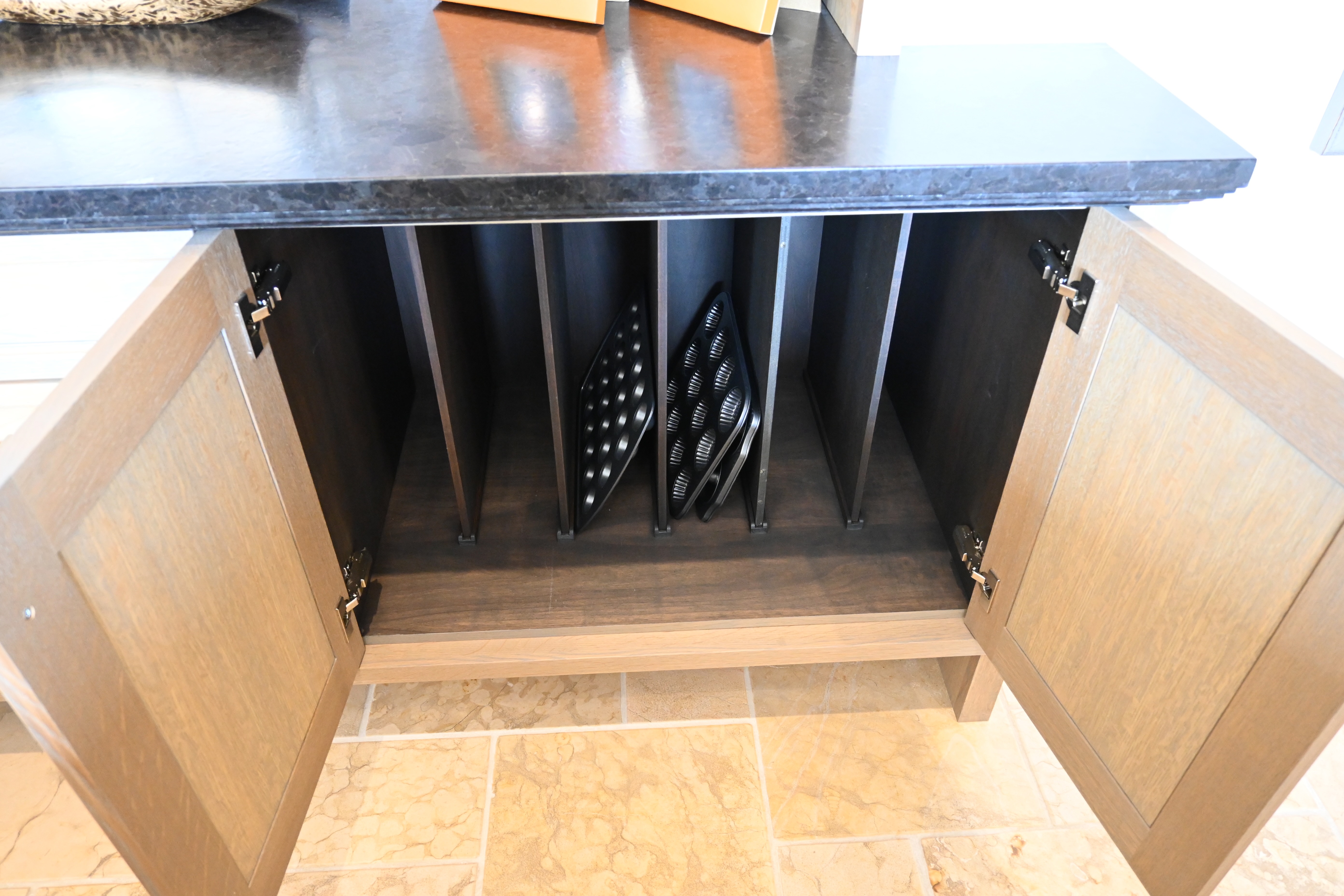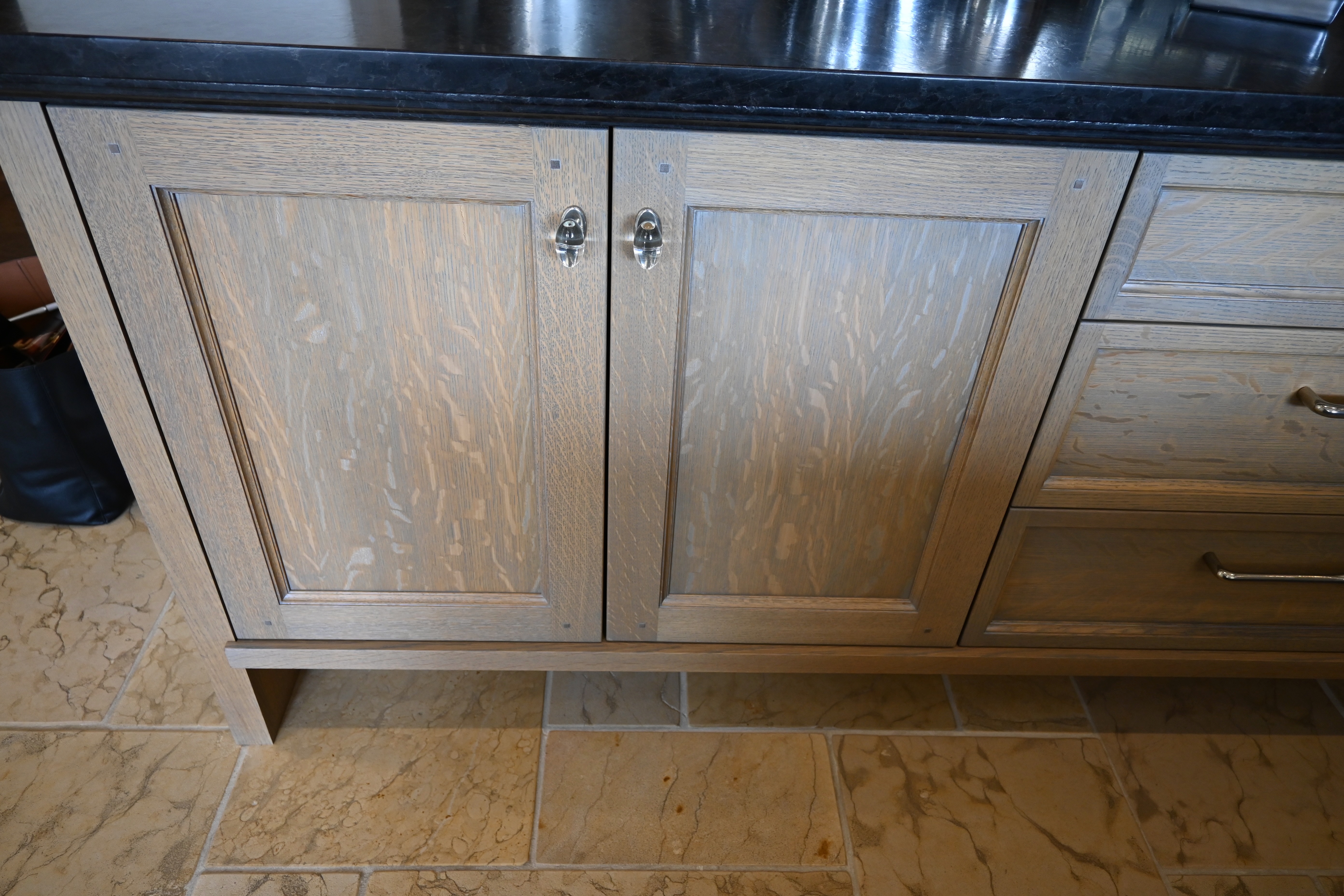 BASE CABINETS- - Quarter Sawn White Oak with a silver/gray oiled finish