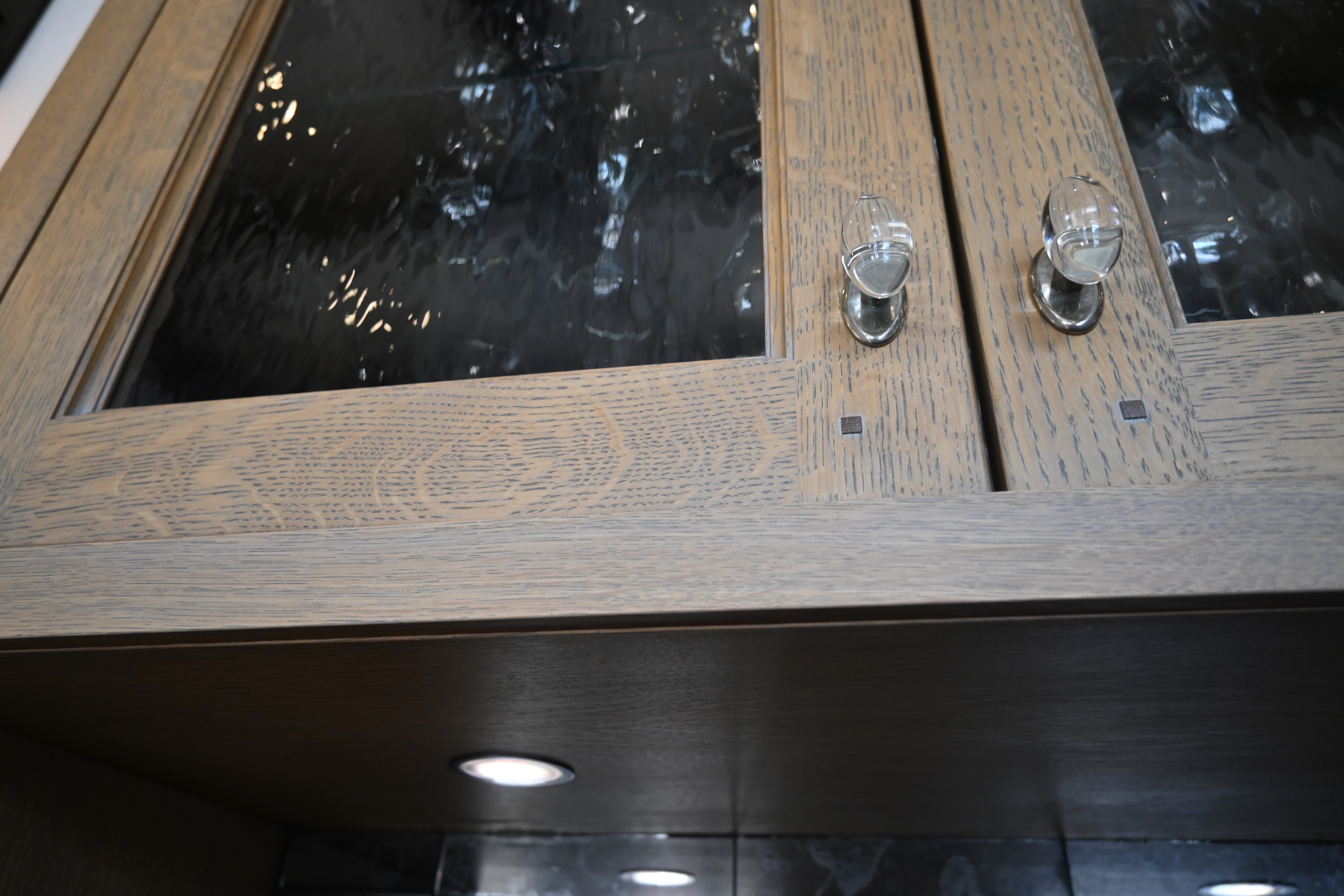 WALL CABINETS- Quarter Sawn White Oak with a silver/gray oiled finish